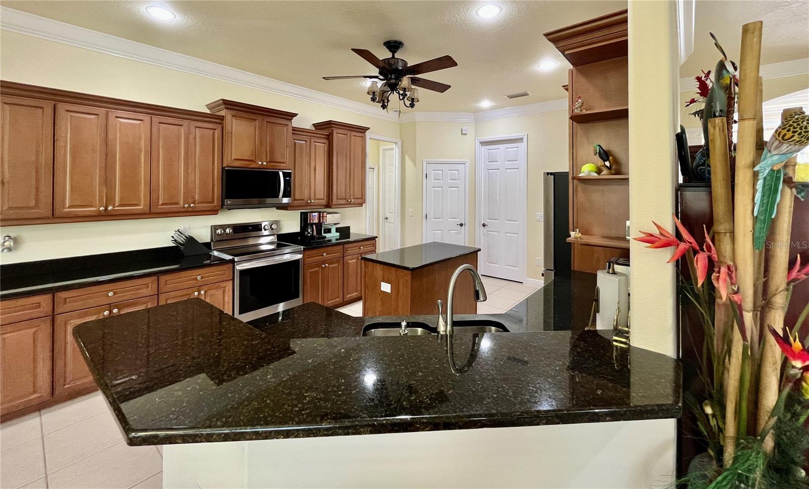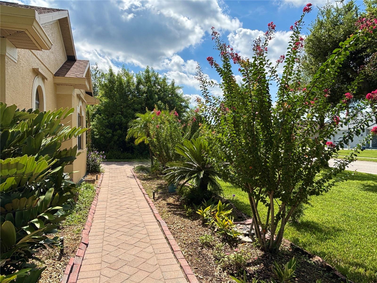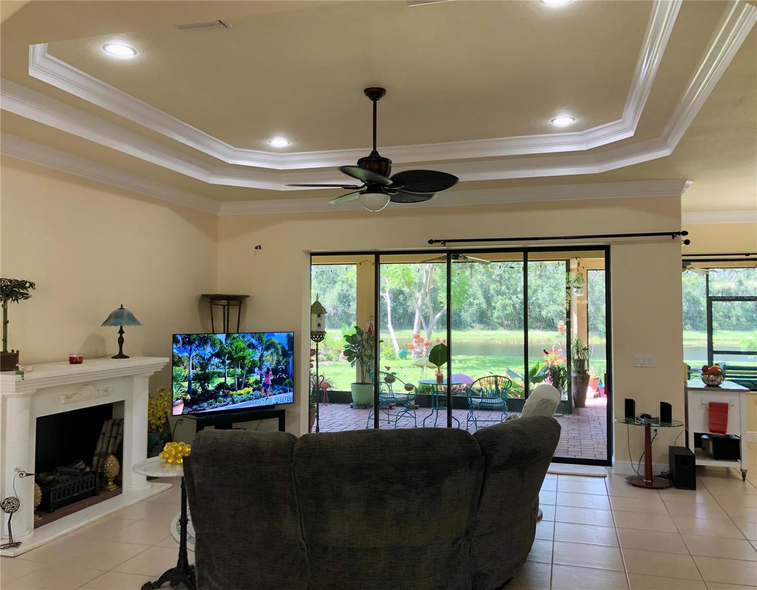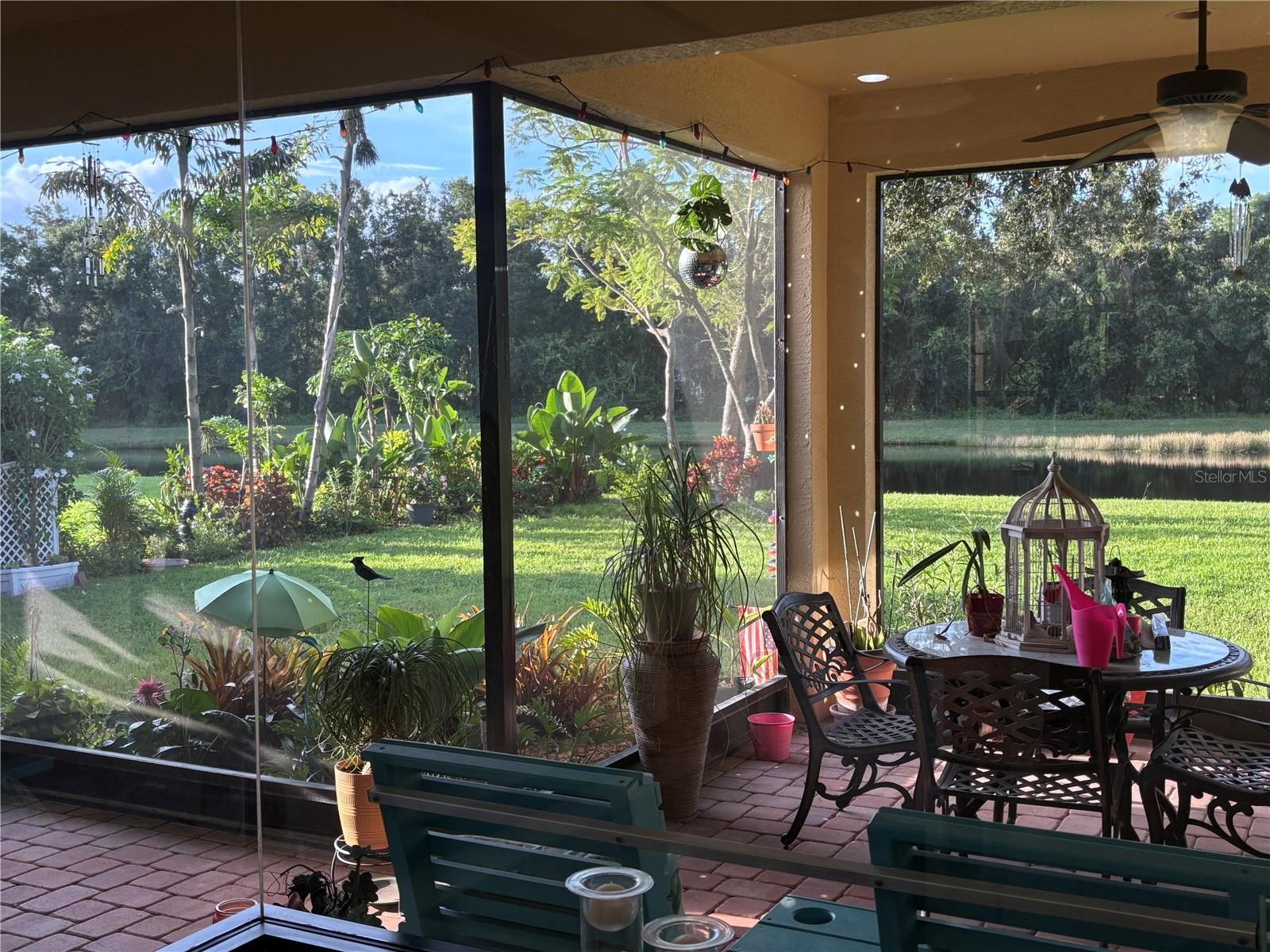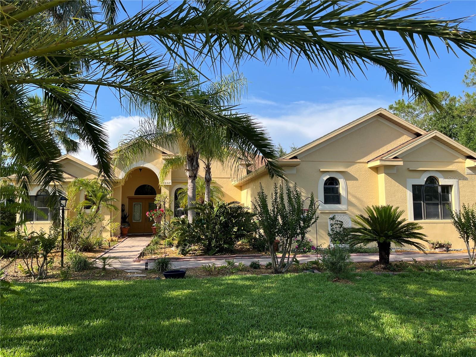 Enveloped within the scenes & sounds of nature, wildlife, & exotic mature landscaping, welcome to the next chapter of stunning Florida living! Step inside to discover a floor plan that blends comfort & privacy with its triple split bedrooms & pocket doors, yet flows seamlessly for entertaining. With no carpet to deal with, enjoy tile floors & engineered hardwood flooring in all 3 bedrooms + the sprawling den/4th bedroom, located at the back of the home. With pocket doors closing this area off if desired, this would be a perfect area as a teen or in law suite. The kitchen has wood cabinets & new (2024) appliances. Prepare to be distracted with the picturesque pond views or herons flying in for a landing from the aquarium windows in the kitchen eating nook. Other special features include a formal dining room with a wet bar area adjacent, huge great room with patio doors out to the L shaped lanai & an electric fireplace for those few cool Florida evenings. The owners suite has patio doors to the lanai, 2 closets with custom built ins, a shower with bench & jetted tub in the bathroom. The 2nd bath has a tub/shower combination & the 3rd bath has a walk in shower. Architectural details abound with crown molding, tray ceilings, 8 ft doors, clerestory sliver windows, niches, decorative or storage nooks, pocket doors, paver driveway/walkway/lanai floor & more. The expansive 3 car garage with a lighted tiled storage closet is positioned alongside the side yard where options exist to park a larger vehicle/boat or add a shop, truly a rare find! The extra breathing room of the larger lot sizes (almost 1/2 an acre) allows mature landscaping with open areas that can easily accommodate a pool or extended lanai. The front area would be perfect for a secluded courtyard, or plot out a garden in the side or back. Speaking of that, what a backyard find! Situated in the center of the pond, enjoy panoramic views from multiple seating options on the L shaped lanai with a special area for your grill. Easy on/off acrylic & metal hurricane shutters in the garage. A new roof (Jan 2025) & fresh paint outside & in, this home in Mill Creek with a low HOA & NO CDD is located near highly rated schools, shopping including Costco, restaurants, & the 44th St. extension for easier access to the beaches. Having only 2 primary resident owners, this home has been loved & cared for throughout the years, has great neighbors, & is ready & waiting for YOU!