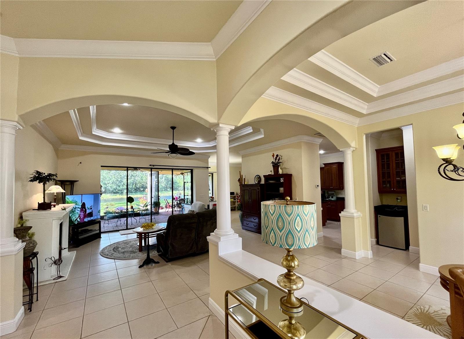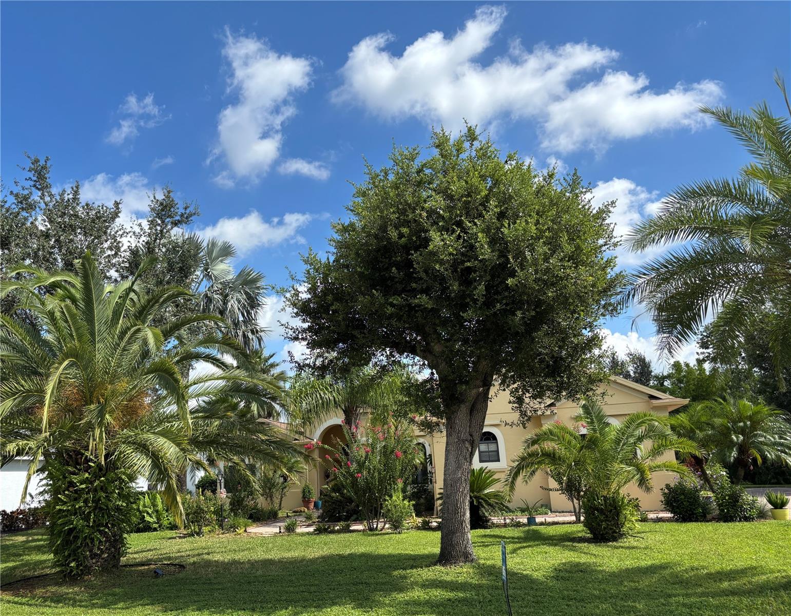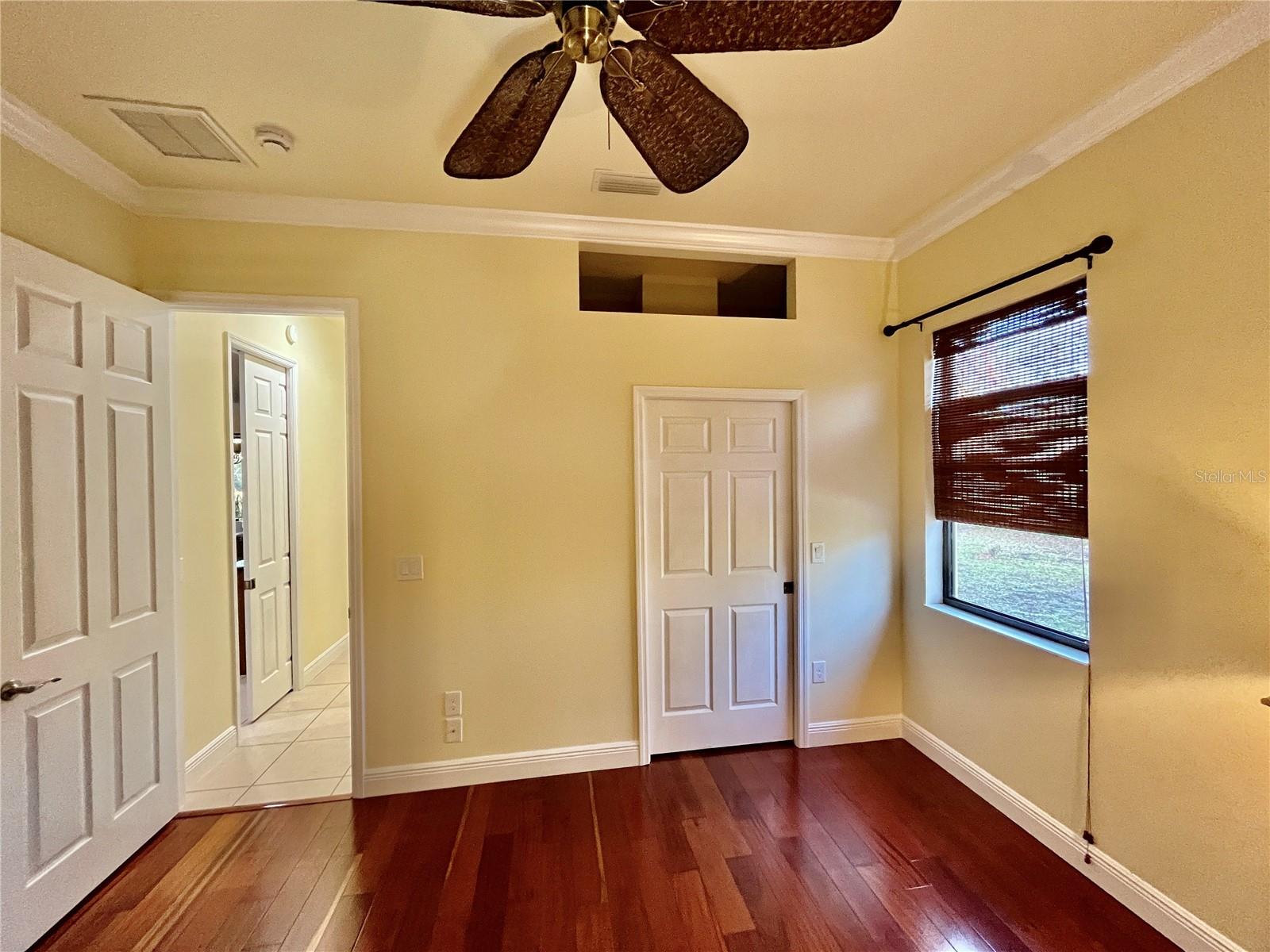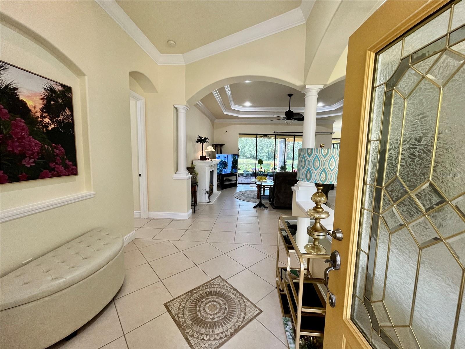 Enveloped within the scenes & sounds of nature, wildlife, & exotic mature landscaping, welcome to the next chapter of stunning Florida living! Step inside to discover a floor plan that blends comfort & privacy with its triple split bedrooms & pocket doors, yet flows seamlessly for entertaining. With no carpet to deal with, enjoy tile floors & engineered hardwood flooring in all 3 bedrooms + the sprawling den/4th bedroom, located at the back of the home. With pocket doors closing this area off if desired, this would be a perfect area as a teen or in law suite. The kitchen has wood cabinets & new (2024) appliances. Prepare to be distracted with the picturesque pond views or herons flying in for a landing from the aquarium windows in the kitchen eating nook. Other special features include a formal dining room with a wet bar area adjacent, huge great room with patio doors out to the L shaped lanai & an electric fireplace for those few cool Florida evenings. The owners suite has patio doors to the lanai, 2 closets with custom built ins, a shower with bench & jetted tub in the bathroom. The 2nd bath has a tub/shower combination & the 3rd bath has a walk in shower. Architectural details abound with crown molding, tray ceilings, 8 ft doors, clerestory sliver windows, niches, decorative or storage nooks, pocket doors, paver driveway/walkway/lanai floor & more. The expansive 3 car garage with a lighted tiled storage closet is positioned alongside the side yard where options exist to park a larger vehicle/boat or add a shop, truly a rare find! The extra breathing room of the larger lot sizes (almost 1/2 an acre) allows mature landscaping with open areas that can easily accommodate a pool or extended lanai. The front area would be perfect for a secluded courtyard, or plot out a garden in the side or back. Speaking of that, what a backyard find! Situated in the center of the pond, enjoy panoramic views from multiple seating options on the L shaped lanai with a special area for your grill. Easy on/off acrylic & metal hurricane shutters in the garage. A new roof (Jan 2025) & fresh paint outside & in, this home in Mill Creek with a low HOA & NO CDD is located near highly rated schools, shopping including Costco, restaurants, & the 44th St. extension for easier access to the beaches. Having only 2 primary resident owners, this home has been loved & cared for throughout the years, has great neighbors, & is ready & waiting for YOU!