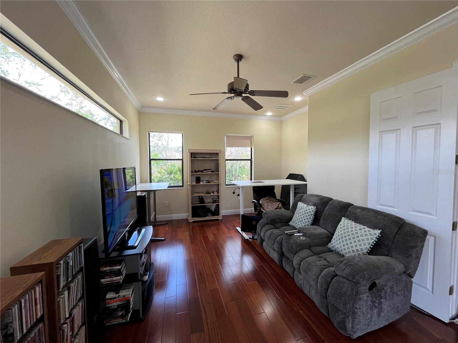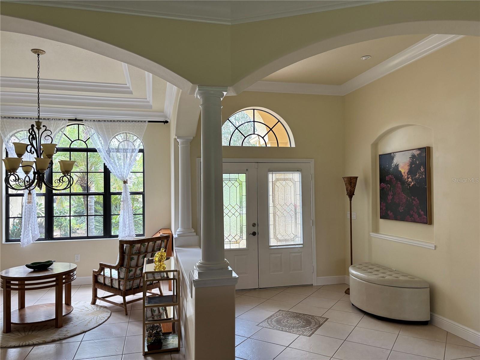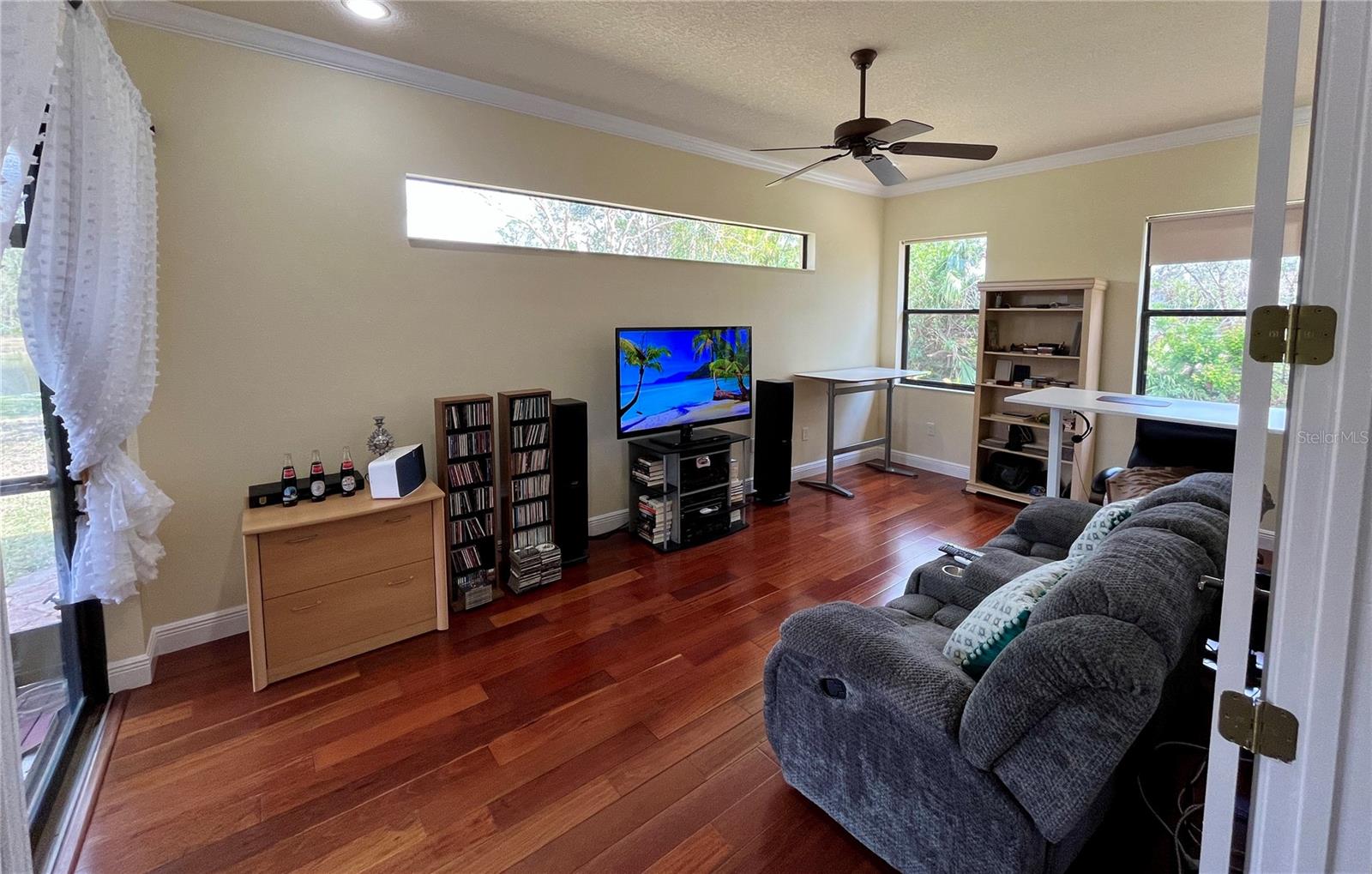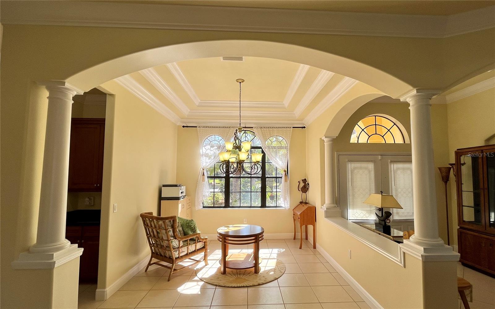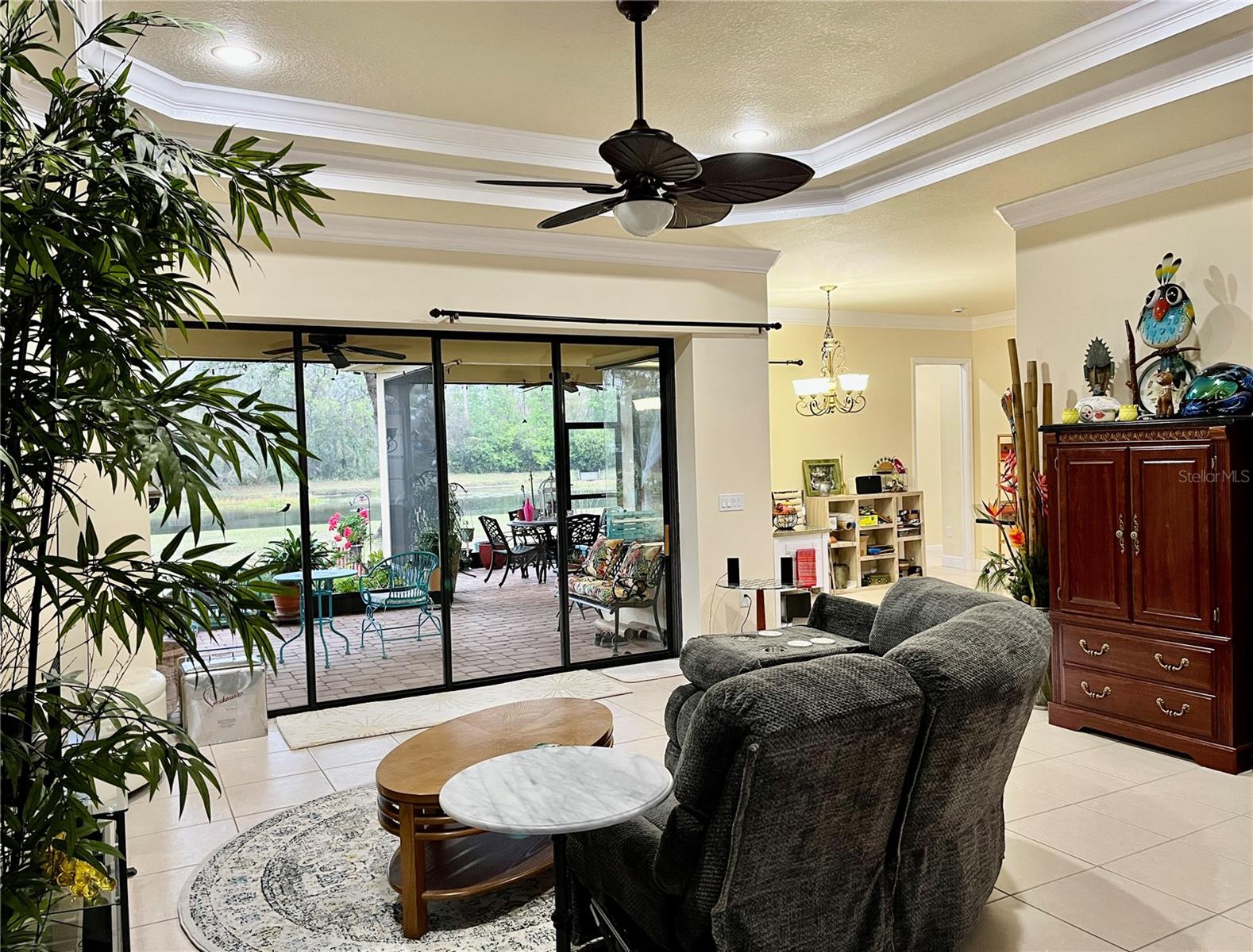 Enveloped within the scenes & sounds of nature, wildlife, & exotic mature landscaping, welcome to the next chapter of stunning Florida living! Step inside to discover a floor plan that blends comfort & privacy with its triple split bedrooms & pocket doors, yet flows seamlessly for entertaining. With no carpet to deal with, enjoy tile floors & engineered hardwood flooring in all 3 bedrooms + the sprawling den/4th bedroom, located at the back of the home. With pocket doors closing this area off if desired, this would be a perfect area as a teen or in law suite. The kitchen has wood cabinets & new (2024) appliances. Prepare to be distracted with the picturesque pond views or herons flying in for a landing from the aquarium windows in the kitchen eating nook. Other special features include a formal dining room with a wet bar area adjacent, huge great room with patio doors out to the L shaped lanai & an electric fireplace for those few cool Florida evenings. The owners suite has patio doors to the lanai, 2 closets with custom built ins, a shower with bench & jetted tub in the bathroom. The 2nd bath has a tub/shower combination & the 3rd bath has a walk in shower. Architectural details abound with crown molding, tray ceilings, 8 ft doors, clerestory sliver windows, niches, decorative or storage nooks, pocket doors, paver driveway/walkway/lanai floor & more. The expansive 3 car garage with a lighted tiled storage closet is positioned alongside the side yard where options exist to park a larger vehicle/boat or add a shop, truly a rare find! The extra breathing room of the larger lot sizes (almost 1/2 an acre) allows mature landscaping with open areas that can easily accommodate a pool or extended lanai. The front area would be perfect for a secluded courtyard, or plot out a garden in the side or back. Speaking of that, what a backyard find! Situated in the center of the pond, enjoy panoramic views from multiple seating options on the L shaped lanai with a special area for your grill. Easy on/off acrylic & metal hurricane shutters in the garage. A new roof (Jan 2025) & fresh paint outside & in, this home in Mill Creek with a low HOA & NO CDD is located near highly rated schools, shopping including Costco, restaurants, & the 44th St. extension for easier access to the beaches. Having only 2 primary resident owners, this home has been loved & cared for throughout the years, has great neighbors, & is ready & waiting for YOU!