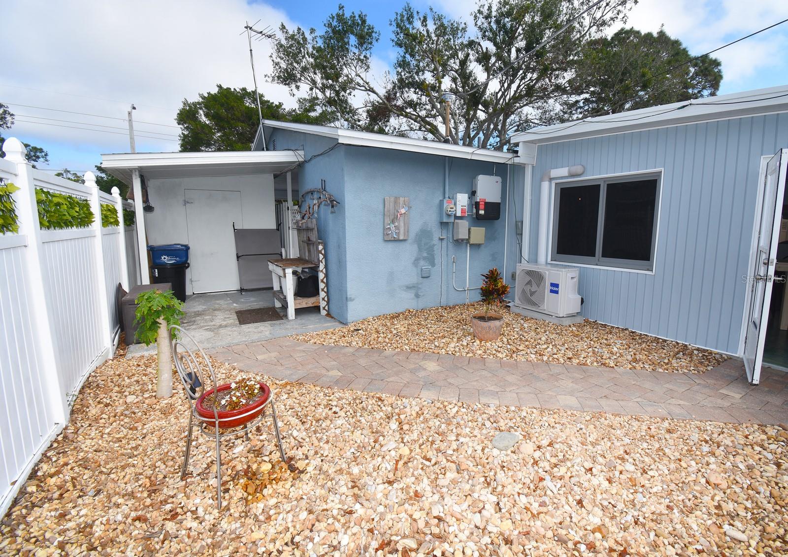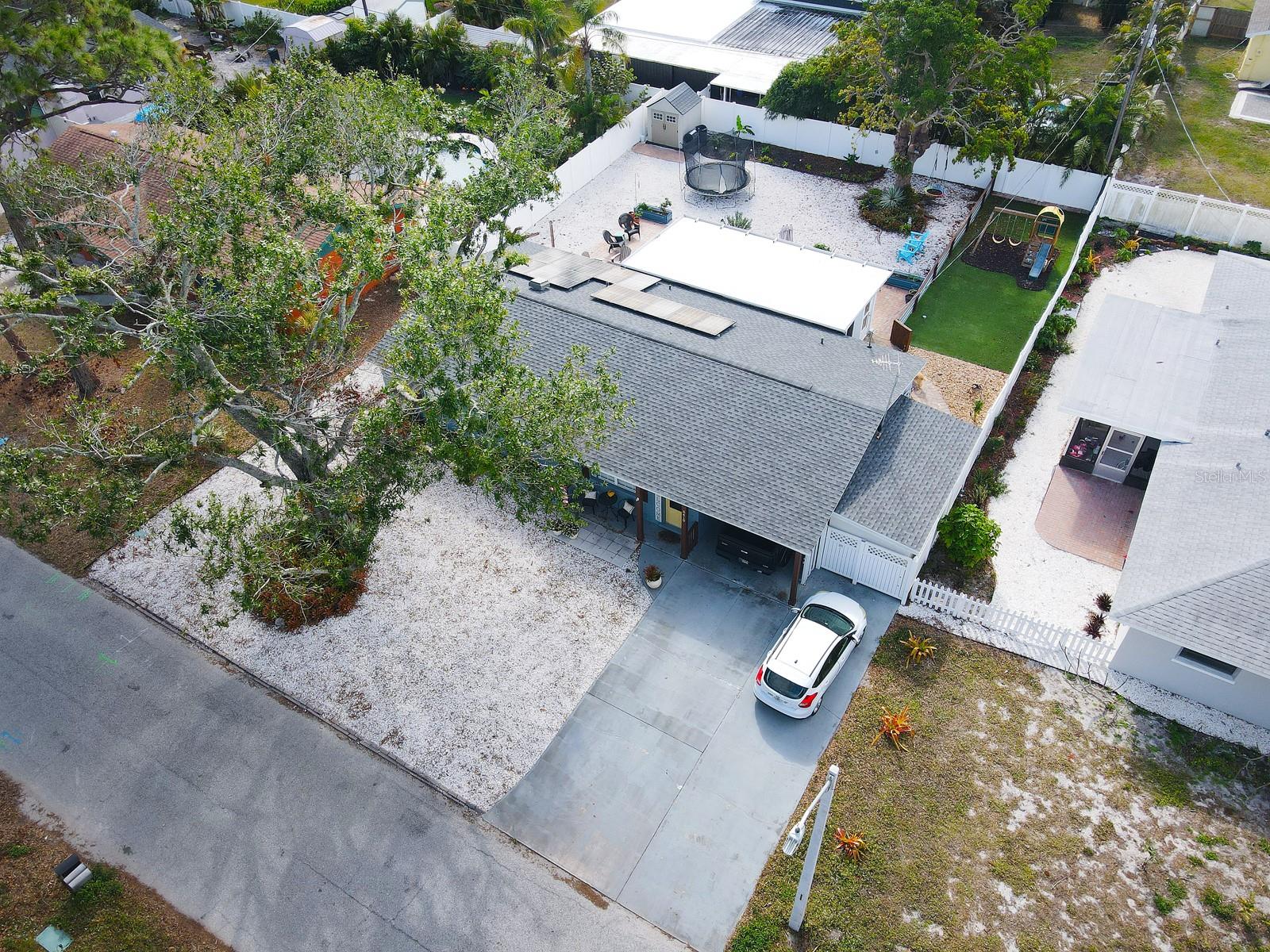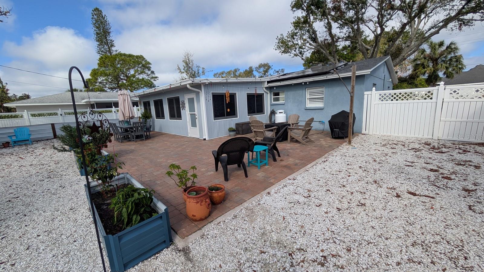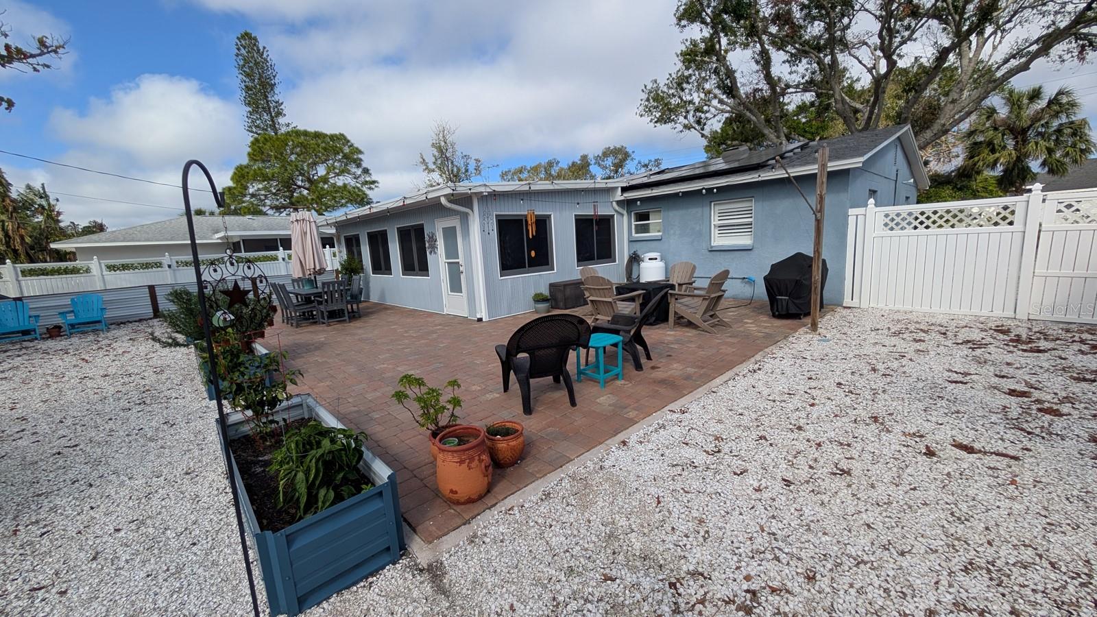 Oasis!!!! This charming 3/2 home features a beautiful, secluded backyard oasis with breathtaking landscaping. It allows ample space for backyard fun and fully fenced allowing privacy! Very little maintenance needed with all rocks, pavers, and turfgrass. An added-on sunroom offers tremendous value for family gatherings. The kitchen features all new cabinetry, granite, open shelves, and even a beverage bar for entertaining. There is travertine tile throughout the home. Both bathrooms have been updated with new vanities and tile. Totally updated with new A/C (2025) including a new electric box, new solar panels, and new roof (2024). The savings on utilities bring an extra bonus to this property. Make this your dream home with some personal touches to this well sought out home. A prime location just under 7 miles from Anna Maria Island, offering easy access to beautiful beaches. There is no HOA or rental restrictions, making it perfect for bringing your boat or jet skis given this home is located just down from the 59th St Boat Ramp. The home is within short distance to shopping, dining and many other conveniences! Don't miss out on the opportunity to own this unique blend of history and modern living, coupled with proximity to outdoor recreational opportunities and coastal delights. Schedule your showing today and envision the endless possibilities awaiting you in this Northwest Bradenton Haven!