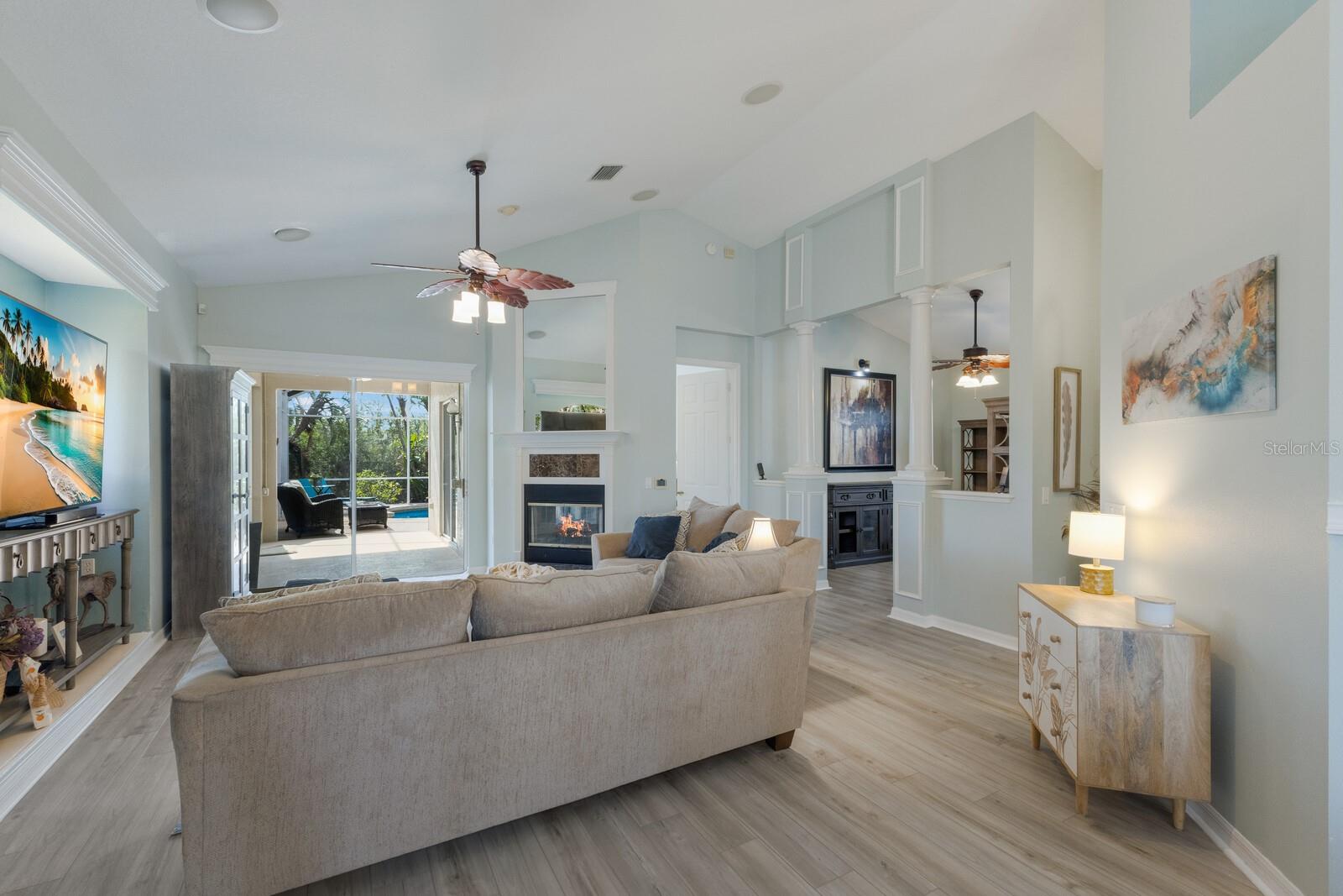 Nestled in the highly sought-after Tara Preserve community, this charming maintenance-free 2BD/2BA home with a versatile den/study offers the perfect blend of comfort and style. The den can easily be converted into a third bedroom, providing flexible space to fit your needs. Soaring ceilings and abundant natural light create an open, airy atmosphere, while a double-sided fireplace adds warmth and character—ideal for relaxing evenings. The thoughtfully designed open floor plan seamlessly connects the kitchen, dining, and living areas, making it perfect for both everyday living and entertaining. Step through large sliding doors to your private heated pool and serene outdoor retreat, or enjoy the many community amenities including a pool, tennis, pickleball, golf, and fitness center. HOA dues include lawn maintenance, ensuring a truly low-maintenance lifestyle. With dining, shopping, and recreation just minutes away, this home offers the ideal balance of relaxation and activity in one of Bradenton’s most desirable neighborhoods.