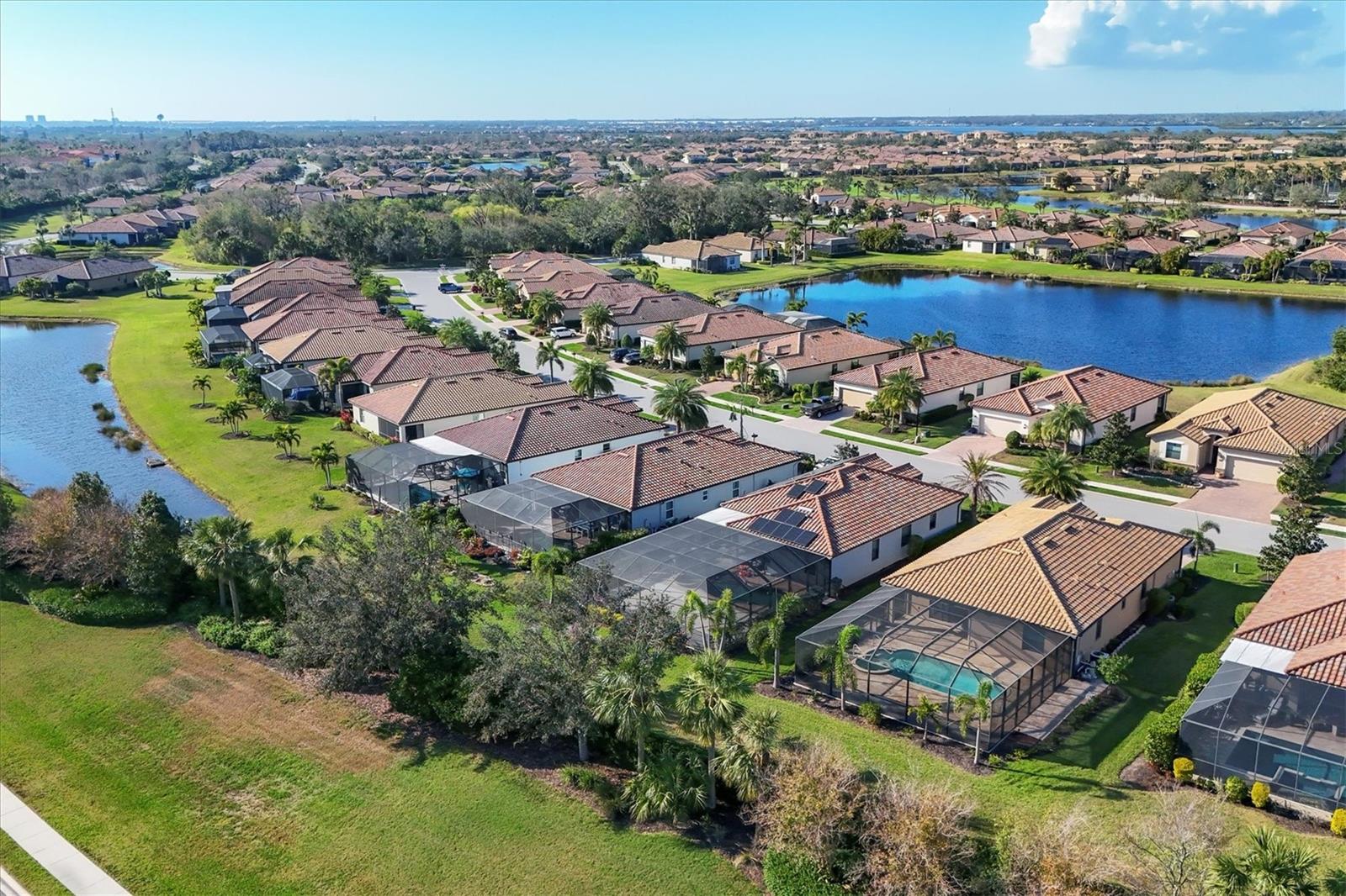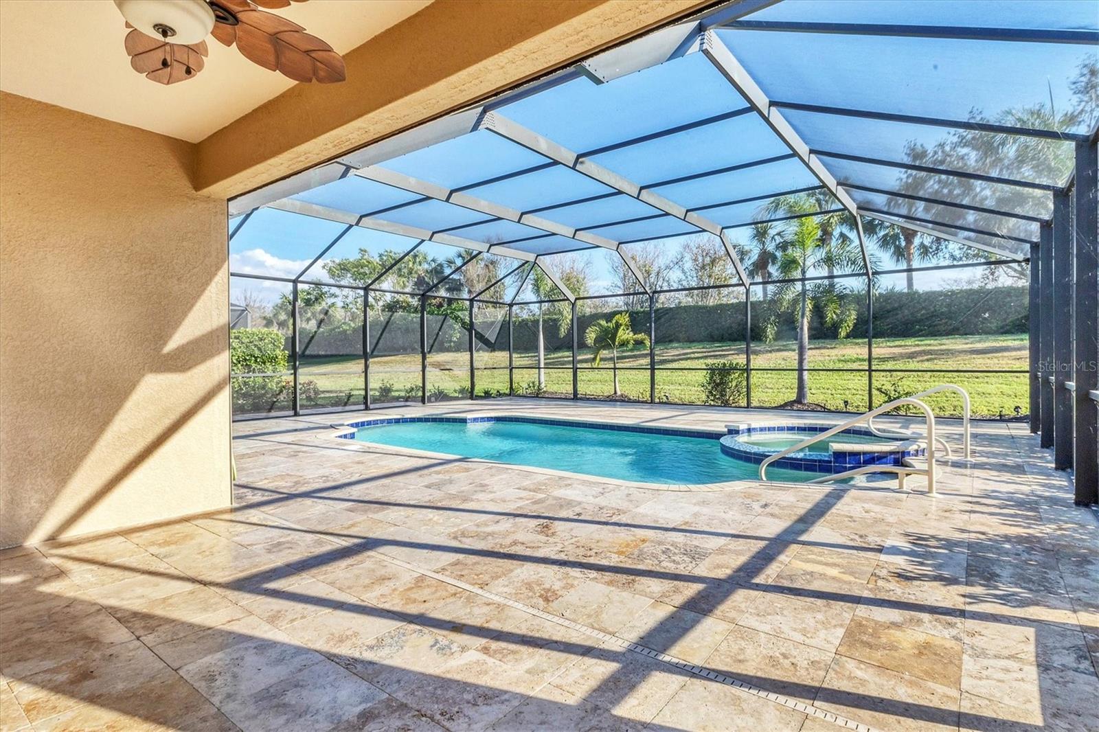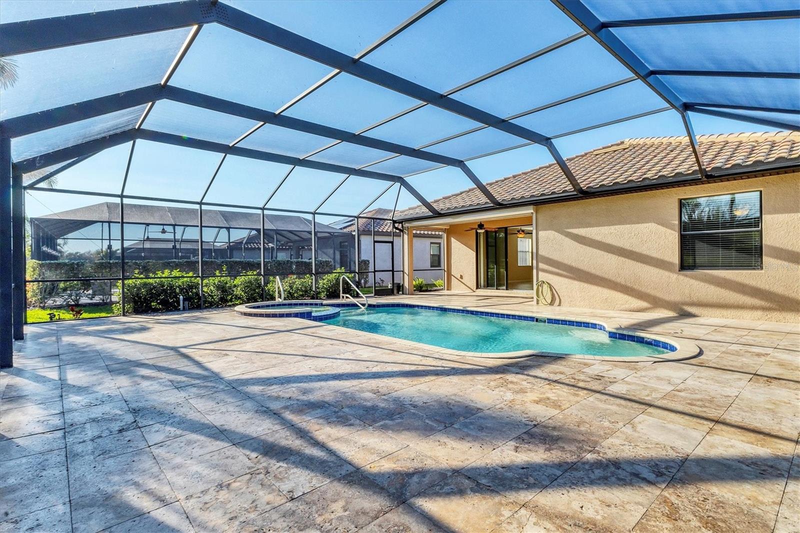 One or more photo(s) has been virtually staged. Welcome to this luxurious and meticulously maintained home in the highly sought-after gated community of The Sanctuary at River Strand Golf & Country Club. Located in one of the area’s most desirable neighborhoods, this spacious residence offers the popular Trevi floor plan, thoughtfully designed to provide an ideal balance of open-concept living and privacy. Featuring 4 generously-sized bedrooms and 3 full baths, this home is perfect for both family living and entertaining. The split-bedroom layout enhances privacy and functionality, with the 4th bedroom offering its own private ensuite, making it an excellent choice for guests, extended family, or a dedicated home office. The master suite serves as a true retreat, showcasing two walk-in closets and a spa-like ensuite with dual vanities, a soaking tub, and a walk-in shower, all designed for the ultimate relaxation experience. At the heart of the home lies the gourmet kitchen, fully equipped with stainless steel appliances, granite countertops, and custom solid wood cabinets. Whether you’re preparing a meal for yourself or hosting friends and family, the kitchen flows seamlessly into the family room and dining area, creating an inviting and functional space for both casual meals and formal gatherings. The home is also enhanced by upgraded finishes, including crown molding, ceiling fans, window blinds, and wall-to-wall tile flooring laid on the diagonal, giving the home a sleek, modern feel. Other thoughtful features include new screen entry, gutter system, and an energy-efficient solar power vent in the attic, providing you with long-term energy savings and peace of mind. Step outside and enjoy your very own private backyard oasis. The expansive pool deck (36' x 40') is beautifully finished with luxurious travertine tile, offering a serene space for outdoor dining, lounging, or entertaining guests. The oversized pool (2018) with spa has been upgraded with a Pebble Sheen finish, a Pentair salt system, a whisper-quiet variable-speed pump, and LED multi-color lighting with remote control, allowing you to tailor your poolside experience to your mood. Enjoy year-round swimming with both solar heating and a heat pump, ensuring perfect water temperature in every season. The spacious covered lanai (18' x 8') includes electronic hurricane screens, and provides the perfect setting to unwind with a glass of wine or enjoy the Florida sunshine. As a resident of River Strand, you'll have exclusive access to a wealth of amenities, including 8 pickleball courts, 9 Har-Tru tennis courts, resort-style pools, a well-appointed clubhouse with dining, fitness centers, and an active social calendar. With a 24-hour gated community for peace of mind, you'll enjoy the ultimate in convenience and security. Social members have the unique advantage of paying as you play on the renovated 27-hole golf course, designed by the renowned architect Andrew Green. This stunning home comes with the added benefit of a transferable Social Membership, all included in the affordable HOA fee, which also covers lawn care, yard maintenance, cable TV, internet service, and irrigation water. You can spend more time enjoying your surroundings and less time worrying about upkeep. Located just minutes from I-75, University Town Center, top-tier dining in Lakewood Ranch, and the pristine beaches! Life is what you live, style is how you live it! Don’t miss the opportunity to make this dream home yours. Schedule your showing today!