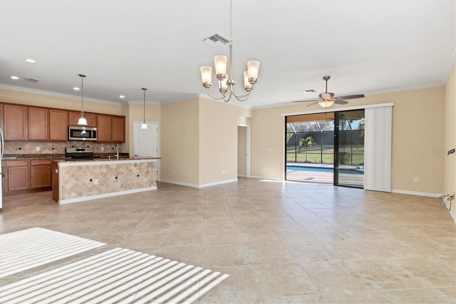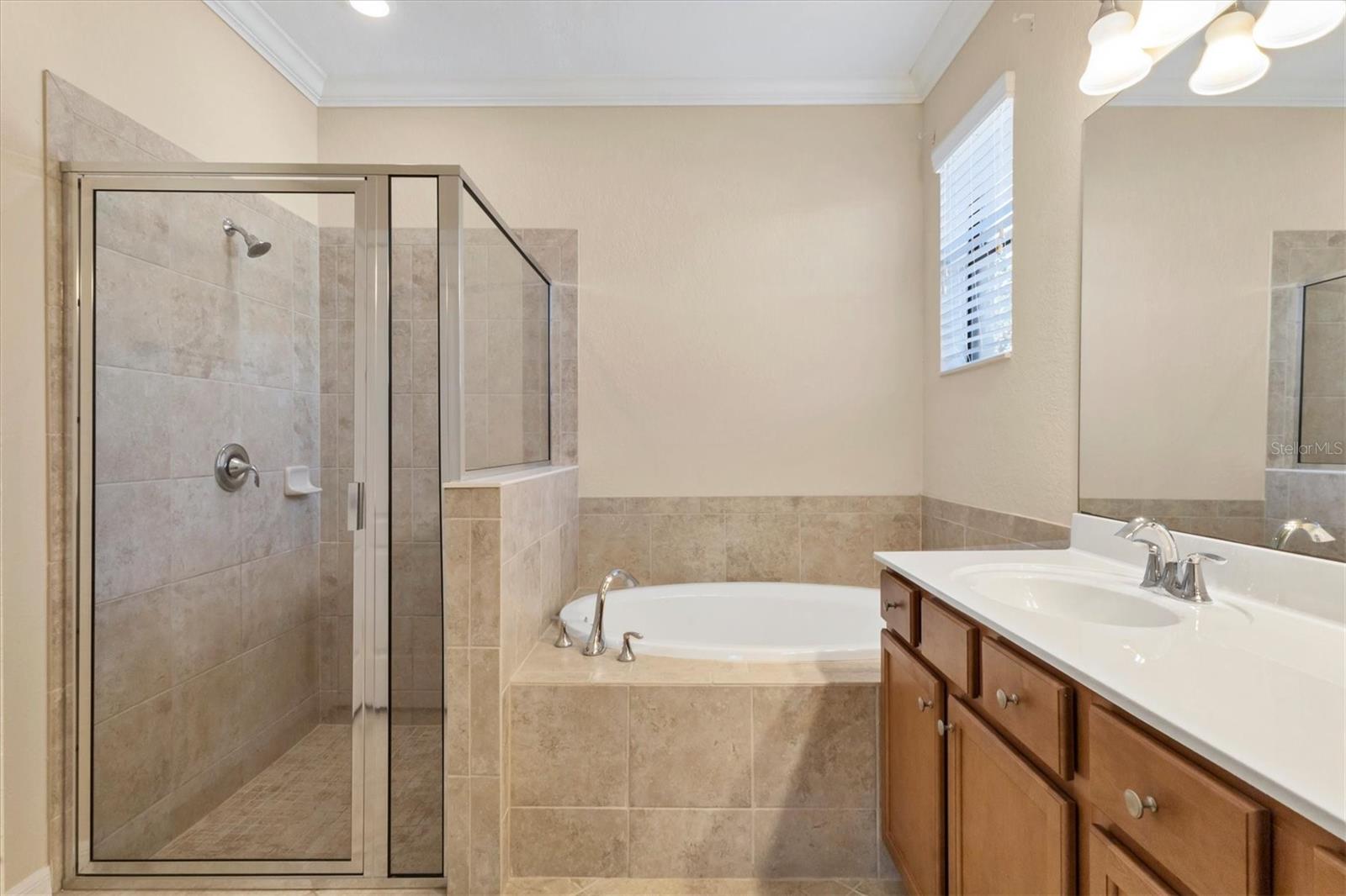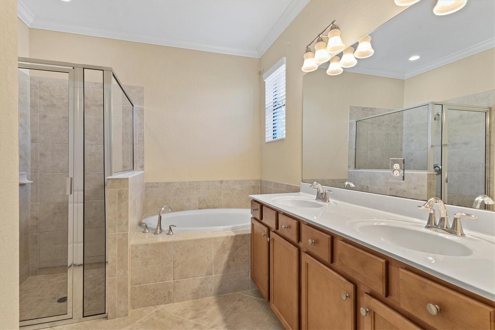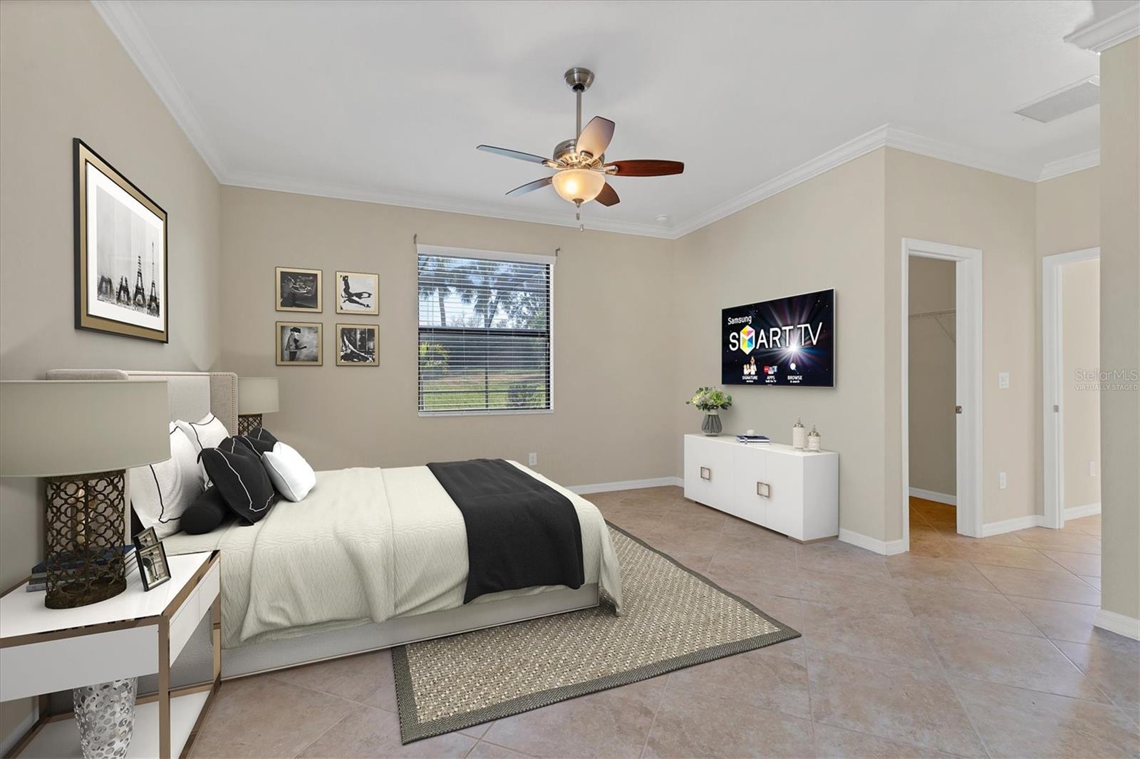 One or more photo(s) has been virtually staged. Welcome to this luxurious and meticulously maintained home in the highly sought-after gated community of The Sanctuary at River Strand Golf & Country Club. Located in one of the area’s most desirable neighborhoods, this spacious residence offers the popular Trevi floor plan, thoughtfully designed to provide an ideal balance of open-concept living and privacy. Featuring 4 generously-sized bedrooms and 3 full baths, this home is perfect for both family living and entertaining. The split-bedroom layout enhances privacy and functionality, with the 4th bedroom offering its own private ensuite, making it an excellent choice for guests, extended family, or a dedicated home office. The master suite serves as a true retreat, showcasing two walk-in closets and a spa-like ensuite with dual vanities, a soaking tub, and a walk-in shower, all designed for the ultimate relaxation experience. At the heart of the home lies the gourmet kitchen, fully equipped with stainless steel appliances, granite countertops, and custom solid wood cabinets. Whether you’re preparing a meal for yourself or hosting friends and family, the kitchen flows seamlessly into the family room and dining area, creating an inviting and functional space for both casual meals and formal gatherings. The home is also enhanced by upgraded finishes, including crown molding, ceiling fans, window blinds, and wall-to-wall tile flooring laid on the diagonal, giving the home a sleek, modern feel. Other thoughtful features include new screen entry, gutter system, and an energy-efficient solar power vent in the attic, providing you with long-term energy savings and peace of mind. Step outside and enjoy your very own private backyard oasis. The expansive pool deck (36' x 40') is beautifully finished with luxurious travertine tile, offering a serene space for outdoor dining, lounging, or entertaining guests. The oversized pool (2018) with spa has been upgraded with a Pebble Sheen finish, a Pentair salt system, a whisper-quiet variable-speed pump, and LED multi-color lighting with remote control, allowing you to tailor your poolside experience to your mood. Enjoy year-round swimming with both solar heating and a heat pump, ensuring perfect water temperature in every season. The spacious covered lanai (18' x 8') includes electronic hurricane screens, and provides the perfect setting to unwind with a glass of wine or enjoy the Florida sunshine. As a resident of River Strand, you'll have exclusive access to a wealth of amenities, including 8 pickleball courts, 9 Har-Tru tennis courts, resort-style pools, a well-appointed clubhouse with dining, fitness centers, and an active social calendar. With a 24-hour gated community for peace of mind, you'll enjoy the ultimate in convenience and security. Social members have the unique advantage of paying as you play on the renovated 27-hole golf course, designed by the renowned architect Andrew Green. This stunning home comes with the added benefit of a transferable Social Membership, all included in the affordable HOA fee, which also covers lawn care, yard maintenance, cable TV, internet service, and irrigation water. You can spend more time enjoying your surroundings and less time worrying about upkeep. Located just minutes from I-75, University Town Center, top-tier dining in Lakewood Ranch, and the pristine beaches! Life is what you live, style is how you live it! Don’t miss the opportunity to make this dream home yours. Schedule your showing today!