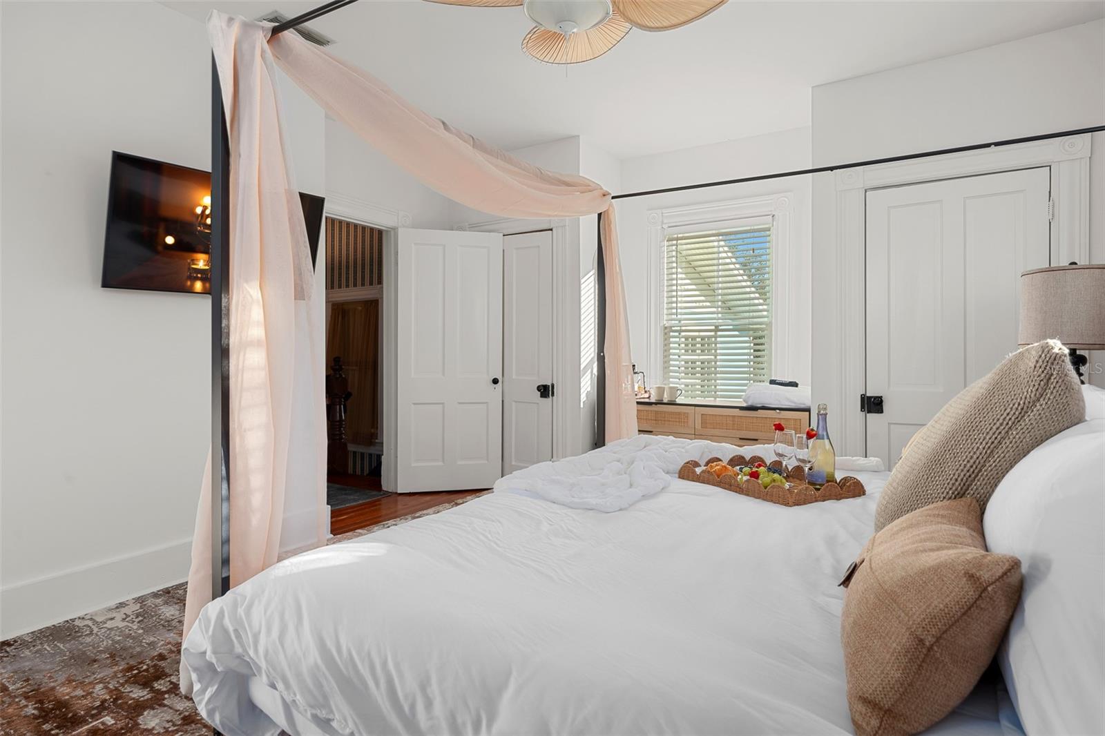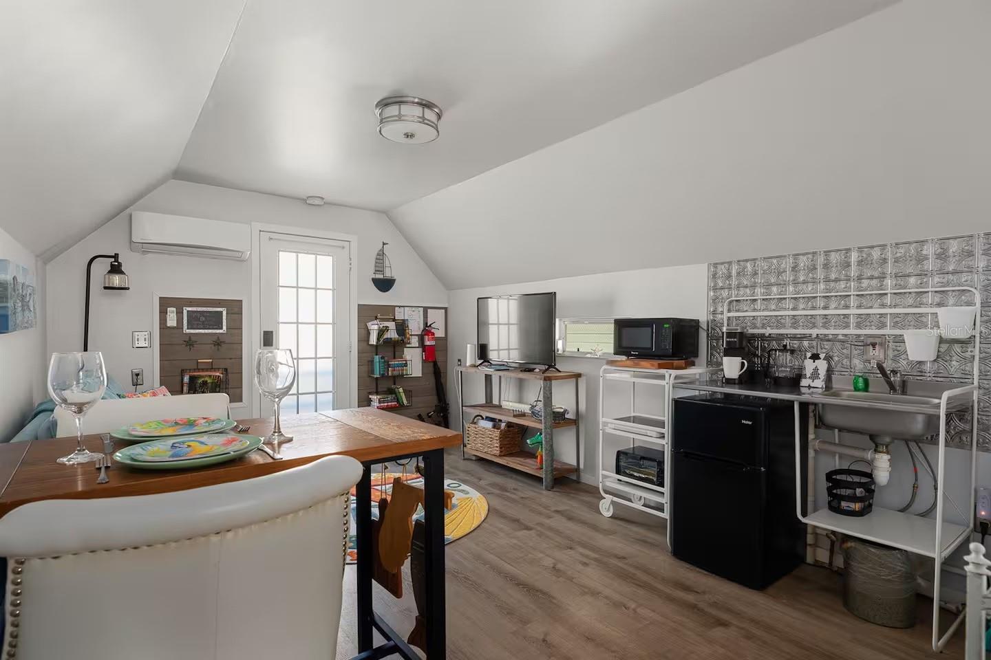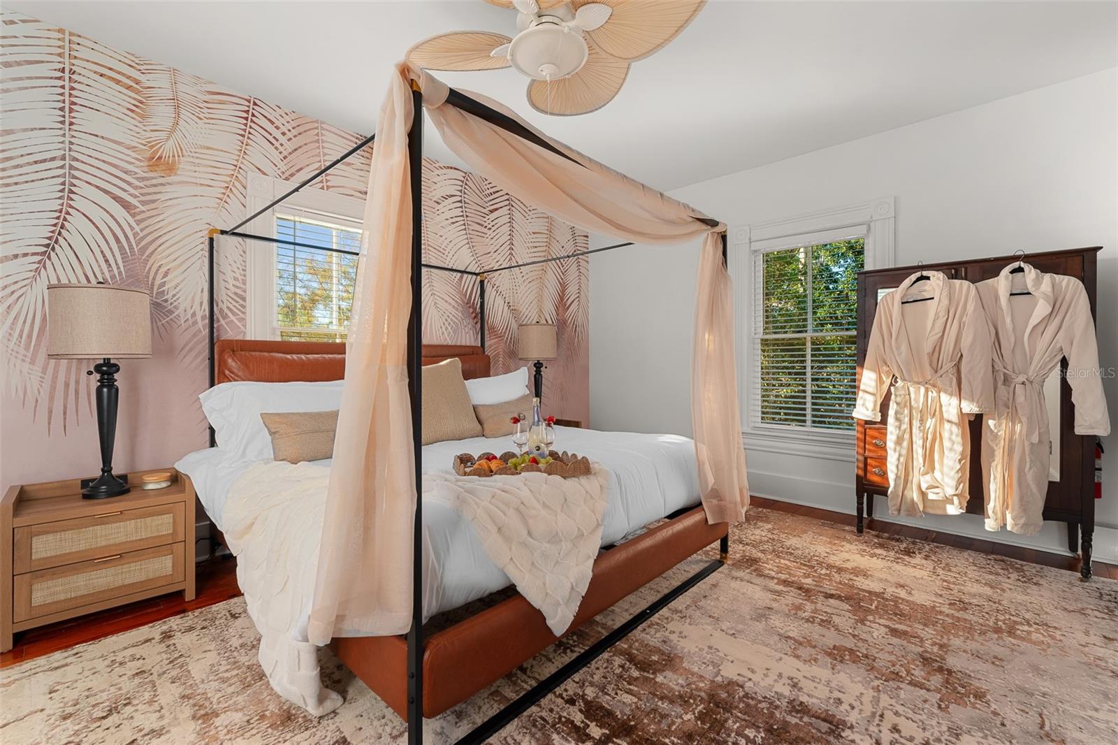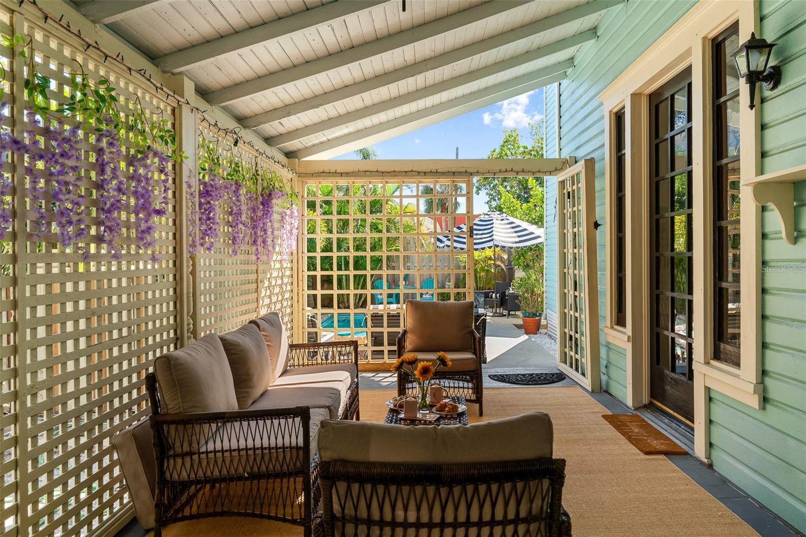 This absolutely stunning 1898 Queen Anne Victorian home located in the heart of Bradenton’s historic district offers a unique combination timeless elegance, modern luxury, and exceptional income potential as an active short-term rental. Just steps away from downtown’s lively restaurants, shops and entertainment, and a short drive to Anna Maria Island’s world-class beaches, this property is both an investor’s dream and a homeowner’s paradise. From the moment you arrive, the 508-square-foot wraparound porch invites you to slow down and soak in the charm, creating the perfect setting for morning coffee or evening cocktails. Step inside the main home and be transported to another era, where 2,773 square feet of exquisite craftsmanship shines through soaring ceilings, original wood floors, intricate woodwork, and leaded glass windows. The home boasts five spacious bedrooms, two beautifully updated bathrooms, and multiple living areas, including a grand formal dining room, a cozy sitting room and an elegant living room. For an extra touch of magic, guests and family will love the Harry Potter-themed game room, offering a unique and memorable experience for all ages. The newly refurbished chef’s kitchen features beautifully refinished cabinets with sleek quartz countertops. Fresh interior paint and mural wallpaper throughout bring this charming residence to life while essential updates such as a new roof in 2021 and new HVAC in 2017 provide piece of mind. But this property doesn’t stop there—included in the sale is a fully renovated, 350 square-foot carriage house above the detached garage, offering a fully furnished and turnkey additional living space with a full bath. Ideal for guests, in-laws, or extra rental income, this separate structure enhances the home’s appeal and versatility, all while bringing in an average of $48k in Airbnb income anually. Downstairs from the carriage house is a second laundry room, a convenient 1/2 bath with outdoor shower. With a total of 3,093 square feet of combined living space between the main home and carriage house, there is plenty of room for everyone. Outside, your private oasis awaits. Lounge by the heated saltwater pool, gather around the fire pit for s’mores on a cool evening, or enjoy drinks at the mini replica bar, the ultimate spot to entertain family and friends. Whether you're looking for a forever home steeped in history, a lucrative turnkey short-term rental, or a blend of both, this Victorian masterpiece offers a rare opportunity to own a piece of history with all the modern comforts. You don't want to miss out on this once in a lifetime opportunity so schedule your private showing today!