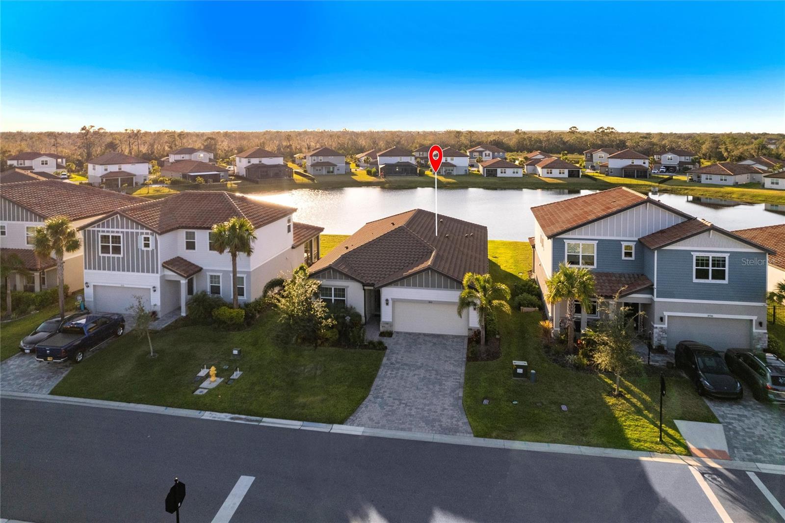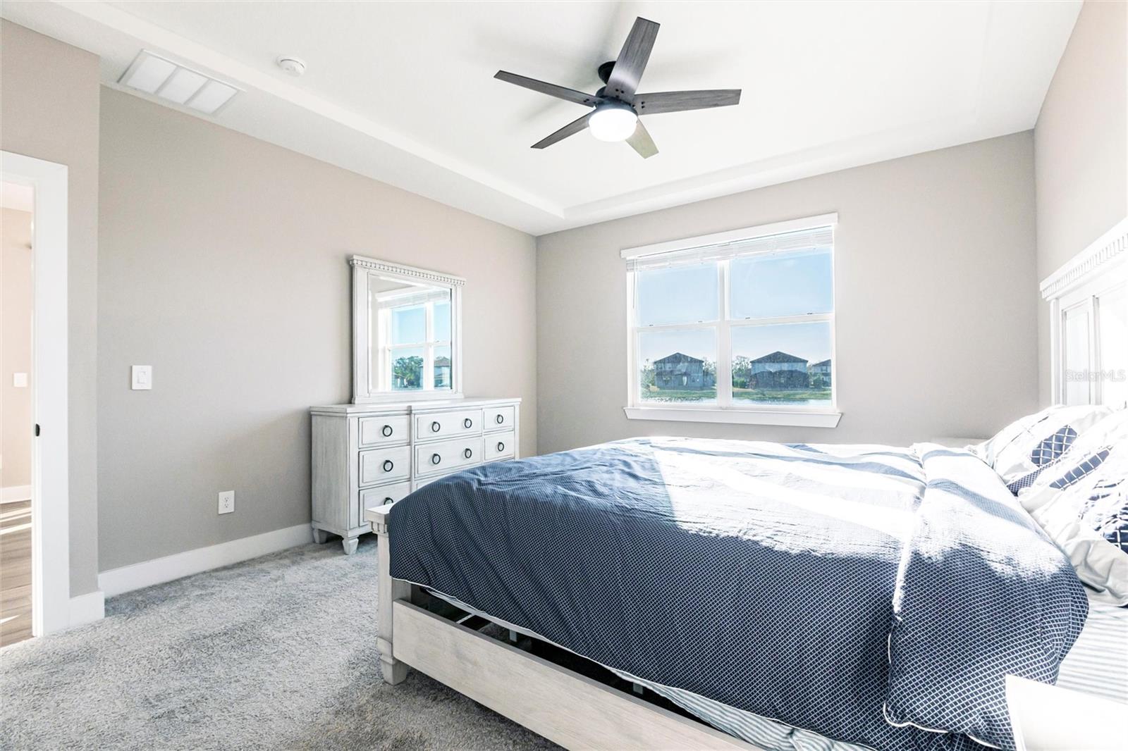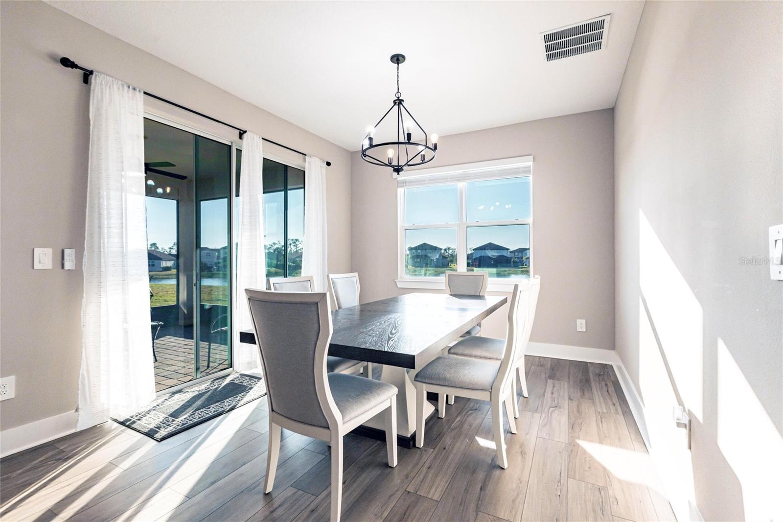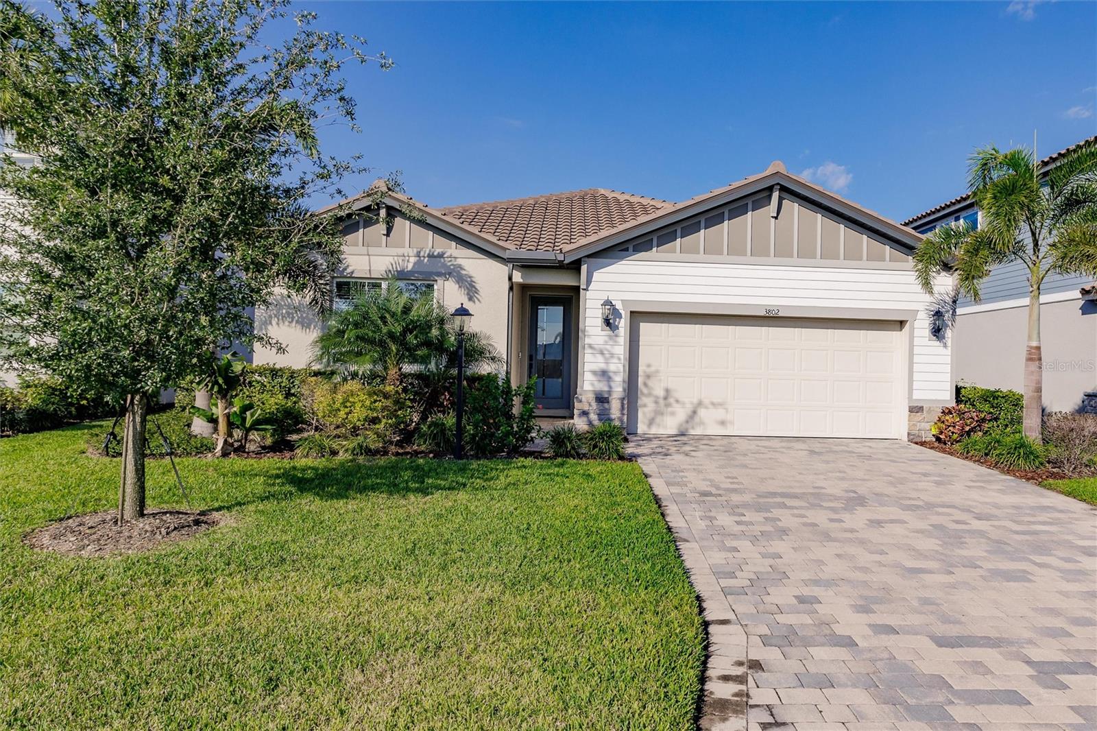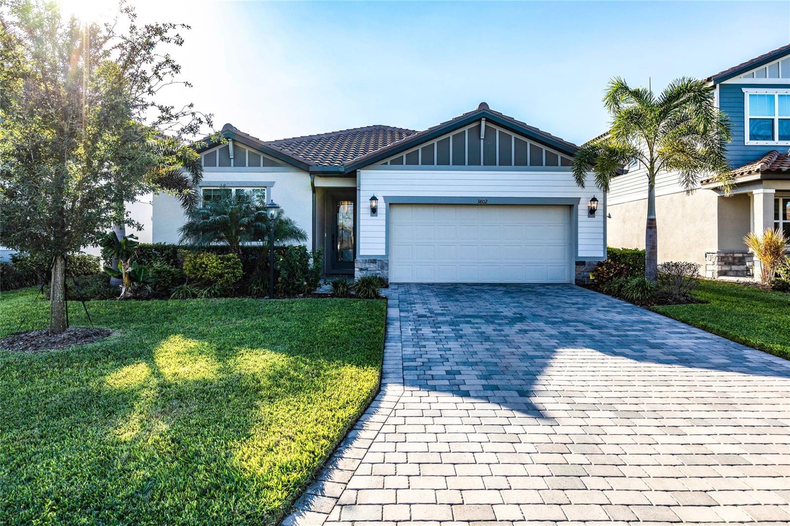 Welcome to 3802 Savanna Palms Ct in Lakewood Ranch—a thoughtfully updated 4-bedroom, 3-bathroom ranch-style home that artfully blends functionality with timeless appeal, located in the desirable Savanna neighborhood of Lakewood Ranch. Built in 2023, this ~2,200 square feet home is located on a large and stunning LAKE VIEW lot. As you approach this gorgeous home, you will find a manicured and landscaped front yard, along with newly installed gutters and downspouts. As you enter the front door, the eye is immediately drawn to its LUXURY PLANK FLOORING and upgraded fixtures and ceiling fans. Begin your day with a cup of coffee in the new PANASONIC COVERED & SCREENED LANAI, perfect for enjoying Florida's gentle breezes and this home's serenely peaceful water views. The PRIMARY SUITE is a sanctuary, complete with elegant tray ceilings, a large ensuite bathroom with a HUGE WALK-IN SHOWER and spacious walk-in closets. The home also features a well-designed layout that caters to both relaxed living and effortless entertaining in a LARGE UPGRADED KITCHEN. The owner will be selling the home inclusive of NEW STAINLESS STEEL APPLIANCES (new Samsung washer/dryer, and deluxe Whirlpool fridge/freezer). The home offers a sizable FOURTH BEDROOM, which gives households of all sizes the flexibility to use as a bedroom, office, gym or flex space. Ideally located in the desirable SAVANNA neighborhood, with unbeatable amenities and LOW HOA FEES, the property is conveniently close to all things Lakewood Ranch, including A+ schools, parks, trails, and amenities. Lakewood Ranch is more than just a community, it's a lifestyle! This home is just minutes from I-75, the downtowns of Sarasota, Tampa and St. Pete; the stunning beaches of Sarasota, Anna Maria, and Venice; and premier shopping and dining at UTC Mall and Waterside LWR. Discover the perfect balance of contemporary upgrades and classic charm at this Lakewood Ranch home—a space where every detail has been carefully considered for a comfortable, modern lifestyle.