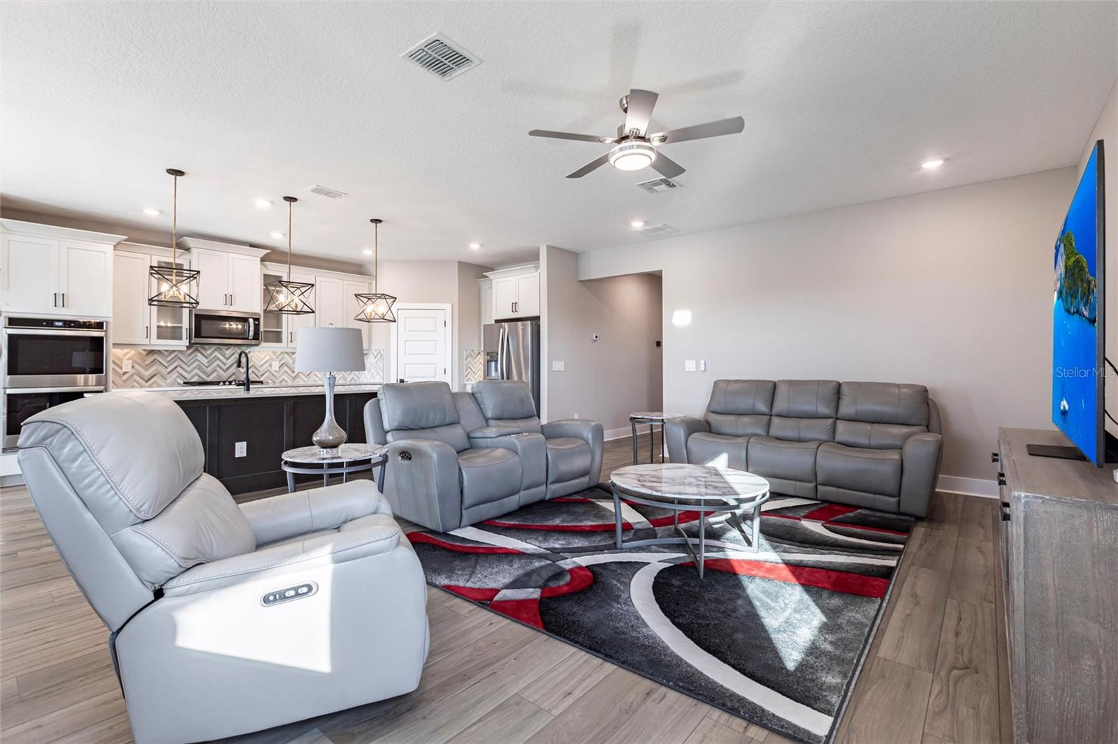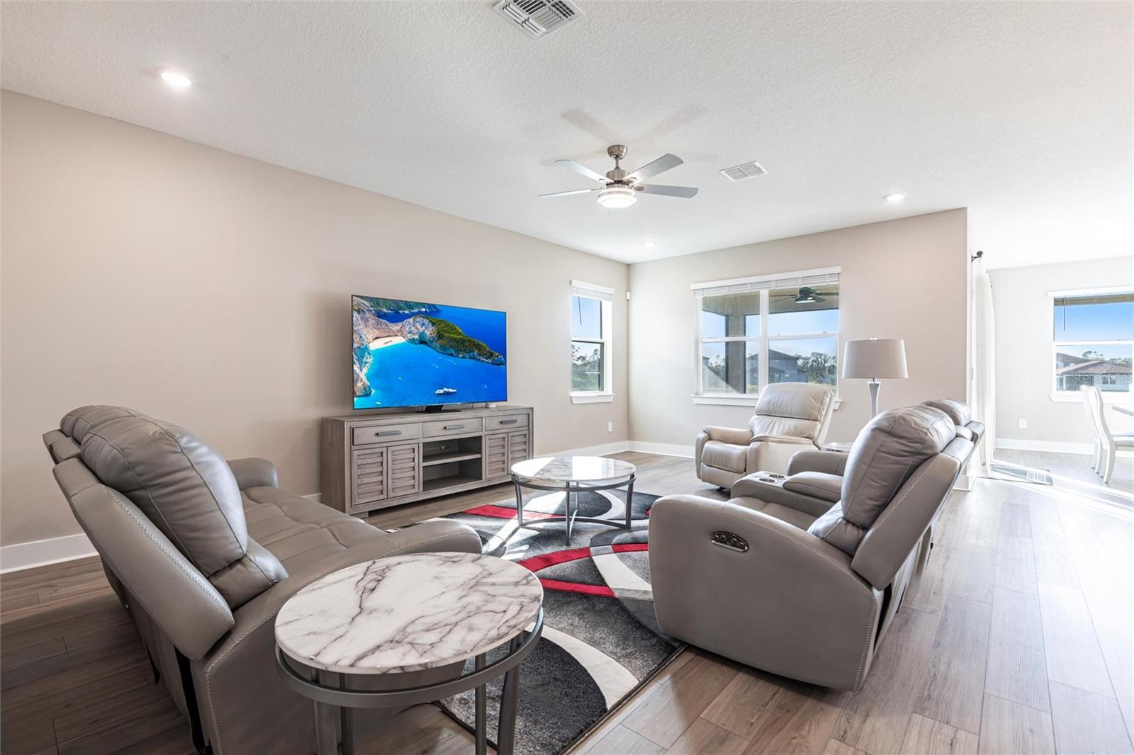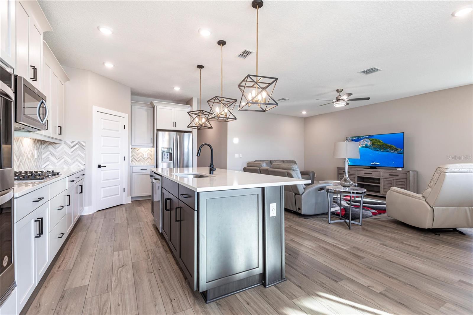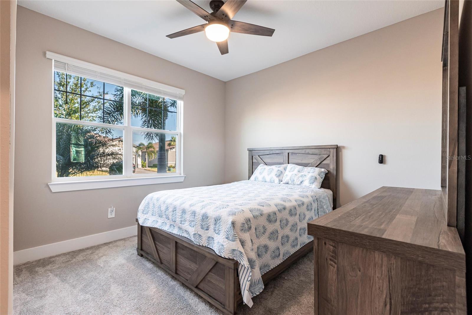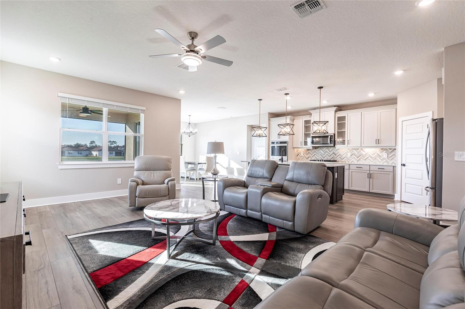 Welcome to 3802 Savanna Palms Ct in Lakewood Ranch—a thoughtfully updated 4-bedroom, 3-bathroom ranch-style home that artfully blends functionality with timeless appeal, located in the desirable Savanna neighborhood of Lakewood Ranch. Built in 2023, this ~2,200 square feet home is located on a large and stunning LAKE VIEW lot. As you approach this gorgeous home, you will find a manicured and landscaped front yard, along with newly installed gutters and downspouts. As you enter the front door, the eye is immediately drawn to its LUXURY PLANK FLOORING and upgraded fixtures and ceiling fans. Begin your day with a cup of coffee in the new PANASONIC COVERED & SCREENED LANAI, perfect for enjoying Florida's gentle breezes and this home's serenely peaceful water views. The PRIMARY SUITE is a sanctuary, complete with elegant tray ceilings, a large ensuite bathroom with a HUGE WALK-IN SHOWER and spacious walk-in closets. The home also features a well-designed layout that caters to both relaxed living and effortless entertaining in a LARGE UPGRADED KITCHEN. The owner will be selling the home inclusive of NEW STAINLESS STEEL APPLIANCES (new Samsung washer/dryer, and deluxe Whirlpool fridge/freezer). The home offers a sizable FOURTH BEDROOM, which gives households of all sizes the flexibility to use as a bedroom, office, gym or flex space. Ideally located in the desirable SAVANNA neighborhood, with unbeatable amenities and LOW HOA FEES, the property is conveniently close to all things Lakewood Ranch, including A+ schools, parks, trails, and amenities. Lakewood Ranch is more than just a community, it's a lifestyle! This home is just minutes from I-75, the downtowns of Sarasota, Tampa and St. Pete; the stunning beaches of Sarasota, Anna Maria, and Venice; and premier shopping and dining at UTC Mall and Waterside LWR. Discover the perfect balance of contemporary upgrades and classic charm at this Lakewood Ranch home—a space where every detail has been carefully considered for a comfortable, modern lifestyle.