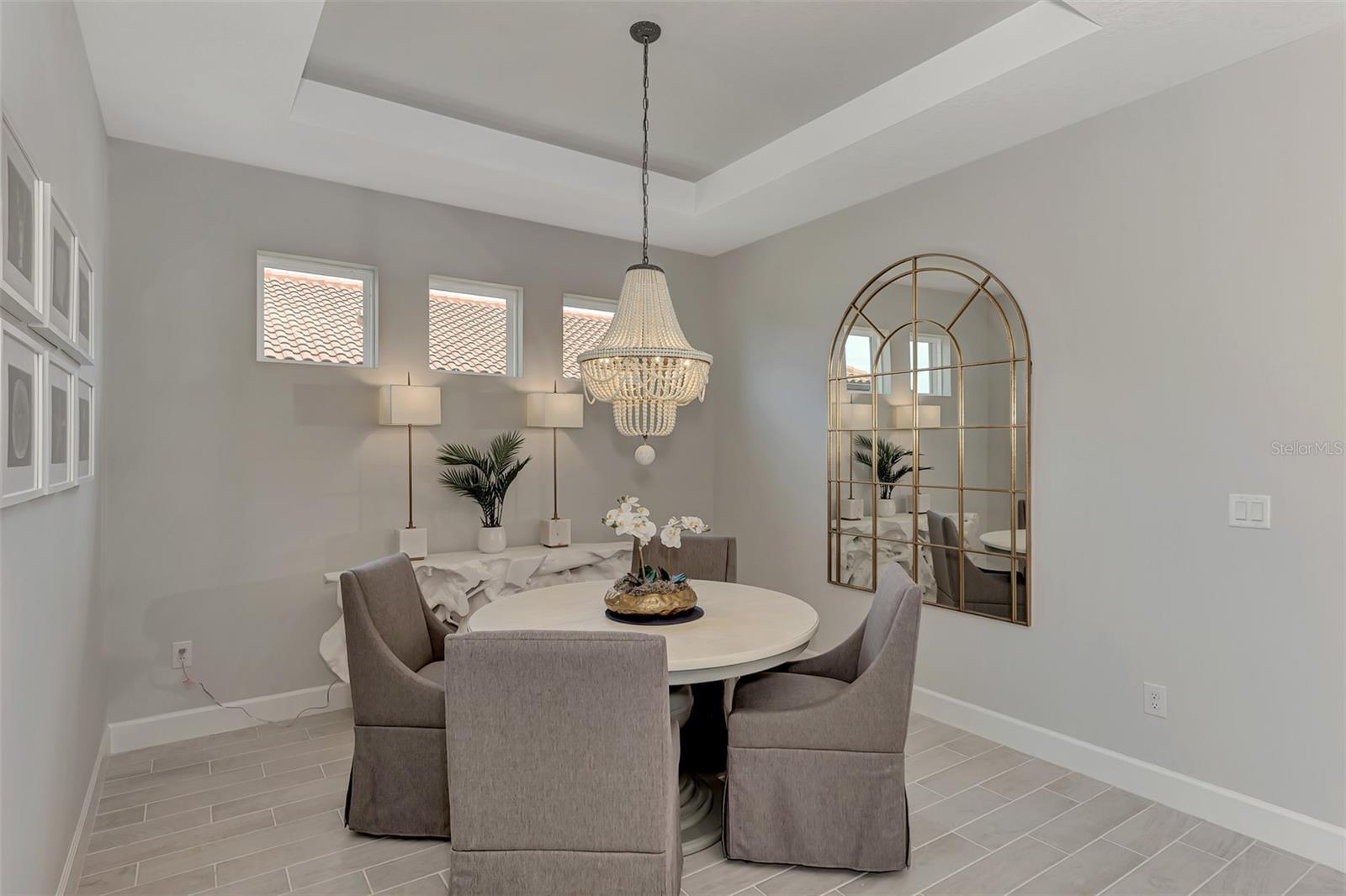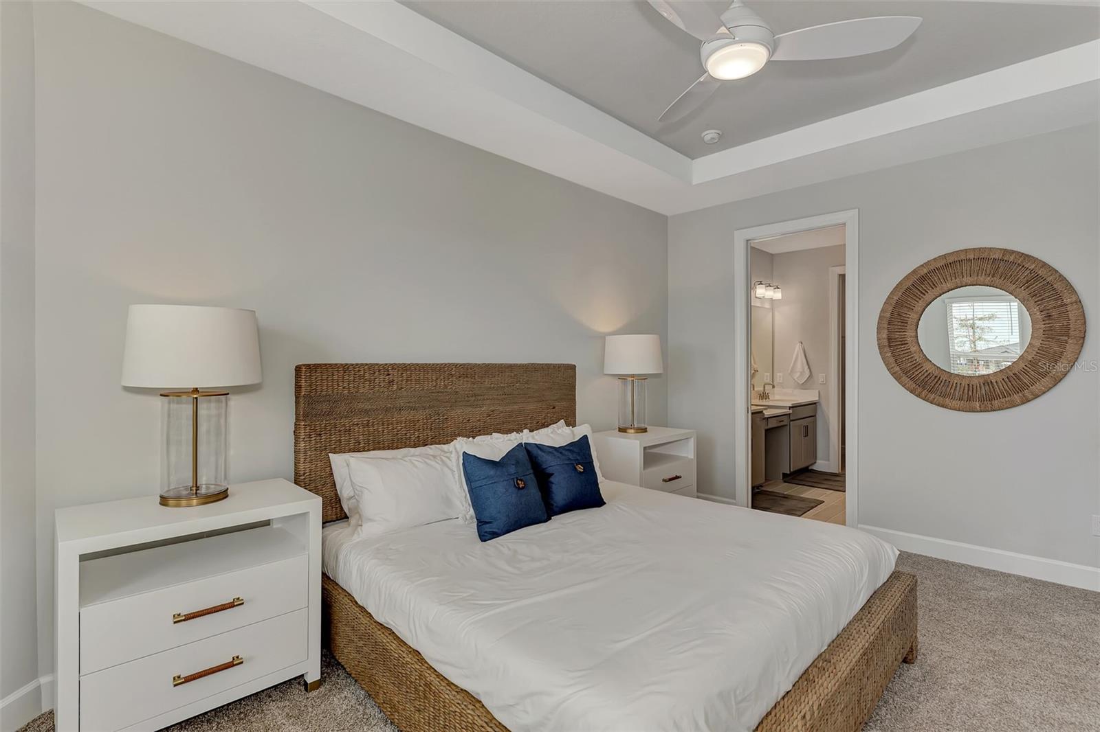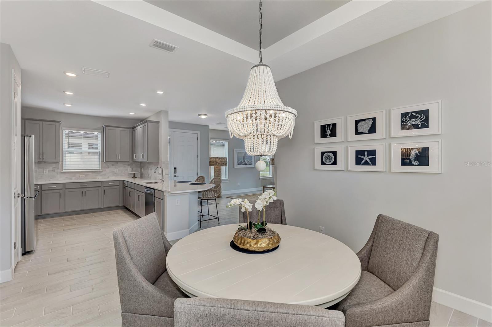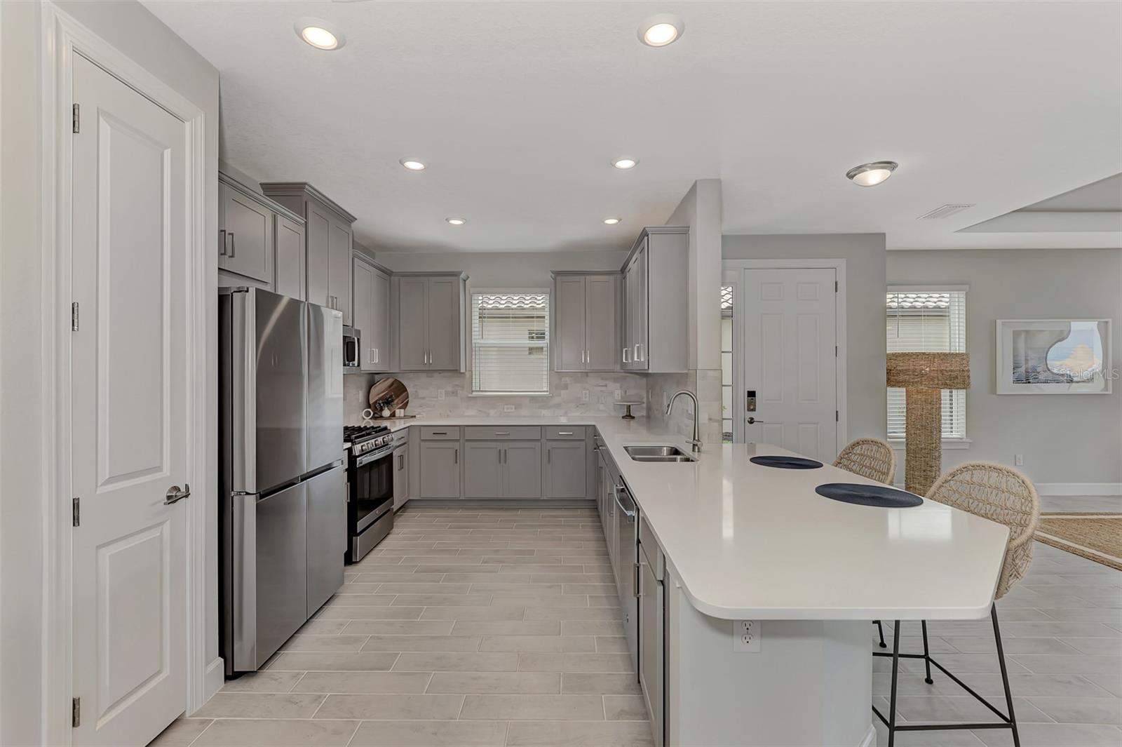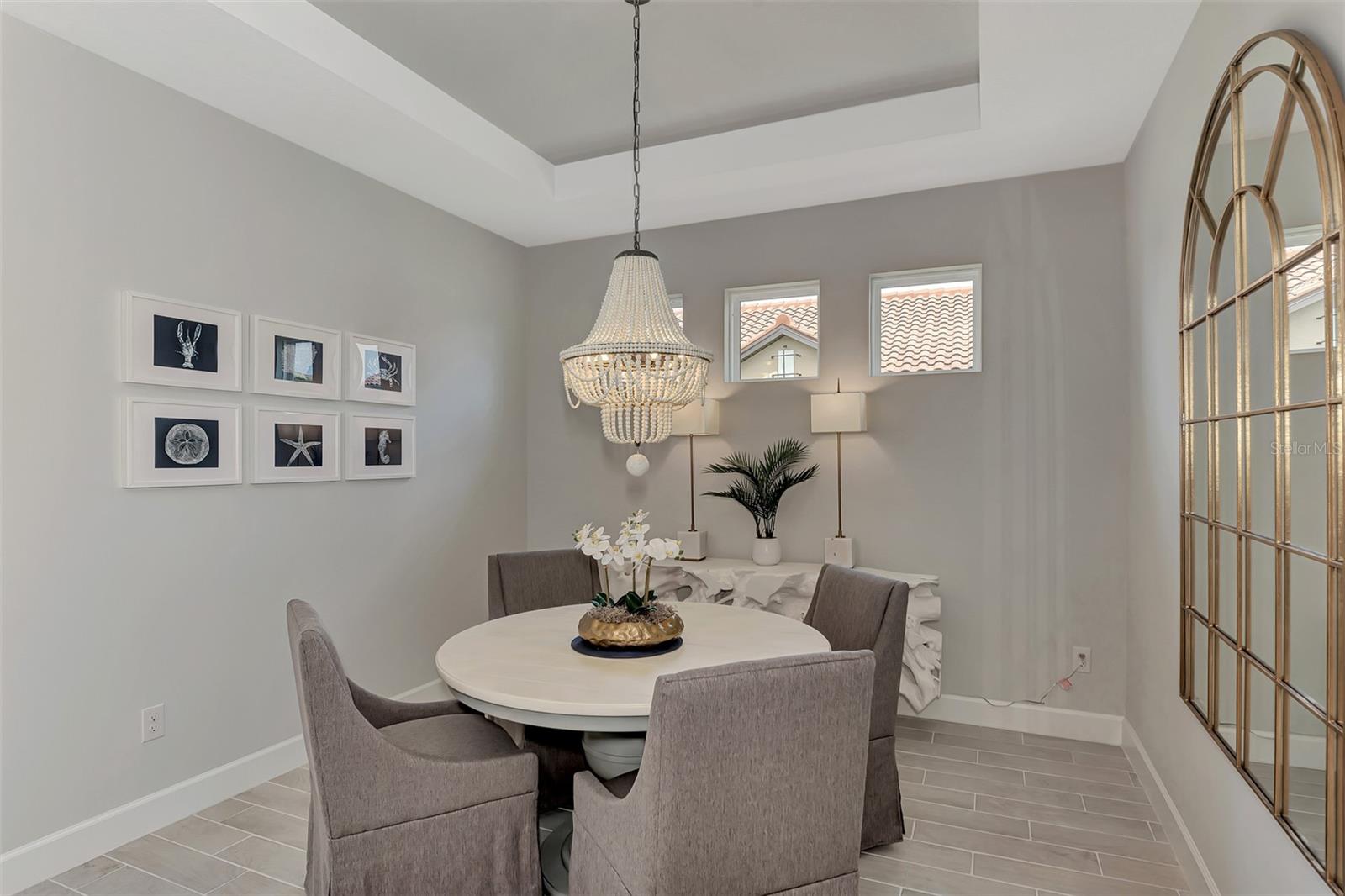 Welcome to this OVERSIZED HOMESITE, GOLF DEEDED WATERFRONT HOME (only one short-term four month rental ending 4/30/2025) turnkey furnished never-lived-in villa nestled in the serene, gated vibrant community of Esplanade at Azario in Lakewood Ranch where luxury meets convenience. This elegant and modern 2-bedroom/ 2-bath home with extended 2 car garage sits on an oversized lot with a gorgeous lake view. This home offers a spacious great room and den, providing the perfect blend of comfort and sophistication. Enjoy the opportunity of purchasing this professionally decorated (Katie Brandt Interiors) turn key home, just bring your suitcase and personal belongings. All the furniture and home items will be sold under a separate contract for $65,000. Upon entering, you are greeted by an open floor plan that seamlessly flows from the living area to the dining space, creating an inviting atmosphere for entertaining or relaxation. There are lots of windows with coffered ceilings in the living room and the master suite which makes this home feel open and light and brings the outside in. The designer kitchen boasts sleek, modern stainless-steel appliances, quartz countertops with ample counter space, making meal preparation a delight. The master suite offers a walk-in closet and a delightful bay window overlooking the lake. The master bath offers dual sinks with quartz countertops, vanity, and expansive walk-in shower. On the other side of the home is the 2nd bedroom with walk-in closet and full bath with quartz countertops. The den offers a pull-out queen sofa bed which can serve as an extra bedroom for guests. The inside laundry room provides plenty of storage space along with laundry sink. Step outside to the extended screened lanai, where you can savor tranquil moments with a cup of coffee or a good book, surrounded by the lush landscaping and gentle Florida breezes with a lake view. The property's large lot provides ample space for outdoor enjoyment. Azario is well known for being very social and active you will also love the NEW CULINARY EXPERIENCE as they have now completed the building. You are walking distance to the golf pro shop and the Bahama pool and clubhouse and Culinary building which is perfect for getting to know your neighbors. Located within a gated community, residents of this exquisite villa have access to the clubhouse, state-of-the-art fitness center, resort-style pool, tennis and pickleball courts, 18-hole golf state-of-the-art golf course including a water driving range, offering a myriad of recreational and leisure opportunities. With its modern design, spacious layout, and access to a host of amenities, this home offers the perfect blend of elegance and comfort making this delightful villa at 16119 Fortezza Drive a rare opportunity for those seeking a tranquil and luxurious lifestyle in Lakewood Ranch. COME SEE THIS HOME TODAY.