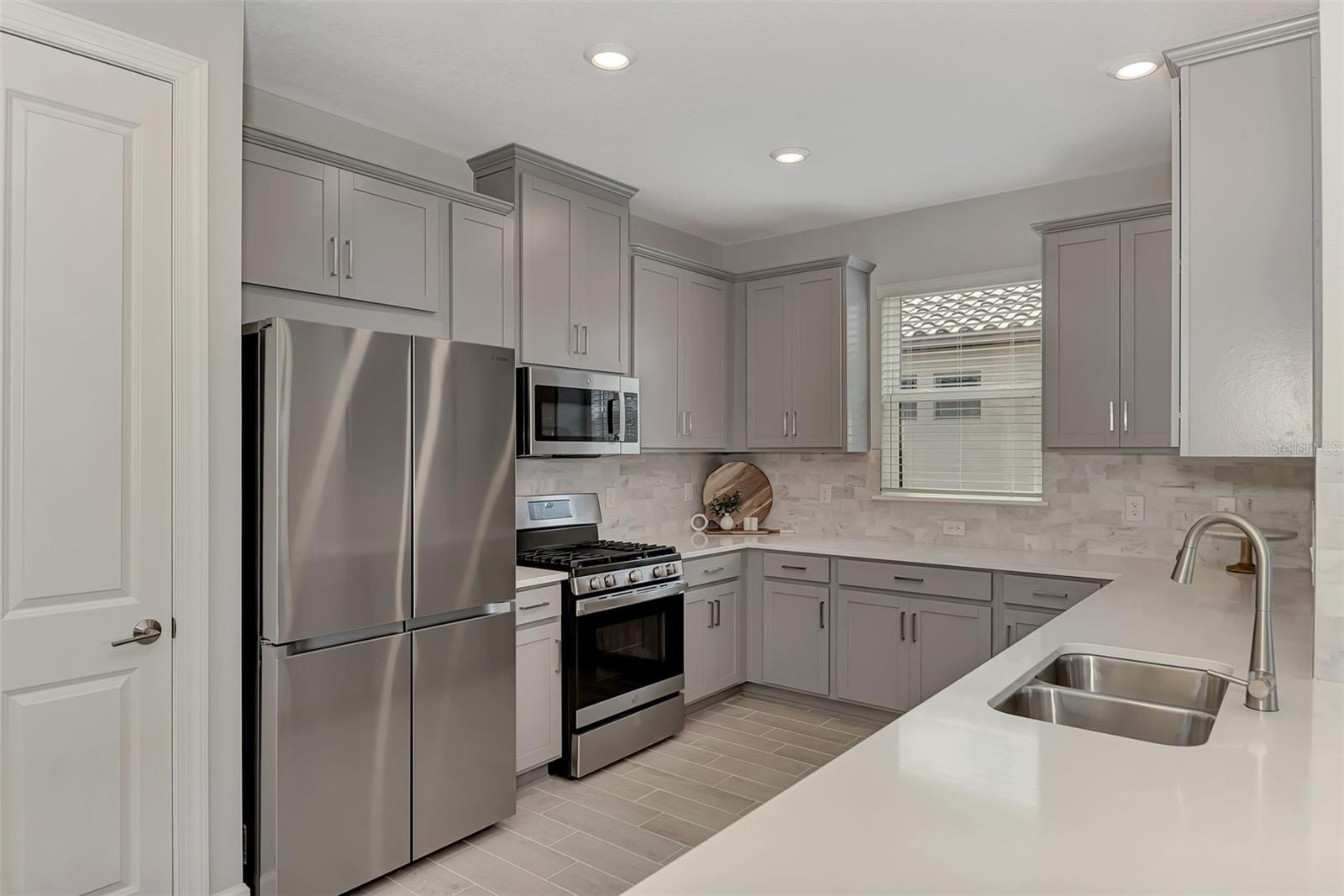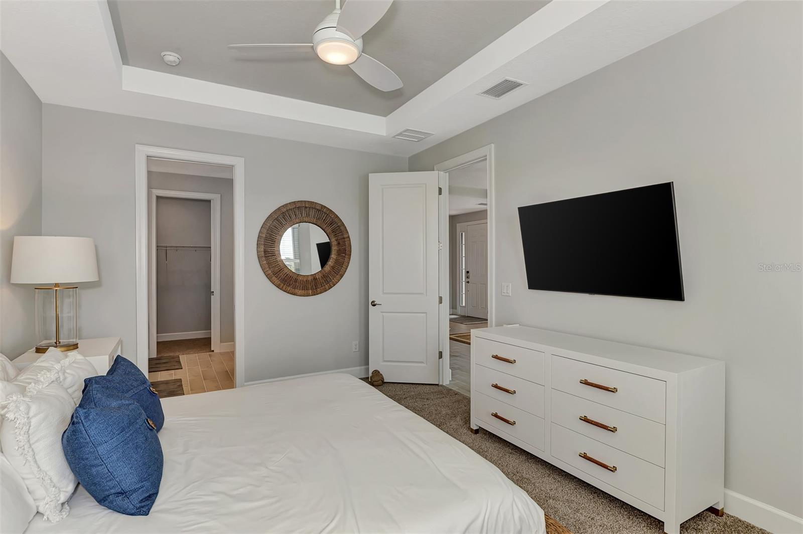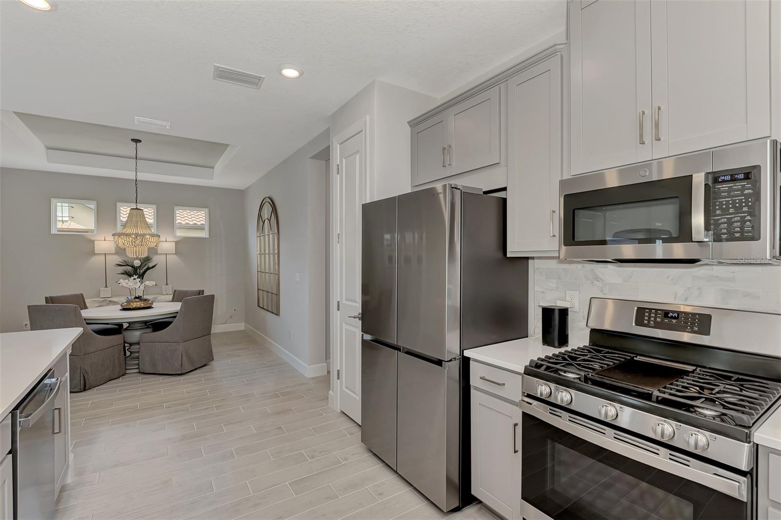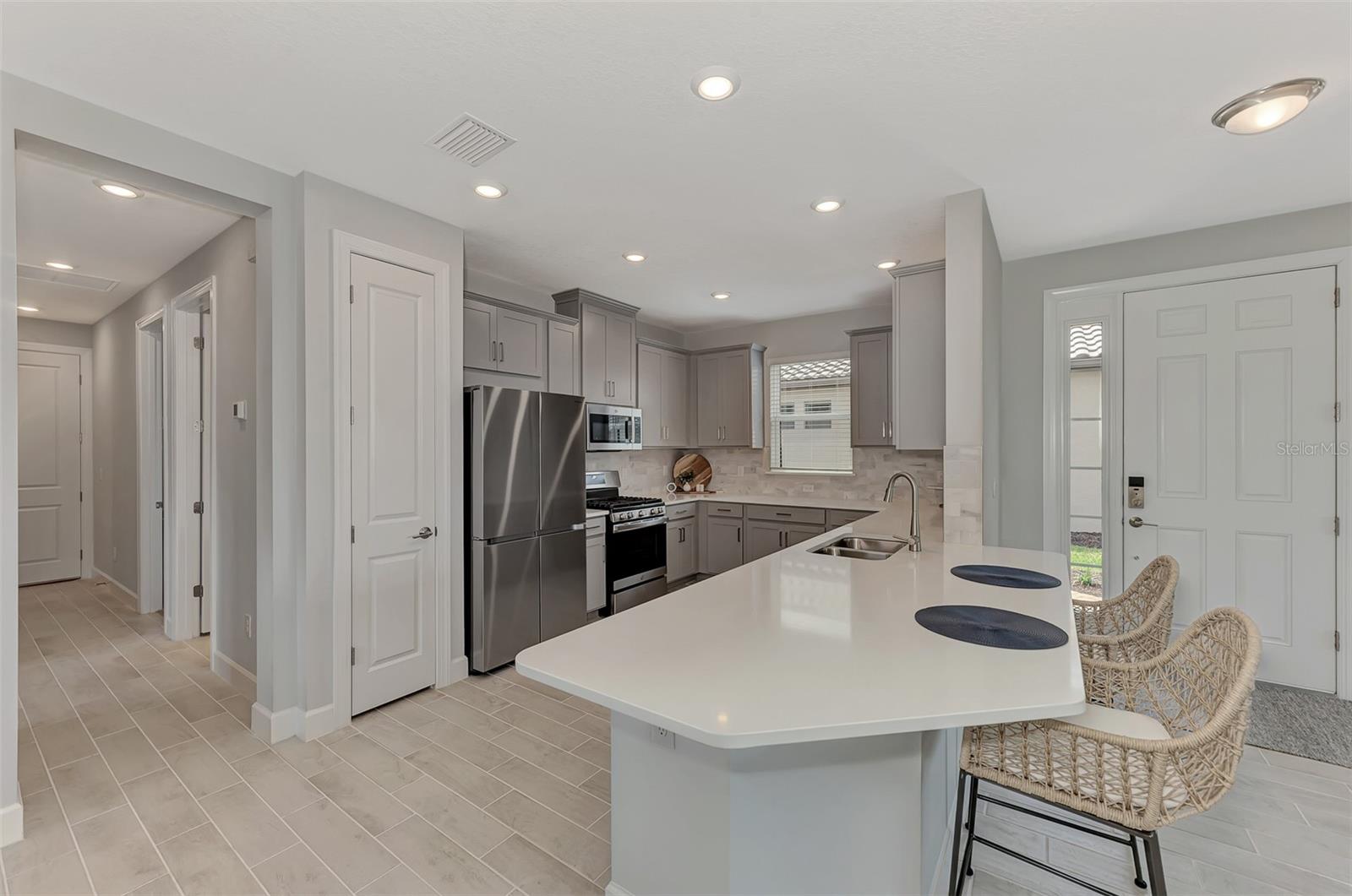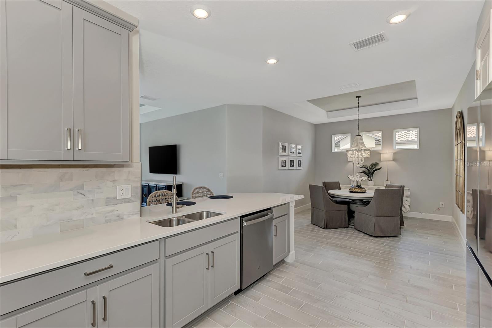 Welcome to this OVERSIZED HOMESITE, GOLF DEEDED WATERFRONT HOME (only one short-term four month rental ending 4/30/2025) turnkey furnished never-lived-in villa nestled in the serene, gated vibrant community of Esplanade at Azario in Lakewood Ranch where luxury meets convenience. This elegant and modern 2-bedroom/ 2-bath home with extended 2 car garage sits on an oversized lot with a gorgeous lake view. This home offers a spacious great room and den, providing the perfect blend of comfort and sophistication. Enjoy the opportunity of purchasing this professionally decorated (Katie Brandt Interiors) turn key home, just bring your suitcase and personal belongings. All the furniture and home items will be sold under a separate contract for $65,000. Upon entering, you are greeted by an open floor plan that seamlessly flows from the living area to the dining space, creating an inviting atmosphere for entertaining or relaxation. There are lots of windows with coffered ceilings in the living room and the master suite which makes this home feel open and light and brings the outside in. The designer kitchen boasts sleek, modern stainless-steel appliances, quartz countertops with ample counter space, making meal preparation a delight. The master suite offers a walk-in closet and a delightful bay window overlooking the lake. The master bath offers dual sinks with quartz countertops, vanity, and expansive walk-in shower. On the other side of the home is the 2nd bedroom with walk-in closet and full bath with quartz countertops. The den offers a pull-out queen sofa bed which can serve as an extra bedroom for guests. The inside laundry room provides plenty of storage space along with laundry sink. Step outside to the extended screened lanai, where you can savor tranquil moments with a cup of coffee or a good book, surrounded by the lush landscaping and gentle Florida breezes with a lake view. The property's large lot provides ample space for outdoor enjoyment. Azario is well known for being very social and active you will also love the NEW CULINARY EXPERIENCE as they have now completed the building. You are walking distance to the golf pro shop and the Bahama pool and clubhouse and Culinary building which is perfect for getting to know your neighbors. Located within a gated community, residents of this exquisite villa have access to the clubhouse, state-of-the-art fitness center, resort-style pool, tennis and pickleball courts, 18-hole golf state-of-the-art golf course including a water driving range, offering a myriad of recreational and leisure opportunities. With its modern design, spacious layout, and access to a host of amenities, this home offers the perfect blend of elegance and comfort making this delightful villa at 16119 Fortezza Drive a rare opportunity for those seeking a tranquil and luxurious lifestyle in Lakewood Ranch. COME SEE THIS HOME TODAY.