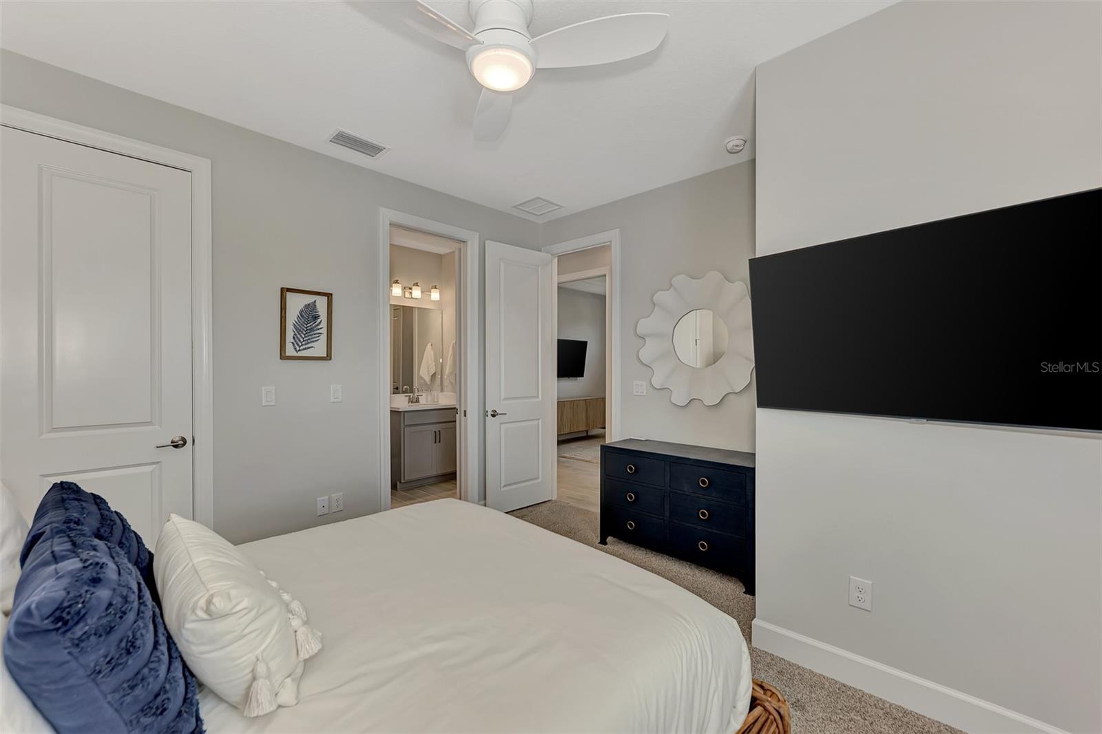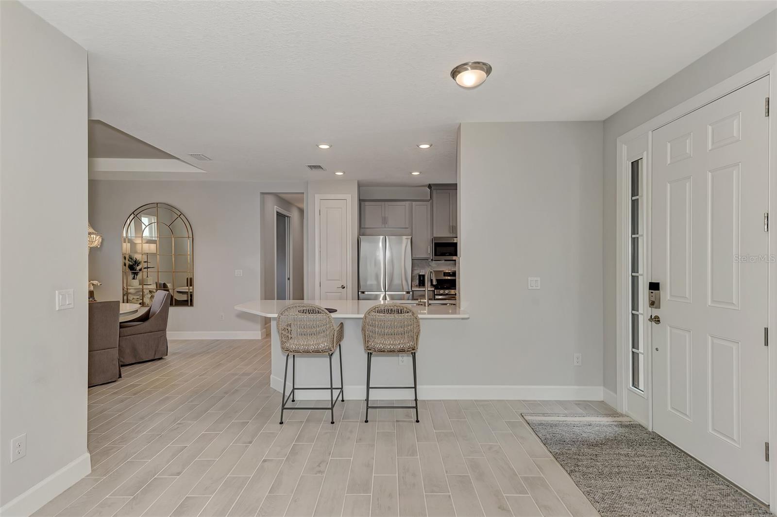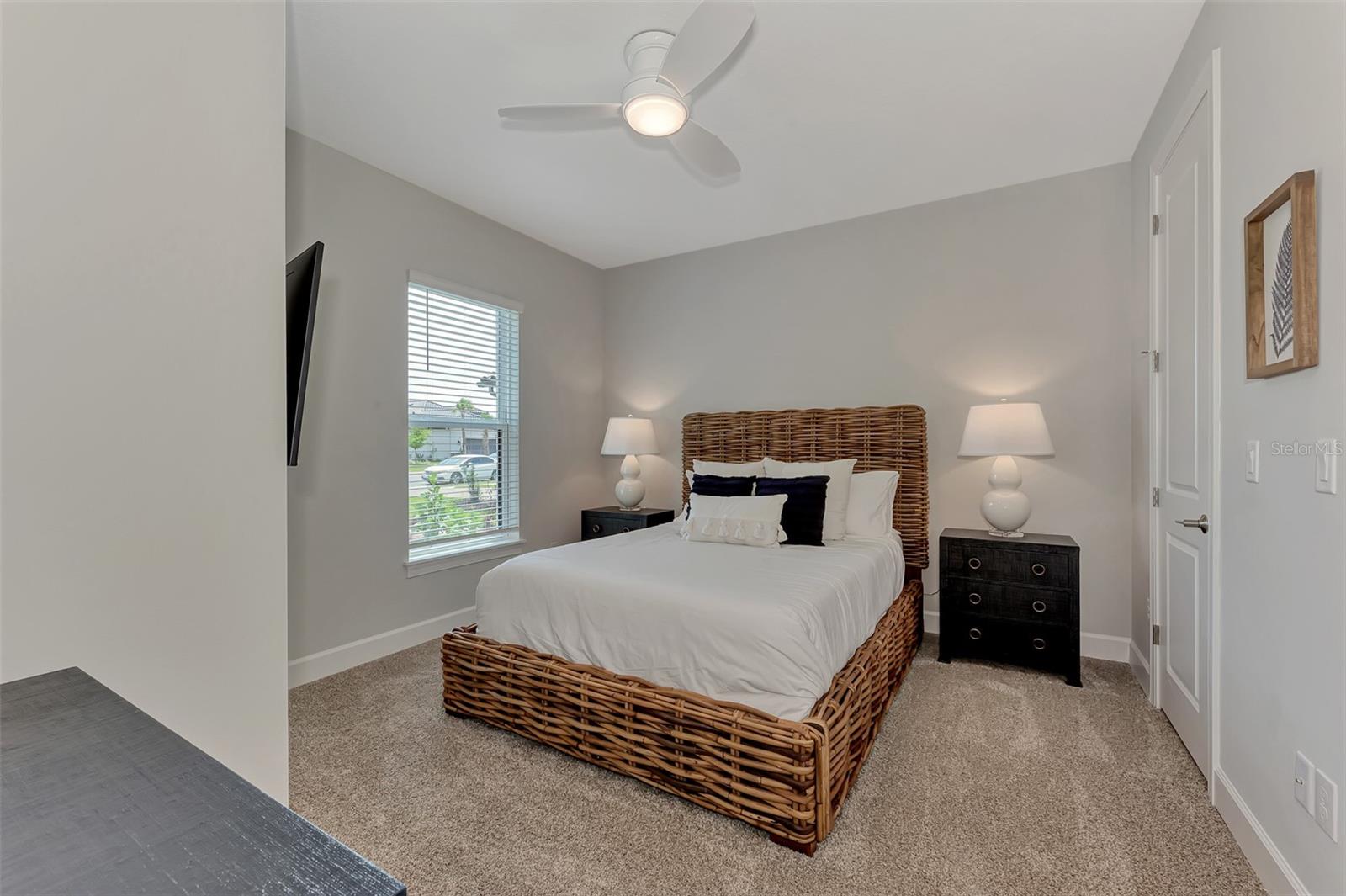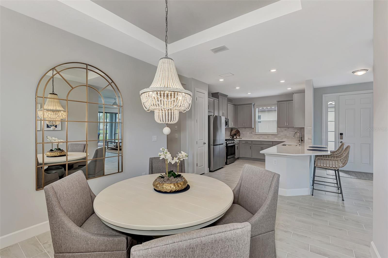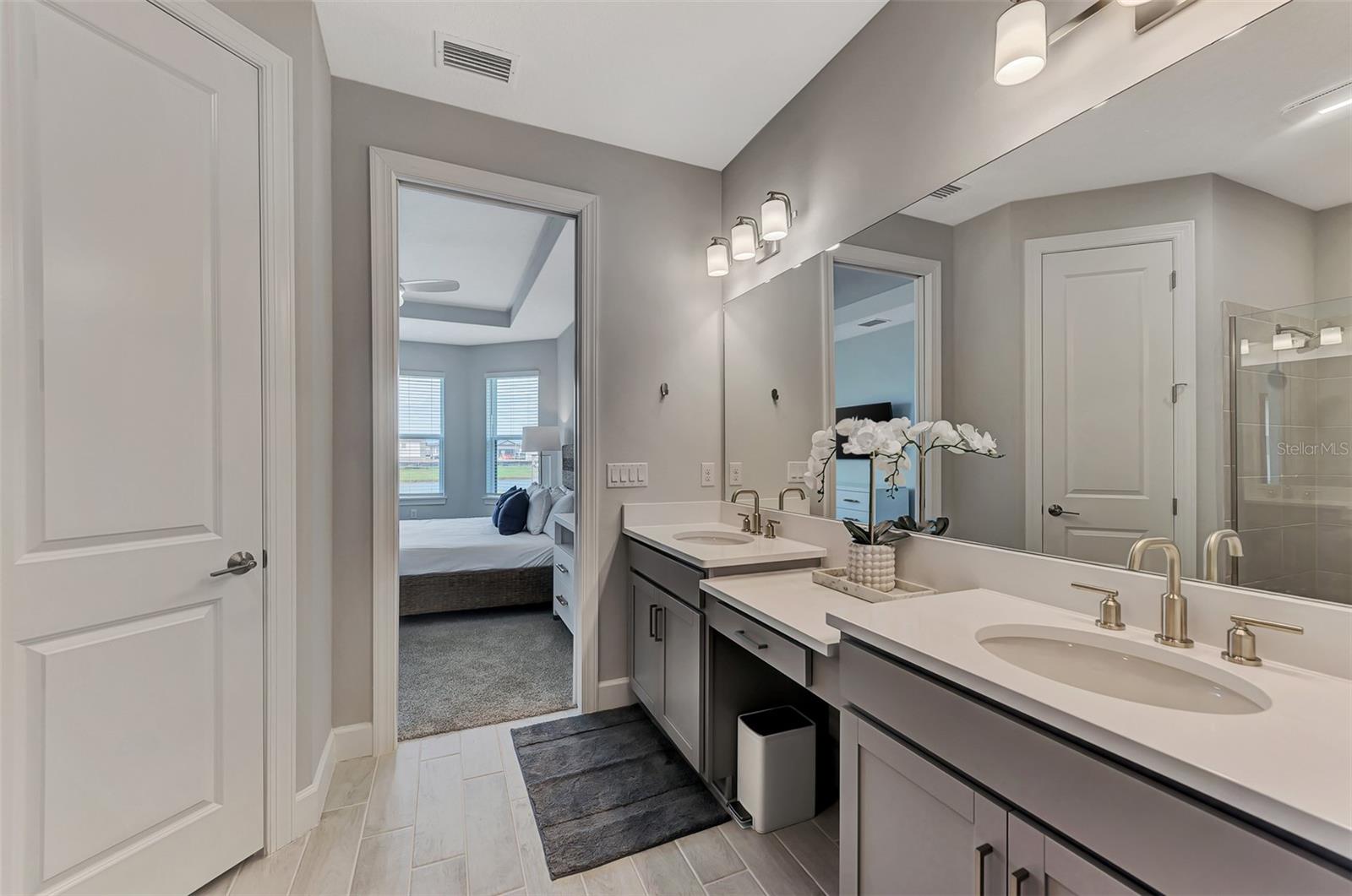 Welcome to this OVERSIZED HOMESITE, GOLF DEEDED WATERFRONT HOME (only one short-term four month rental ending 4/30/2025) turnkey furnished never-lived-in villa nestled in the serene, gated vibrant community of Esplanade at Azario in Lakewood Ranch where luxury meets convenience. This elegant and modern 2-bedroom/ 2-bath home with extended 2 car garage sits on an oversized lot with a gorgeous lake view. This home offers a spacious great room and den, providing the perfect blend of comfort and sophistication. Enjoy the opportunity of purchasing this professionally decorated (Katie Brandt Interiors) turn key home, just bring your suitcase and personal belongings. All the furniture and home items will be sold under a separate contract for $65,000. Upon entering, you are greeted by an open floor plan that seamlessly flows from the living area to the dining space, creating an inviting atmosphere for entertaining or relaxation. There are lots of windows with coffered ceilings in the living room and the master suite which makes this home feel open and light and brings the outside in. The designer kitchen boasts sleek, modern stainless-steel appliances, quartz countertops with ample counter space, making meal preparation a delight. The master suite offers a walk-in closet and a delightful bay window overlooking the lake. The master bath offers dual sinks with quartz countertops, vanity, and expansive walk-in shower. On the other side of the home is the 2nd bedroom with walk-in closet and full bath with quartz countertops. The den offers a pull-out queen sofa bed which can serve as an extra bedroom for guests. The inside laundry room provides plenty of storage space along with laundry sink. Step outside to the extended screened lanai, where you can savor tranquil moments with a cup of coffee or a good book, surrounded by the lush landscaping and gentle Florida breezes with a lake view. The property's large lot provides ample space for outdoor enjoyment. Azario is well known for being very social and active you will also love the NEW CULINARY EXPERIENCE as they have now completed the building. You are walking distance to the golf pro shop and the Bahama pool and clubhouse and Culinary building which is perfect for getting to know your neighbors. Located within a gated community, residents of this exquisite villa have access to the clubhouse, state-of-the-art fitness center, resort-style pool, tennis and pickleball courts, 18-hole golf state-of-the-art golf course including a water driving range, offering a myriad of recreational and leisure opportunities. With its modern design, spacious layout, and access to a host of amenities, this home offers the perfect blend of elegance and comfort making this delightful villa at 16119 Fortezza Drive a rare opportunity for those seeking a tranquil and luxurious lifestyle in Lakewood Ranch. COME SEE THIS HOME TODAY.