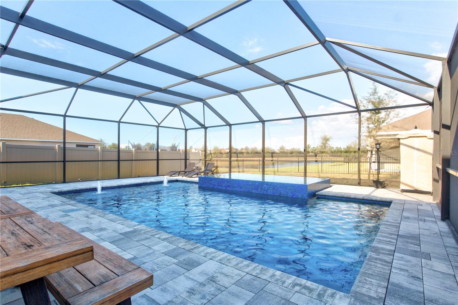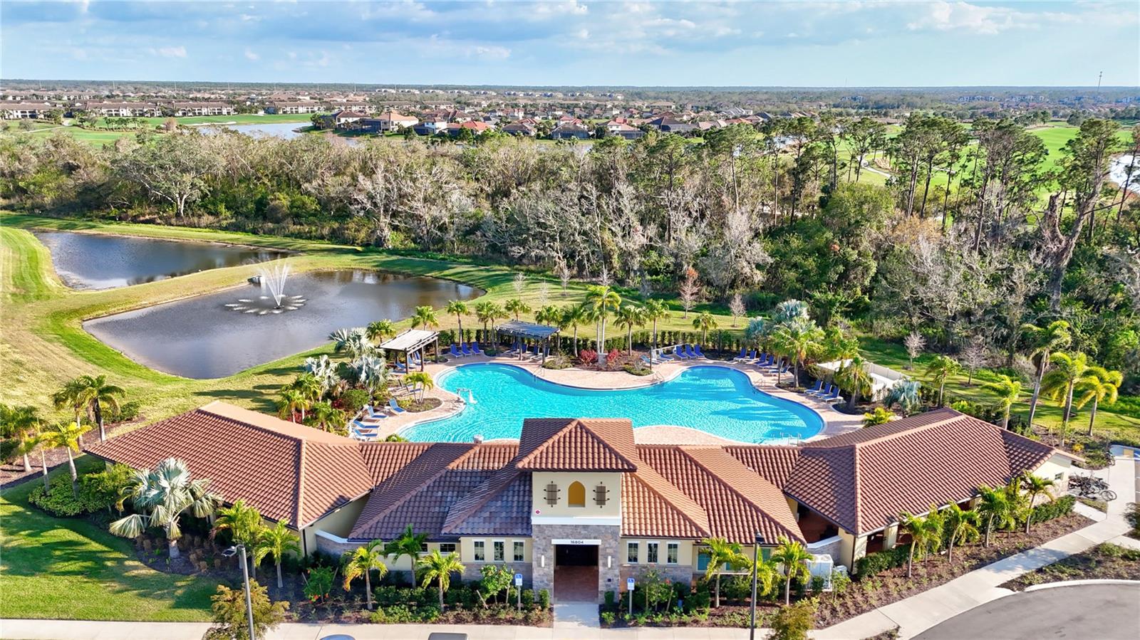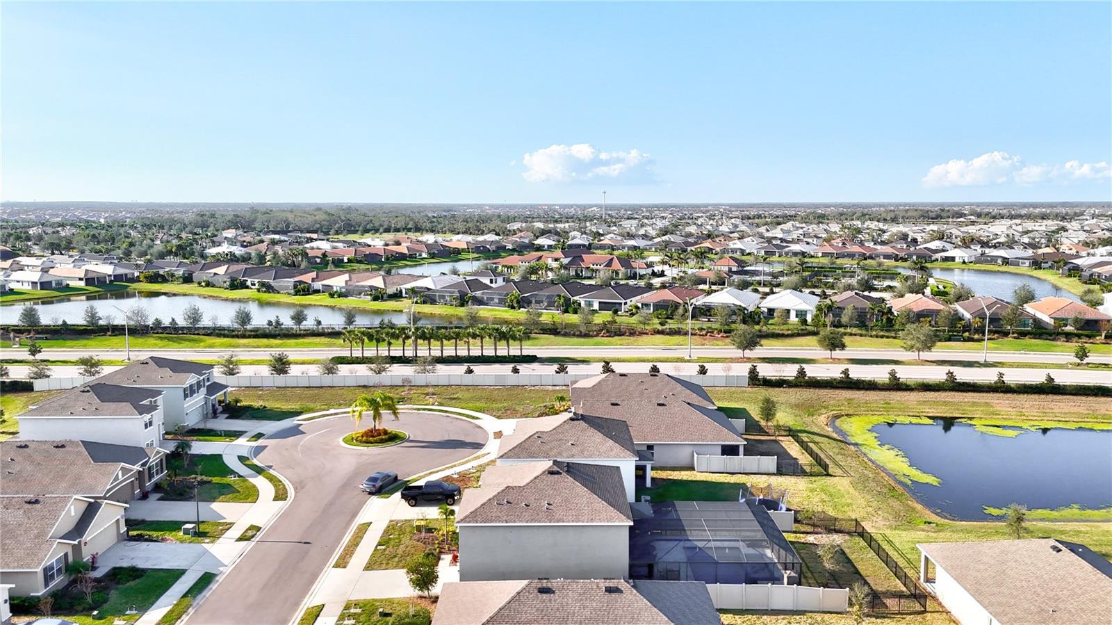 One or more photo(s) has been virtually staged. One-of-a-Kind Opportunity! Now available is the only 5-bedroom, pool/spa home on a cul-de-sac street in all of Solera. With nearly $200,000 in backyard upgrades for your oasis, this all-block, two-story home is an exceptional value in not only Solera but all of Lakewood Ranch. The luxurious private heated saltwater pool boasts color-changing LEDs, soothing bubblers, and a spacious sun deck, all overlooking a serene pond. Relax in the expansive 10-person spa while enjoying breathtaking sunrise views too. Solera is known for its low HOA fees, included lawn maintenance, and being across the street from the future Premier Sports Campus North that just broke ground in January. The anticipated 44,000-square-foot facility will include a competition-sized swimming pool, therapy pool, locker rooms, restrooms, walking trails and a geothermal yard. The state-of-the-art center is currently designed to have 24 pickleball courts, including 14 covered courts. All these amenities next door WITHOUT the high HOA fees to you! Inside, enjoy stylish upgrades, including custom shiplap walls, a cozy electric fireplace, and low-maintenance vinyl plank floors on the second level. The first-floor flex space offers endless possibilities—it’s perfect for a home office, cozy den, or second media room, all while preserving the full five-bedroom layout. The fenced backyard is perfect for pets, with vinyl fencing for privacy and metal fencing on the pond side for unobstructed views. Solera residents also enjoy access to the community clubhouse, resort-style pool, and multiple playgrounds. Located in Lakewood Ranch, the home is close to top-rated schools, shopping, dining, and Gulf Coast beaches. Don’t miss this rare opportunity—schedule your private showing today!