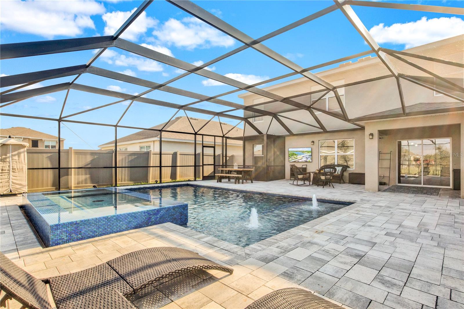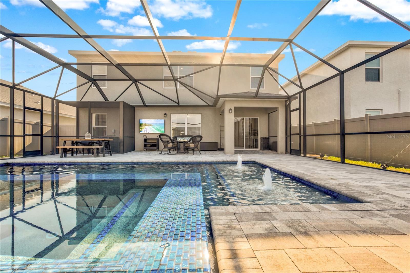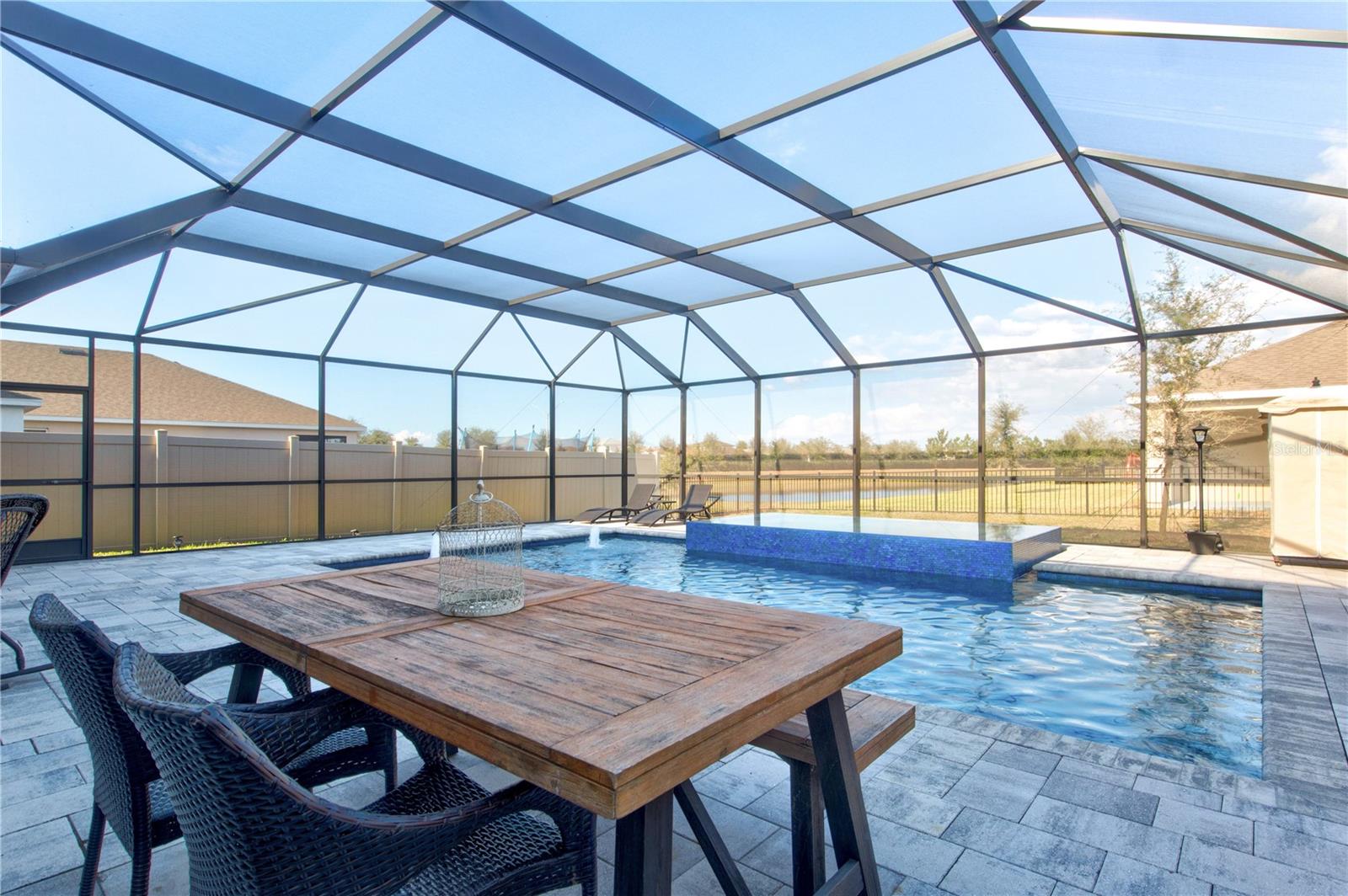 One or more photo(s) has been virtually staged. One-of-a-Kind Opportunity! Now available is the only 5-bedroom, pool/spa home on a cul-de-sac street in all of Solera. With nearly $200,000 in backyard upgrades for your oasis, this all-block, two-story home is an exceptional value in not only Solera but all of Lakewood Ranch. The luxurious private heated saltwater pool boasts color-changing LEDs, soothing bubblers, and a spacious sun deck, all overlooking a serene pond. Relax in the expansive 10-person spa while enjoying breathtaking sunrise views too. Solera is known for its low HOA fees, included lawn maintenance, and being across the street from the future Premier Sports Campus North that just broke ground in January. The anticipated 44,000-square-foot facility will include a competition-sized swimming pool, therapy pool, locker rooms, restrooms, walking trails and a geothermal yard. The state-of-the-art center is currently designed to have 24 pickleball courts, including 14 covered courts. All these amenities next door WITHOUT the high HOA fees to you! Inside, enjoy stylish upgrades, including custom shiplap walls, a cozy electric fireplace, and low-maintenance vinyl plank floors on the second level. The first-floor flex space offers endless possibilities—it’s perfect for a home office, cozy den, or second media room, all while preserving the full five-bedroom layout. The fenced backyard is perfect for pets, with vinyl fencing for privacy and metal fencing on the pond side for unobstructed views. Solera residents also enjoy access to the community clubhouse, resort-style pool, and multiple playgrounds. Located in Lakewood Ranch, the home is close to top-rated schools, shopping, dining, and Gulf Coast beaches. Don’t miss this rare opportunity—schedule your private showing today!