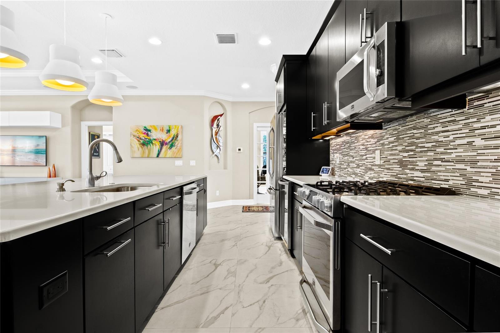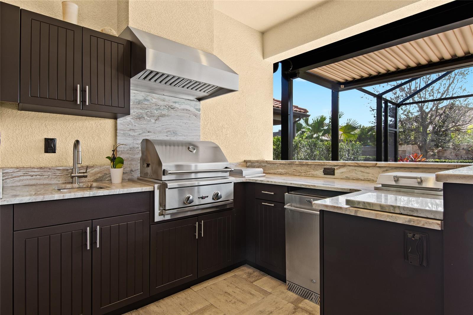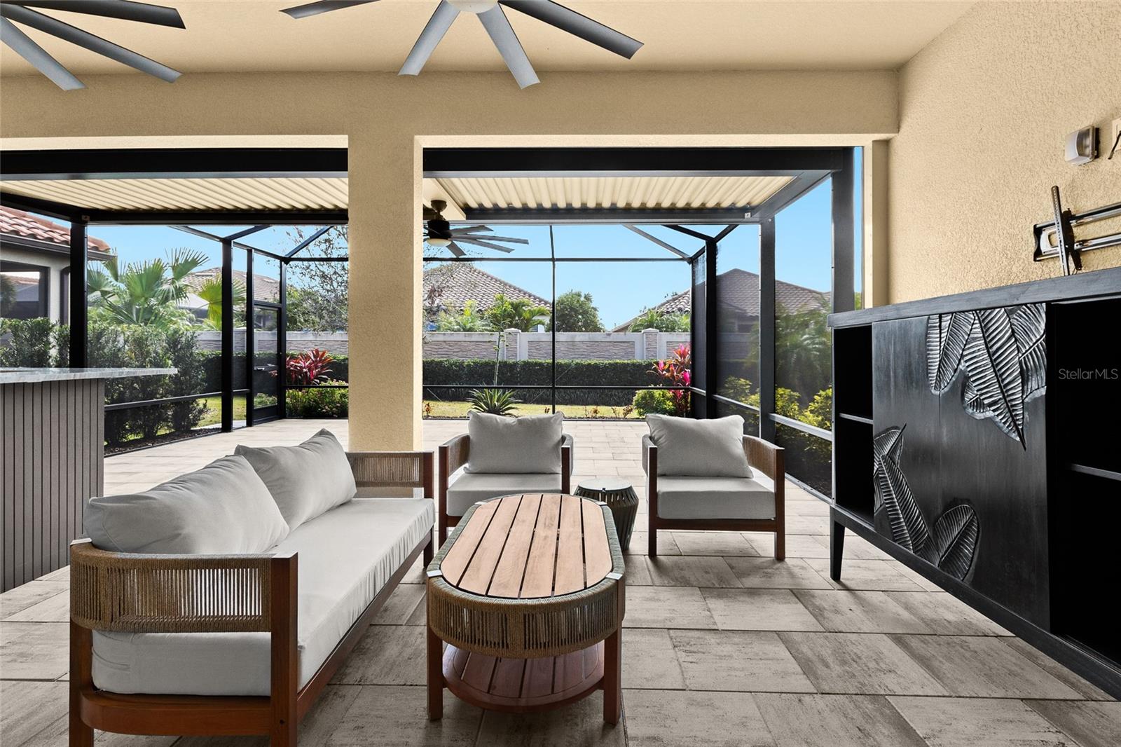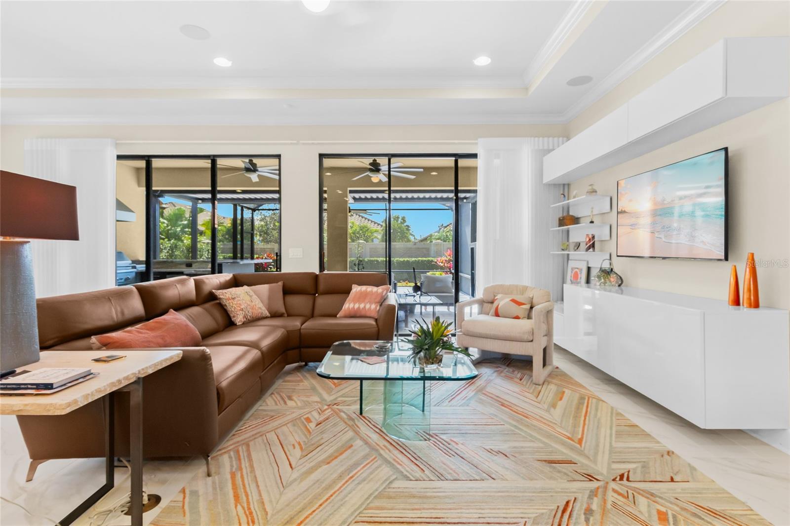 Live the dream in the distinguished resort community of ESPLANADE GOLF & COUNTRY CLUB. This stunning home is modern elegance at its finest and has been meticulously maintained! PICENO MODEL FEATURES: 2 Bedroom/2 bath + Den with everything you could ever want in a home! Gorgeous ceramic tile flooring was RECENTLY INSTALLED throughout the main living areas and both bathrooms have been COMPLETELY RENOVATED. NO DAMAGE from any of the recent storms and you are in an X Flood Zone so NO need for Flood insurance. The KITCHEN is a chef's dream with a massive Cambria Quartz Island with extra storage, Stainless Steel LG Appliances, Under Cabinet Lighting, Gas Range, Wine Fridge, Custom Pantry, Glass Backsplash, and Built-In Desk. Enjoy a meal in the DINING ROOM or lounging in the GREAT ROOM with exquisite tray ceilings in this amazing open floor plan. The OUTDOOR KITCHEN with EXTENDED LANAI and NEW TILE FLOORING features Granite Countertops, Grill & Hood, Side Burner, Ice Chest, Sink, Fridge, Pull Out Garbage, and Bar area for your guests to sit while enjoying a piece of paradise. There is also a Remote-Control Hurricane Shutter for extra protection. The PRIMARY BEDROOM presents 2 Walk-In Custom Closets, Ensuite Bath with Split Dual Vanities, Step-In Shower, Lighted Mirrors and Water Closet. The DEN boasts built-in shelving and dual desk space with LED lighting and Double Glass French Pocket Doors with pull-down shades for complete privacy. The LAUNDRY ROOM includes Built-in Cabinetry, Sink, LG Front-Load Washer & LG Front-Load Dryer with pedestals. Continue to be impressed as you enter an immaculate garage. The GARAGE space is equipped with Built-In Cabinets, Work Bench, Ceiling Racks, and Epoxy Flooring. OTHER FEATURES INCLUDE: Updated Light Fixtures, Fans, and LED Lighting throughout, Plantation Shutters, Ring Doorbell, Tray Ceilings, Hunter Douglas Automatic Shades Across Sliders in the Great Room, Built-In Surround Sound with Indoor & Outdoor Speakers, Whole House Generator, Landscape Lighting, Gutters, New A/C and Water Heater, Glass Front Door, Motion Sensor Security Light & Alarm System, Roof was recently cleaned and front entrance/Lanai have extra hurricane protection shutter system. INCLUDED IN HOA DUES: Resort Style Community Pool with Cabanas and Poolside Bar, Fitness & Wellness Center, Spa, Culinary Center, Tennis, Bocce Ball & Pickleball Courts, Clubhouse, Playground, 2 Dog Parks, Full-Time Activities Director, Onsite Property Management & Maintenance, Lawn Maintenance, Manned Gate on Malachite. GOLF IS NOT INCLUDED IN THE HOA DUES. However, Club members can still play! AMAZING LOCATION: Close to shopping (UTC Mall), restaurants, Sarasota International Airport, and the top-rated beaches in the country.