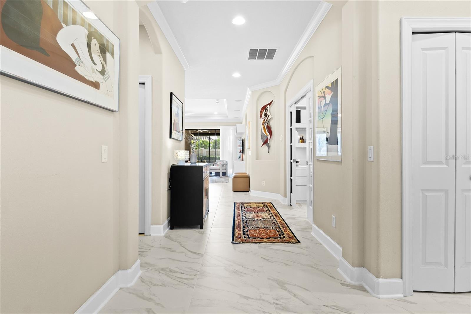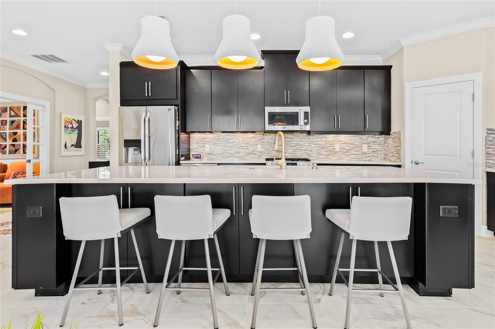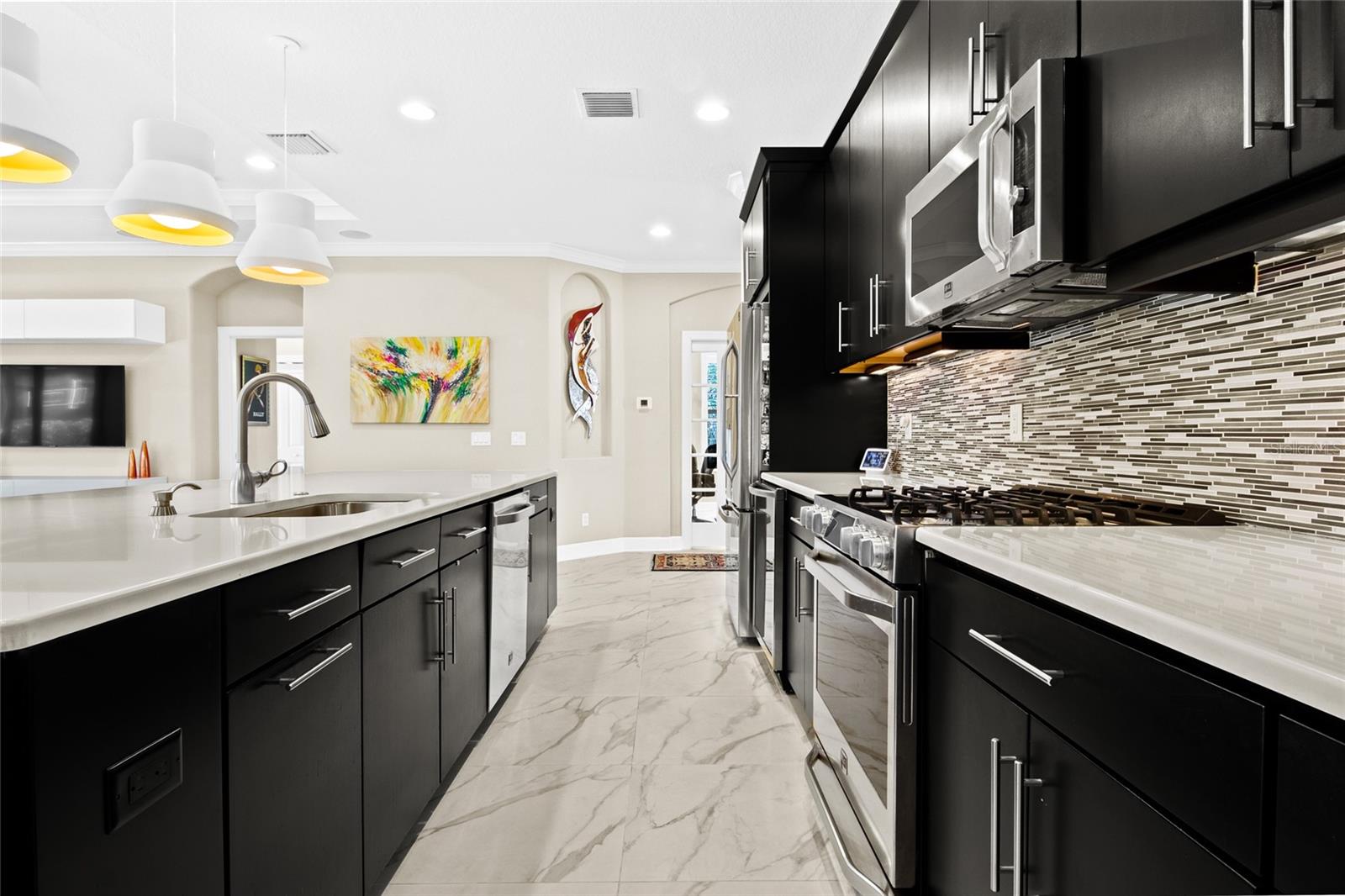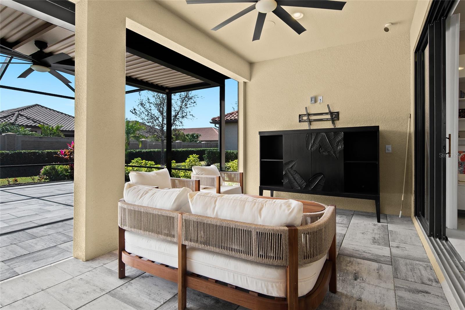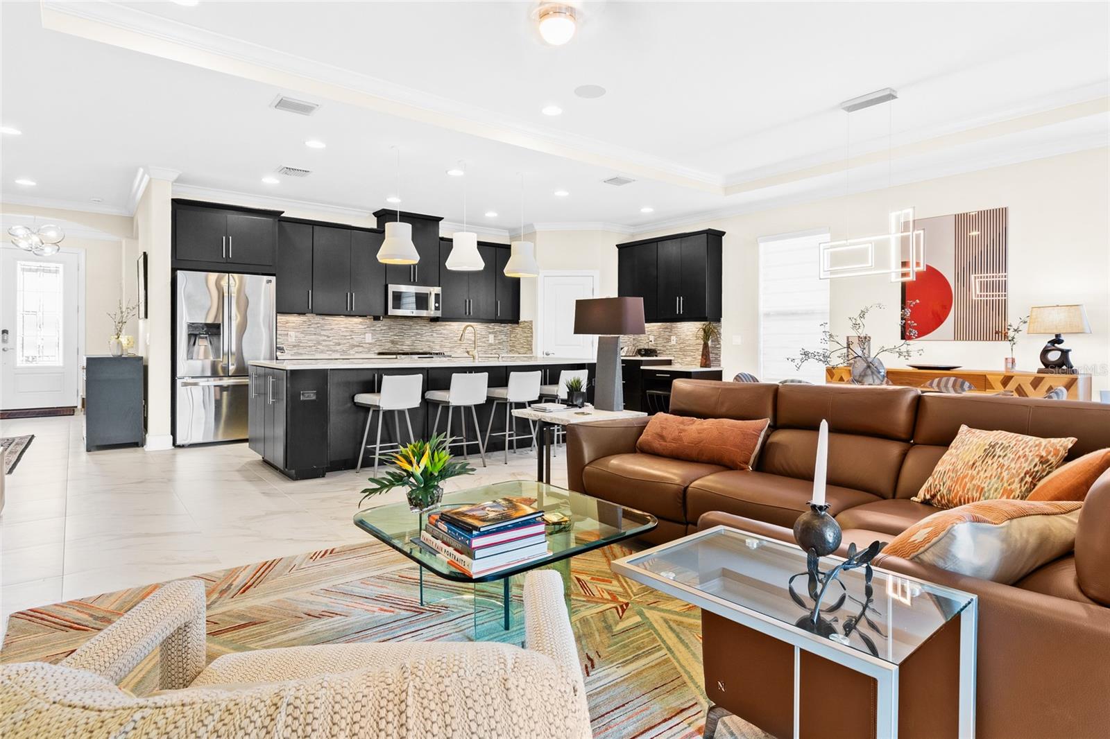 Live the dream in the distinguished resort community of ESPLANADE GOLF & COUNTRY CLUB. This stunning home is modern elegance at its finest and has been meticulously maintained! PICENO MODEL FEATURES: 2 Bedroom/2 bath + Den with everything you could ever want in a home! Gorgeous ceramic tile flooring was RECENTLY INSTALLED throughout the main living areas and both bathrooms have been COMPLETELY RENOVATED. NO DAMAGE from any of the recent storms and you are in an X Flood Zone so NO need for Flood insurance. The KITCHEN is a chef's dream with a massive Cambria Quartz Island with extra storage, Stainless Steel LG Appliances, Under Cabinet Lighting, Gas Range, Wine Fridge, Custom Pantry, Glass Backsplash, and Built-In Desk. Enjoy a meal in the DINING ROOM or lounging in the GREAT ROOM with exquisite tray ceilings in this amazing open floor plan. The OUTDOOR KITCHEN with EXTENDED LANAI and NEW TILE FLOORING features Granite Countertops, Grill & Hood, Side Burner, Ice Chest, Sink, Fridge, Pull Out Garbage, and Bar area for your guests to sit while enjoying a piece of paradise. There is also a Remote-Control Hurricane Shutter for extra protection. The PRIMARY BEDROOM presents 2 Walk-In Custom Closets, Ensuite Bath with Split Dual Vanities, Step-In Shower, Lighted Mirrors and Water Closet. The DEN boasts built-in shelving and dual desk space with LED lighting and Double Glass French Pocket Doors with pull-down shades for complete privacy. The LAUNDRY ROOM includes Built-in Cabinetry, Sink, LG Front-Load Washer & LG Front-Load Dryer with pedestals. Continue to be impressed as you enter an immaculate garage. The GARAGE space is equipped with Built-In Cabinets, Work Bench, Ceiling Racks, and Epoxy Flooring. OTHER FEATURES INCLUDE: Updated Light Fixtures, Fans, and LED Lighting throughout, Plantation Shutters, Ring Doorbell, Tray Ceilings, Hunter Douglas Automatic Shades Across Sliders in the Great Room, Built-In Surround Sound with Indoor & Outdoor Speakers, Whole House Generator, Landscape Lighting, Gutters, New A/C and Water Heater, Glass Front Door, Motion Sensor Security Light & Alarm System, Roof was recently cleaned and front entrance/Lanai have extra hurricane protection shutter system. INCLUDED IN HOA DUES: Resort Style Community Pool with Cabanas and Poolside Bar, Fitness & Wellness Center, Spa, Culinary Center, Tennis, Bocce Ball & Pickleball Courts, Clubhouse, Playground, 2 Dog Parks, Full-Time Activities Director, Onsite Property Management & Maintenance, Lawn Maintenance, Manned Gate on Malachite. GOLF IS NOT INCLUDED IN THE HOA DUES. However, Club members can still play! AMAZING LOCATION: Close to shopping (UTC Mall), restaurants, Sarasota International Airport, and the top-rated beaches in the country.