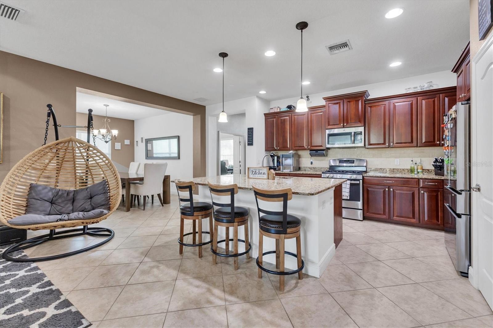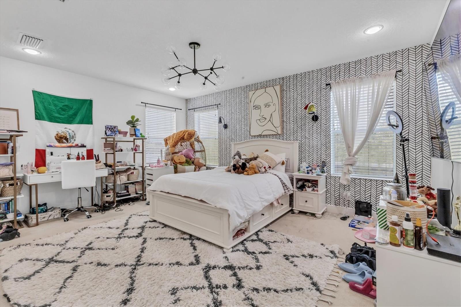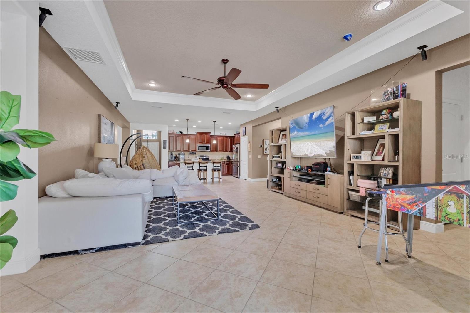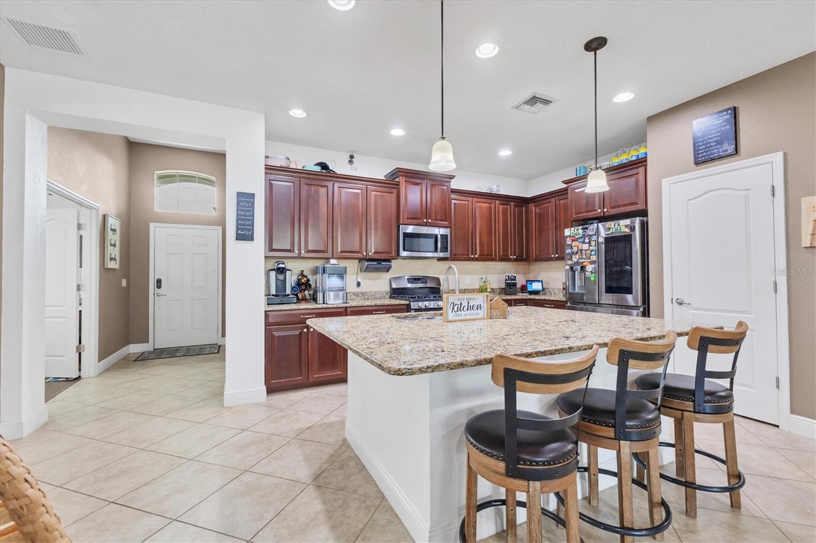 PRICE IMPROVEMENT!!! This stunning home with 2,999 sq ft of living space features 4 bedrooms plus 2 dens and 4 full baths, with a primary bedroom located on both floors for ultimate convenience. The interior boasts high ceilings and 18x18 ceramic tile throughout the main living areas, creating an elegant and open atmosphere. Enjoy serene lake views from your backyard, complete with a heated pool for year-round relaxation. The great room features tray ceilings and pocket sliders that open to a spacious lanai, perfect for entertaining. The open kitchen is a chef’s dream, with granite countertops, Cherry Spice cabinetry, and a gourmet island. The home also includes a formal dining room, a laundry room with extra storage, and a spacious 3-car garage. Set in a Lakewood Ranch gated community, residents enjoy access to tennis courts, dog parks, a splash park, and plenty of walking trails for outdoor recreation. Minutes to UTC, hospital, interstate and plenty of shopping and restaurants.