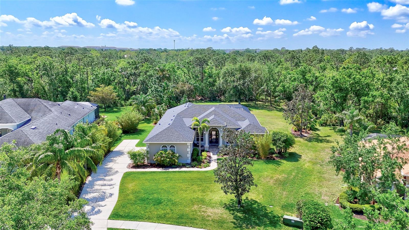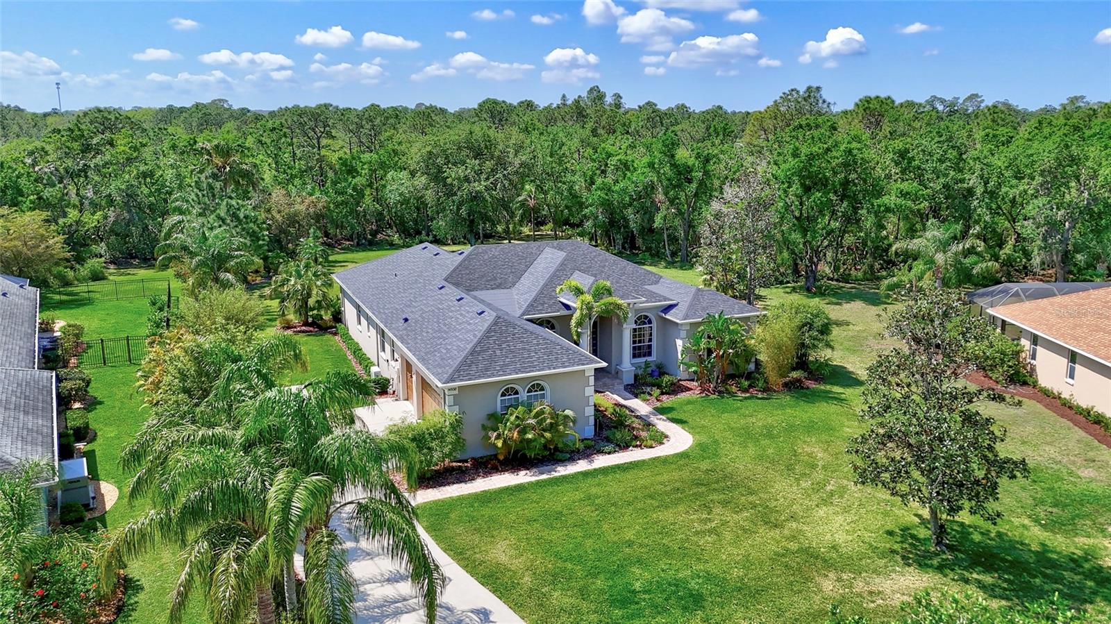 You will NOT find this lot in a cookie cutter neighborhood! Tucked away in the highly sought-after Mill Creek neighborhood, this pristinely maintained, ORIGINAL OWNERS 4-bedroom, 3-bathroom pool home sits on .85 acres of lush, private land, backed by a breathtaking preserve—offering tranquility and scenic views both in front and behind. Inside, the triple-split floor plan provides privacy and functionality, featuring engineered wood flooring, upgraded appliances, and stunning Cambria countertops that elevate the heart of the home. Major upgrades include a brand-new roof (December 2024) and a new A/C system (July 2023) for peace of mind. Step outside to your own private oasis with a sparkling pool and plenty of space to relax, entertain, or simply take in the beauty of nature. With no CDD fees, low HOA fees, and a location that perfectly balances privacy with convenience, this home is a rare gem in Mill Creek! Bring your RV, Boat or build an ADU on the property!