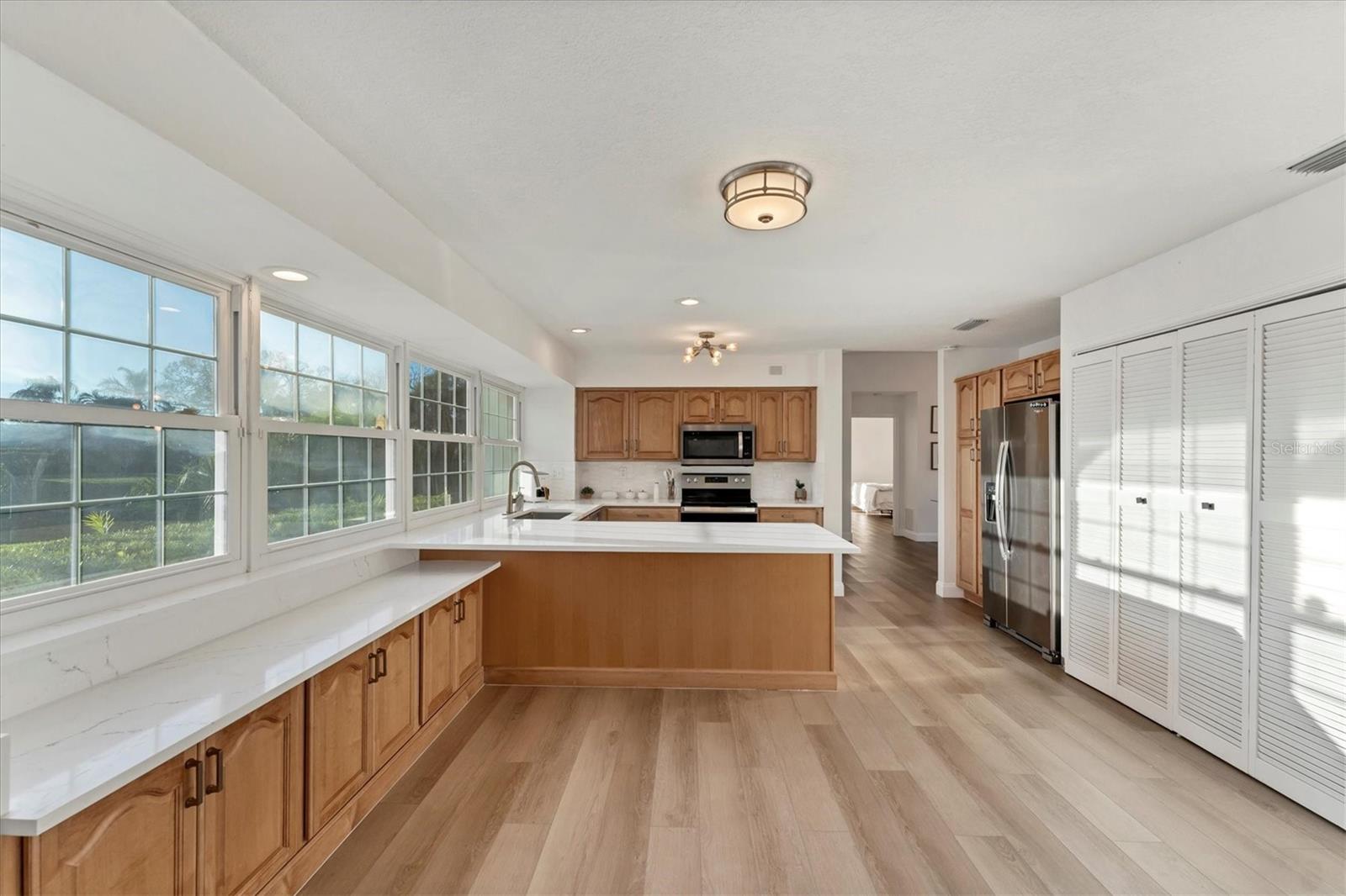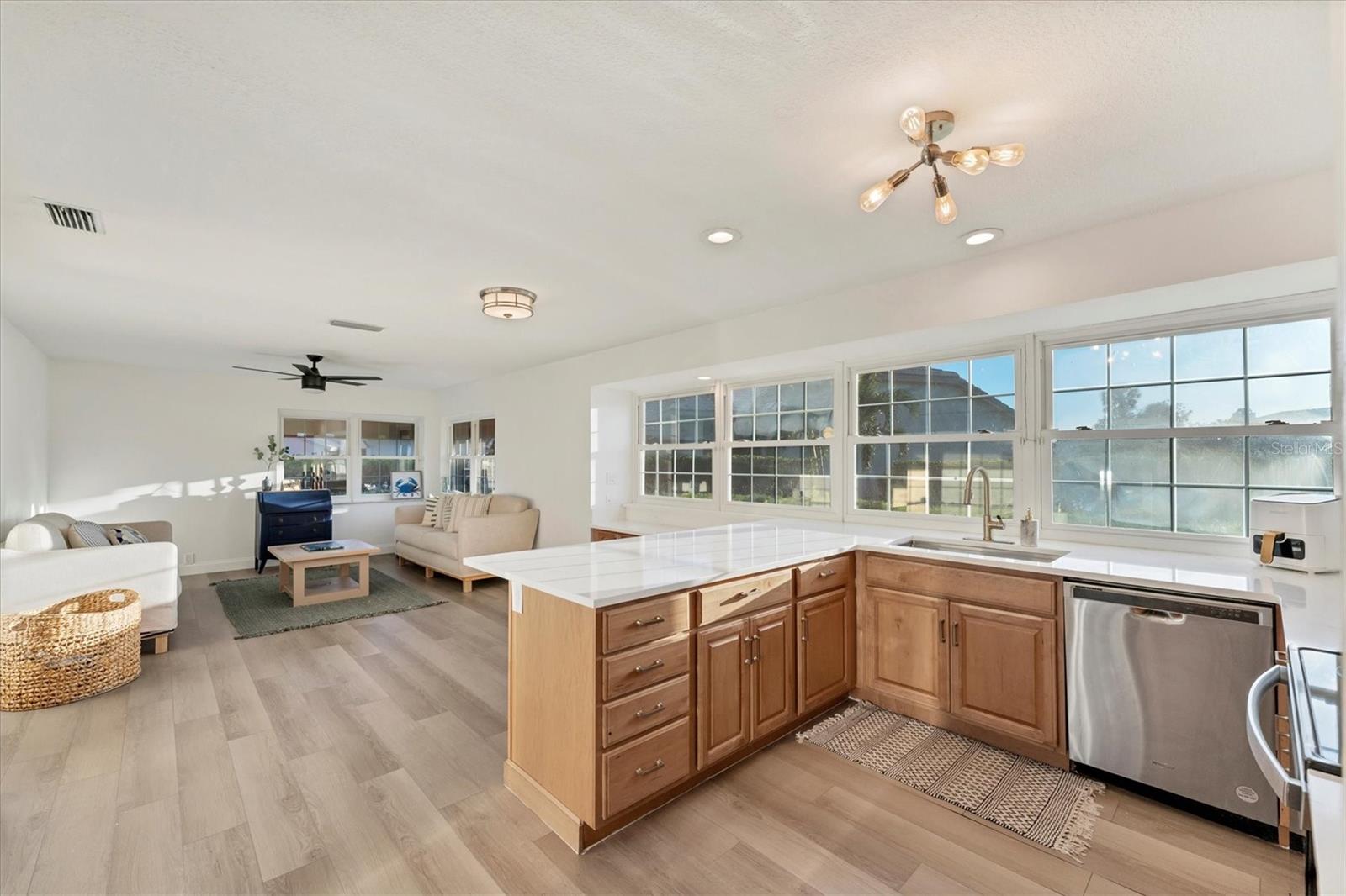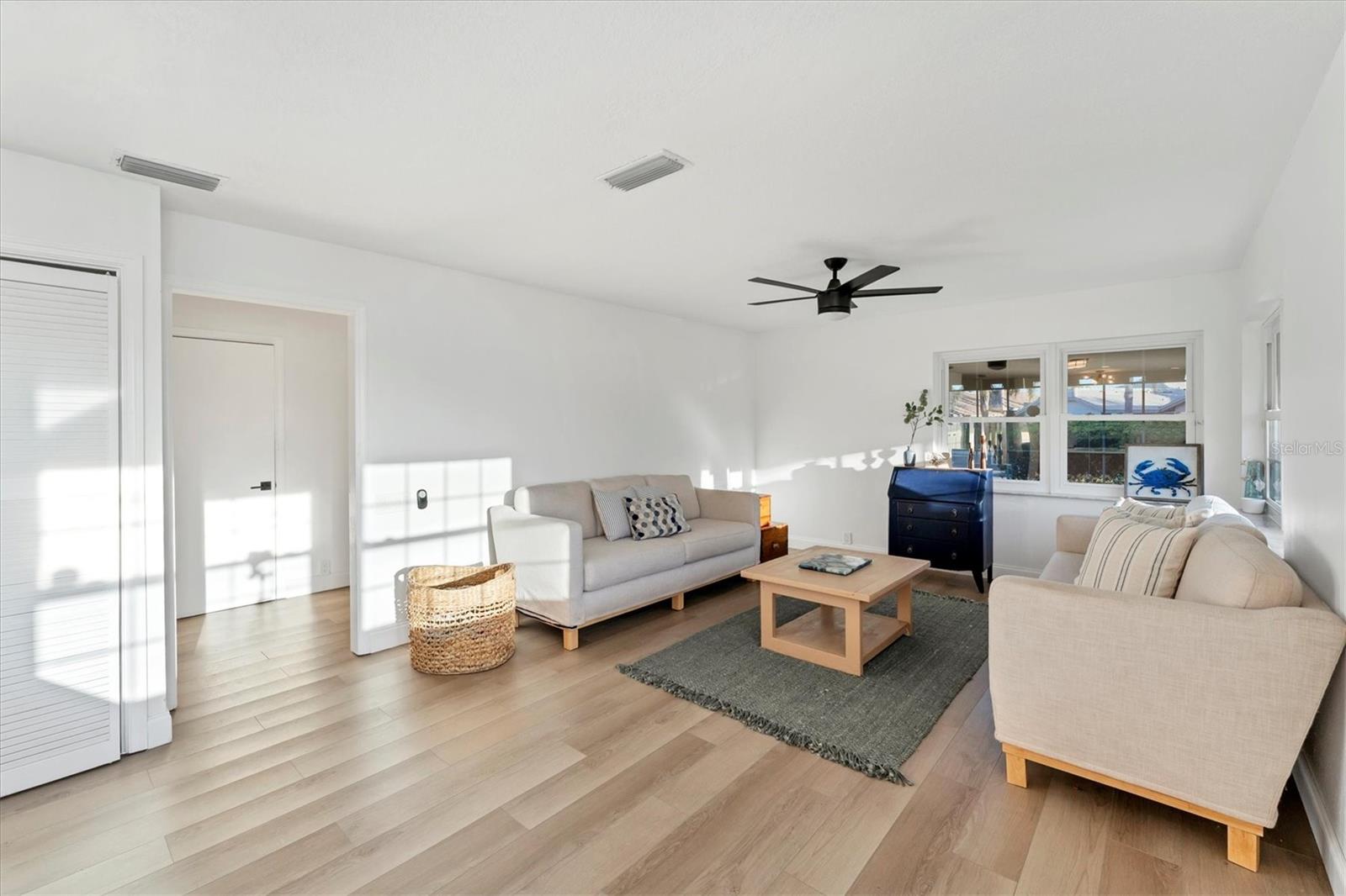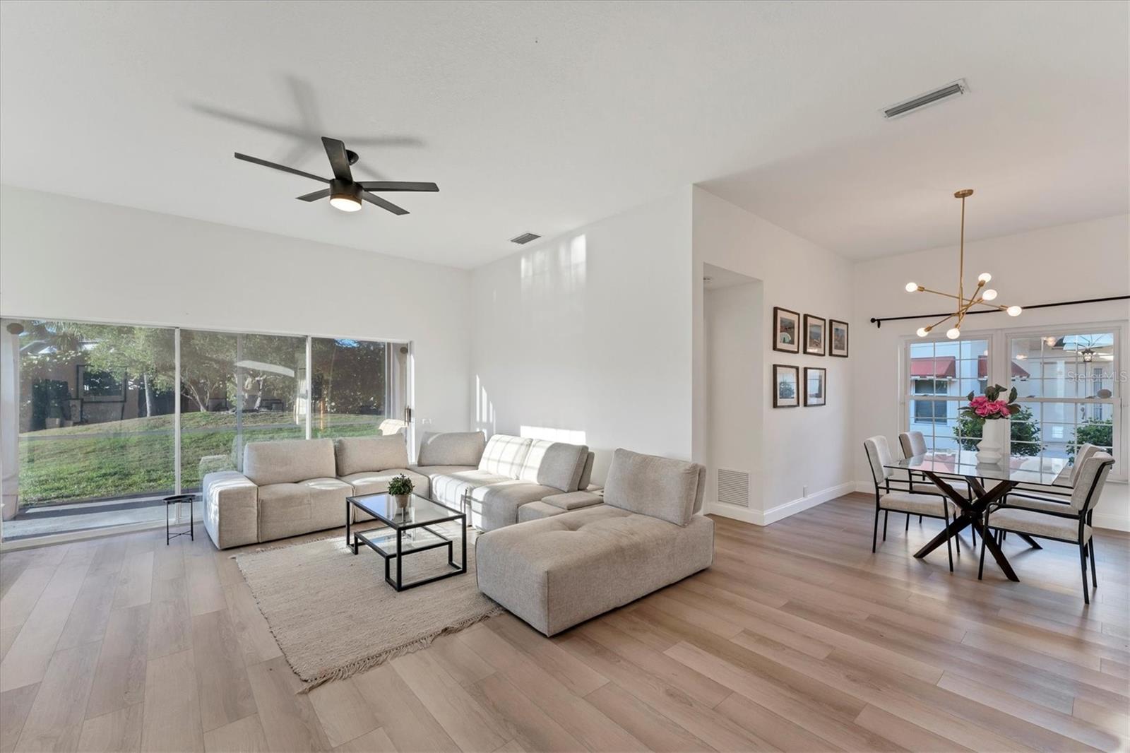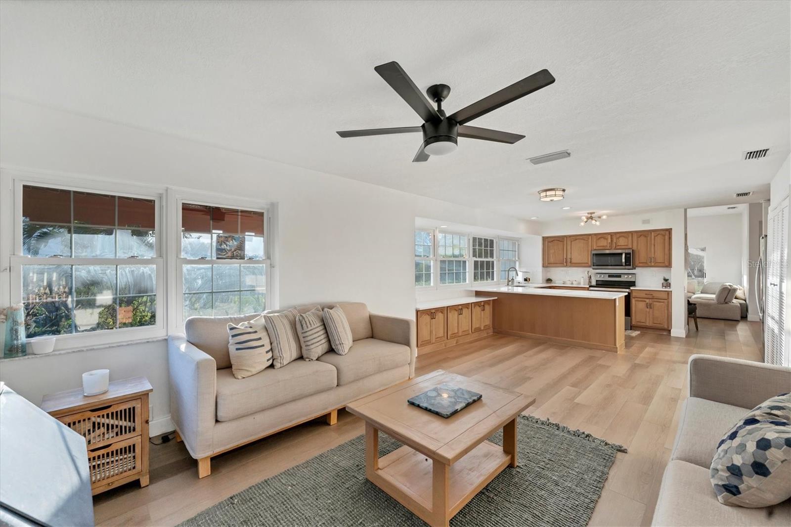 Situated in a quiet cul-de-sac within the maintenance-free community of Highland Lakes, you will find this stunning Arthur Rutenberg home. Offering an abundance of natural light and breathtaking lake views, it features one of the the largest floor plans in the community with a split and open layout, ideal for modern living. There are multiple options for enclosing in a third bedroom. Updates include a 2020 AC, 2022 water heater, and a 2023 roof, along with impact windows for added peace of mind. The kitchen boasts beautiful quartz countertops and solid wood cabinetry. The quarterly HOA fee covers water, cable, and internet. There was no flooding or damage with any of the 2024 hurricanes!