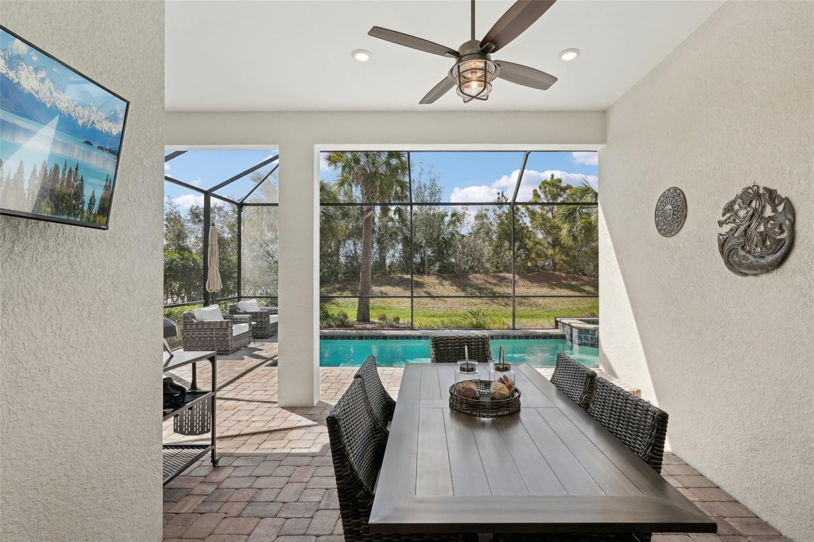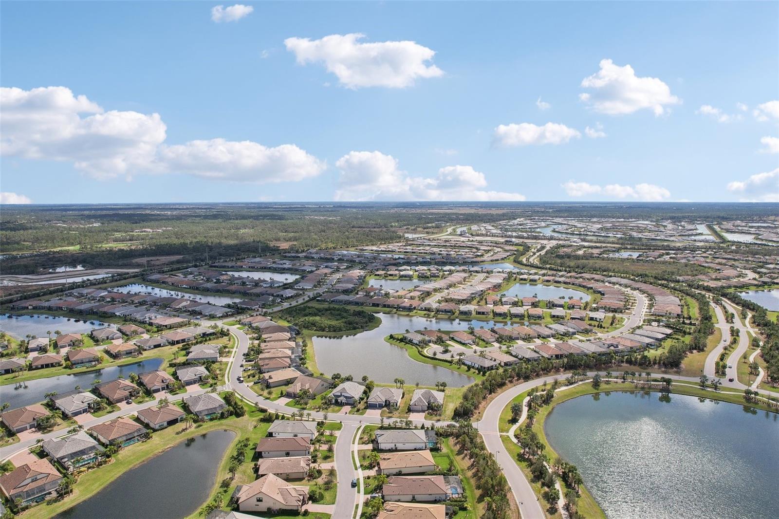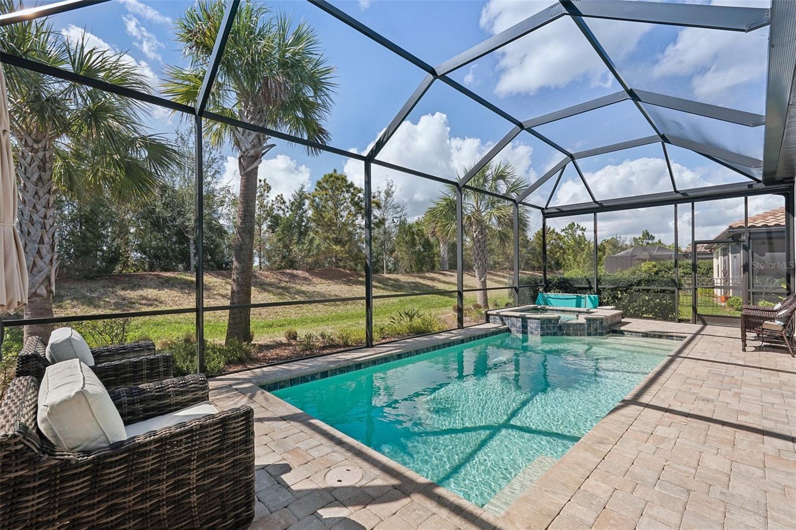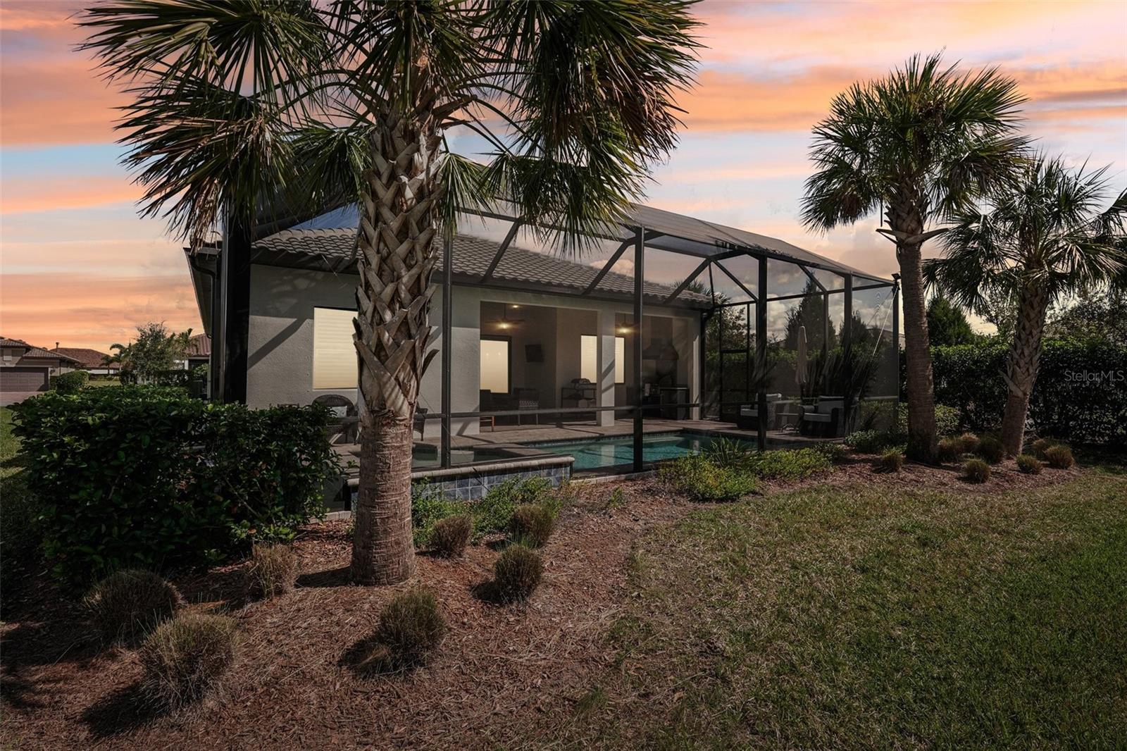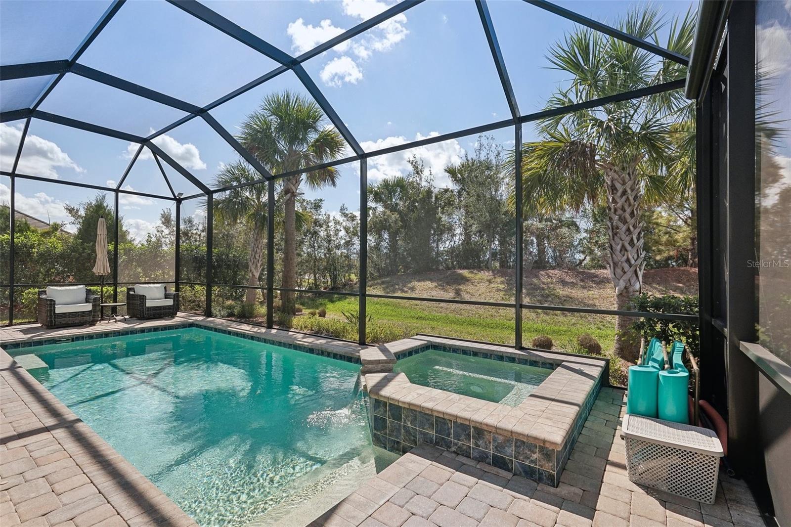 Welcome to Del Webb, Lakewood Ranch’s premiere 55+ active adult community! Your piece of paradise awaits in this gorgeous Prestige model home with generously proportioned living spaces covered with natural light and situated on a secluded corner lot, a short walk to the Oasis Amenity Center. This home boasts a spacious floor plan, high ceilings and a large outdoor living space. The interior includes a stunning 3 bedroom, 2.5 bath split floor plan with thoughtful design options and upgrades, plantation shutters throughout, unique designer ceiling fans in every room, 8 foot doors accentuated by 5.25” baseboards, 21” by 21” tile, plush carpeting, a large laundry room with added cabinetry and a convenient built-in drop zone near the 2 car, epoxy floored garage. The open concept living area flows seamlessly to the designer kitchen and extended outdoor covered lanai. Imagine cooking or entertaining with a kitchen fit for a professional chef that has an expansive island with extra cabinet space, eye catching pendant lighting, upgraded stainless steel KitchenAid appliances with gas cooktop and hood, soft close cabinet drawers, exquisite top grade quartz counter tops, marble backsplash, under cabinet lighting and walk-in pantry. The owner’s suite features a tray ceiling, 2 large walk-in closets, a large walk-in shower with to ceiling tile and bench seating, double sinks and designer mirrors. Guests will feel right at home in the 2nd bedroom with their own ensuite bath. The 3rd bedroom is a perfect space for additional guests or for use as a home office with French doors. Now, step into the luxurious extended lanai and elevate your outdoor living with a pristine heated saltwater pool and spa that offers full seclusion on demand with a side remote controlled privacy shade. Lounge in the pool or spa during the day or under the stars in this private enclave. When ready, start barbequing with a top line outdoor grill and kitchen and enjoy your creation in the dining area. Come and discover the resort-style living in a pleasant, low key, exclusive environment enhanced by a 21,000 square foot Amenity Center with pools, tennis and pickleball courts, biking and riding trails and an on-site restaurant and bar. Seize this rare opportunity to own a home that beautifully combines luxurious privacy with amenity -packed choices. Schedule your private tour today!