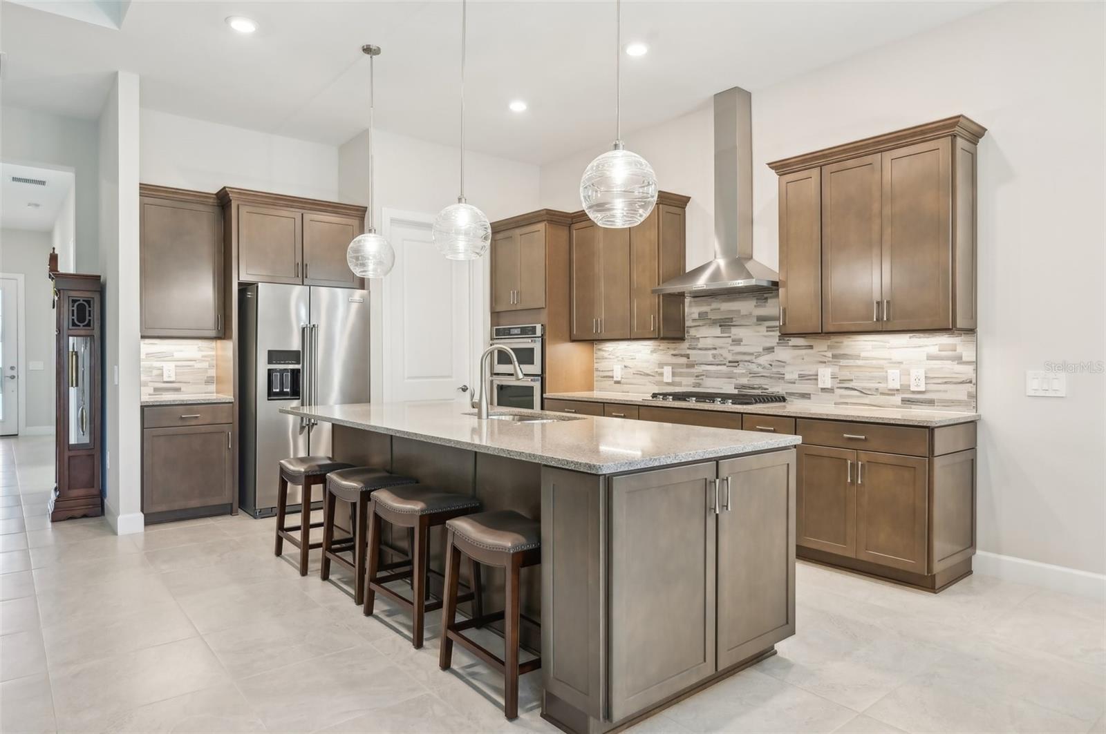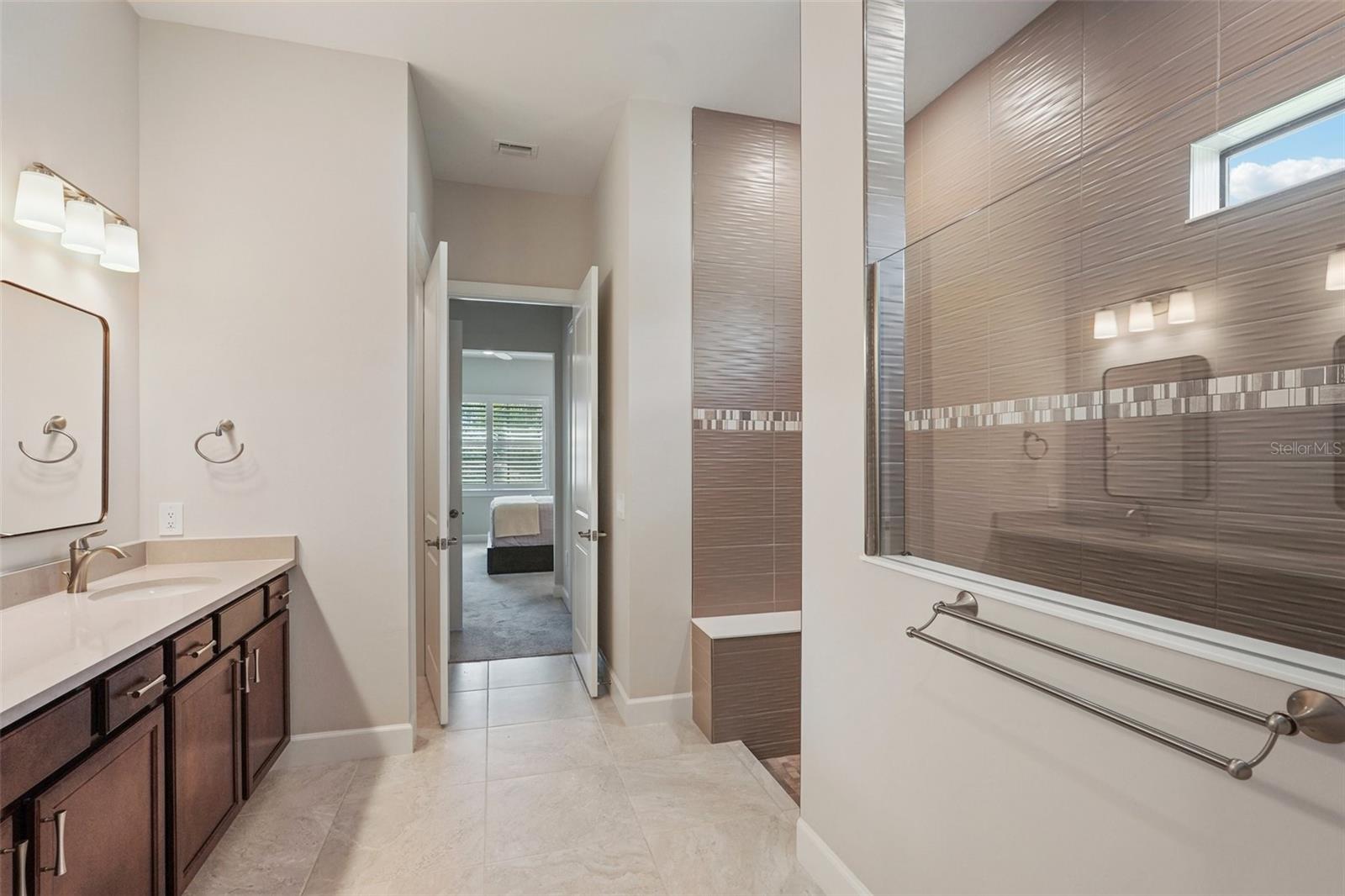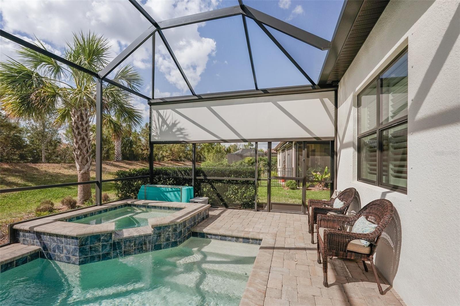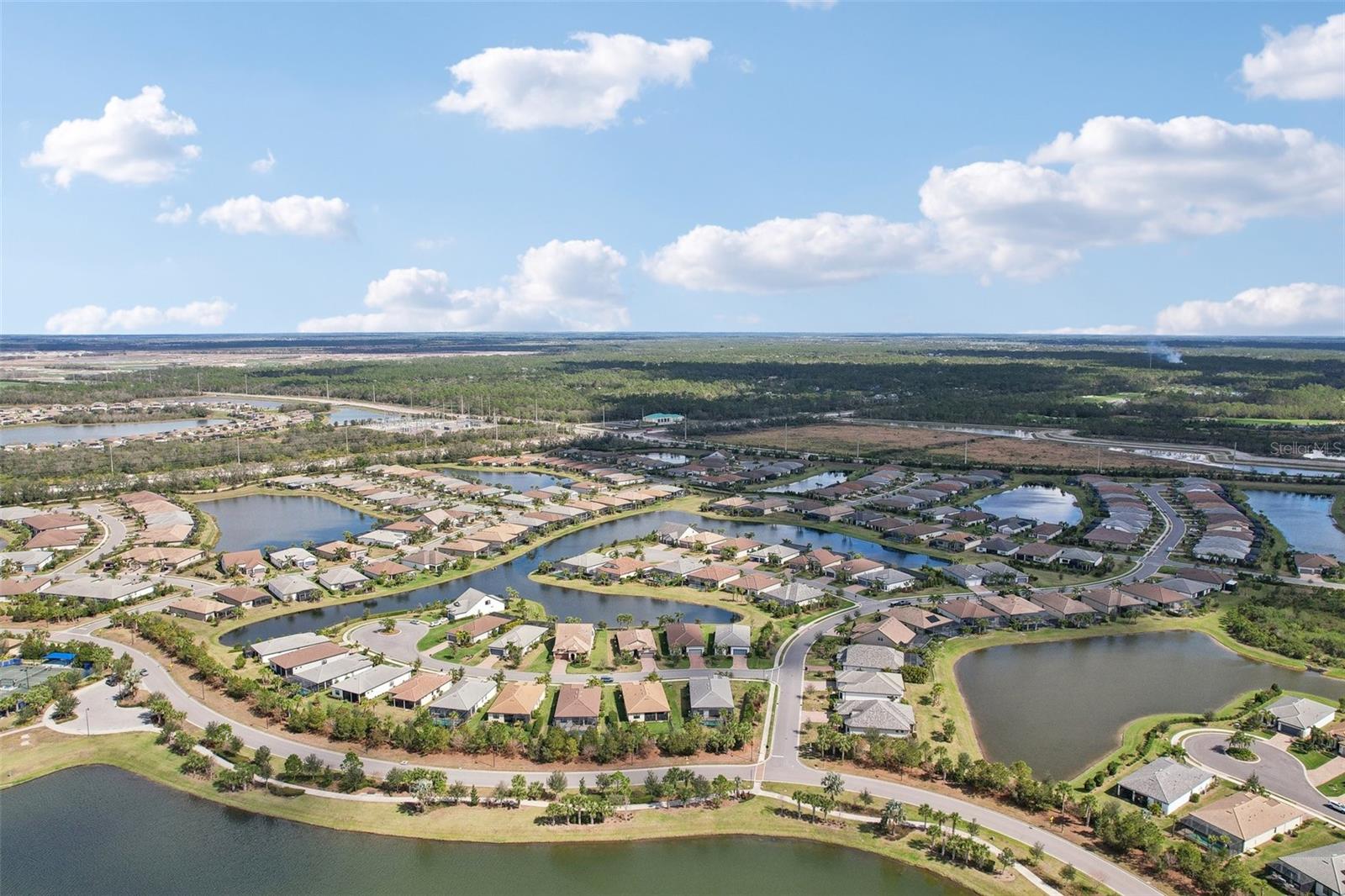 Welcome to Del Webb, Lakewood Ranch’s premiere 55+ active adult community! Your piece of paradise awaits in this gorgeous Prestige model home with generously proportioned living spaces covered with natural light and situated on a secluded corner lot, a short walk to the Oasis Amenity Center. This home boasts a spacious floor plan, high ceilings and a large outdoor living space. The interior includes a stunning 3 bedroom, 2.5 bath split floor plan with thoughtful design options and upgrades, plantation shutters throughout, unique designer ceiling fans in every room, 8 foot doors accentuated by 5.25” baseboards, 21” by 21” tile, plush carpeting, a large laundry room with added cabinetry and a convenient built-in drop zone near the 2 car, epoxy floored garage. The open concept living area flows seamlessly to the designer kitchen and extended outdoor covered lanai. Imagine cooking or entertaining with a kitchen fit for a professional chef that has an expansive island with extra cabinet space, eye catching pendant lighting, upgraded stainless steel KitchenAid appliances with gas cooktop and hood, soft close cabinet drawers, exquisite top grade quartz counter tops, marble backsplash, under cabinet lighting and walk-in pantry. The owner’s suite features a tray ceiling, 2 large walk-in closets, a large walk-in shower with to ceiling tile and bench seating, double sinks and designer mirrors. Guests will feel right at home in the 2nd bedroom with their own ensuite bath. The 3rd bedroom is a perfect space for additional guests or for use as a home office with French doors. Now, step into the luxurious extended lanai and elevate your outdoor living with a pristine heated saltwater pool and spa that offers full seclusion on demand with a side remote controlled privacy shade. Lounge in the pool or spa during the day or under the stars in this private enclave. When ready, start barbequing with a top line outdoor grill and kitchen and enjoy your creation in the dining area. Come and discover the resort-style living in a pleasant, low key, exclusive environment enhanced by a 21,000 square foot Amenity Center with pools, tennis and pickleball courts, biking and riding trails and an on-site restaurant and bar. Seize this rare opportunity to own a home that beautifully combines luxurious privacy with amenity -packed choices. Schedule your private tour today!