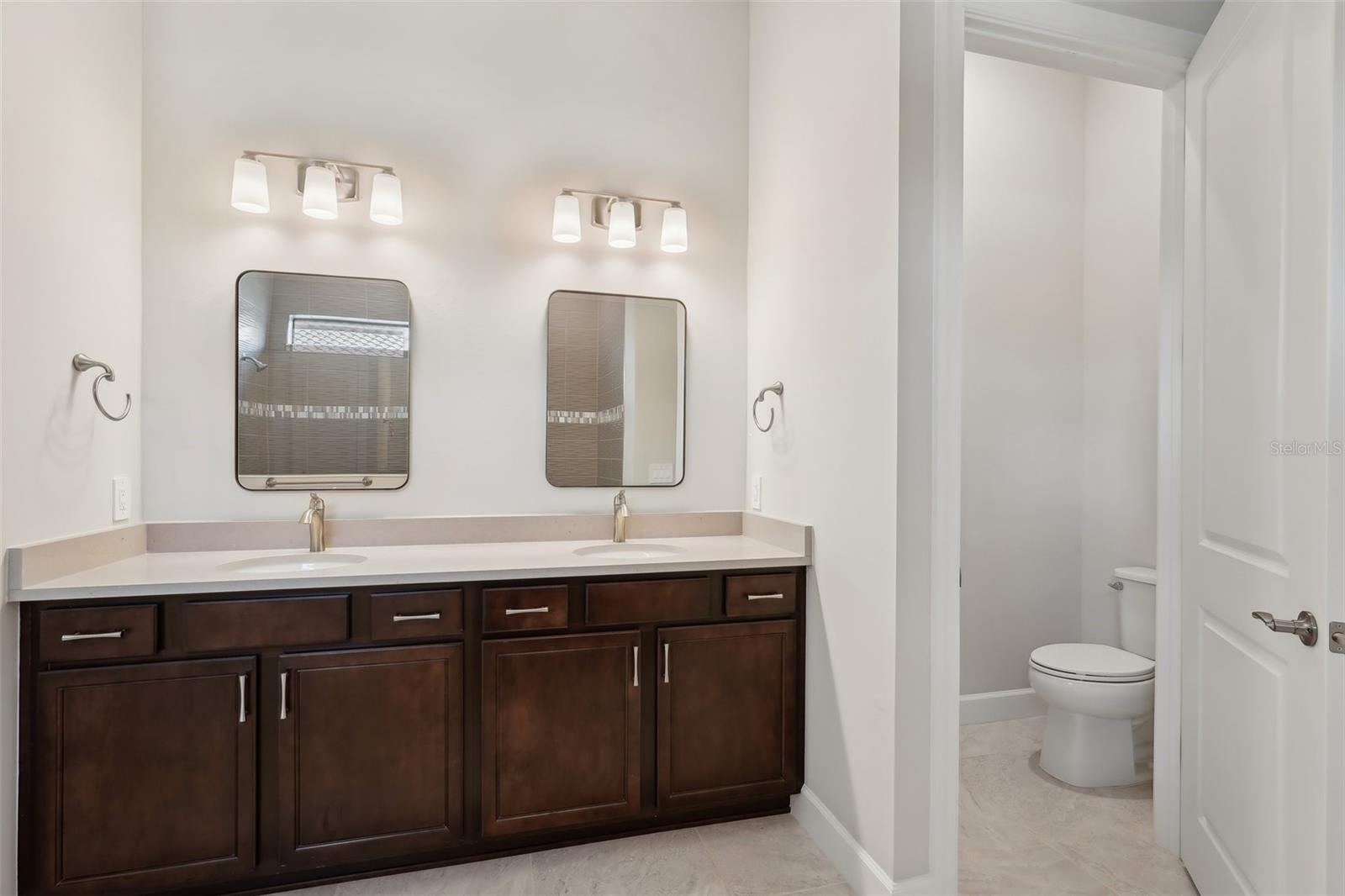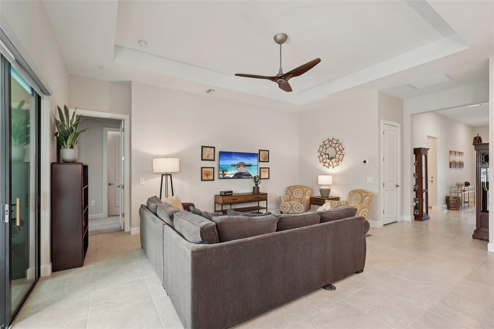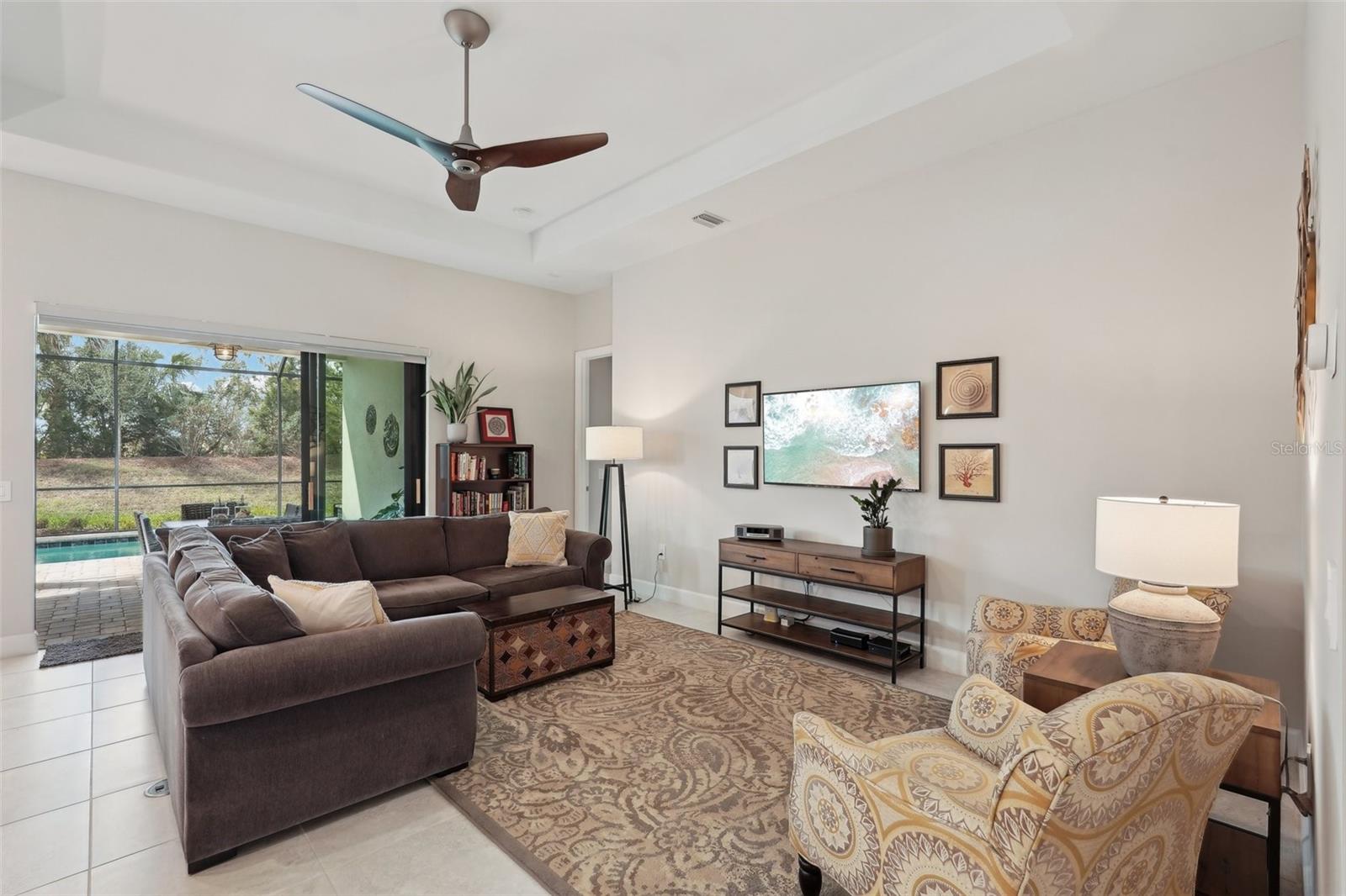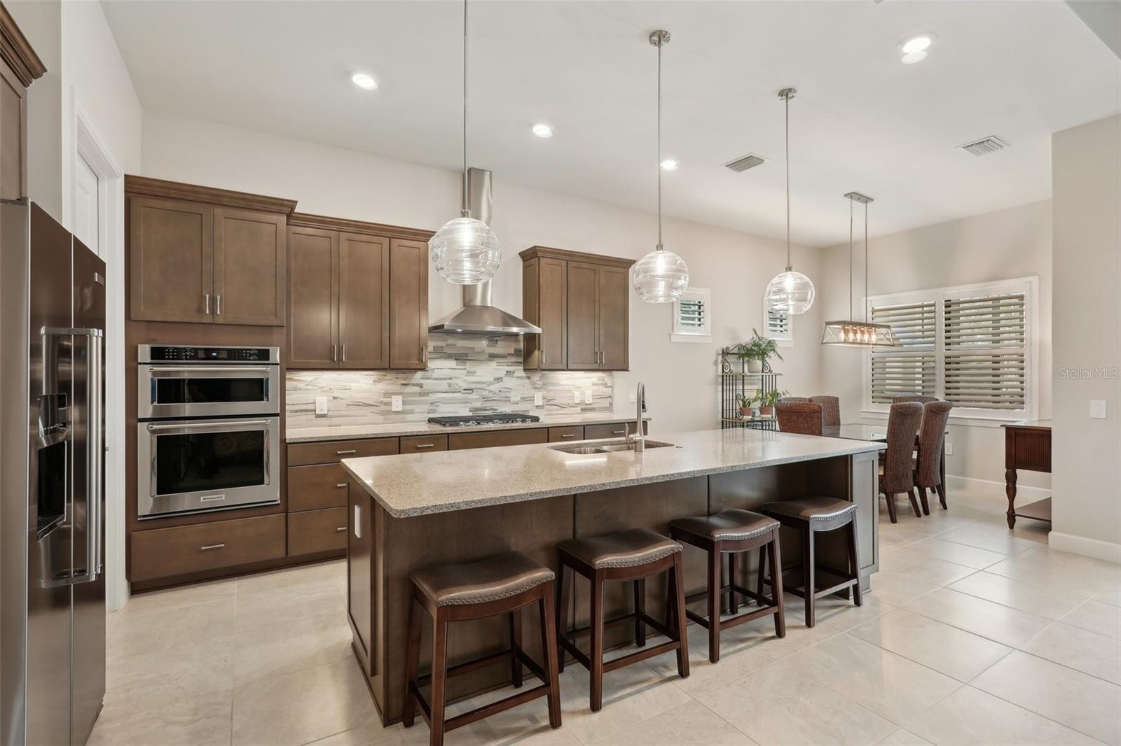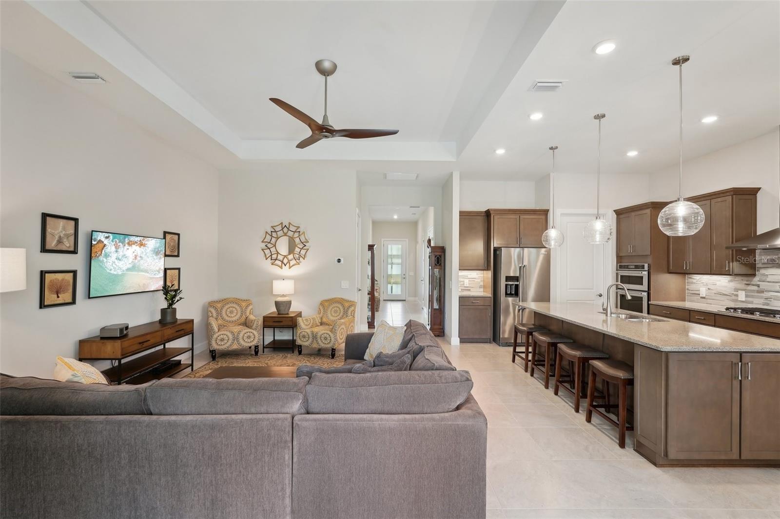 Welcome to Del Webb, Lakewood Ranch’s premiere 55+ active adult community! Your piece of paradise awaits in this gorgeous Prestige model home with generously proportioned living spaces covered with natural light and situated on a secluded corner lot, a short walk to the Oasis Amenity Center. This home boasts a spacious floor plan, high ceilings and a large outdoor living space. The interior includes a stunning 3 bedroom, 2.5 bath split floor plan with thoughtful design options and upgrades, plantation shutters throughout, unique designer ceiling fans in every room, 8 foot doors accentuated by 5.25” baseboards, 21” by 21” tile, plush carpeting, a large laundry room with added cabinetry and a convenient built-in drop zone near the 2 car, epoxy floored garage. The open concept living area flows seamlessly to the designer kitchen and extended outdoor covered lanai. Imagine cooking or entertaining with a kitchen fit for a professional chef that has an expansive island with extra cabinet space, eye catching pendant lighting, upgraded stainless steel KitchenAid appliances with gas cooktop and hood, soft close cabinet drawers, exquisite top grade quartz counter tops, marble backsplash, under cabinet lighting and walk-in pantry. The owner’s suite features a tray ceiling, 2 large walk-in closets, a large walk-in shower with to ceiling tile and bench seating, double sinks and designer mirrors. Guests will feel right at home in the 2nd bedroom with their own ensuite bath. The 3rd bedroom is a perfect space for additional guests or for use as a home office with French doors. Now, step into the luxurious extended lanai and elevate your outdoor living with a pristine heated saltwater pool and spa that offers full seclusion on demand with a side remote controlled privacy shade. Lounge in the pool or spa during the day or under the stars in this private enclave. When ready, start barbequing with a top line outdoor grill and kitchen and enjoy your creation in the dining area. Come and discover the resort-style living in a pleasant, low key, exclusive environment enhanced by a 21,000 square foot Amenity Center with pools, tennis and pickleball courts, biking and riding trails and an on-site restaurant and bar. Seize this rare opportunity to own a home that beautifully combines luxurious privacy with amenity -packed choices. Schedule your private tour today!
