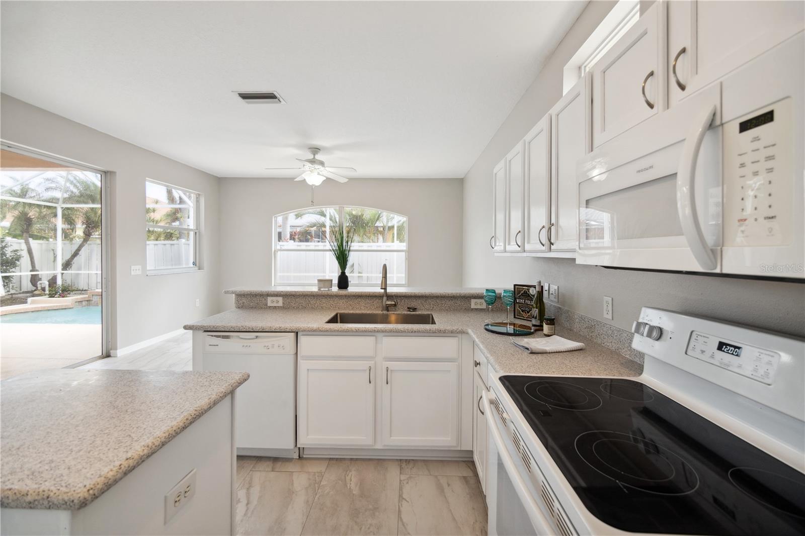One or more photo(s) has been virtually staged. Private pool home located with in golf course community! You don't want to wait on this updated 3 bedroom and 2 bathroom home. The open, fresh and bright floor plan truly allows for great Florida living. You will love the low maintenance, brand new luxury vinyl flooring. Updated kitchen and bathrooms make this a welcoming and modern place to call home. Relax in the sun with a screened lanai and private pool. Enjoy the community pool as well for a larger place to swim or entrain guests. Golf is just steps away, with the Links Golf course within the development. In addition, you can relax with great food and drinks at the Greenfield Plantation Bar and Grill. Some photos virtually staged.