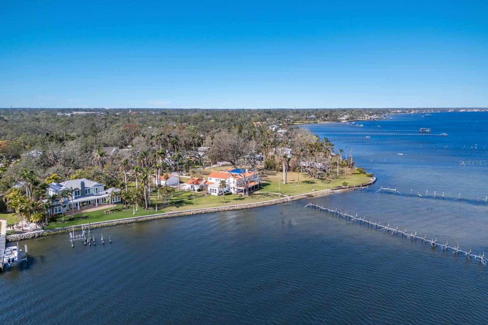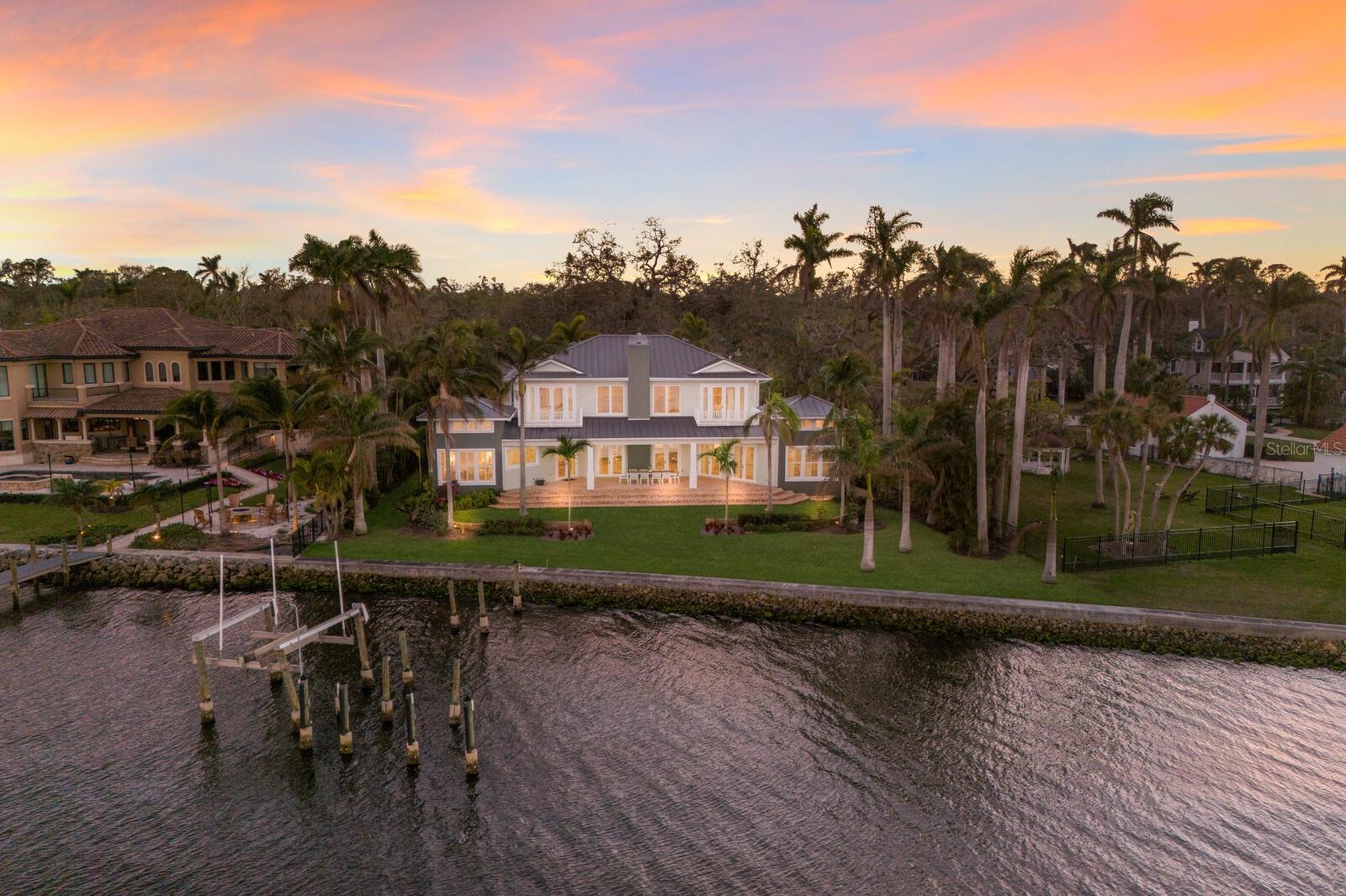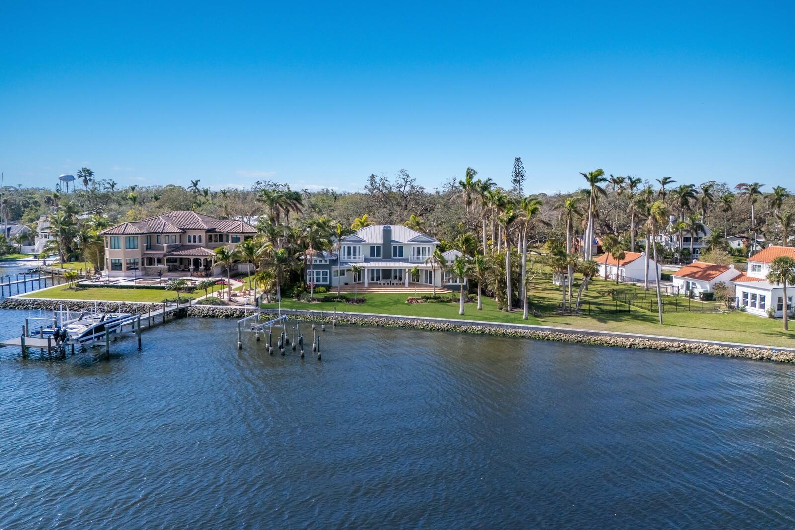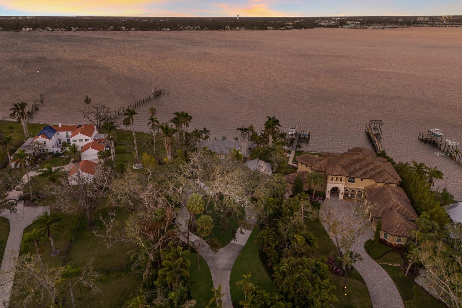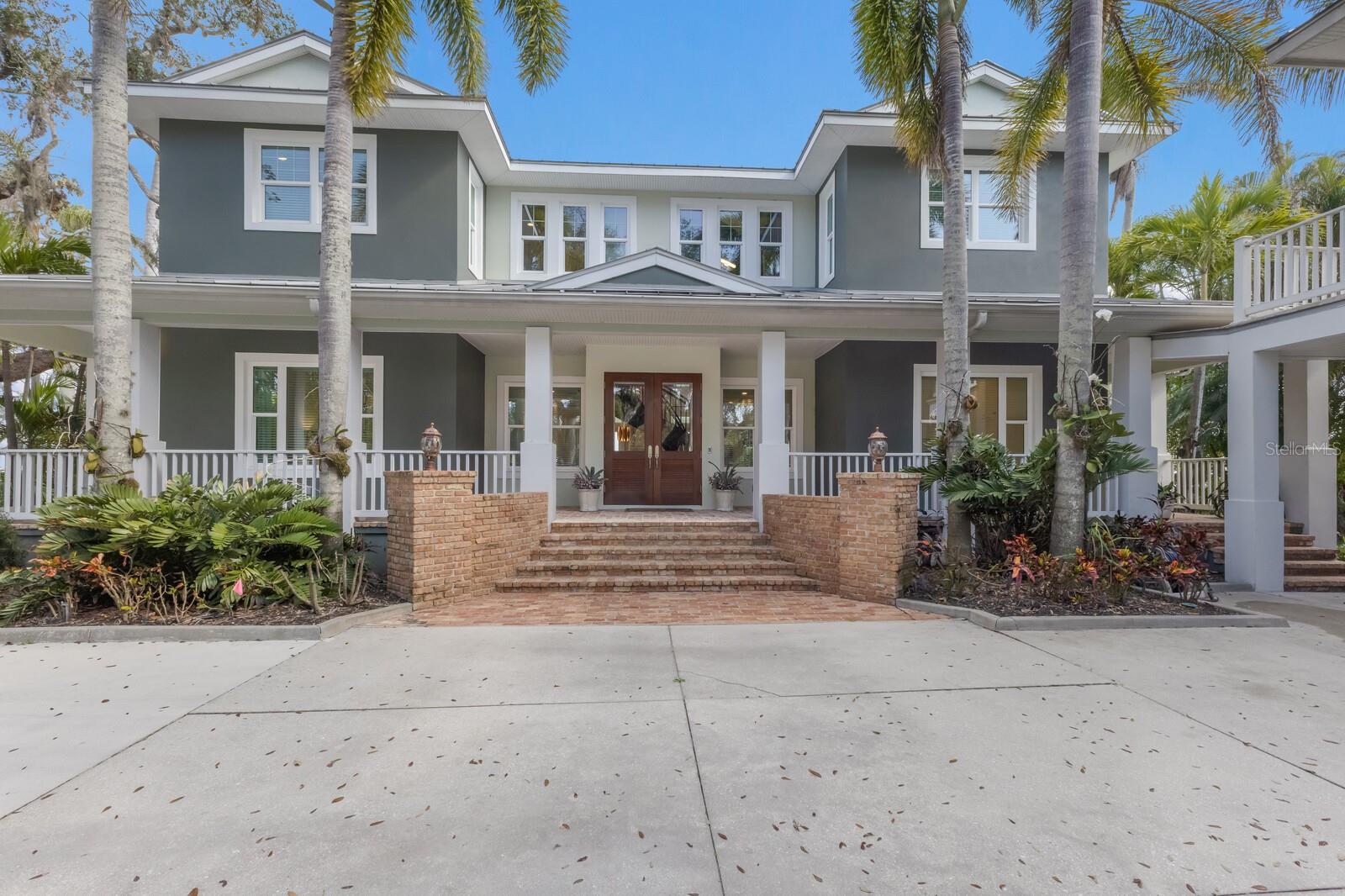 Elegant riverfront home with stunning views! This exquisite 4-bedroom, 4-1/2-bath custom-built residence, designed by Mark Sultana, offers an unmatched combination of luxury and comfort. Situated along the Manatee River, this property once served as the original landing for the Fogartyville/Palmetto Ferry and provides breathtaking water views from nearly every window. The grand entrance features a stunning custom circular staircase that sets the tone for the entire home, showcasing impeccable craftsmanship and attention to detail. The expansive living areas are highlighted by a full-height travertine fireplace, creating a striking focal point and an inviting atmosphere. Throughout the home, pecky cypress ceilings add unique character and warmth, while Brazilian cherry hardwood floors provide timeless elegance. Custom lighting enhances the elegant ambiance, further elevating the home’s refined interior. The thoughtfully designed layout boasts spacious bedrooms, luxurious bathrooms, and high-end finishes, ensuring both beauty and functionality in every corner. The spacious primary suite is a serene retreat with French doors leading to a private balcony with stunning river views, an oversized walk-in closet with custom built-ins to maximize storage and organization and a luxurious ensuite bathroom clad in polished travertine tiles and thoughtful high-end finishes. Guests will enjoy their own personal space in the garage apartment complete with private entrance, a fully appointed kitchen and a tiled bathroom. All windows and doors were replaced in 2023 with PGT hurricane-impact rated panels, ensuring protection during stormy weather without sacrificing style or natural light. The property also boasts two convenient laundry rooms and solar panels for enhanced energy efficiency while lowering monthly utility bills. Outside, mature landscaping surrounds the property, providing privacy and tranquility. A circular driveway welcomes guests and the front and rear porches are adorned with the timeless charm of Chicago bricks – all adding to the home's stately presence. Whether enjoying the serene river views (you have direct access to the Gulf with no bridges) or entertaining in style, this stunning residence is a true sanctuary for those seeking an extraordinary lifestyle. Enjoy a day at the world-renowned, sugar-sand beaches of Anna Maria Island and all the local island amenities, or take in the many restaurants, shops, museums and culture of nearby Downtown Bradenton – if that isn’t enough Sarasota and Tampa/St Pete are a quick trip away!