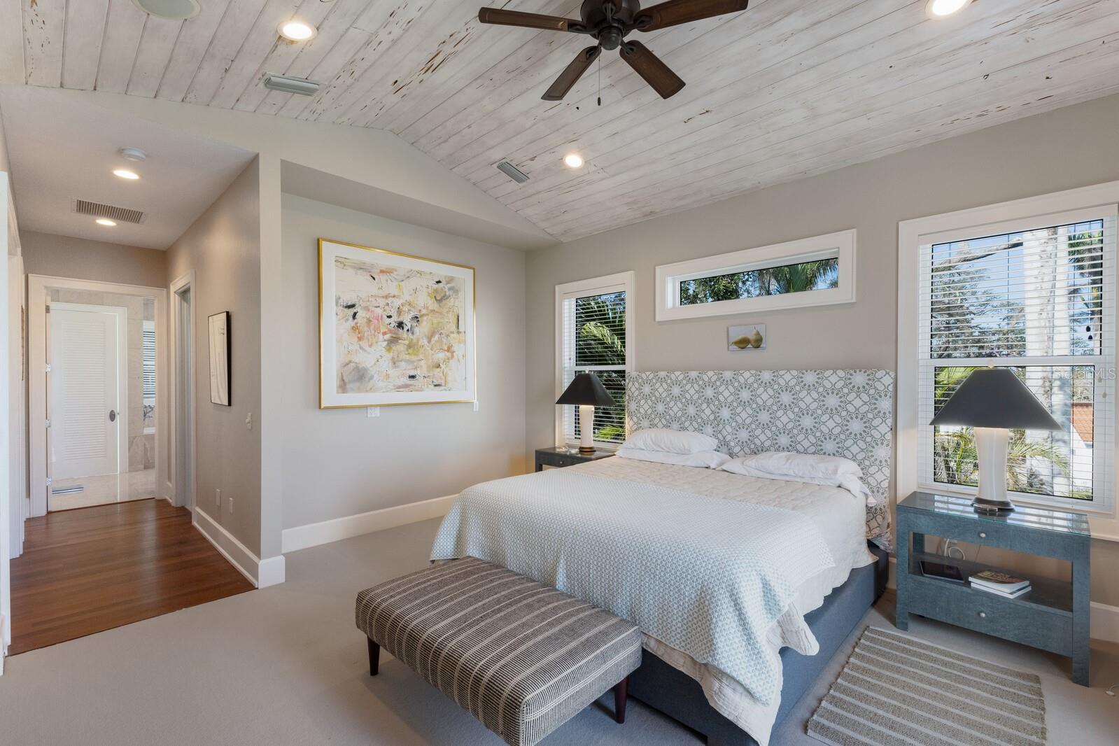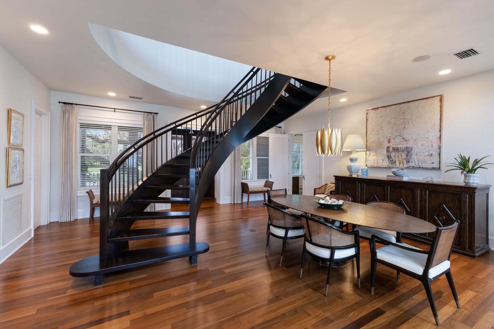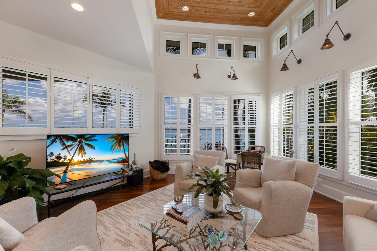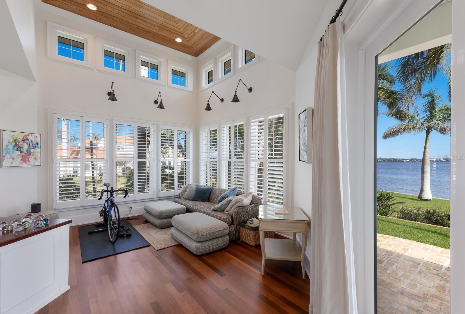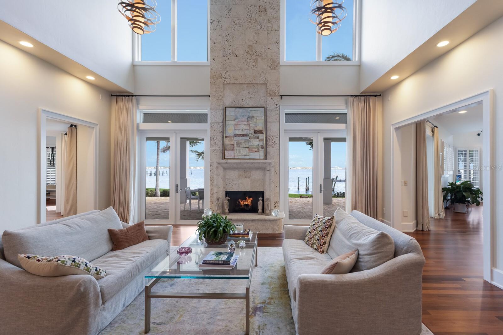 Elegant riverfront home with stunning views! This exquisite 4-bedroom, 4-1/2-bath custom-built residence, designed by Mark Sultana, offers an unmatched combination of luxury and comfort. Situated along the Manatee River, this property once served as the original landing for the Fogartyville/Palmetto Ferry and provides breathtaking water views from nearly every window. The grand entrance features a stunning custom circular staircase that sets the tone for the entire home, showcasing impeccable craftsmanship and attention to detail. The expansive living areas are highlighted by a full-height travertine fireplace, creating a striking focal point and an inviting atmosphere. Throughout the home, pecky cypress ceilings add unique character and warmth, while Brazilian cherry hardwood floors provide timeless elegance. Custom lighting enhances the elegant ambiance, further elevating the home’s refined interior. The thoughtfully designed layout boasts spacious bedrooms, luxurious bathrooms, and high-end finishes, ensuring both beauty and functionality in every corner. The spacious primary suite is a serene retreat with French doors leading to a private balcony with stunning river views, an oversized walk-in closet with custom built-ins to maximize storage and organization and a luxurious ensuite bathroom clad in polished travertine tiles and thoughtful high-end finishes. Guests will enjoy their own personal space in the garage apartment complete with private entrance, a fully appointed kitchen and a tiled bathroom. All windows and doors were replaced in 2023 with PGT hurricane-impact rated panels, ensuring protection during stormy weather without sacrificing style or natural light. The property also boasts two convenient laundry rooms and solar panels for enhanced energy efficiency while lowering monthly utility bills. Outside, mature landscaping surrounds the property, providing privacy and tranquility. A circular driveway welcomes guests and the front and rear porches are adorned with the timeless charm of Chicago bricks – all adding to the home's stately presence. Whether enjoying the serene river views (you have direct access to the Gulf with no bridges) or entertaining in style, this stunning residence is a true sanctuary for those seeking an extraordinary lifestyle. Enjoy a day at the world-renowned, sugar-sand beaches of Anna Maria Island and all the local island amenities, or take in the many restaurants, shops, museums and culture of nearby Downtown Bradenton – if that isn’t enough Sarasota and Tampa/St Pete are a quick trip away!