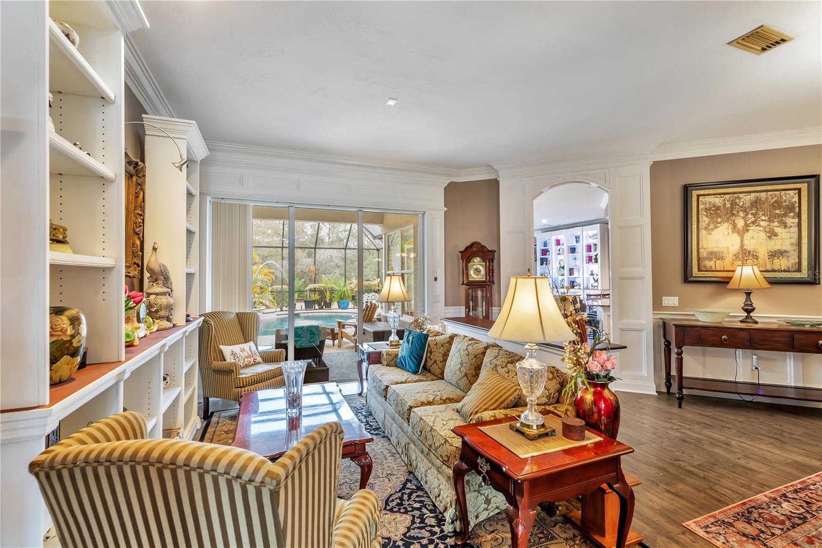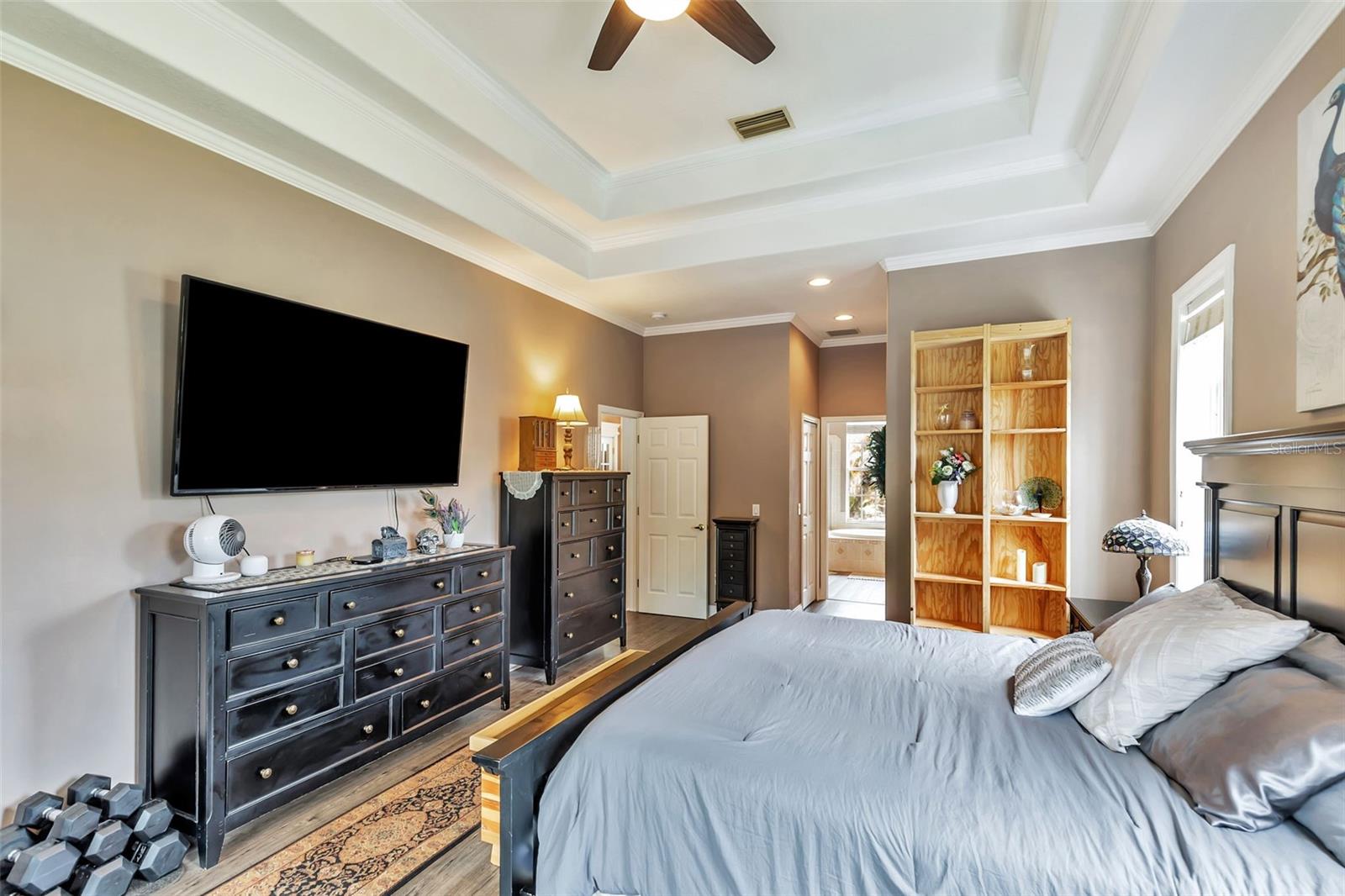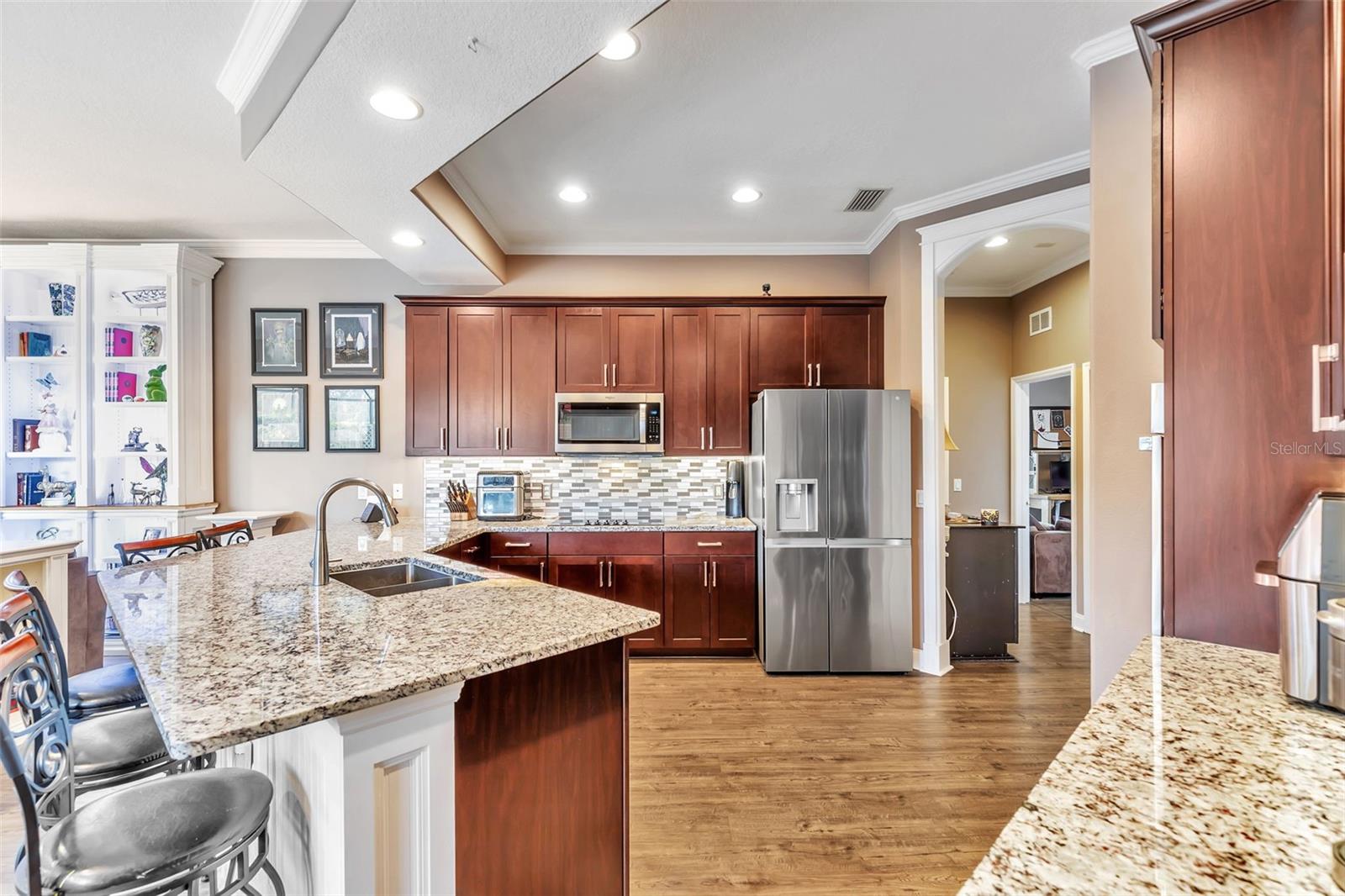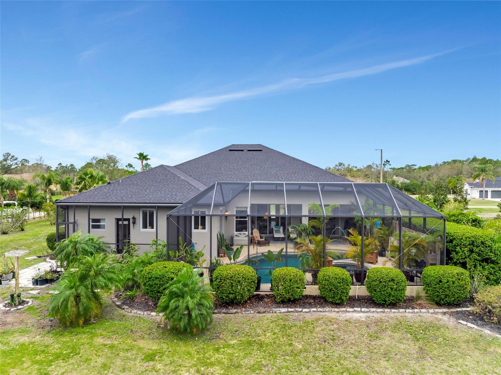 Situated on a private 1.3-acre lot, this stunning multi-generational home w/ 4-bedrooms, 3-bathrooms, plus den/flex room, offers the perfect blend of sophistication, privacy, and modern technology. Located on a secluded dead-end street in the exclusive neighborhood, Grand Oaks at Panther Ridge, this estate-style residence is designed for luxury living. Step through grand double glass doors into an elegant, light-filled retreat, where soaring tray ceilings, intricate custom crown molding, and handcrafted wood-trimmed archways exude sophistication and showcase impeccable craftsmanship. Newly installed, MOHAWK luxury vinyl wood plank flooring, adds warmth and refinement, seamlessly complementing the home’s timeless design. As you enter, your eyes are immediately drawn through the expansive sliding glass doors to the breathtaking view of the sparkling pool, creating a seamless connection between indoor luxury and outdoor serenity. The heart of the home is a newly remodeled chef’s kitchen, designed to impress with 42” custom cabinetry featuring app-controlled under-cabinet lighting, a striking glass backsplash, and luxurious granite countertops. A spacious breakfast bar serves as the perfect spot for morning coffee or entertaining guests, while a separate, thoughtfully designed coffee station offers a dedicated space for brewing your favorite beverages. Complete with sleek stainless steel appliances—including a WiFi-enabled oven—this kitchen seamlessly blends modern technology with timeless elegance, making it a true culinary masterpiece. Designed for effortless indoor-outdoor living, the expansive great room perfectly extends to a private backyard retreat. A resort-style pool and spa, enhanced with app-controlled lighting and tranquil fountains, set the stage for ultimate relaxation and entertainment. The large, covered patio and spacious pool deck provide ample room for lounging and dining under the open sky, while lush landscaping and fruit trees add to the serene ambiance of this outdoor paradise. This home is packed with premium upgrades, including: NEW LANDSCAPING with lush greenery and a variety of Fruit Trees, adding beauty and functionality to the outdoor space NEW ROOF (2023) for lasting peace of mind NEW POOL SCREEN (2021) for enhanced outdoor enjoyment RING CAMERA & DOORBELL NEW LED LIGHTING & HUNTER CEILING FANS NEW DETACHED SHED—perfect for storage or a workshop Paver Patio & Fresh Landscaping throughout The thoughtfully designed split floor plan ensures ultimate privacy, featuring a dedicated office w/ closet perfect for remote work or a quiet retreat. Exceptional conveniences include a spacious indoor laundry room and a three-car side-entry garage for added functionality and curb appeal. Nestled in the exclusive neighborhood, Grand Oaks at Panther Ridge, this community offers the perfect blend of luxury and convenience. With low HOA fees, no CDD fees, and the rare benefit of boat and RV parking, residents enjoy estate-style living in a peaceful, natural setting. Just minutes away, you'll find the vibrant energy of Downtown Lakewood Ranch, the charm of Waterside Place, premier shopping at UTC Mall, and effortless travel via Sarasota Airport. Experience the best of Florida living in this exceptional location. Discover a lifestyle of elegance, modern convenience, and serene beauty in this exceptional executive home. Don’t miss the opportunity to make it yours—schedule your private tour today!