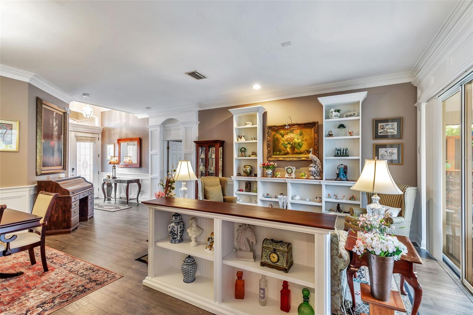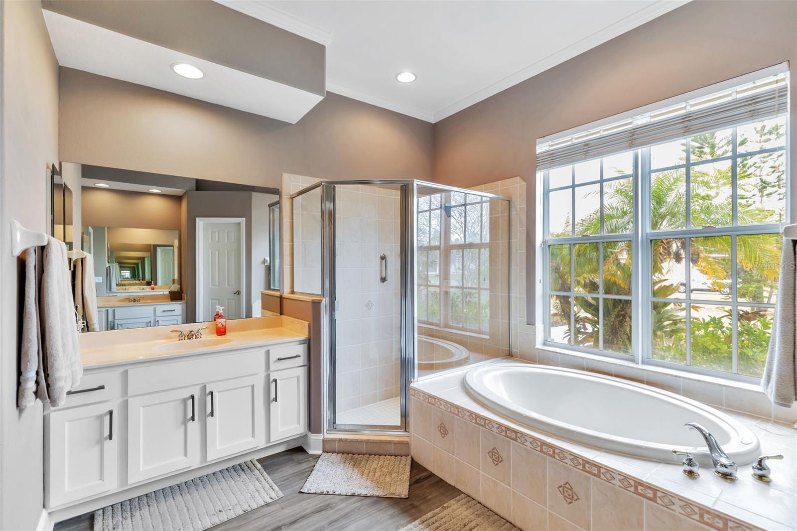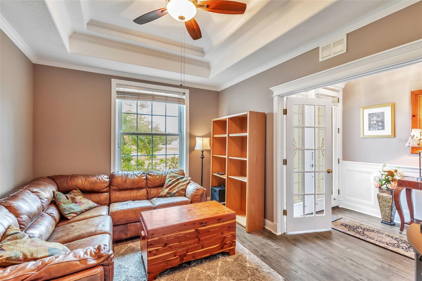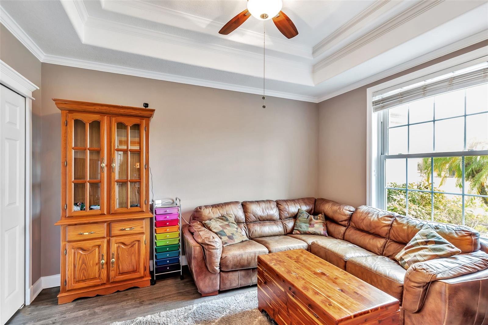 Situated on a private 1.3-acre lot, this stunning multi-generational home w/ 4-bedrooms, 3-bathrooms, plus den/flex room, offers the perfect blend of sophistication, privacy, and modern technology. Located on a secluded dead-end street in the exclusive neighborhood, Grand Oaks at Panther Ridge, this estate-style residence is designed for luxury living. Step through grand double glass doors into an elegant, light-filled retreat, where soaring tray ceilings, intricate custom crown molding, and handcrafted wood-trimmed archways exude sophistication and showcase impeccable craftsmanship. Newly installed, MOHAWK luxury vinyl wood plank flooring, adds warmth and refinement, seamlessly complementing the home’s timeless design. As you enter, your eyes are immediately drawn through the expansive sliding glass doors to the breathtaking view of the sparkling pool, creating a seamless connection between indoor luxury and outdoor serenity. The heart of the home is a newly remodeled chef’s kitchen, designed to impress with 42” custom cabinetry featuring app-controlled under-cabinet lighting, a striking glass backsplash, and luxurious granite countertops. A spacious breakfast bar serves as the perfect spot for morning coffee or entertaining guests, while a separate, thoughtfully designed coffee station offers a dedicated space for brewing your favorite beverages. Complete with sleek stainless steel appliances—including a WiFi-enabled oven—this kitchen seamlessly blends modern technology with timeless elegance, making it a true culinary masterpiece. Designed for effortless indoor-outdoor living, the expansive great room perfectly extends to a private backyard retreat. A resort-style pool and spa, enhanced with app-controlled lighting and tranquil fountains, set the stage for ultimate relaxation and entertainment. The large, covered patio and spacious pool deck provide ample room for lounging and dining under the open sky, while lush landscaping and fruit trees add to the serene ambiance of this outdoor paradise. This home is packed with premium upgrades, including: NEW LANDSCAPING with lush greenery and a variety of Fruit Trees, adding beauty and functionality to the outdoor space NEW ROOF (2023) for lasting peace of mind NEW POOL SCREEN (2021) for enhanced outdoor enjoyment RING CAMERA & DOORBELL NEW LED LIGHTING & HUNTER CEILING FANS NEW DETACHED SHED—perfect for storage or a workshop Paver Patio & Fresh Landscaping throughout The thoughtfully designed split floor plan ensures ultimate privacy, featuring a dedicated office w/ closet perfect for remote work or a quiet retreat. Exceptional conveniences include a spacious indoor laundry room and a three-car side-entry garage for added functionality and curb appeal. Nestled in the exclusive neighborhood, Grand Oaks at Panther Ridge, this community offers the perfect blend of luxury and convenience. With low HOA fees, no CDD fees, and the rare benefit of boat and RV parking, residents enjoy estate-style living in a peaceful, natural setting. Just minutes away, you'll find the vibrant energy of Downtown Lakewood Ranch, the charm of Waterside Place, premier shopping at UTC Mall, and effortless travel via Sarasota Airport. Experience the best of Florida living in this exceptional location. Discover a lifestyle of elegance, modern convenience, and serene beauty in this exceptional executive home. Don’t miss the opportunity to make it yours—schedule your private tour today!