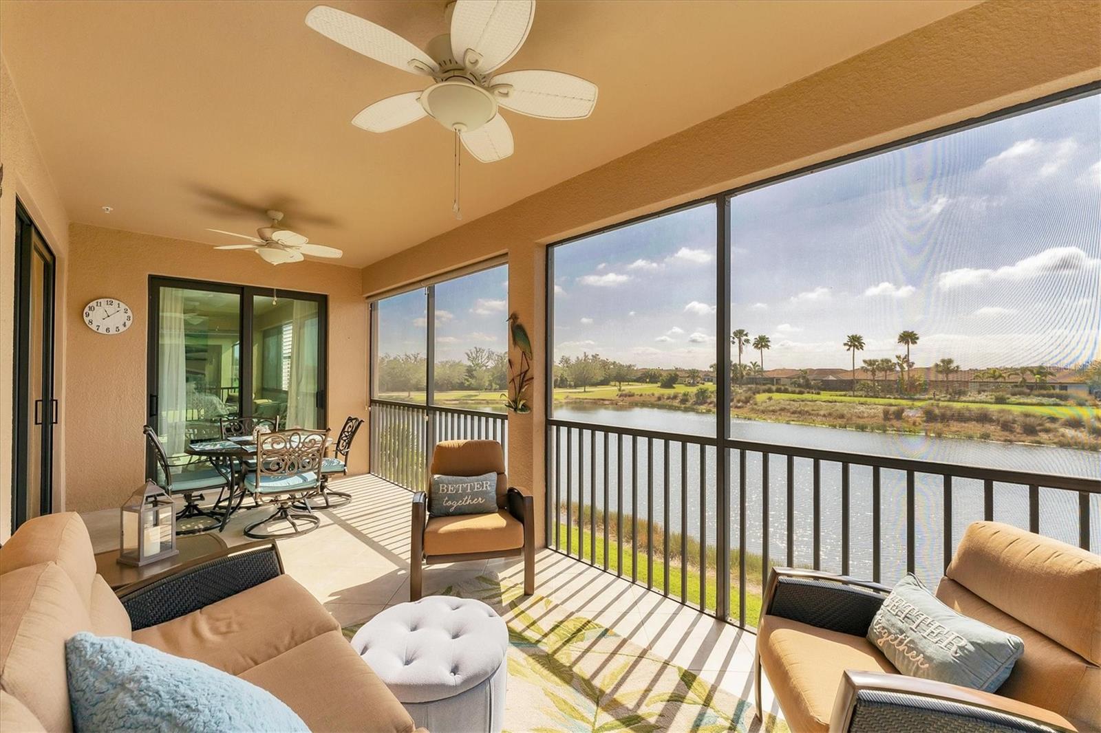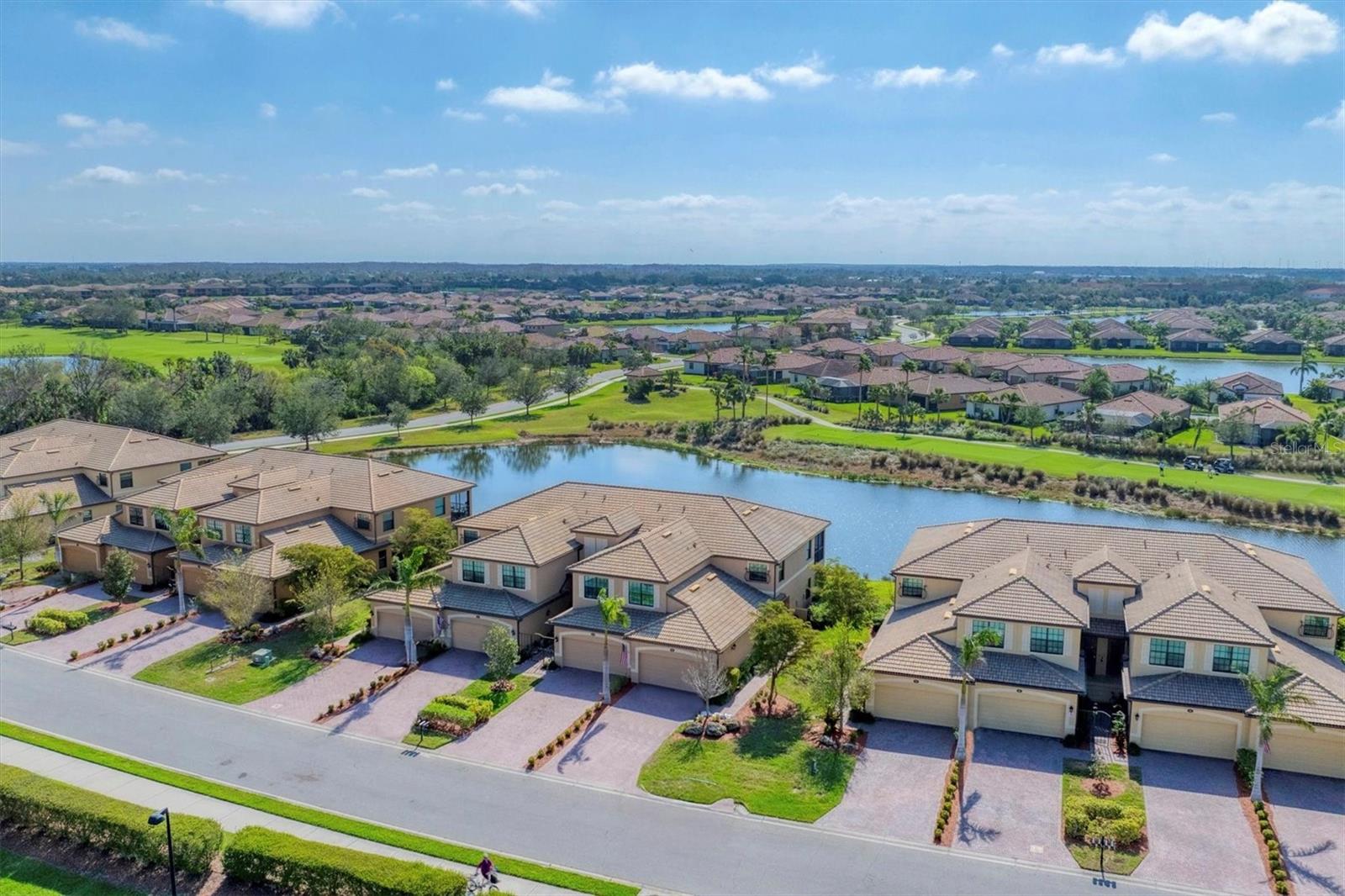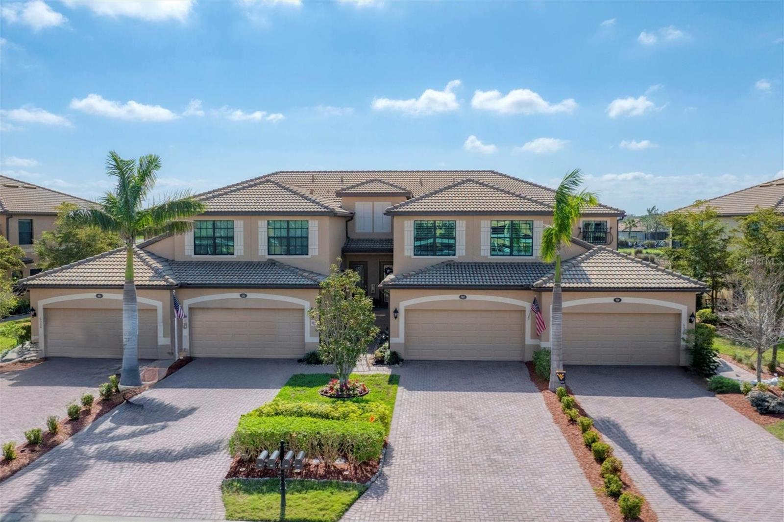 YOUR WAIT ENDS HERE, THIS IS THE ONE! NO DETAIL LEFT UNTOUCHED, UPGRADES THROUGHOUT! NO CARPET! Separate yourself from the rest in this UNIQUE coach home within the gated River Strand Golf & Country Club! Newer building 2017, with social membership included. This meticulously maintained home will impress you from the moment you walk in. A spacious abode offering 3 bedrooms/ 2 bathrooms and over 2,000sf of living space. With a great view too! You'll find upgraded tile flooring, white cabinets, stainless steel appliances, plantation shutters, and more updates around the home. This floor plan maximizes your space in every room. The spacious living area is perfect for relaxing or entertaining guests and flows seamlessly in to the rest of the home. The sleek kitchen offers an eat-in space with views of the adjacent championship golf course and pond. Or the traditional dining room has plenty of space to accommodate. Through the sliding glass doors is a large and screened in patio with amazing vista views. The primary suite is designed for maximum privacy with a large en-suite bathroom that has also been upgraded. Family and guests can enjoy the 2 bedrooms and bathroom found on the other side of the home. Thoughtfully cared for throughout this is more than just a coach home, it's a lifestyle. To top it all off the 2 car garage provides the space for your vehicles and/ or golf carts. This community is well known for its recently redesigned 27-hole championship golf course, bring your A-game! Including a clubhouse with multiple dining options, 2 community pools and spas, tiki bar, 6 satellite pools, 2 fitness centers, tennis and pickle ball courts and so many social and fitness events and activities! Ideally located just minutes to I-75, with the new Marketplace at Heritage Harbour right outside the gates. Not far from the white sandy beaches our gulf coast offers too. Come experience the best of what River Strand has to offer, you won't be disappointed!