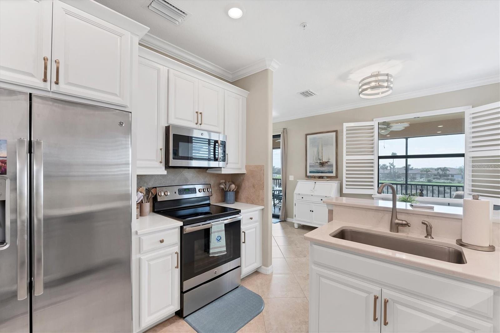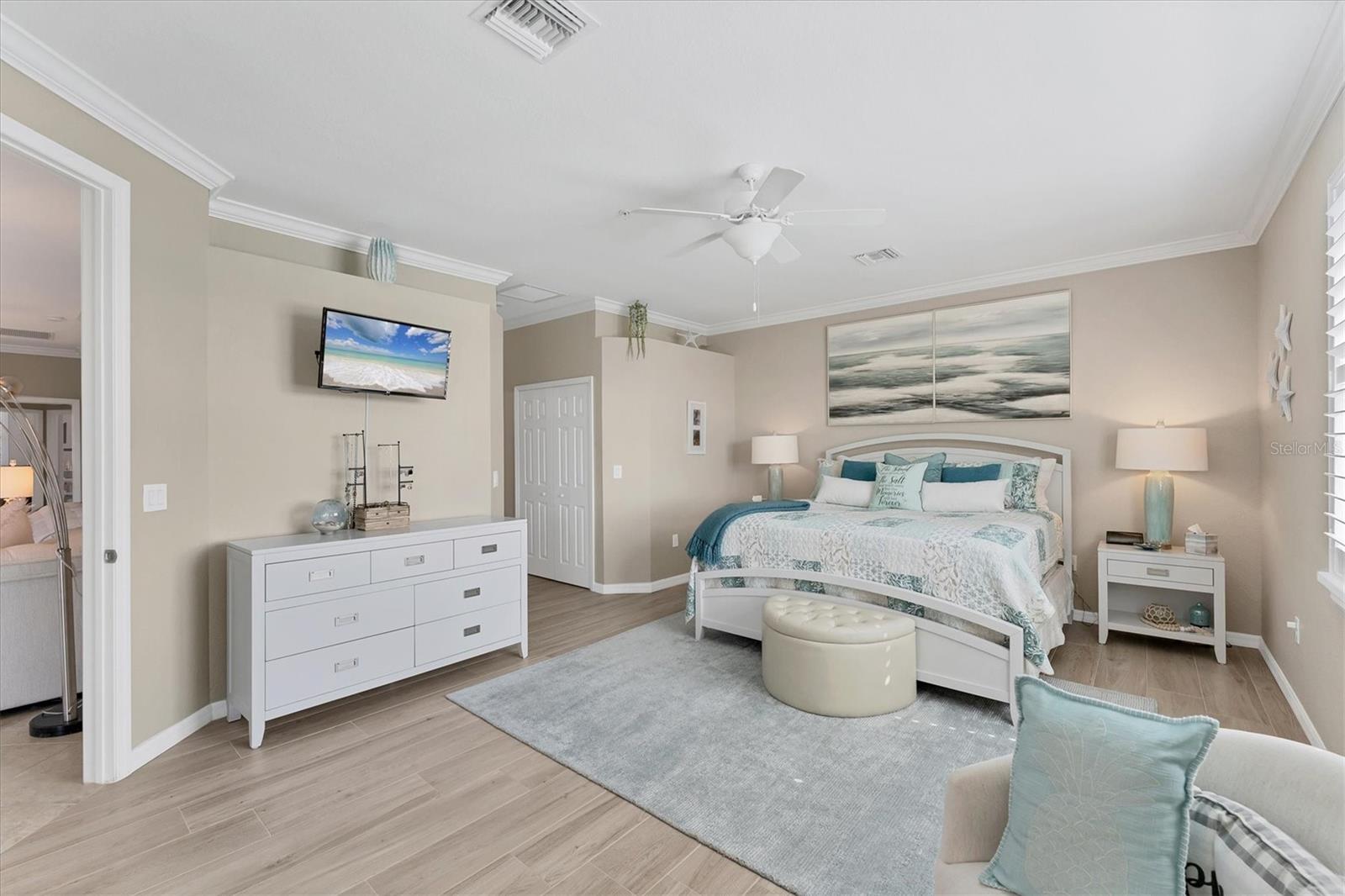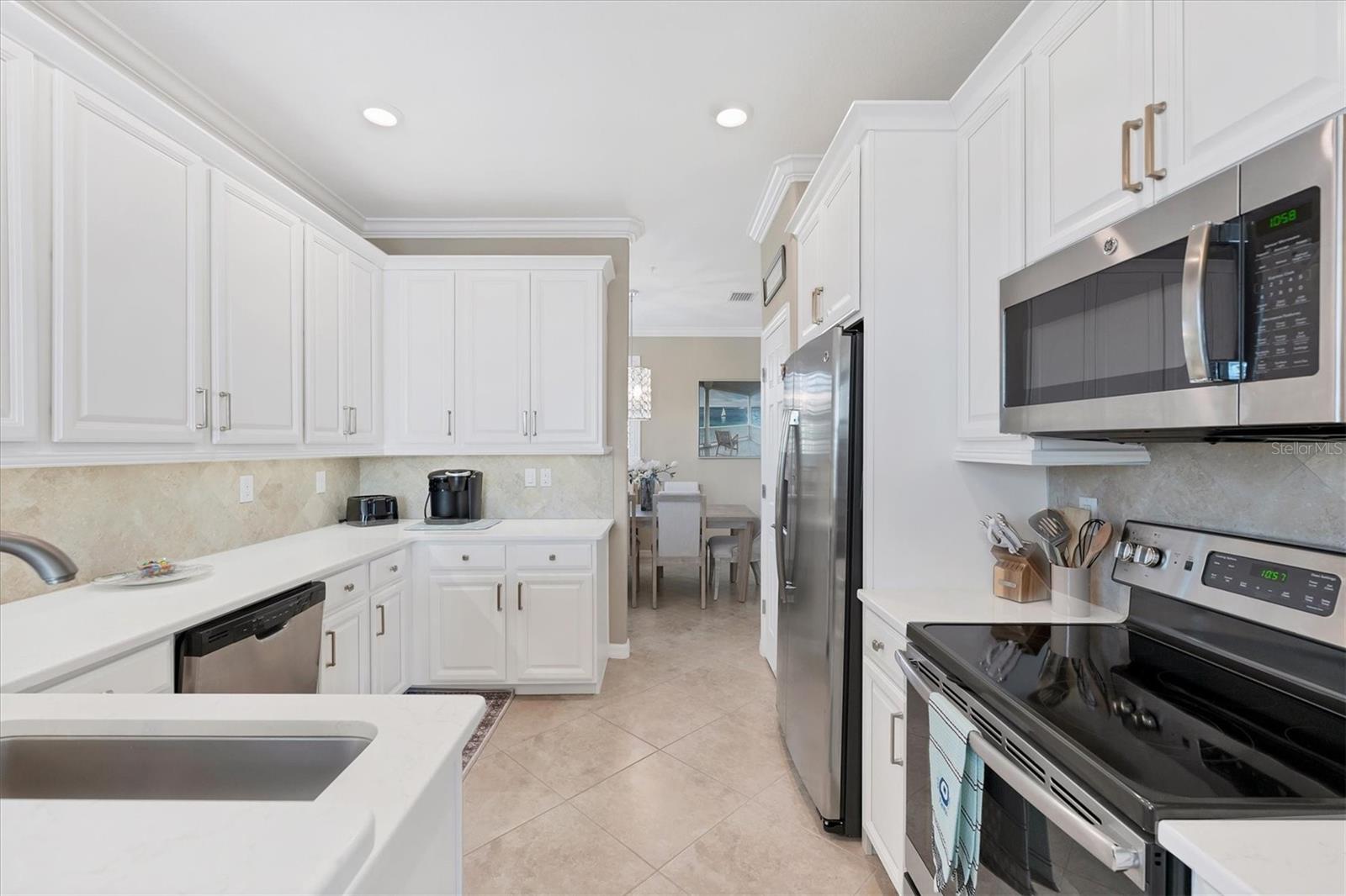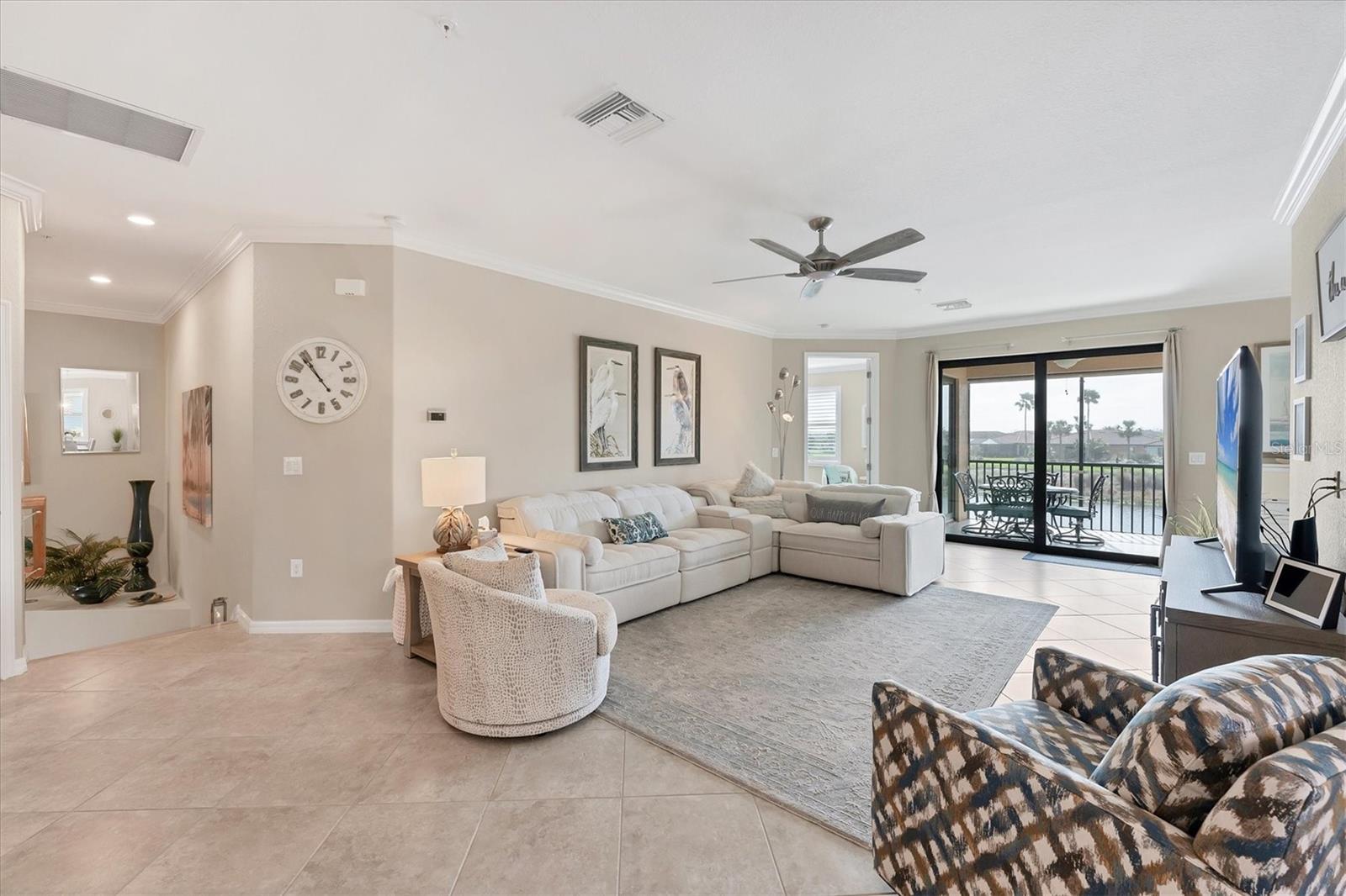 YOUR WAIT ENDS HERE, THIS IS THE ONE! NO DETAIL LEFT UNTOUCHED, UPGRADES THROUGHOUT! NO CARPET! Separate yourself from the rest in this UNIQUE coach home within the gated River Strand Golf & Country Club! Newer building 2017, with social membership included. This meticulously maintained home will impress you from the moment you walk in. A spacious abode offering 3 bedrooms/ 2 bathrooms and over 2,000sf of living space. With a great view too! You'll find upgraded tile flooring, white cabinets, stainless steel appliances, plantation shutters, and more updates around the home. This floor plan maximizes your space in every room. The spacious living area is perfect for relaxing or entertaining guests and flows seamlessly in to the rest of the home. The sleek kitchen offers an eat-in space with views of the adjacent championship golf course and pond. Or the traditional dining room has plenty of space to accommodate. Through the sliding glass doors is a large and screened in patio with amazing vista views. The primary suite is designed for maximum privacy with a large en-suite bathroom that has also been upgraded. Family and guests can enjoy the 2 bedrooms and bathroom found on the other side of the home. Thoughtfully cared for throughout this is more than just a coach home, it's a lifestyle. To top it all off the 2 car garage provides the space for your vehicles and/ or golf carts. This community is well known for its recently redesigned 27-hole championship golf course, bring your A-game! Including a clubhouse with multiple dining options, 2 community pools and spas, tiki bar, 6 satellite pools, 2 fitness centers, tennis and pickle ball courts and so many social and fitness events and activities! Ideally located just minutes to I-75, with the new Marketplace at Heritage Harbour right outside the gates. Not far from the white sandy beaches our gulf coast offers too. Come experience the best of what River Strand has to offer, you won't be disappointed!