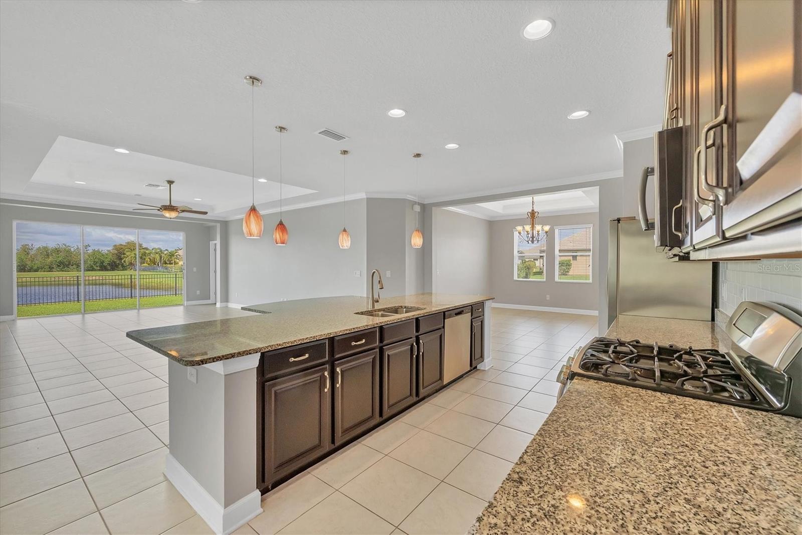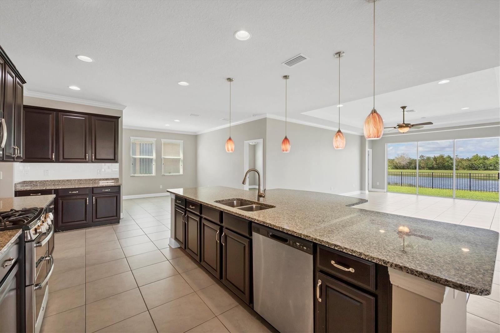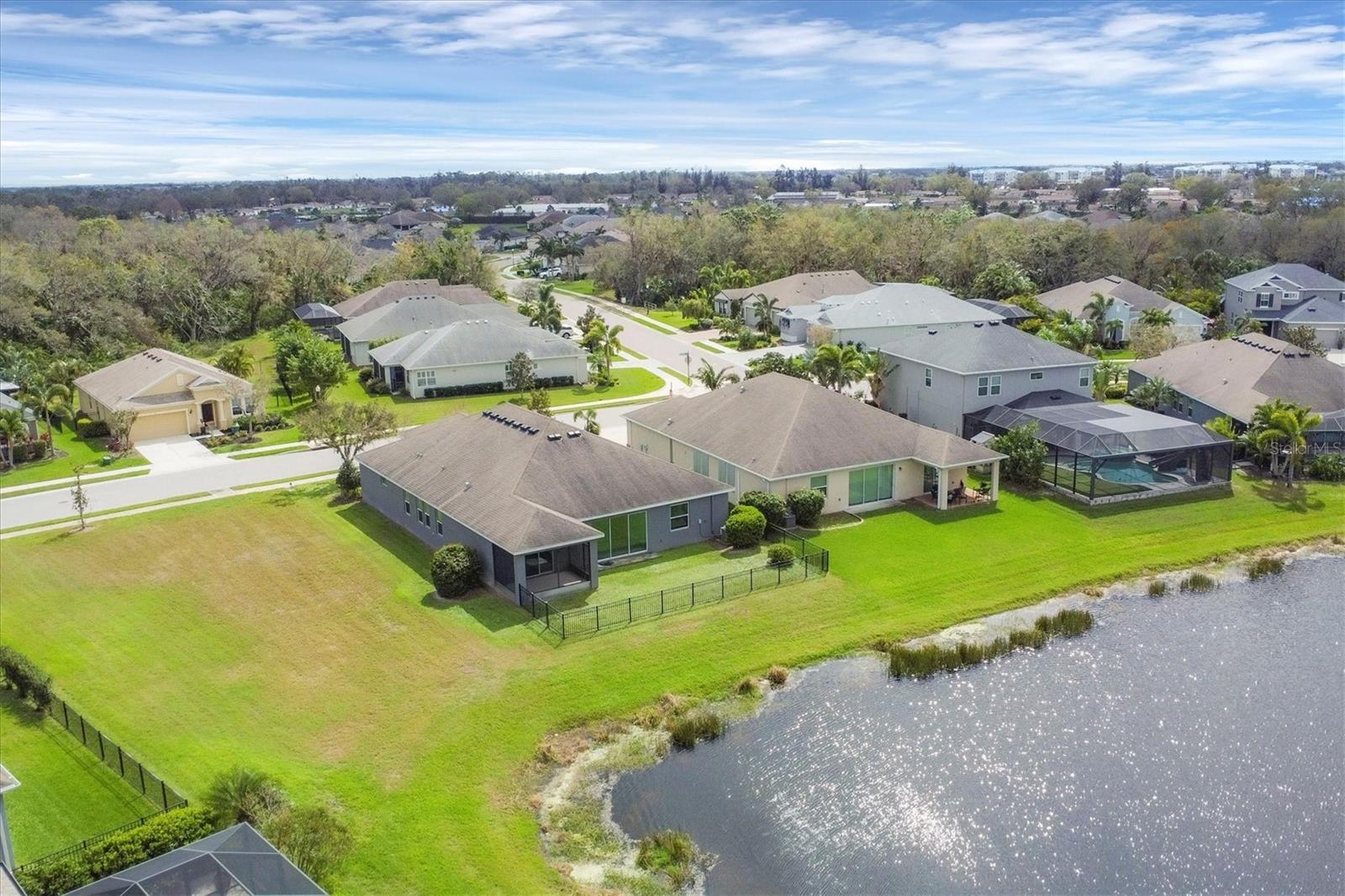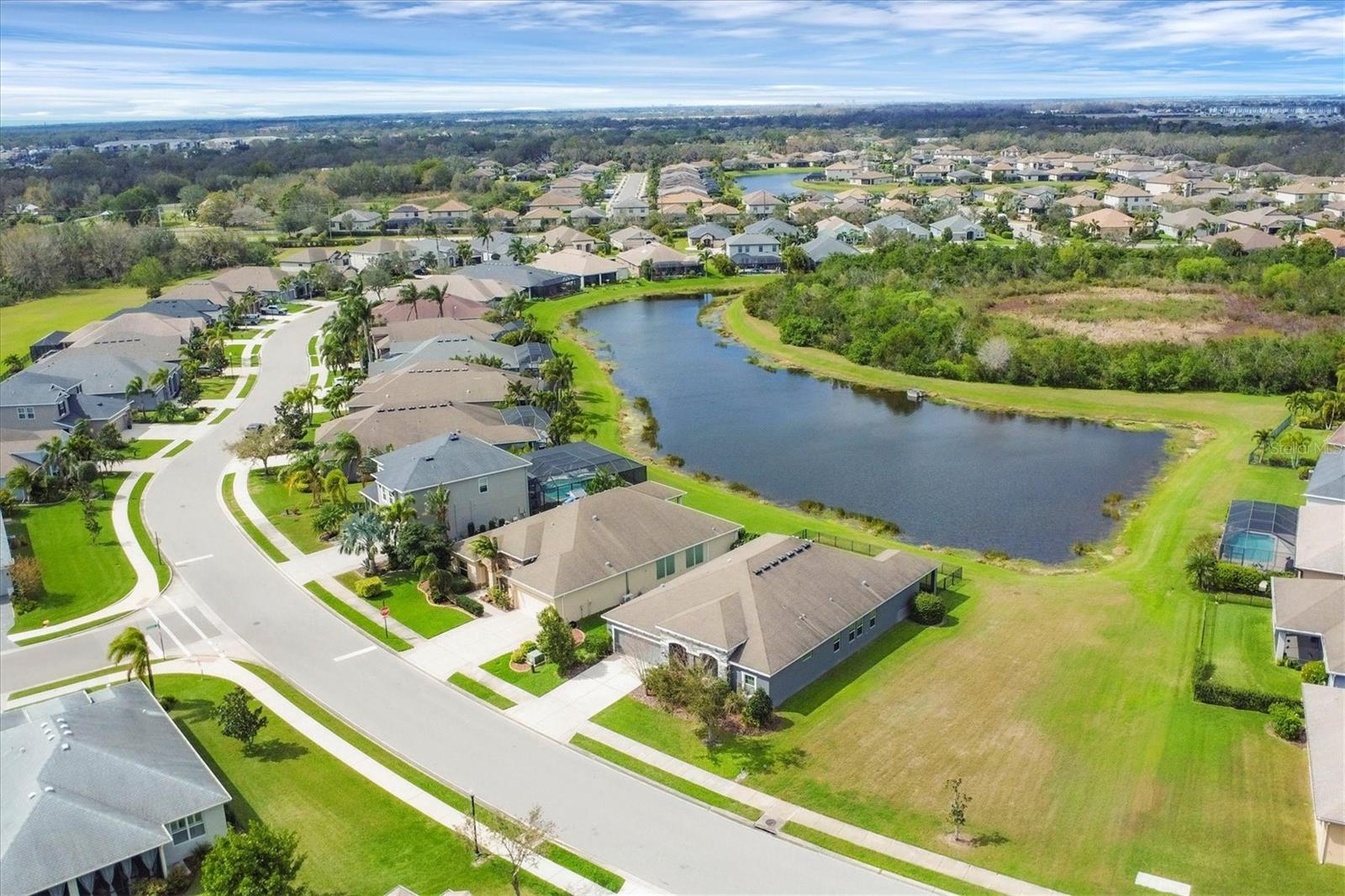PRICE IMPROVEMENT!!This executive-style home offers 5 spacious bedrooms and 3 1/2 bathrooms with 2,810 sq ft, perfectly positioned to capture stunning lakefront and preserve views. With high ceilings and an open, light-filled floorplan, the home exudes elegance and warmth. Ceramic tile flows throughout the main living areas, while the gourmet kitchen boasts wood cabinets, granite countertops, and a large island, ideal for cooking and entertaining. Tray ceilings and crown molding add a touch of sophistication. Additional features include a 2-car tandem garage, a screened lanai for enjoying the outdoors, and an energy-efficient tankless water heater, making this home both luxurious and practical. Gated community amenties include 2 pools, tennis and pickleball courts, fishing pier, fitness center, biking trails, clubhouse and over 300 acres of nature preserve!