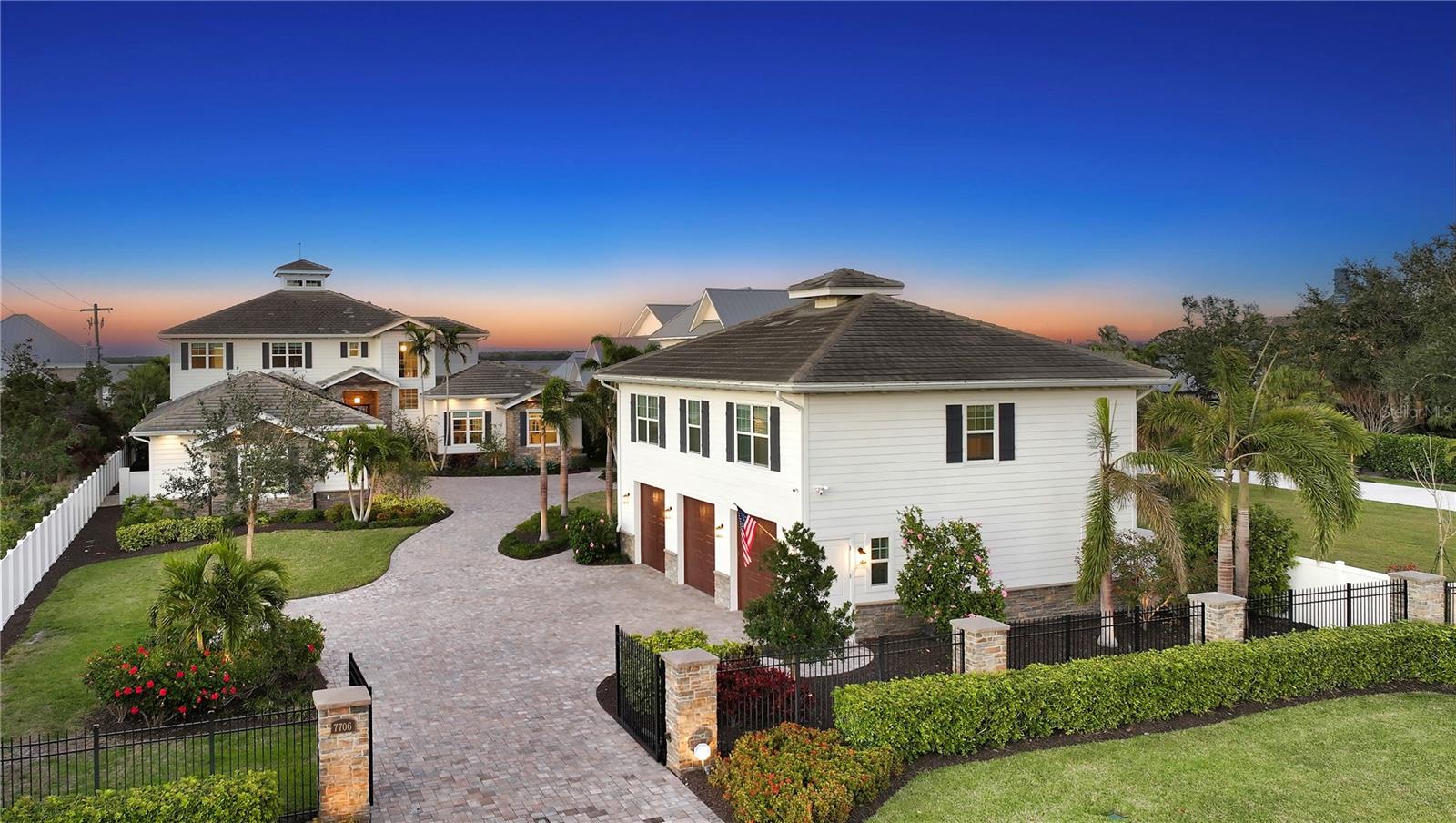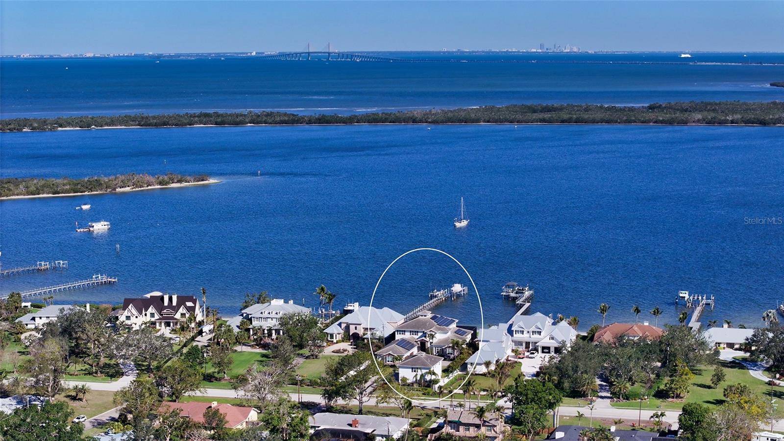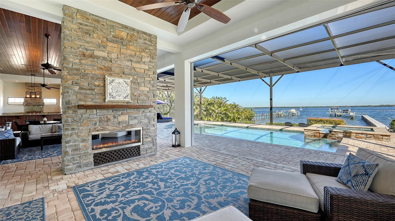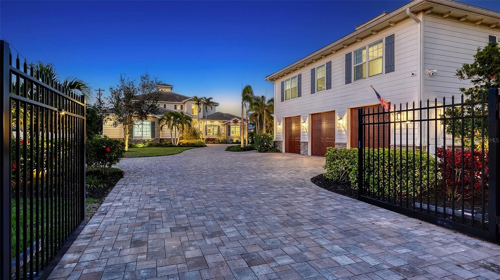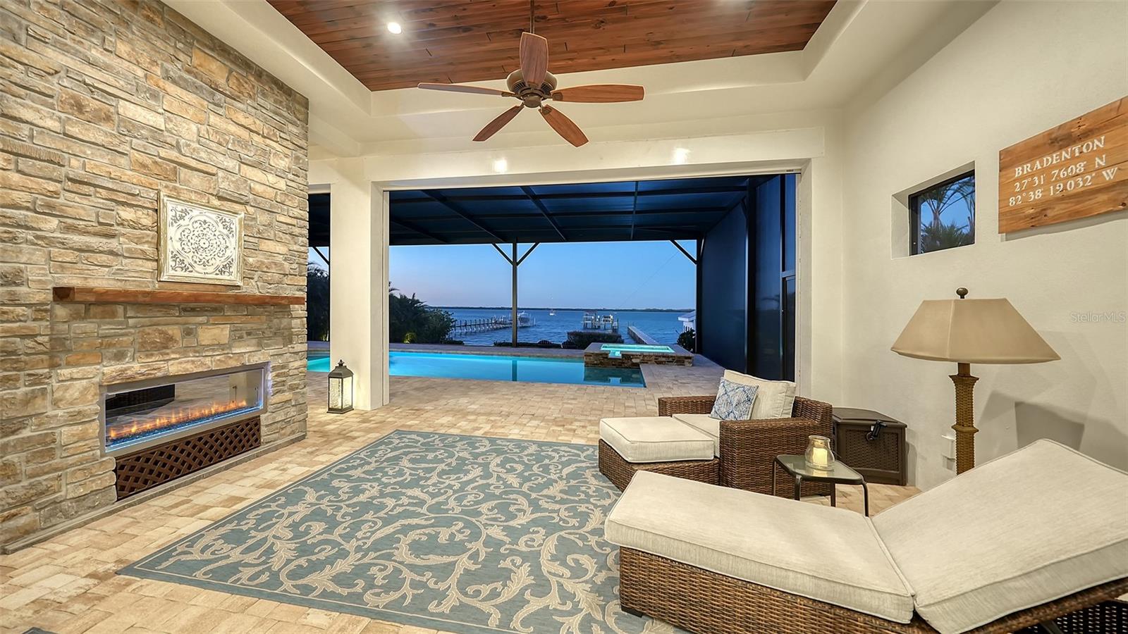 Embodying the pinnacle of storm-resilient luxury, this exceptional waterfront estate is thoughtfully fortified with premier safety features. Solar panels paired with backup batteries seamlessly operate the first floor of the main home and fully power the guest house during outages. A 500-gallon buried propane tank, concrete roof tiles, hurricane impact glass throughout, and a full suite of electronic and metal hurricane shutters — including five remote-controlled systems enclosing the main floor covered lanai and second-floor remote screens — offer peace of mind through every season. A true boater’s paradise on the Manatee River, this modern custom estate offers direct access to the Gulf of Mexico, with idyllic destinations like Anna Maria Island, Longboat Key, Sarasota, and St. Petersburg just moments away by water. Built in 2020 and spanning 6,621 square feet, the residence combines architectural elegance with cutting-edge smart home technology for effortless living. Situated on elevated, flood-free ground, the home has weathered all storms unscathed, according to the owner. The main residence and 1,344-square-foot guest home together feature a seven-car garage, ideal for collectors or additional storage. Inside, five bedrooms, five full and two half baths are thoughtfully designed with premium finishes, including engineered hardwood flooring and hurricane-rated materials. The primary suite is a serene retreat, boasting a luxurious steam shower with 13 spray heads, soaking tub, towel warmers, and travertine tile. A gourmet kitchen is equipped with Wolf, Sub-Zero, and Bosch appliances, dual islands, and an expansive walk-in pantry with a built-in Sub-Zero freezer. Designed for grand entertaining, the living room features coffered ceilings, a gas fireplace, and custom cabinetry, while the expansive lanai redefines outdoor living. Nearly 3,800 square feet of screened space includes a bespoke outdoor kitchen, two-sided fireplace, saltwater pool with spa and sun shelf, and a poolside half bath—all secured by remote hurricane shutters. The guest home offers two bedrooms, a luxurious kitchen, impact glass, and a private balcony. Additional features include an electronic gated entry, lightning and surge protection, cement roof shingles, and a solar-powered system with four backup batteries. Boating enthusiasts will appreciate the five-foot TREX dock with a 16,000-pound boat lift, a 4,500-pound personal craft lift, and a powered utility shed. A private weather station provides real-time monitoring. Located within walking distance of De Soto National Memorial Park, this one-of-a-kind estate offers an unmatched lifestyle of safety, sophistication, and waterfront serenity.