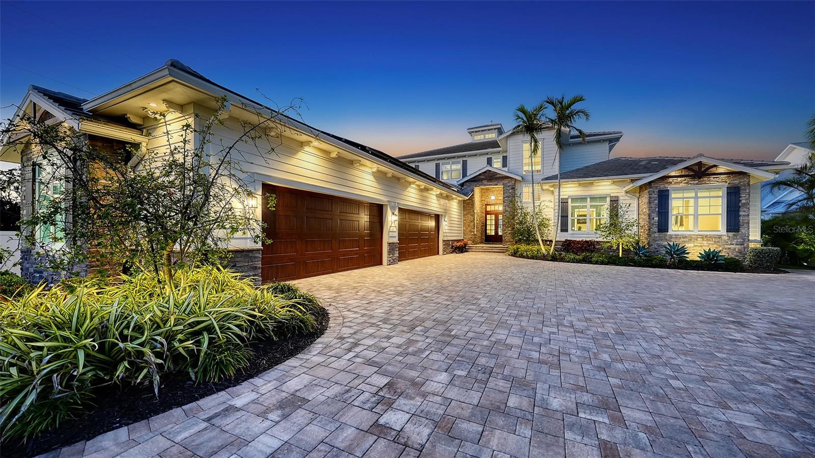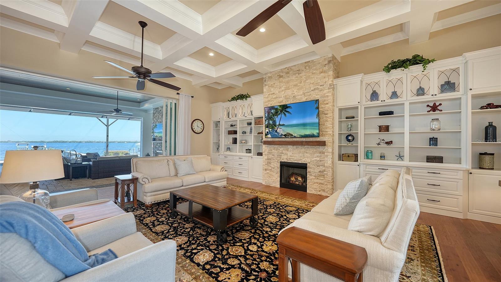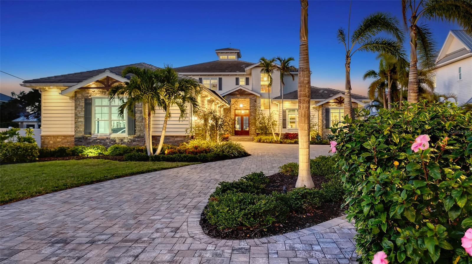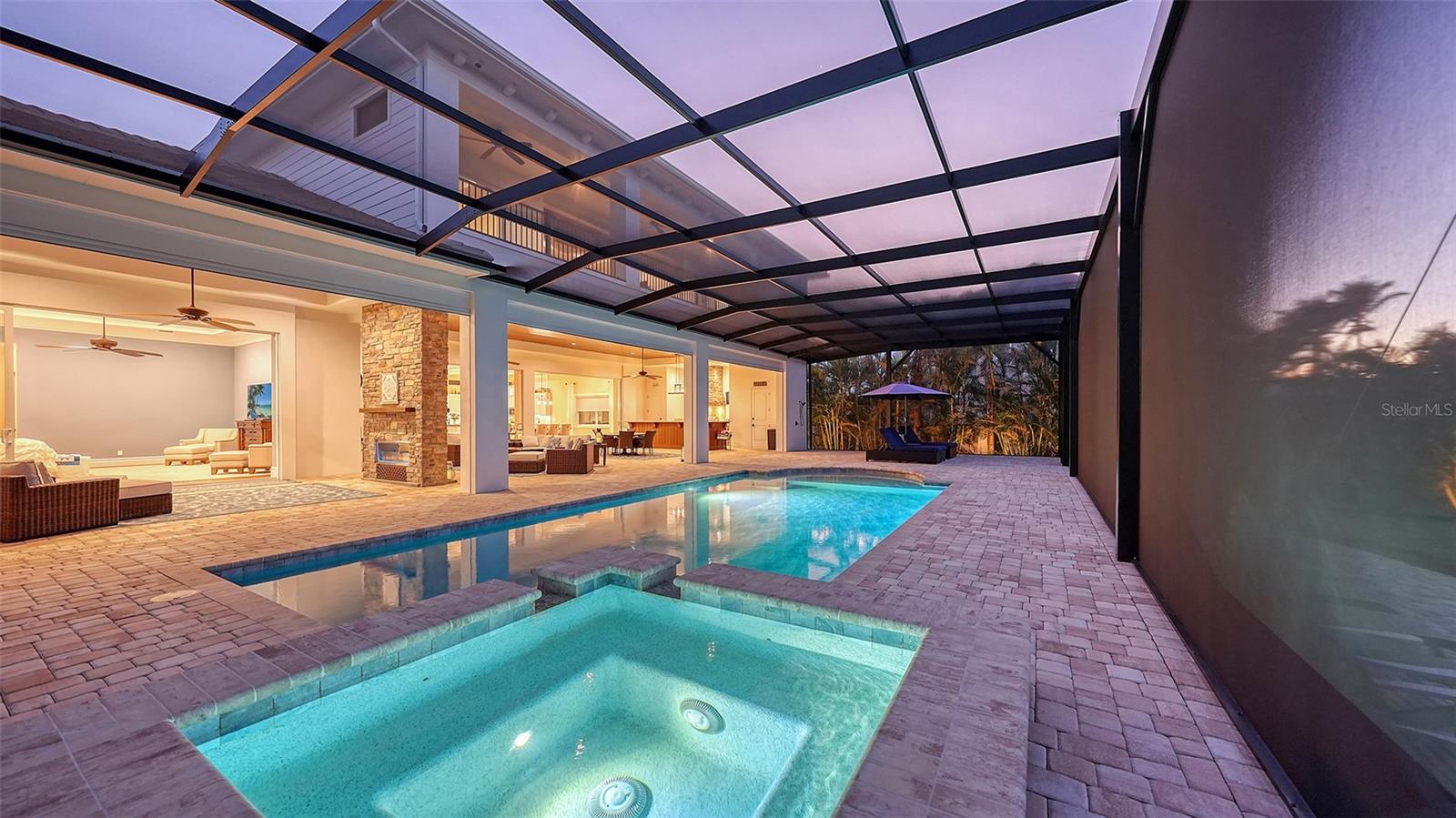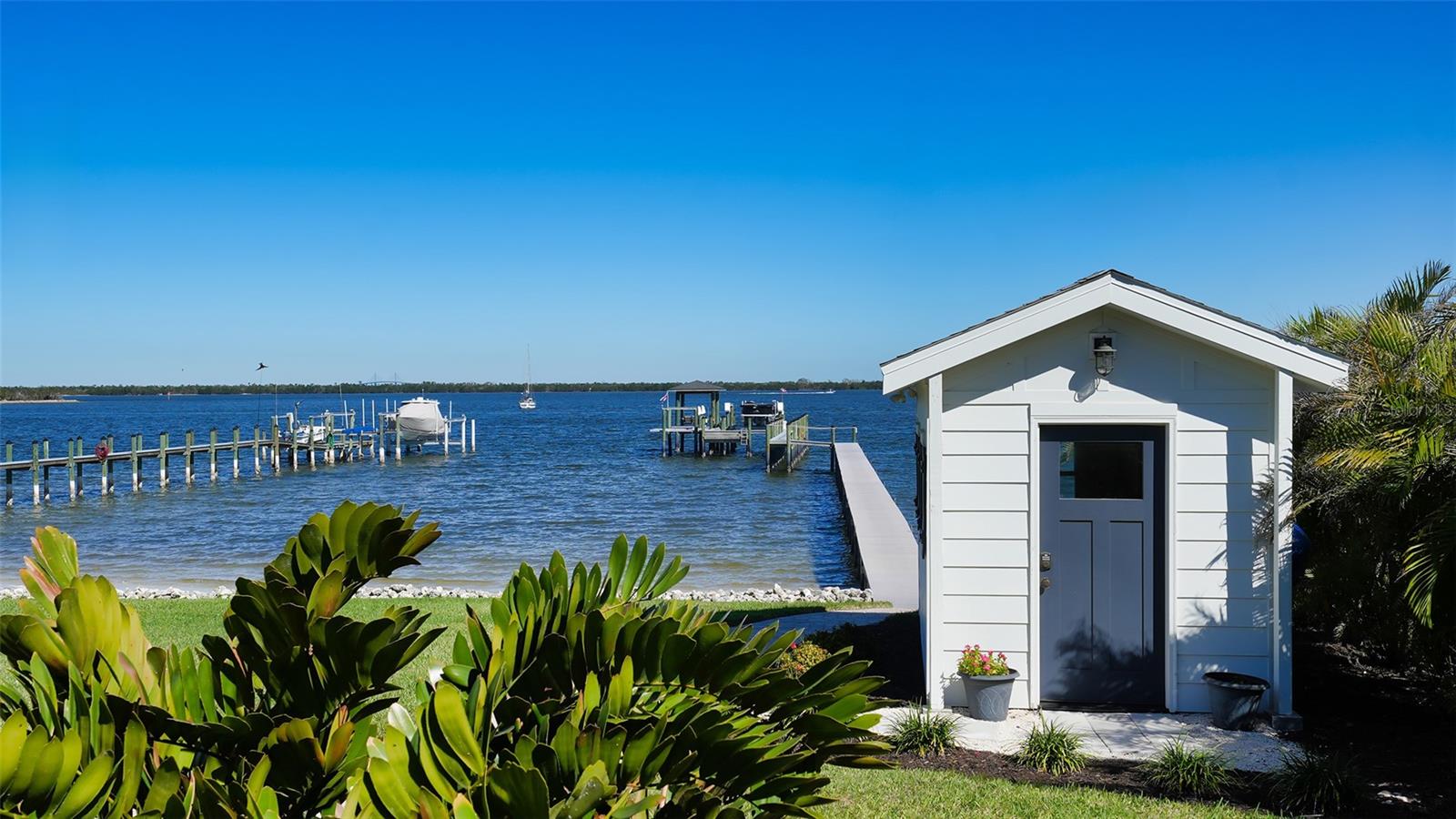 Embodying the pinnacle of storm-resilient luxury, this exceptional waterfront estate is thoughtfully fortified with premier safety features. Solar panels paired with backup batteries seamlessly operate the first floor of the main home and fully power the guest house during outages. A 500-gallon buried propane tank, concrete roof tiles, hurricane impact glass throughout, and a full suite of electronic and metal hurricane shutters — including five remote-controlled systems enclosing the main floor covered lanai and second-floor remote screens — offer peace of mind through every season. A true boater’s paradise on the Manatee River, this modern custom estate offers direct access to the Gulf of Mexico, with idyllic destinations like Anna Maria Island, Longboat Key, Sarasota, and St. Petersburg just moments away by water. Built in 2020 and spanning 6,621 square feet, the residence combines architectural elegance with cutting-edge smart home technology for effortless living. Situated on elevated, flood-free ground, the home has weathered all storms unscathed, according to the owner. The main residence and 1,344-square-foot guest home together feature a seven-car garage, ideal for collectors or additional storage. Inside, five bedrooms, five full and two half baths are thoughtfully designed with premium finishes, including engineered hardwood flooring and hurricane-rated materials. The primary suite is a serene retreat, boasting a luxurious steam shower with 13 spray heads, soaking tub, towel warmers, and travertine tile. A gourmet kitchen is equipped with Wolf, Sub-Zero, and Bosch appliances, dual islands, and an expansive walk-in pantry with a built-in Sub-Zero freezer. Designed for grand entertaining, the living room features coffered ceilings, a gas fireplace, and custom cabinetry, while the expansive lanai redefines outdoor living. Nearly 3,800 square feet of screened space includes a bespoke outdoor kitchen, two-sided fireplace, saltwater pool with spa and sun shelf, and a poolside half bath—all secured by remote hurricane shutters. The guest home offers two bedrooms, a luxurious kitchen, impact glass, and a private balcony. Additional features include an electronic gated entry, lightning and surge protection, cement roof shingles, and a solar-powered system with four backup batteries. Boating enthusiasts will appreciate the five-foot TREX dock with a 16,000-pound boat lift, a 4,500-pound personal craft lift, and a powered utility shed. A private weather station provides real-time monitoring. Located within walking distance of De Soto National Memorial Park, this one-of-a-kind estate offers an unmatched lifestyle of safety, sophistication, and waterfront serenity.