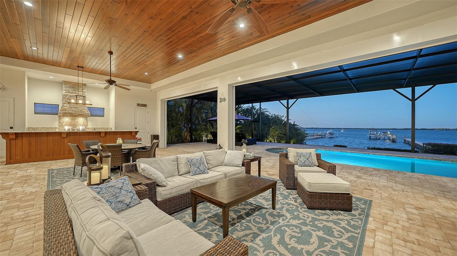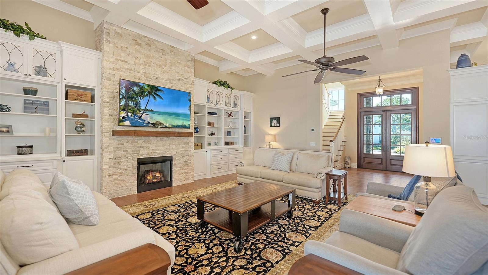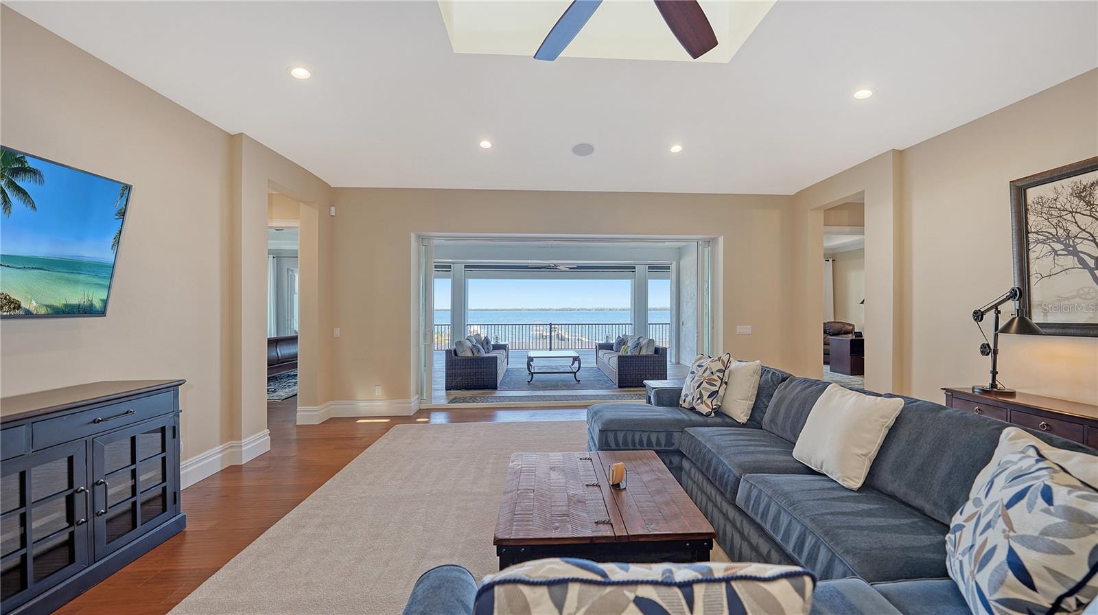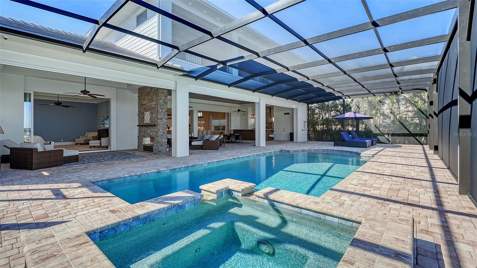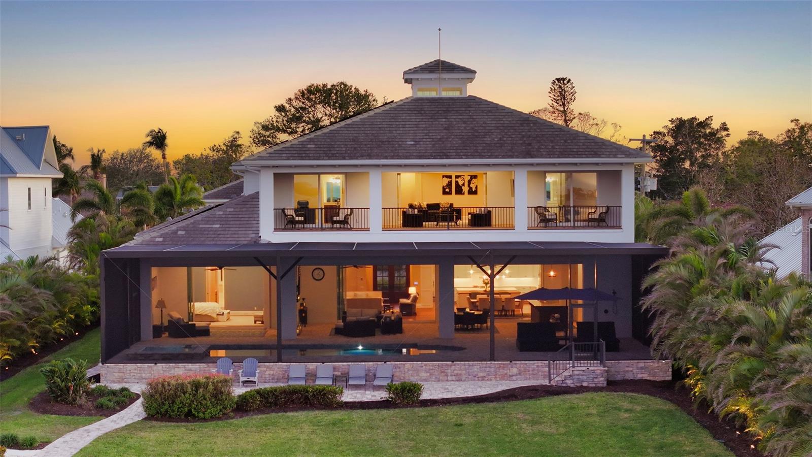 Embodying the pinnacle of storm-resilient luxury, this exceptional waterfront estate is thoughtfully fortified with premier safety features. Solar panels paired with backup batteries seamlessly operate the first floor of the main home and fully power the guest house during outages. A 500-gallon buried propane tank, concrete roof tiles, hurricane impact glass throughout, and a full suite of electronic and metal hurricane shutters — including five remote-controlled systems enclosing the main floor covered lanai and second-floor remote screens — offer peace of mind through every season. A true boater’s paradise on the Manatee River, this modern custom estate offers direct access to the Gulf of Mexico, with idyllic destinations like Anna Maria Island, Longboat Key, Sarasota, and St. Petersburg just moments away by water. Built in 2020 and spanning 6,621 square feet, the residence combines architectural elegance with cutting-edge smart home technology for effortless living. Situated on elevated, flood-free ground, the home has weathered all storms unscathed, according to the owner. The main residence and 1,344-square-foot guest home together feature a seven-car garage, ideal for collectors or additional storage. Inside, five bedrooms, five full and two half baths are thoughtfully designed with premium finishes, including engineered hardwood flooring and hurricane-rated materials. The primary suite is a serene retreat, boasting a luxurious steam shower with 13 spray heads, soaking tub, towel warmers, and travertine tile. A gourmet kitchen is equipped with Wolf, Sub-Zero, and Bosch appliances, dual islands, and an expansive walk-in pantry with a built-in Sub-Zero freezer. Designed for grand entertaining, the living room features coffered ceilings, a gas fireplace, and custom cabinetry, while the expansive lanai redefines outdoor living. Nearly 3,800 square feet of screened space includes a bespoke outdoor kitchen, two-sided fireplace, saltwater pool with spa and sun shelf, and a poolside half bath—all secured by remote hurricane shutters. The guest home offers two bedrooms, a luxurious kitchen, impact glass, and a private balcony. Additional features include an electronic gated entry, lightning and surge protection, cement roof shingles, and a solar-powered system with four backup batteries. Boating enthusiasts will appreciate the five-foot TREX dock with a 16,000-pound boat lift, a 4,500-pound personal craft lift, and a powered utility shed. A private weather station provides real-time monitoring. Located within walking distance of De Soto National Memorial Park, this one-of-a-kind estate offers an unmatched lifestyle of safety, sophistication, and waterfront serenity.