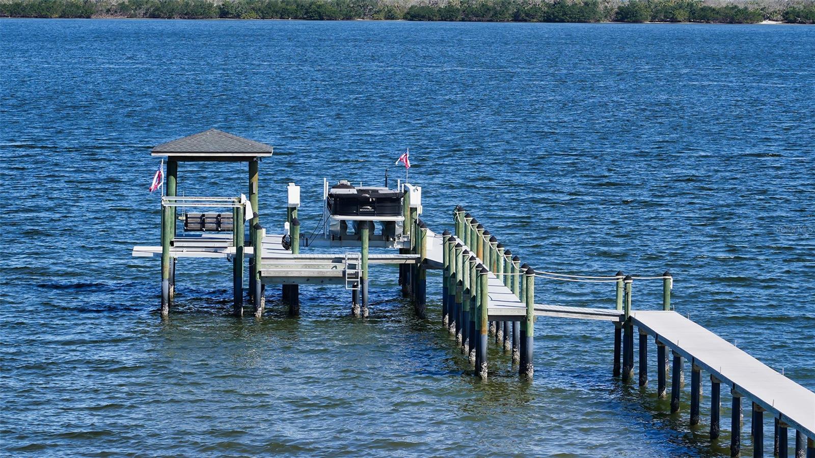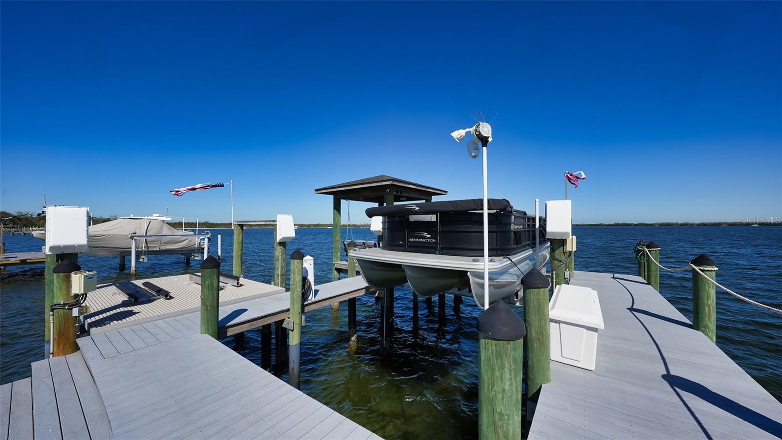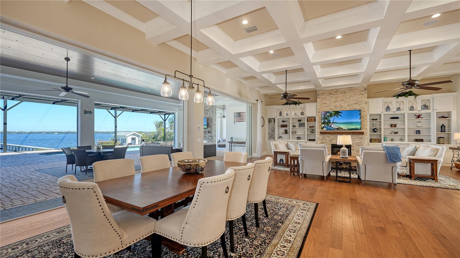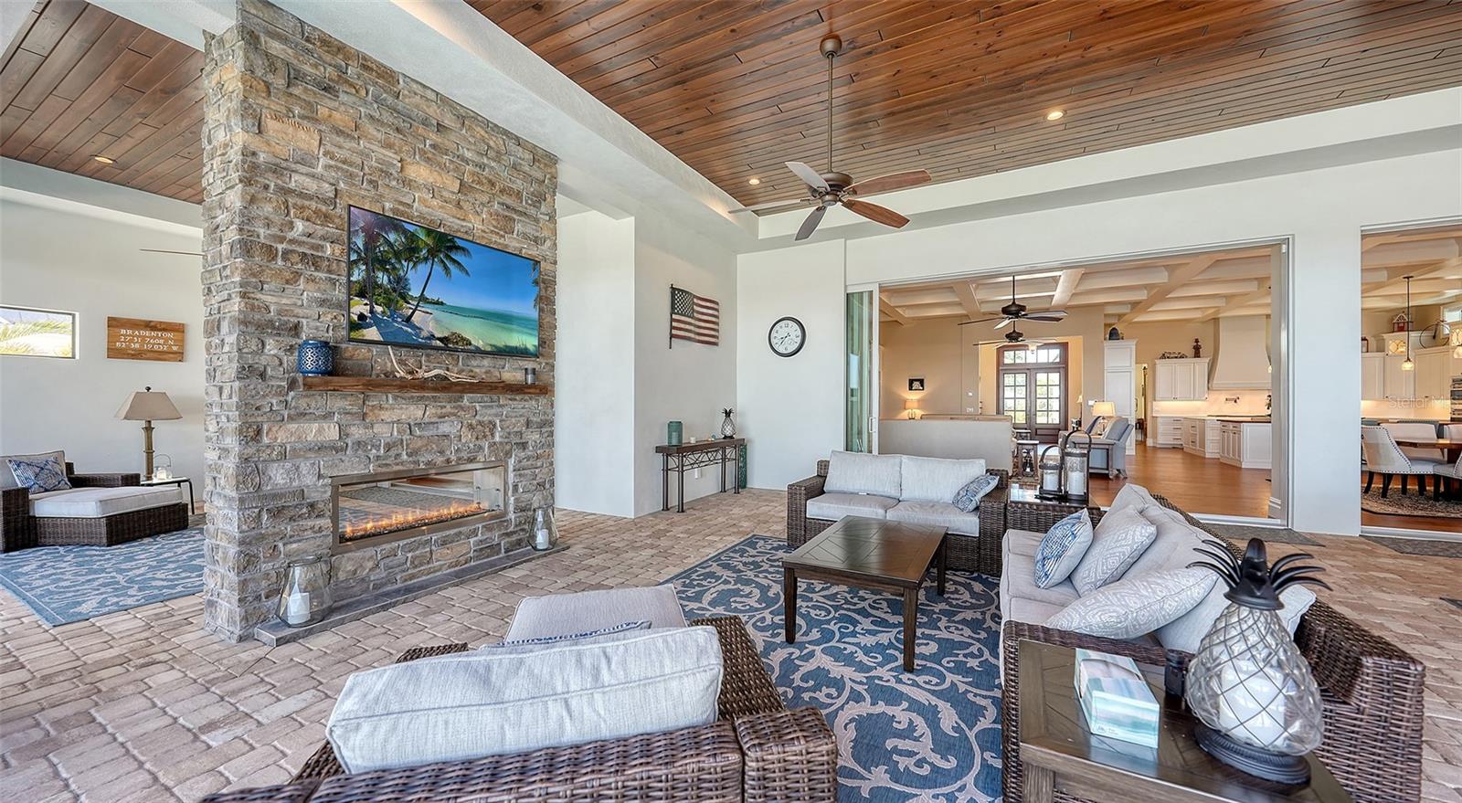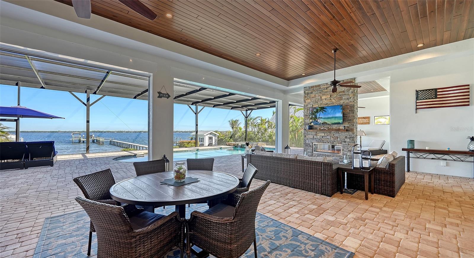 Embodying the pinnacle of storm-resilient luxury, this exceptional waterfront estate is thoughtfully fortified with premier safety features. Solar panels paired with backup batteries seamlessly operate the first floor of the main home and fully power the guest house during outages. A 500-gallon buried propane tank, concrete roof tiles, hurricane impact glass throughout, and a full suite of electronic and metal hurricane shutters — including five remote-controlled systems enclosing the main floor covered lanai and second-floor remote screens — offer peace of mind through every season. A true boater’s paradise on the Manatee River, this modern custom estate offers direct access to the Gulf of Mexico, with idyllic destinations like Anna Maria Island, Longboat Key, Sarasota, and St. Petersburg just moments away by water. Built in 2020 and spanning 6,621 square feet, the residence combines architectural elegance with cutting-edge smart home technology for effortless living. Situated on elevated, flood-free ground, the home has weathered all storms unscathed, according to the owner. The main residence and 1,344-square-foot guest home together feature a seven-car garage, ideal for collectors or additional storage. Inside, five bedrooms, five full and two half baths are thoughtfully designed with premium finishes, including engineered hardwood flooring and hurricane-rated materials. The primary suite is a serene retreat, boasting a luxurious steam shower with 13 spray heads, soaking tub, towel warmers, and travertine tile. A gourmet kitchen is equipped with Wolf, Sub-Zero, and Bosch appliances, dual islands, and an expansive walk-in pantry with a built-in Sub-Zero freezer. Designed for grand entertaining, the living room features coffered ceilings, a gas fireplace, and custom cabinetry, while the expansive lanai redefines outdoor living. Nearly 3,800 square feet of screened space includes a bespoke outdoor kitchen, two-sided fireplace, saltwater pool with spa and sun shelf, and a poolside half bath—all secured by remote hurricane shutters. The guest home offers two bedrooms, a luxurious kitchen, impact glass, and a private balcony. Additional features include an electronic gated entry, lightning and surge protection, cement roof shingles, and a solar-powered system with four backup batteries. Boating enthusiasts will appreciate the five-foot TREX dock with a 16,000-pound boat lift, a 4,500-pound personal craft lift, and a powered utility shed. A private weather station provides real-time monitoring. Located within walking distance of De Soto National Memorial Park, this one-of-a-kind estate offers an unmatched lifestyle of safety, sophistication, and waterfront serenity.