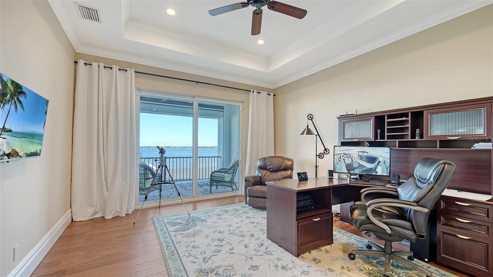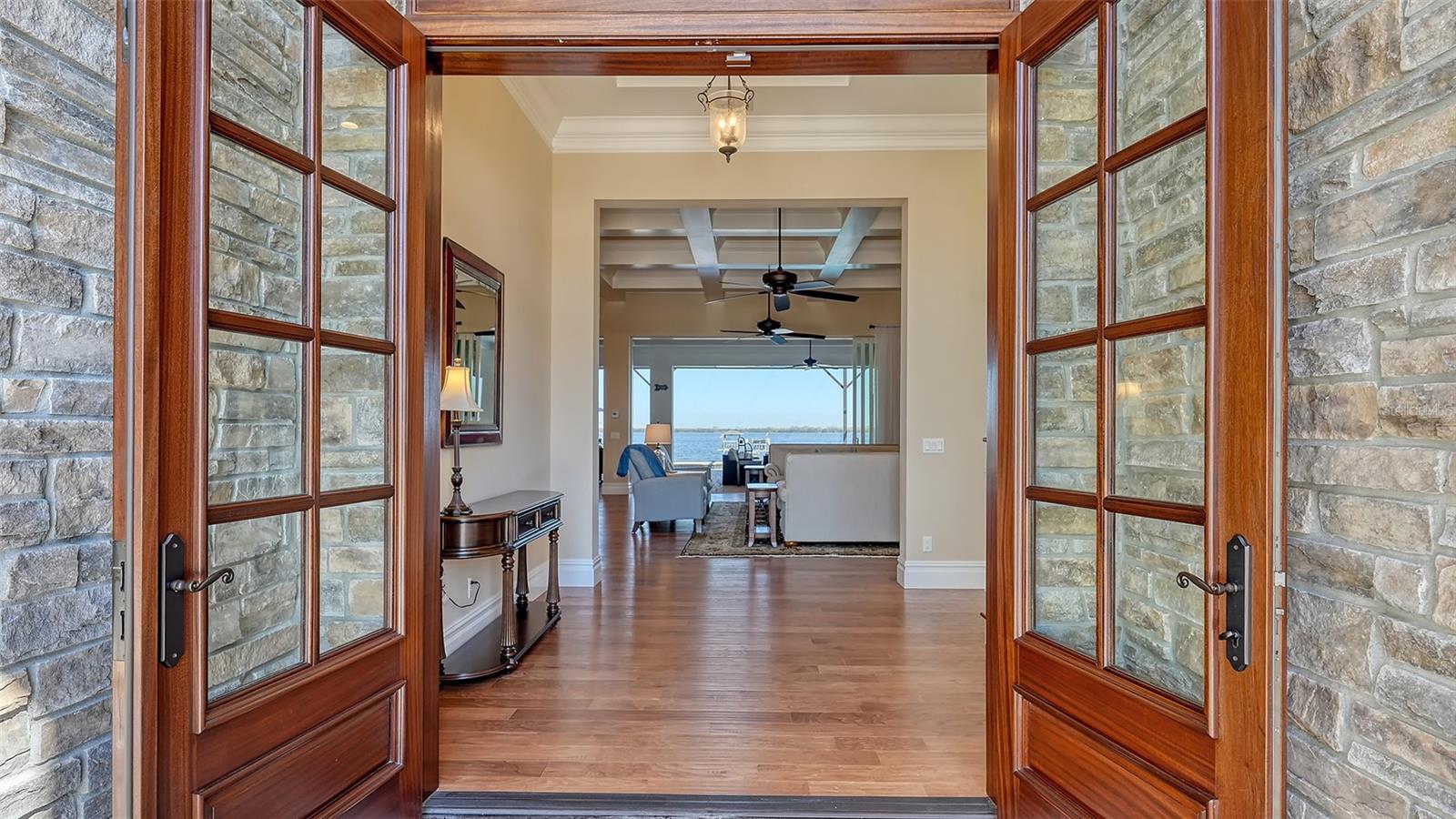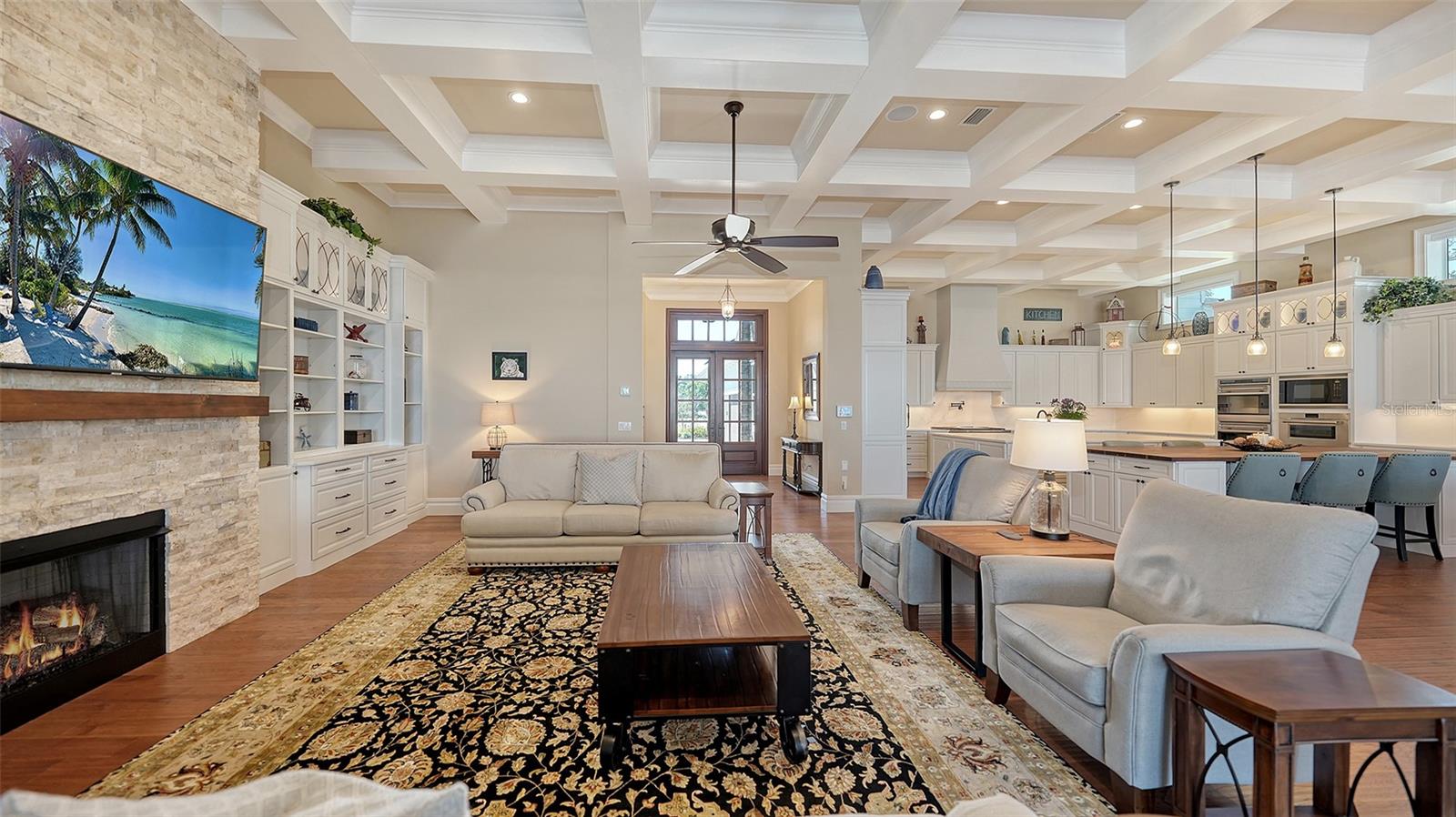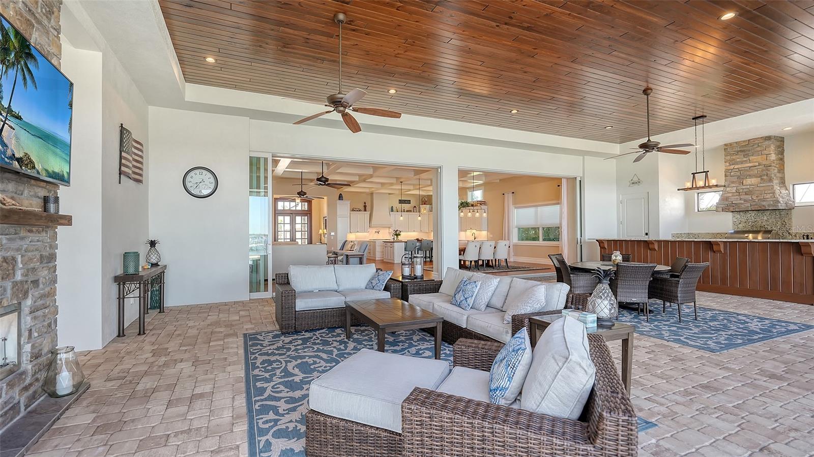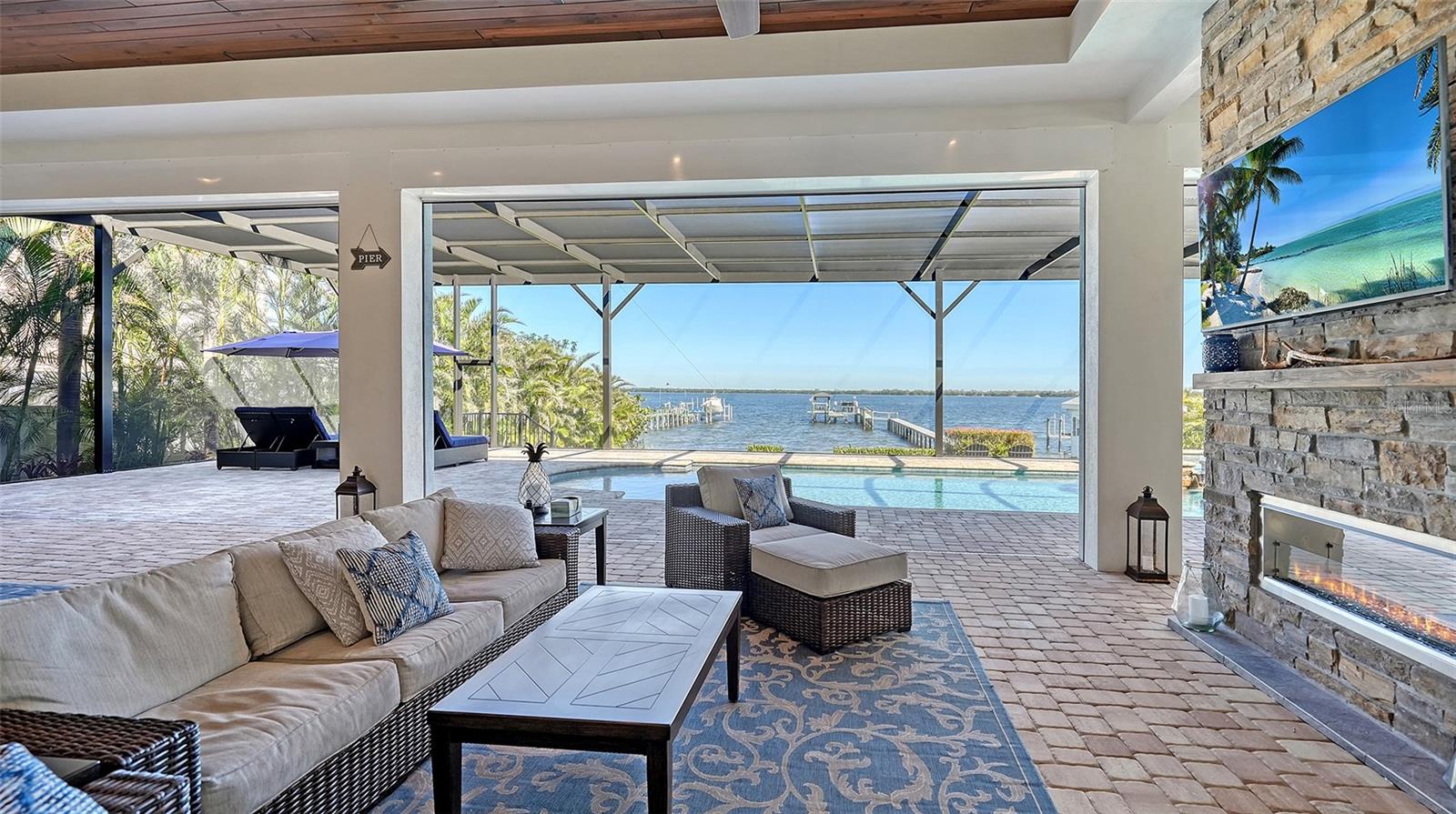 Embodying the pinnacle of storm-resilient luxury, this exceptional waterfront estate is thoughtfully fortified with premier safety features. Solar panels paired with backup batteries seamlessly operate the first floor of the main home and fully power the guest house during outages. A 500-gallon buried propane tank, concrete roof tiles, hurricane impact glass throughout, and a full suite of electronic and metal hurricane shutters — including five remote-controlled systems enclosing the main floor covered lanai and second-floor remote screens — offer peace of mind through every season. A true boater’s paradise on the Manatee River, this modern custom estate offers direct access to the Gulf of Mexico, with idyllic destinations like Anna Maria Island, Longboat Key, Sarasota, and St. Petersburg just moments away by water. Built in 2020 and spanning 6,621 square feet, the residence combines architectural elegance with cutting-edge smart home technology for effortless living. Situated on elevated, flood-free ground, the home has weathered all storms unscathed, according to the owner. The main residence and 1,344-square-foot guest home together feature a seven-car garage, ideal for collectors or additional storage. Inside, five bedrooms, five full and two half baths are thoughtfully designed with premium finishes, including engineered hardwood flooring and hurricane-rated materials. The primary suite is a serene retreat, boasting a luxurious steam shower with 13 spray heads, soaking tub, towel warmers, and travertine tile. A gourmet kitchen is equipped with Wolf, Sub-Zero, and Bosch appliances, dual islands, and an expansive walk-in pantry with a built-in Sub-Zero freezer. Designed for grand entertaining, the living room features coffered ceilings, a gas fireplace, and custom cabinetry, while the expansive lanai redefines outdoor living. Nearly 3,800 square feet of screened space includes a bespoke outdoor kitchen, two-sided fireplace, saltwater pool with spa and sun shelf, and a poolside half bath—all secured by remote hurricane shutters. The guest home offers two bedrooms, a luxurious kitchen, impact glass, and a private balcony. Additional features include an electronic gated entry, lightning and surge protection, cement roof shingles, and a solar-powered system with four backup batteries. Boating enthusiasts will appreciate the five-foot TREX dock with a 16,000-pound boat lift, a 4,500-pound personal craft lift, and a powered utility shed. A private weather station provides real-time monitoring. Located within walking distance of De Soto National Memorial Park, this one-of-a-kind estate offers an unmatched lifestyle of safety, sophistication, and waterfront serenity.