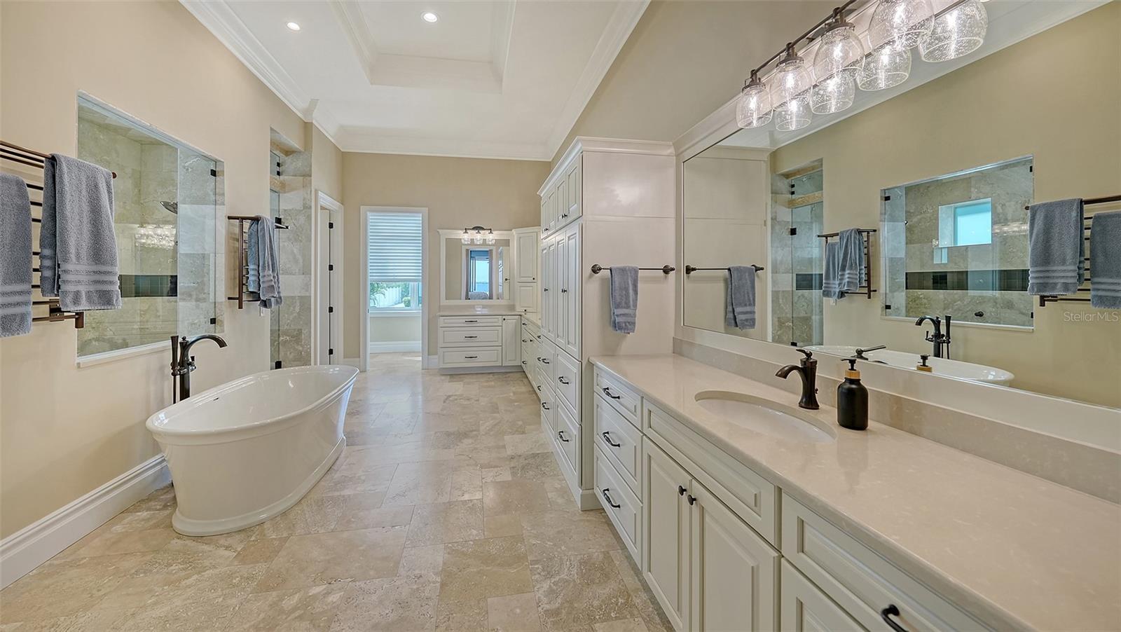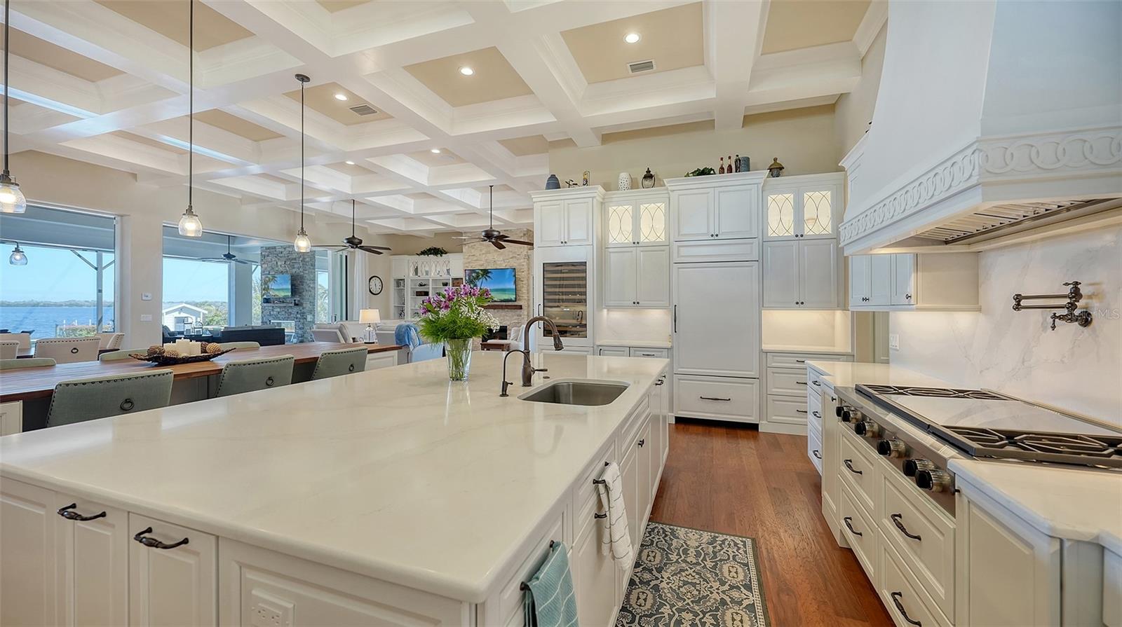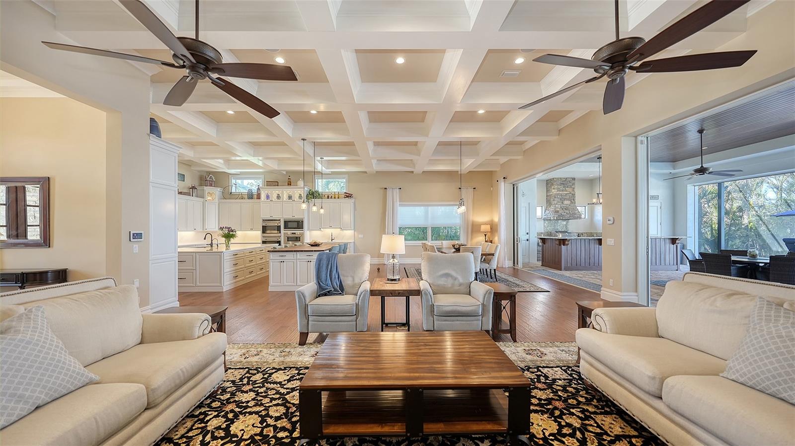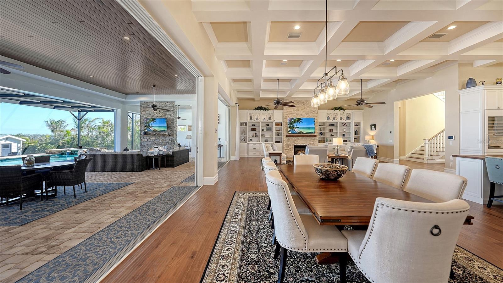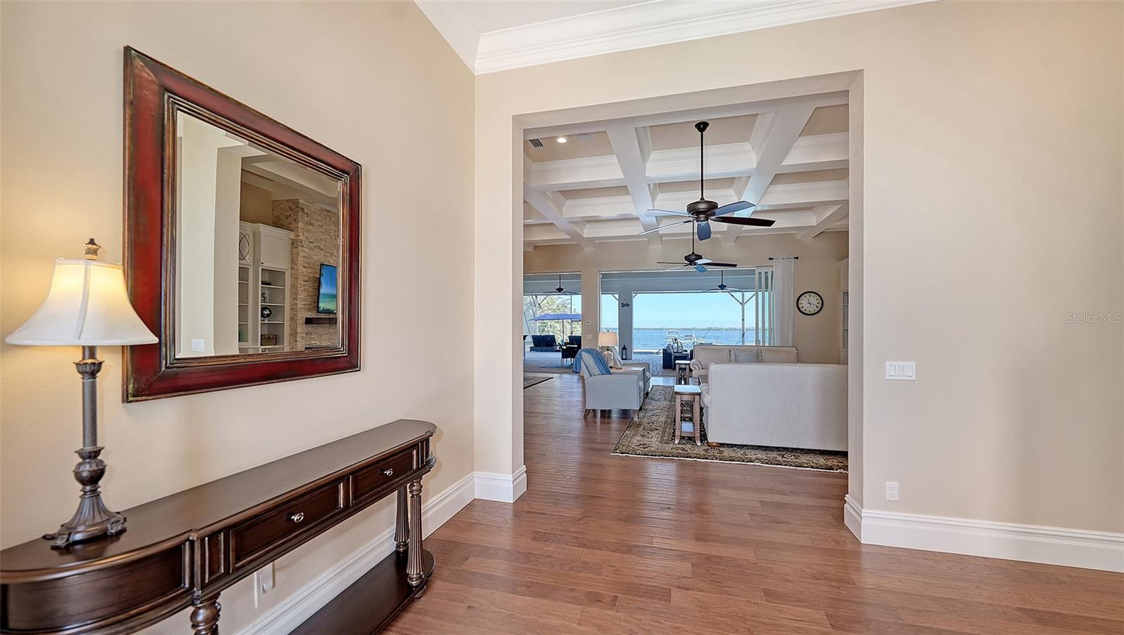 Embodying the pinnacle of storm-resilient luxury, this exceptional waterfront estate is thoughtfully fortified with premier safety features. Solar panels paired with backup batteries seamlessly operate the first floor of the main home and fully power the guest house during outages. A 500-gallon buried propane tank, concrete roof tiles, hurricane impact glass throughout, and a full suite of electronic and metal hurricane shutters — including five remote-controlled systems enclosing the main floor covered lanai and second-floor remote screens — offer peace of mind through every season. A true boater’s paradise on the Manatee River, this modern custom estate offers direct access to the Gulf of Mexico, with idyllic destinations like Anna Maria Island, Longboat Key, Sarasota, and St. Petersburg just moments away by water. Built in 2020 and spanning 6,621 square feet, the residence combines architectural elegance with cutting-edge smart home technology for effortless living. Situated on elevated, flood-free ground, the home has weathered all storms unscathed, according to the owner. The main residence and 1,344-square-foot guest home together feature a seven-car garage, ideal for collectors or additional storage. Inside, five bedrooms, five full and two half baths are thoughtfully designed with premium finishes, including engineered hardwood flooring and hurricane-rated materials. The primary suite is a serene retreat, boasting a luxurious steam shower with 13 spray heads, soaking tub, towel warmers, and travertine tile. A gourmet kitchen is equipped with Wolf, Sub-Zero, and Bosch appliances, dual islands, and an expansive walk-in pantry with a built-in Sub-Zero freezer. Designed for grand entertaining, the living room features coffered ceilings, a gas fireplace, and custom cabinetry, while the expansive lanai redefines outdoor living. Nearly 3,800 square feet of screened space includes a bespoke outdoor kitchen, two-sided fireplace, saltwater pool with spa and sun shelf, and a poolside half bath—all secured by remote hurricane shutters. The guest home offers two bedrooms, a luxurious kitchen, impact glass, and a private balcony. Additional features include an electronic gated entry, lightning and surge protection, cement roof shingles, and a solar-powered system with four backup batteries. Boating enthusiasts will appreciate the five-foot TREX dock with a 16,000-pound boat lift, a 4,500-pound personal craft lift, and a powered utility shed. A private weather station provides real-time monitoring. Located within walking distance of De Soto National Memorial Park, this one-of-a-kind estate offers an unmatched lifestyle of safety, sophistication, and waterfront serenity.