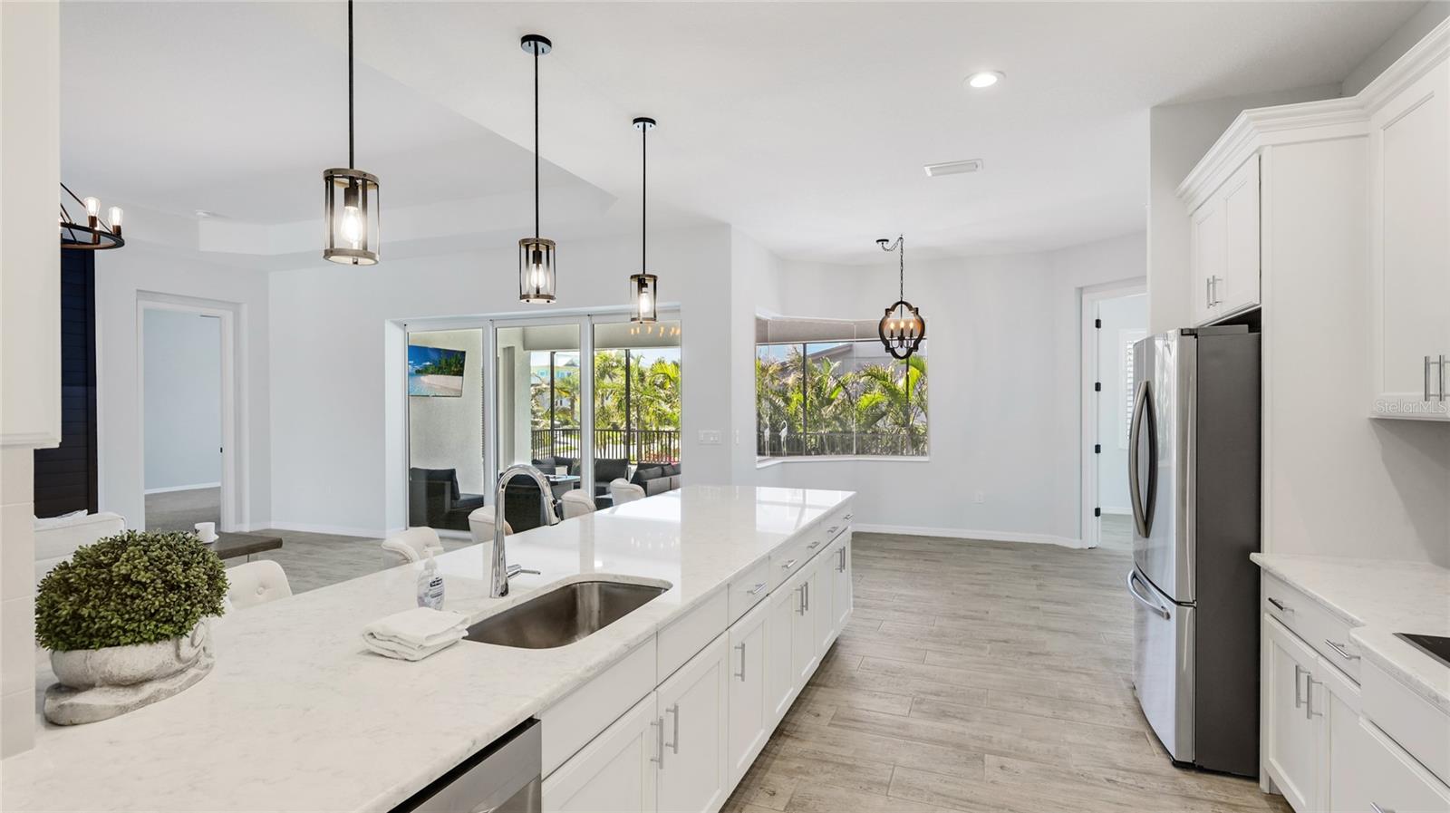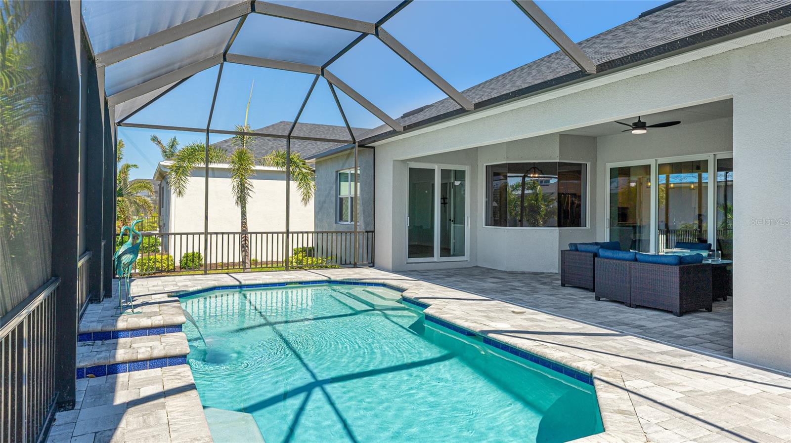 Welcome to this stunning 4-bedroom plus den or possible 5th bedroom home, just a few minutes' bike ride from the beautiful Anna Maria Beach. Built just 3 years ago presents just like new. This home boasts modern luxury with a heated saltwater pool and an extended lanai, complete with custom pavers and a caged pool area perfect for entertaining or relaxing. Inside, enjoy high-end appliances, porcelain ceramic plank flooring, and a spacious walk-in pantry. The living room is an entertainer's dream, featuring a custom wall with an sleek fireplace and a 75-inch high-def TV. The owner's suite offers a private retreat with his and her walk-in closets and a custom glass and ceramic tile walk-in shower with double sinks. Pocket sliders lead to the pool area, creating a seamless indoor-outdoor living experience. The kitchen is a chef’s delight, featuring a large quartz island, 42” custom cabinetry with crown molding, and smart home technology. This home is built to the latest flood elevation standards, with hurricane windows and doors offering added peace of mind. It has been tested with no damage from two hurricanes. Additional features include elevated construction, enclosed soffits, gutters on all four sides, and a two-zone Trane HVAC system. The garage is ready for an electric vehicle with a dedicated plug and features an epoxy floor. A 50-gallon water heater, paver driveways, and walkways complete this move-in-ready masterpiece. Don’t miss out on the opportunity to live in this gorgeous, meticulously designed home minutes from the beach! In process: COMMUNITY 15 BOAT SLIPS. SELLER HAS PAID AND CONTRIBITED TO THE RESERVE STUDY FEE & IS ONE OF THE ELIGIBLE HOMES FOR THE BOAT SLIPS WHEN THEY BECOME AVAILABLE TO PUCHASE . THERE WILL ALSO BE A SUNSET PIER, KAYAKE STORAGE & LAUNCH AREA. NO HURRICANE DAMAGE HERE
