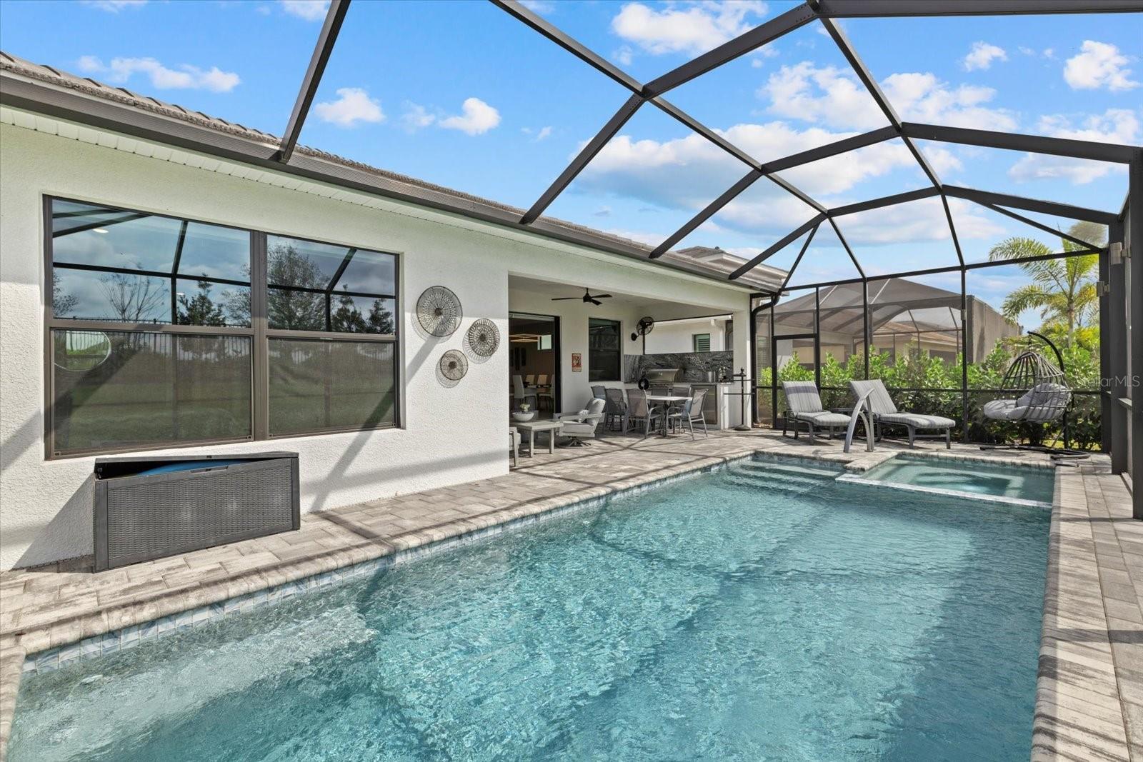 Discover the perfect blend of luxury, comfort, and resort-style living in this stunning 4-bedroom, Flex room, 4-bathroom pool home in Cresswind, Lakewood Ranch’s premier 55+ community. Thoughtfully upgraded inside and out, this home offers sophisticated living spaces, a private backyard oasis, and access to world-class amenities. HURRICANE IMPACT WINDOWS & WHOLE HOUSE GENERATOR HOOKUP. Step inside to an impeccably designed open floor plan, featuring elegant finishes and high-end upgrades throughout. The gourmet kitchen boasts an upgraded microwave/oven, Insta-hot faucet, finished pantry, and stone-accented island, perfect for entertaining. The great room is a showpiece with a custom feature wall, entertainment system, power shades, and an added column for architectural detail. Retreat to the owner’s suite, a true sanctuary with dual shower heads, power shades, finished closets, and additional outlets for convenience. The guest and flex rooms are designed for versatility, featuring a Murphy bed, built-in desk, custom cabinetry, and ceiling fans. Throughout the home, floor tiles and grout have been professionally cleaned and sealed (5-year warranty), and freshly painted. Breathtaking Outdoor Living Designed for ultimate relaxation and entertaining, the expansive lanai features a custom outdoor kitchen, lanai ceiling fan, speakers, TV hookup, and ambient cage lighting. The resort-style saltwater pool & spa is enhanced with a pool railing and additional spa step for ease and comfort. Upgraded travertine pavers, lush landscaping, stone pathways, and extended concrete pad exits add to the outdoor charm. Premium Home Enhancements include: water filtration system, Wireless access points in the lanai and great room, Front path and lanai lighting, Whole-house gutters & enhanced irrigation system, Garage and entryway lights on timers, and so much more. Located minutes from Lakewood Ranch Library, Waterside Place, shopping, dining, and UTC, with easy access to I-75, downtown Sarasota, and Gulf Coast beaches. Don’t miss this incredible opportunity to own a luxury home in a top-rated active adult community. Schedule your private showing today! Cresswind at Lakewood Ranch is a pet-friendly and well-managed community located in the Sarasota/Bradenton area along Florida's Cultural Coast. Lakewood Ranch is known for its diverse mix of villages, exciting events, and natural beauty. The community features a resident-exclusive clubhouse and recreation center overseen by a full-time lifestyle director. Inside, you'll find a multi-purpose event and social space, SmartFit/EGym training center, yoga studio, art studio with ceramics, card rooms, and various social clubs. Outdoor amenities include pickleball and tennis courts, a walking trail, a stunning heated resort pool and spa, an event lawn for food trucks, bocce courts, and outdoor social areas, all spread across over 250 acres..