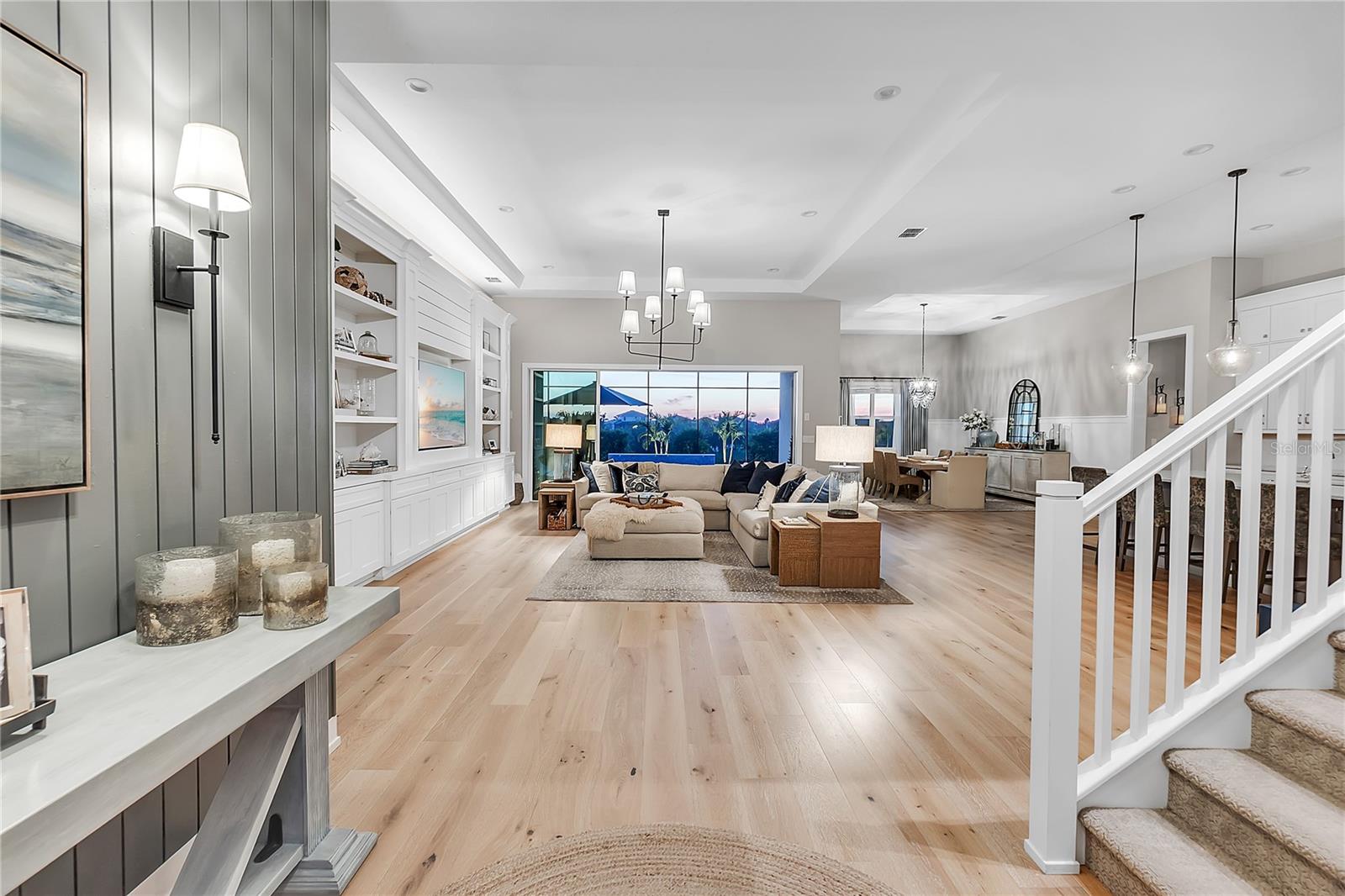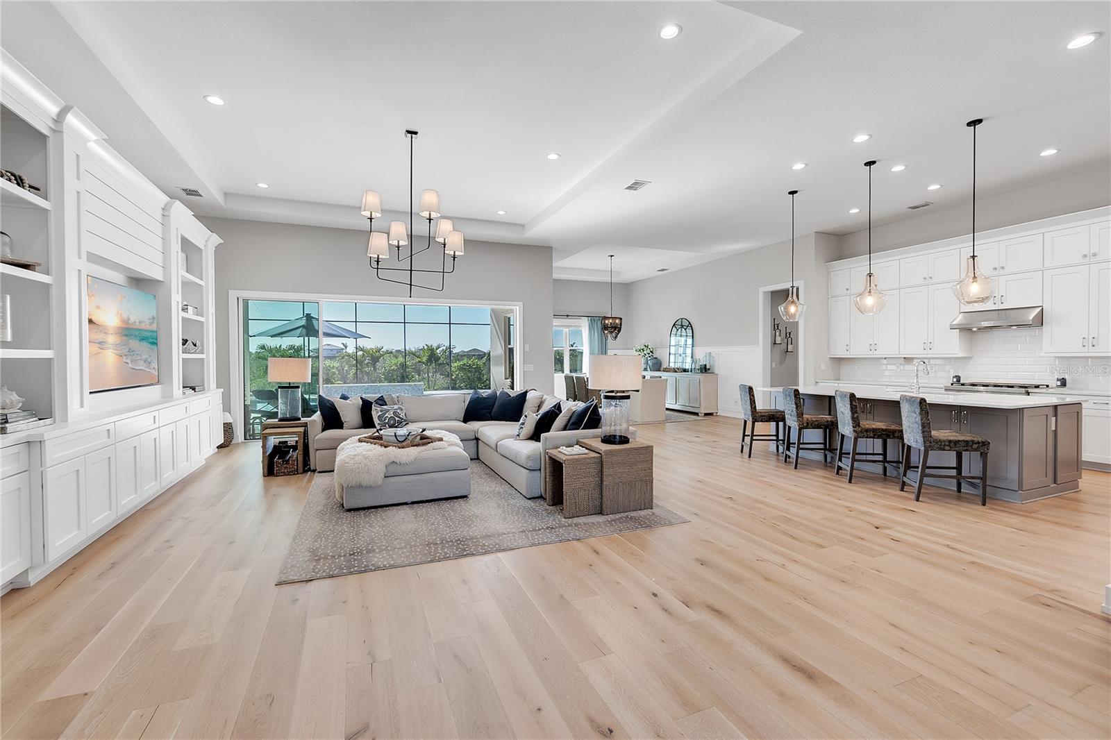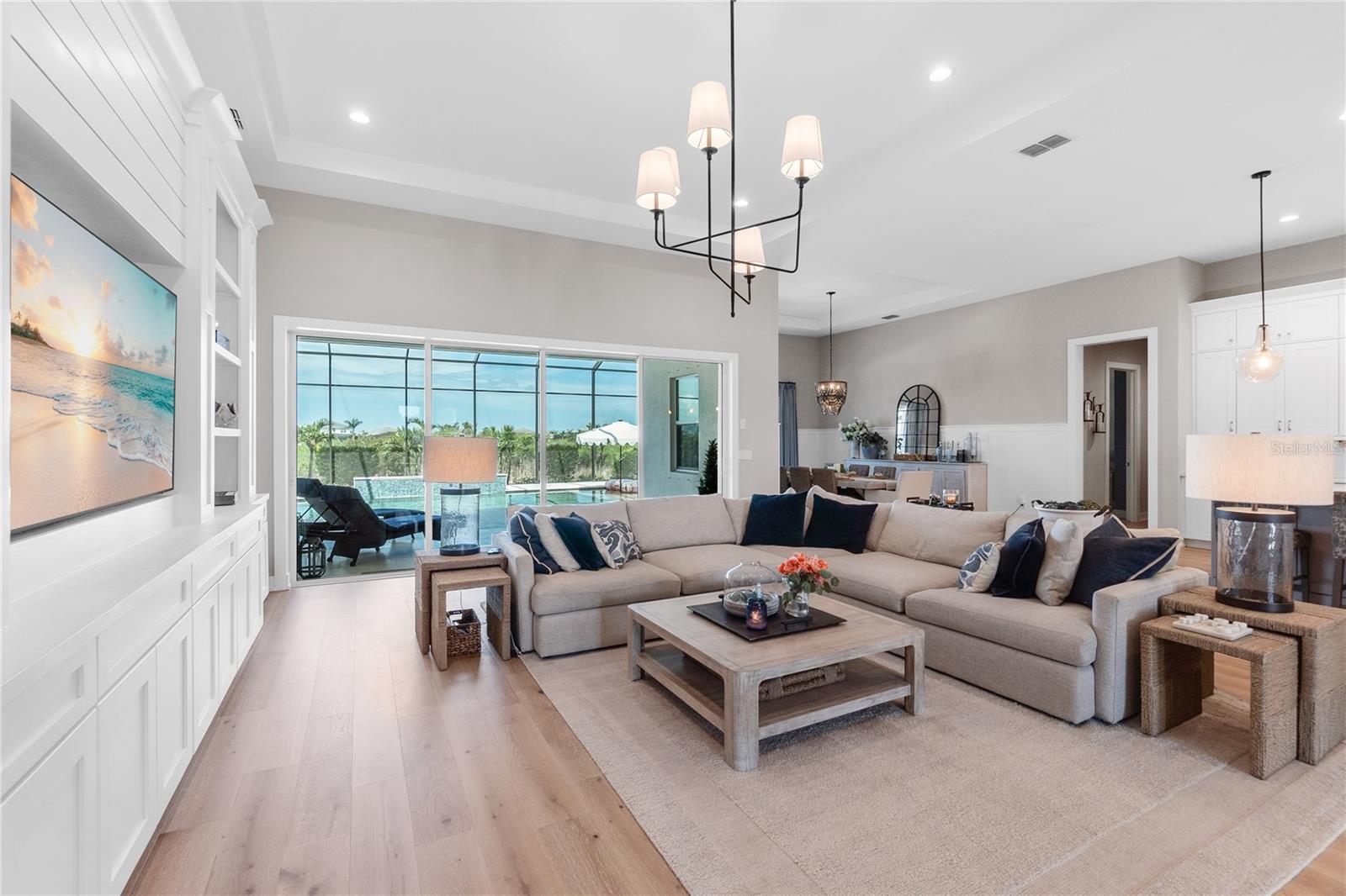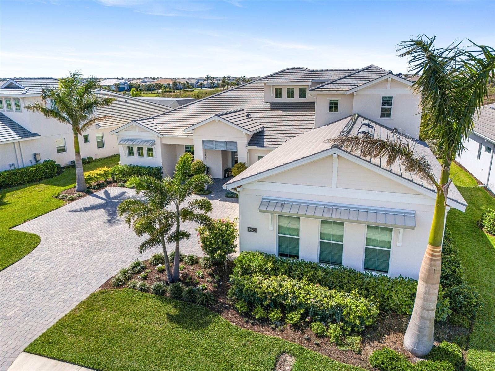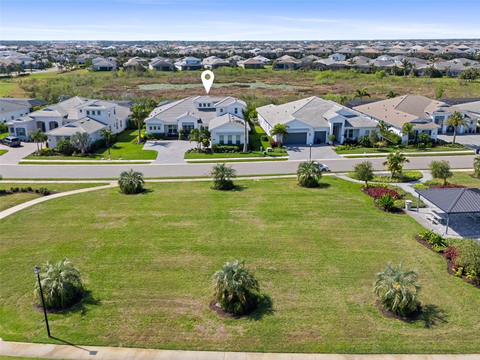 ***MOTIVATED SELLER | $46,000 PRICE IMPROVEMENT | RARELY AVAILABLE MAXWELL ELITE WITH LINEAR PARK FRONTAGE*** Modern luxury and sophisticated design come together in this stunning Maxwell Elite model pool home, exceptionally located behind the gates of the highly sought-after Isles at Lakewood Ranch community. Rare open park space and pavilion directly across from home affords idyllic setting for kids to play and practice sports. Set on a private preserve lot with no front neighbors and premier Linear Park frontage, this two-story residence offers 4,028 square feet of meticulously designed living space. It includes 4 (optional 5) ensuite bedrooms, 5.5 bathrooms, a dedicated office, an upstairs flex space, and a spacious 3-car garage. Large extended driveway affords ample parking space for multiple cars / drivers- particularly valuable in a neighborhood where street parking is prohibited. Upon entering, you're greeted by the impressive foyer with 12-foot ceilings, setting the tone for the expansive living areas. The home boasts warm engineered wood flooring that seamlessly flows through the living and dining spaces. Sunlight pours in through sliding glass doors and windows, while custom lighting enhances the ambiance. The gourmet chef's kitchen is a showstopper, featuring an oversized center island, upgraded cabinetry, quartz countertops, a tiled backsplash, and premium KitchenAid stainless steel appliances. The expansive great room, complete with custom built-ins, 13’ tray ceilings, and large sliders, opens to a beautiful outdoor living area. The generous pool & spa area is perfect for relaxation, with an extended shell stone deck, multiple seating areas, and serene preserve views. The oversized lanai with a covered seating area is an entertainer’s dream, perfect for tropical evenings around the built-in firepit. Western exposure and sunset views extend leisure time. The spacious owner's suite is a private retreat, offering walk-in closets and a luxurious spa-style bath with quartz countertops, dual sinks, a walk-in shower with dual rain showerheads, and a soaking tub. The downstairs also features three additional large bedrooms with ensuite baths, a formal dining area, and a private office with custom built-ins. Upstairs, a large flex space with a built-in closet and full bath provides versatility for various needs. The home also includes a 3-car garage with overhead storage. Enhancements include an extended driveway, extensive landscape lighting, custom interior lighting, built-ins in the laundry room and craft space, upgraded plumbing fixtures, a two-tone paint package, impact windows on the front elevation, upgraded cabinetry and molding in the kitchen, custom millwork in the foyer and powder room, custom built-ins in the office and great room, walk-in showers in all bathrooms, upgraded wood floors and carpeting, lanai super gutter, as well as plumbing for an outdoor kitchen(s) and an extended pool deck (67’ x 32’ = 2,144 sq ft enclosure). The Isles at Lakewood Ranch offers resort-style living, with amenities including a heated pool and spa, outdoor bar, tennis and pickleball courts, a multi-purpose turf lawn, and a clubhouse with a gathering room and kitchen. Residents also enjoy access to a state-of-the-art fitness center and yoga studio. Ideally located, the community is close to Waterside Place, and Lakewood Ranch Main St with easy access to St. Armands Circle, Downtown Sarasota, and area beaches.