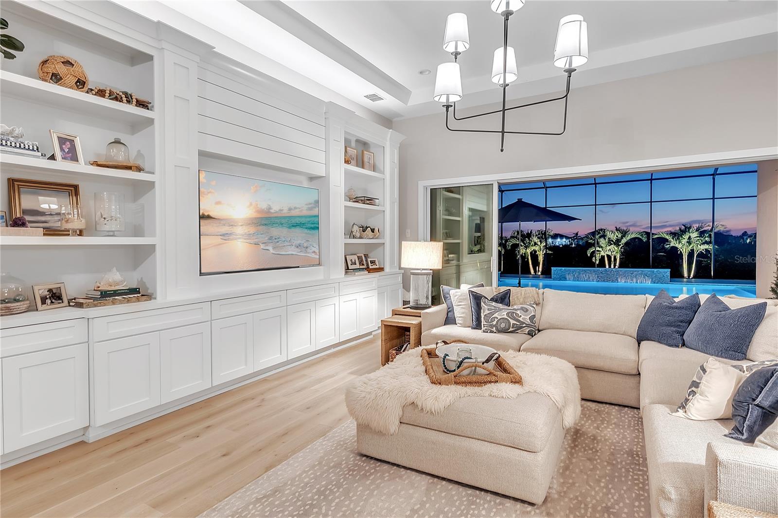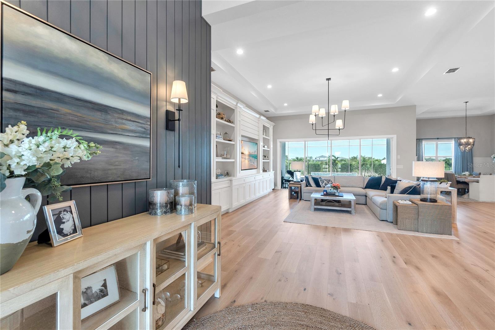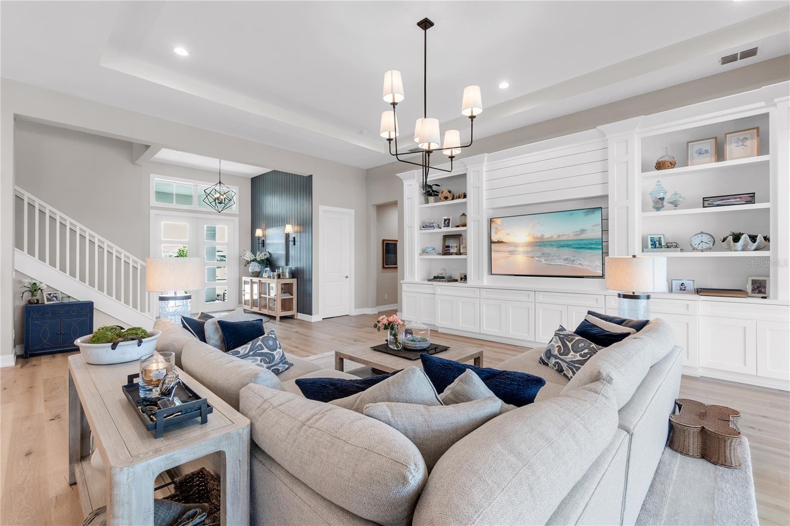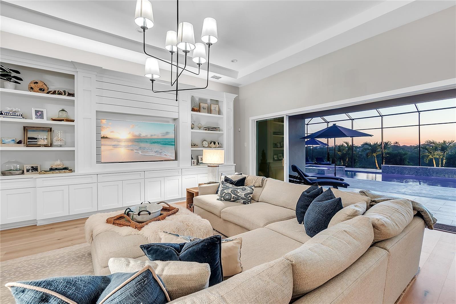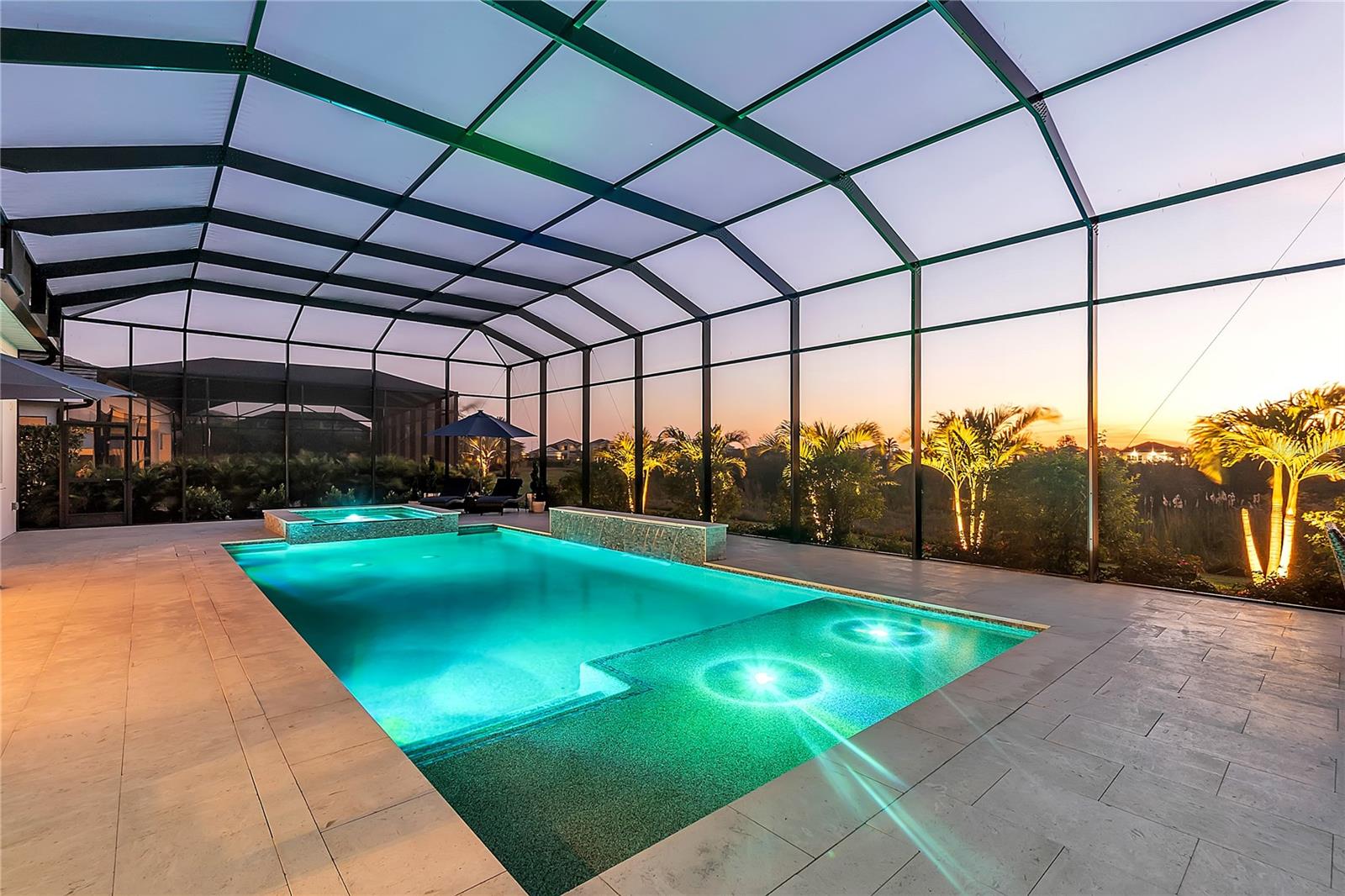 ***MOTIVATED SELLER | $46,000 PRICE IMPROVEMENT | RARELY AVAILABLE MAXWELL ELITE WITH LINEAR PARK FRONTAGE*** Modern luxury and sophisticated design come together in this stunning Maxwell Elite model pool home, exceptionally located behind the gates of the highly sought-after Isles at Lakewood Ranch community. Rare open park space and pavilion directly across from home affords idyllic setting for kids to play and practice sports. Set on a private preserve lot with no front neighbors and premier Linear Park frontage, this two-story residence offers 4,028 square feet of meticulously designed living space. It includes 4 (optional 5) ensuite bedrooms, 5.5 bathrooms, a dedicated office, an upstairs flex space, and a spacious 3-car garage. Large extended driveway affords ample parking space for multiple cars / drivers- particularly valuable in a neighborhood where street parking is prohibited. Upon entering, you're greeted by the impressive foyer with 12-foot ceilings, setting the tone for the expansive living areas. The home boasts warm engineered wood flooring that seamlessly flows through the living and dining spaces. Sunlight pours in through sliding glass doors and windows, while custom lighting enhances the ambiance. The gourmet chef's kitchen is a showstopper, featuring an oversized center island, upgraded cabinetry, quartz countertops, a tiled backsplash, and premium KitchenAid stainless steel appliances. The expansive great room, complete with custom built-ins, 13’ tray ceilings, and large sliders, opens to a beautiful outdoor living area. The generous pool & spa area is perfect for relaxation, with an extended shell stone deck, multiple seating areas, and serene preserve views. The oversized lanai with a covered seating area is an entertainer’s dream, perfect for tropical evenings around the built-in firepit. Western exposure and sunset views extend leisure time. The spacious owner's suite is a private retreat, offering walk-in closets and a luxurious spa-style bath with quartz countertops, dual sinks, a walk-in shower with dual rain showerheads, and a soaking tub. The downstairs also features three additional large bedrooms with ensuite baths, a formal dining area, and a private office with custom built-ins. Upstairs, a large flex space with a built-in closet and full bath provides versatility for various needs. The home also includes a 3-car garage with overhead storage. Enhancements include an extended driveway, extensive landscape lighting, custom interior lighting, built-ins in the laundry room and craft space, upgraded plumbing fixtures, a two-tone paint package, impact windows on the front elevation, upgraded cabinetry and molding in the kitchen, custom millwork in the foyer and powder room, custom built-ins in the office and great room, walk-in showers in all bathrooms, upgraded wood floors and carpeting, lanai super gutter, as well as plumbing for an outdoor kitchen(s) and an extended pool deck (67’ x 32’ = 2,144 sq ft enclosure). The Isles at Lakewood Ranch offers resort-style living, with amenities including a heated pool and spa, outdoor bar, tennis and pickleball courts, a multi-purpose turf lawn, and a clubhouse with a gathering room and kitchen. Residents also enjoy access to a state-of-the-art fitness center and yoga studio. Ideally located, the community is close to Waterside Place, and Lakewood Ranch Main St with easy access to St. Armands Circle, Downtown Sarasota, and area beaches.