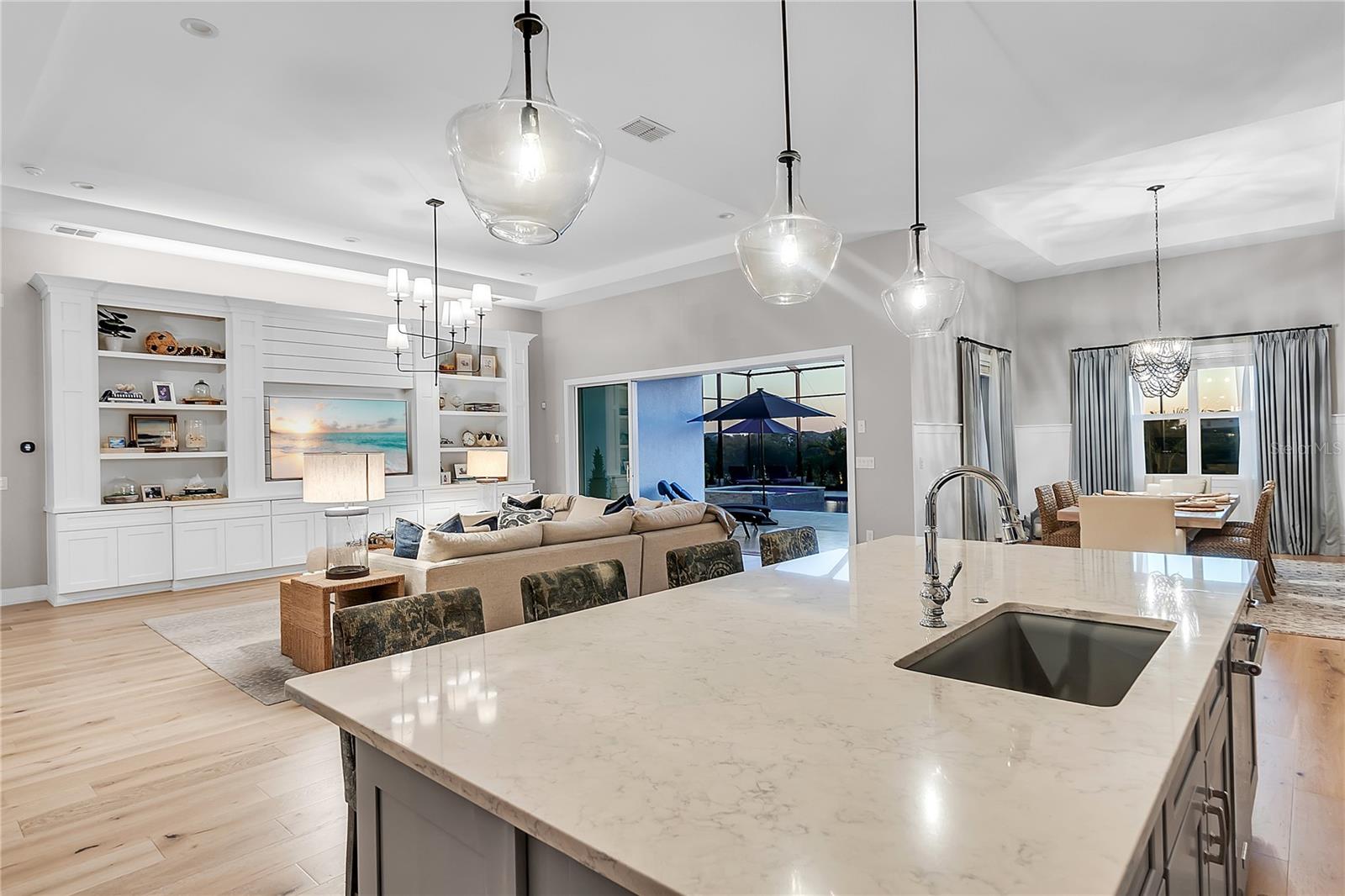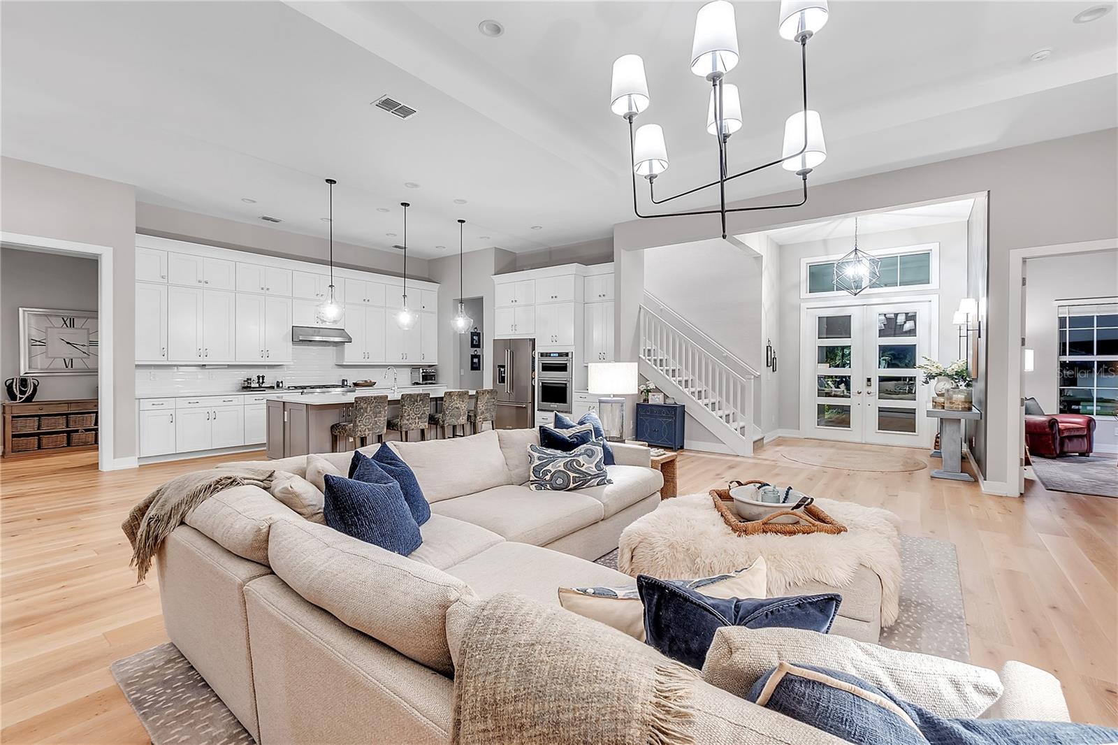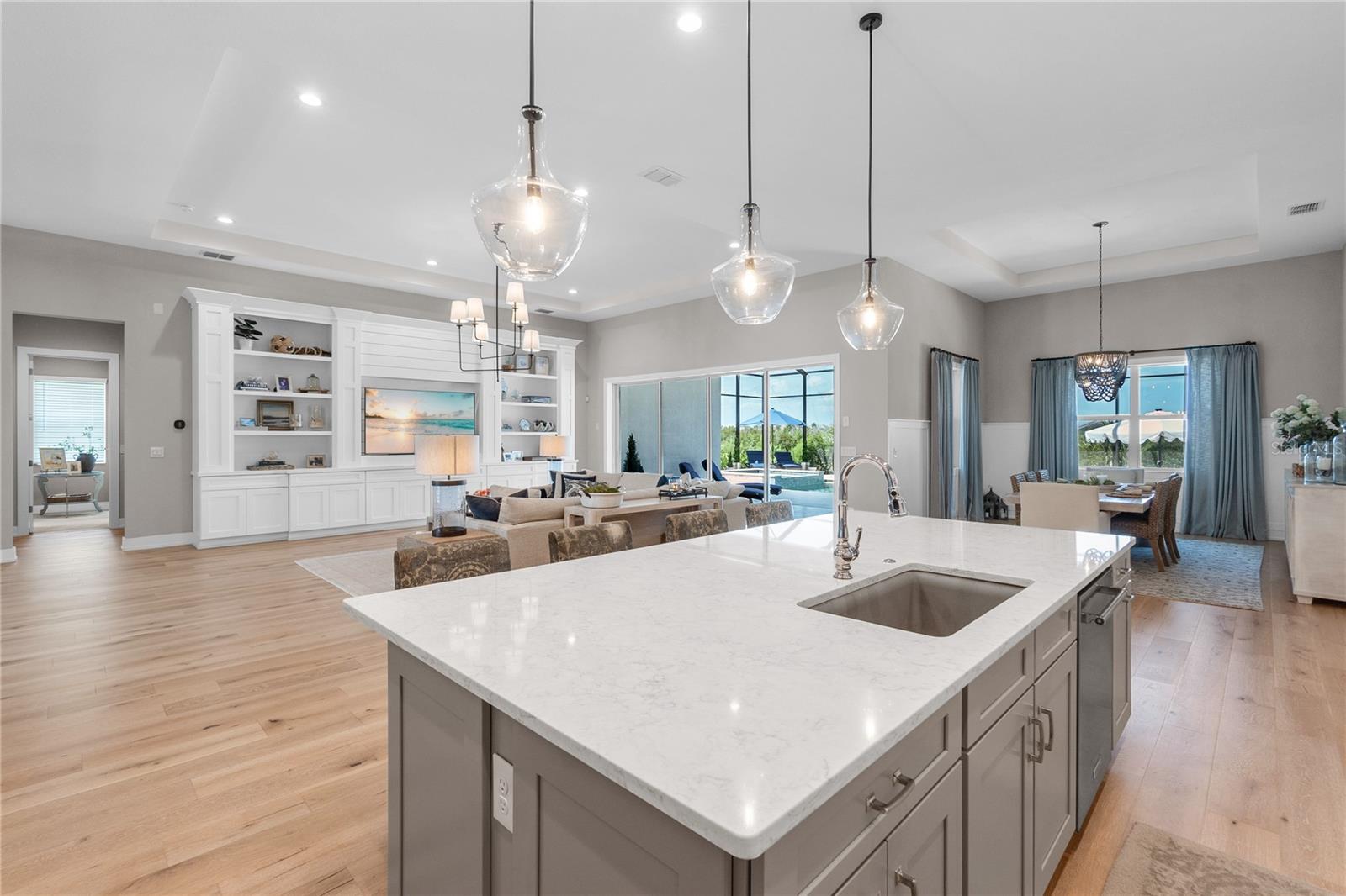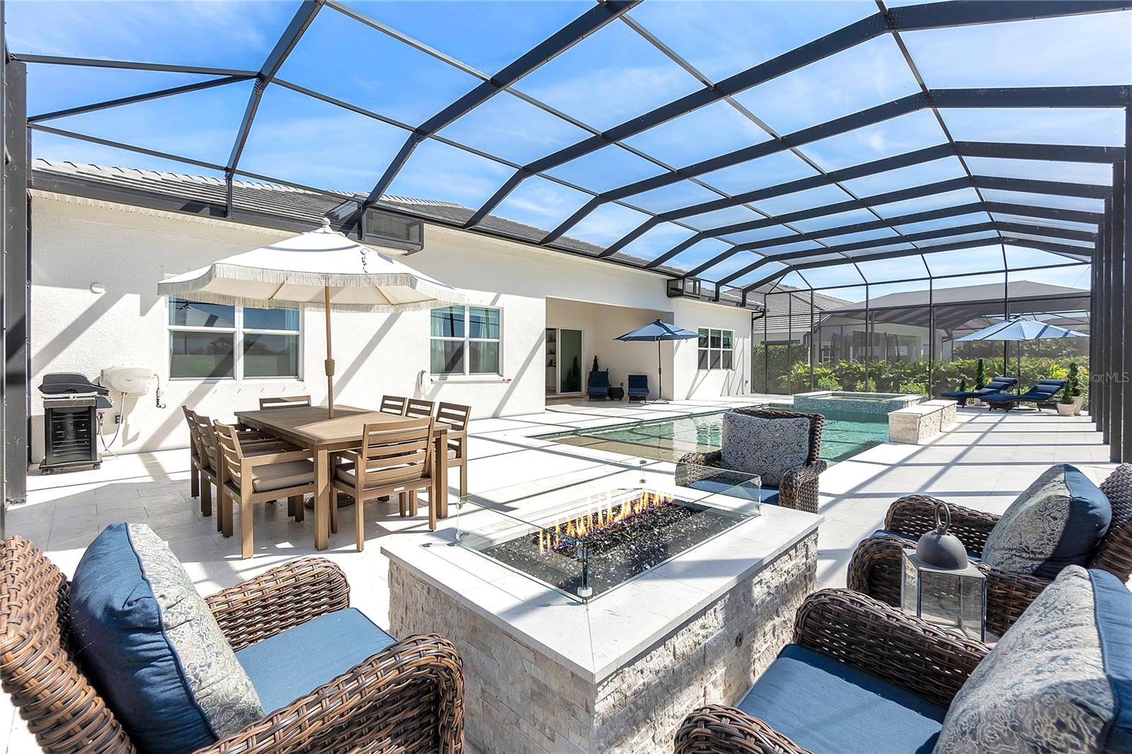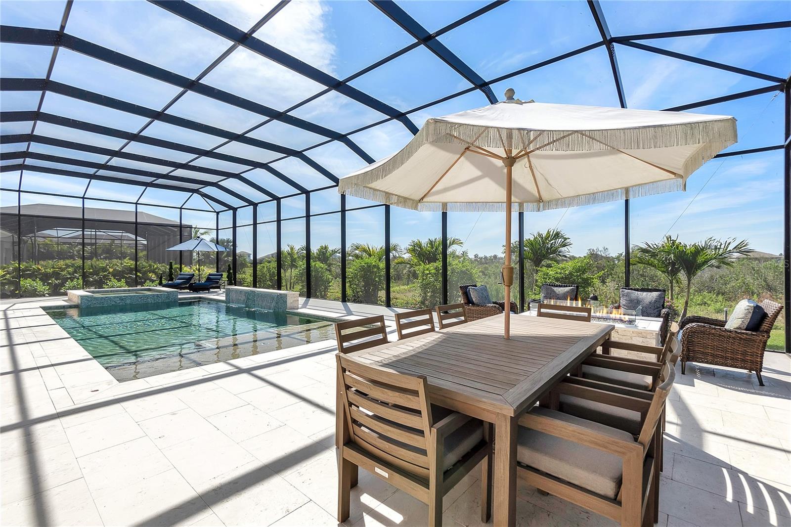 ***MOTIVATED SELLER | $46,000 PRICE IMPROVEMENT | RARELY AVAILABLE MAXWELL ELITE WITH LINEAR PARK FRONTAGE*** Modern luxury and sophisticated design come together in this stunning Maxwell Elite model pool home, exceptionally located behind the gates of the highly sought-after Isles at Lakewood Ranch community. Rare open park space and pavilion directly across from home affords idyllic setting for kids to play and practice sports. Set on a private preserve lot with no front neighbors and premier Linear Park frontage, this two-story residence offers 4,028 square feet of meticulously designed living space. It includes 4 (optional 5) ensuite bedrooms, 5.5 bathrooms, a dedicated office, an upstairs flex space, and a spacious 3-car garage. Large extended driveway affords ample parking space for multiple cars / drivers- particularly valuable in a neighborhood where street parking is prohibited. Upon entering, you're greeted by the impressive foyer with 12-foot ceilings, setting the tone for the expansive living areas. The home boasts warm engineered wood flooring that seamlessly flows through the living and dining spaces. Sunlight pours in through sliding glass doors and windows, while custom lighting enhances the ambiance. The gourmet chef's kitchen is a showstopper, featuring an oversized center island, upgraded cabinetry, quartz countertops, a tiled backsplash, and premium KitchenAid stainless steel appliances. The expansive great room, complete with custom built-ins, 13’ tray ceilings, and large sliders, opens to a beautiful outdoor living area. The generous pool & spa area is perfect for relaxation, with an extended shell stone deck, multiple seating areas, and serene preserve views. The oversized lanai with a covered seating area is an entertainer’s dream, perfect for tropical evenings around the built-in firepit. Western exposure and sunset views extend leisure time. The spacious owner's suite is a private retreat, offering walk-in closets and a luxurious spa-style bath with quartz countertops, dual sinks, a walk-in shower with dual rain showerheads, and a soaking tub. The downstairs also features three additional large bedrooms with ensuite baths, a formal dining area, and a private office with custom built-ins. Upstairs, a large flex space with a built-in closet and full bath provides versatility for various needs. The home also includes a 3-car garage with overhead storage. Enhancements include an extended driveway, extensive landscape lighting, custom interior lighting, built-ins in the laundry room and craft space, upgraded plumbing fixtures, a two-tone paint package, impact windows on the front elevation, upgraded cabinetry and molding in the kitchen, custom millwork in the foyer and powder room, custom built-ins in the office and great room, walk-in showers in all bathrooms, upgraded wood floors and carpeting, lanai super gutter, as well as plumbing for an outdoor kitchen(s) and an extended pool deck (67’ x 32’ = 2,144 sq ft enclosure). The Isles at Lakewood Ranch offers resort-style living, with amenities including a heated pool and spa, outdoor bar, tennis and pickleball courts, a multi-purpose turf lawn, and a clubhouse with a gathering room and kitchen. Residents also enjoy access to a state-of-the-art fitness center and yoga studio. Ideally located, the community is close to Waterside Place, and Lakewood Ranch Main St with easy access to St. Armands Circle, Downtown Sarasota, and area beaches.