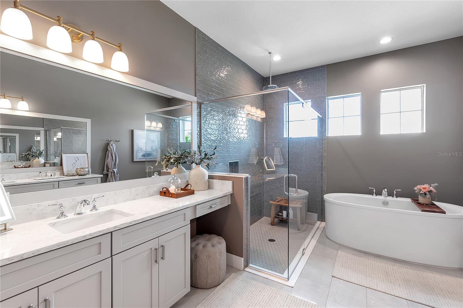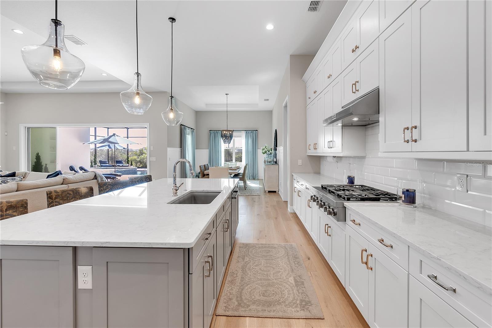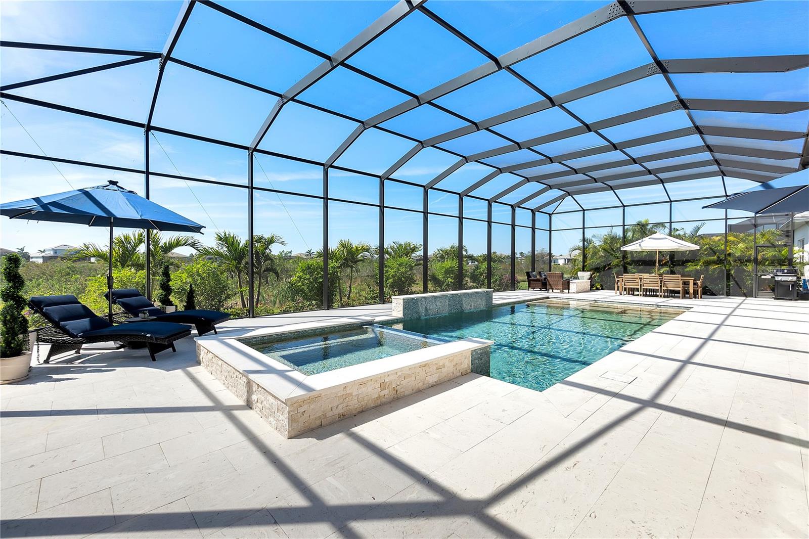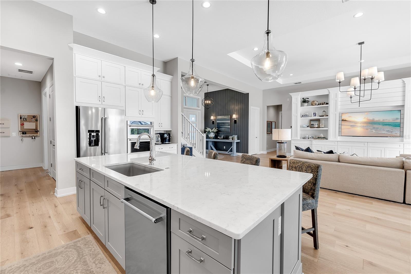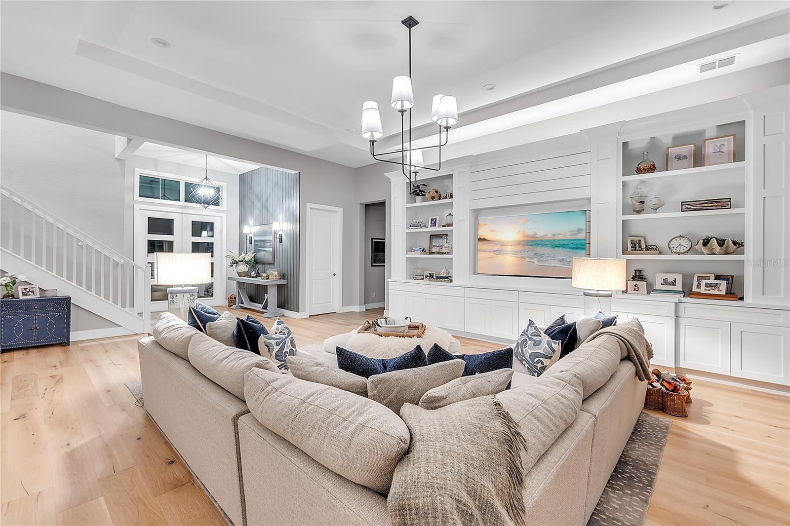 ***MOTIVATED SELLER | $46,000 PRICE IMPROVEMENT | RARELY AVAILABLE MAXWELL ELITE WITH LINEAR PARK FRONTAGE*** Modern luxury and sophisticated design come together in this stunning Maxwell Elite model pool home, exceptionally located behind the gates of the highly sought-after Isles at Lakewood Ranch community. Rare open park space and pavilion directly across from home affords idyllic setting for kids to play and practice sports. Set on a private preserve lot with no front neighbors and premier Linear Park frontage, this two-story residence offers 4,028 square feet of meticulously designed living space. It includes 4 (optional 5) ensuite bedrooms, 5.5 bathrooms, a dedicated office, an upstairs flex space, and a spacious 3-car garage. Large extended driveway affords ample parking space for multiple cars / drivers- particularly valuable in a neighborhood where street parking is prohibited. Upon entering, you're greeted by the impressive foyer with 12-foot ceilings, setting the tone for the expansive living areas. The home boasts warm engineered wood flooring that seamlessly flows through the living and dining spaces. Sunlight pours in through sliding glass doors and windows, while custom lighting enhances the ambiance. The gourmet chef's kitchen is a showstopper, featuring an oversized center island, upgraded cabinetry, quartz countertops, a tiled backsplash, and premium KitchenAid stainless steel appliances. The expansive great room, complete with custom built-ins, 13’ tray ceilings, and large sliders, opens to a beautiful outdoor living area. The generous pool & spa area is perfect for relaxation, with an extended shell stone deck, multiple seating areas, and serene preserve views. The oversized lanai with a covered seating area is an entertainer’s dream, perfect for tropical evenings around the built-in firepit. Western exposure and sunset views extend leisure time. The spacious owner's suite is a private retreat, offering walk-in closets and a luxurious spa-style bath with quartz countertops, dual sinks, a walk-in shower with dual rain showerheads, and a soaking tub. The downstairs also features three additional large bedrooms with ensuite baths, a formal dining area, and a private office with custom built-ins. Upstairs, a large flex space with a built-in closet and full bath provides versatility for various needs. The home also includes a 3-car garage with overhead storage. Enhancements include an extended driveway, extensive landscape lighting, custom interior lighting, built-ins in the laundry room and craft space, upgraded plumbing fixtures, a two-tone paint package, impact windows on the front elevation, upgraded cabinetry and molding in the kitchen, custom millwork in the foyer and powder room, custom built-ins in the office and great room, walk-in showers in all bathrooms, upgraded wood floors and carpeting, lanai super gutter, as well as plumbing for an outdoor kitchen(s) and an extended pool deck (67’ x 32’ = 2,144 sq ft enclosure). The Isles at Lakewood Ranch offers resort-style living, with amenities including a heated pool and spa, outdoor bar, tennis and pickleball courts, a multi-purpose turf lawn, and a clubhouse with a gathering room and kitchen. Residents also enjoy access to a state-of-the-art fitness center and yoga studio. Ideally located, the community is close to Waterside Place, and Lakewood Ranch Main St with easy access to St. Armands Circle, Downtown Sarasota, and area beaches.
