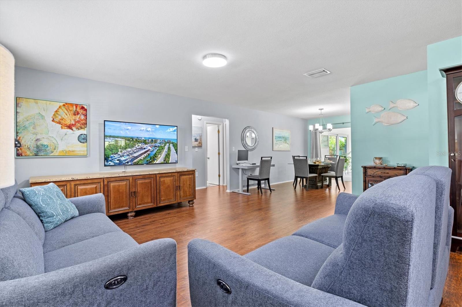 Tucked away in the SECLUDED and highly sought-after community of Arbor Oaks in WEST Bradenton—less than 15 minutes from the beautiful Gulf Coast beaches—this stunning home offers MAINTENANCE-FREE living in a prime location. Designed with thoughtful updates and an inviting atmosphere, this property provides a seamless blend of style, functionality, and low-maintenance comfort. Step through the front door and be greeted by a spacious, OPEN-CONCEPT layout, enhanced by a BRAND-NEW family room addition—an impressive 300+ square feet of LIVING SPACE boasting vaulted ceilings and an abundance of NATURAL LIGHT streaming through oversized windows. Whether you're enjoying a quiet morning coffee or hosting friends and family, this sun-drenched space is sure to become the heart of your home. The home’s FRESHLY PAINTED exterior (2024) enhances its curb appeal, while major upgrades, including a NEW WATER HEATER (2024) and an ADVANCED AIR CONDITIONING SYSTEM (2023) with a UV FILTER for superior air quality, provide peace of mind. A NEW ROOF (2019) ensures long-term durability, while the LUXURY VINYL plank flooring throughout adds a sleek, modern touch that’s as stylish as it is easy to maintain. The beautifully updated chef’s kitchen is an entertainer’s delight, featuring GLEAMING GRANITE countertops, BRAND-NEW STAINLESS-STEEL appliances (2023), ample cabinetry, and a spacious layout perfect for preparing meals and gathering with loved ones. The adjacent dining and living areas create a natural flow, making everyday living effortless. The SPLIT-BEDROOM floor plan offers the ideal balance of privacy and togetherness. The Owner’s Suite is a tranquil retreat, providing ample space for a king-size bed and more, plus a generous walk-in closet to keep everything neatly organized. A charming wood barn door leads to the ensuite bath, which features granite countertops and a walk-in shower. The current homeowners love the unbeatable location, just minutes from GT Bray Park, where you’ll find expansive green spaces, sports fields, pickleball courts, and a fantastic dog park. Whether you’re an outdoor enthusiast or simply enjoy an active lifestyle, this area has something for everyone. You’ll also appreciate the home’s proximity to excellent shopping and dining options, with Manatee Avenue and Cortez Road just around the corner, making daily errands and nights out incredibly convenient. Step outside and enjoy the lushly landscaped surroundings of Arbor Oaks, a peaceful yet conveniently located community where everything you need is within reach. The HOA takes care of cable, high-speed internet, lawn care, trimming, sprinkler irrigation, and access to a heated community pool—offering a truly hassle-free lifestyle. Beyond the comforts of home, this prime Bradenton location places you just minutes from stunning Gulf Coast beaches, scenic parks, and endless entertainment. Whether you’re looking for an active lifestyle or a peaceful retreat, this home offers the perfect blend of both. Don’t miss this rare opportunity to own a beautifully updated home in one of Bradenton’s most desirable communities!