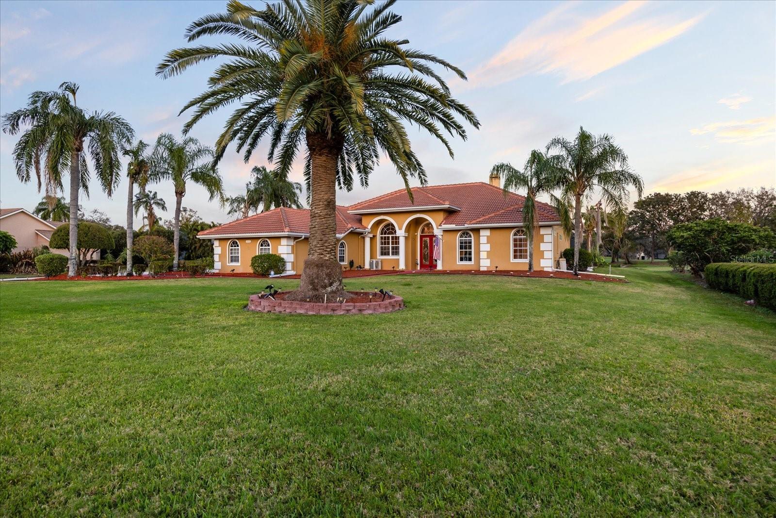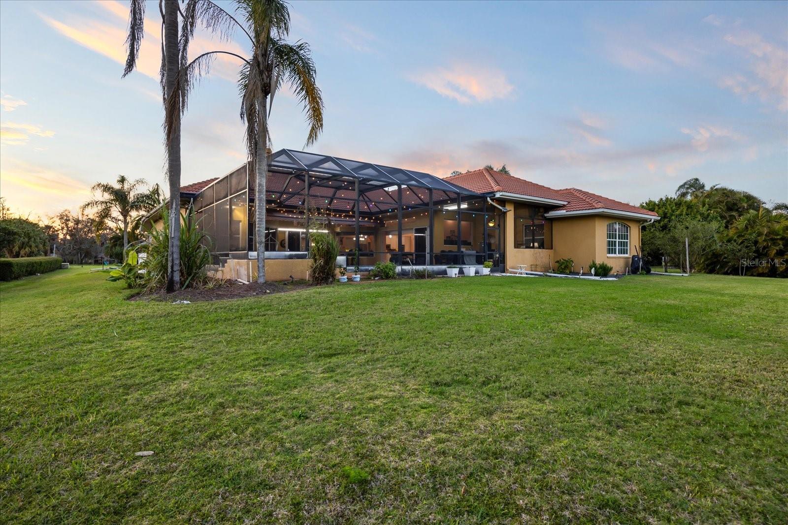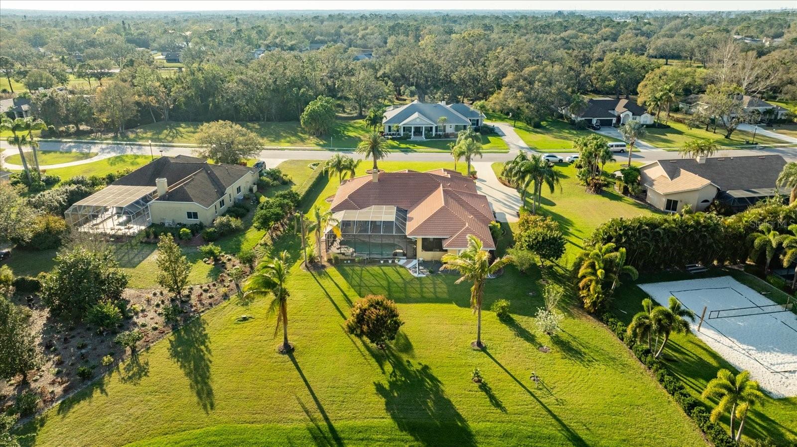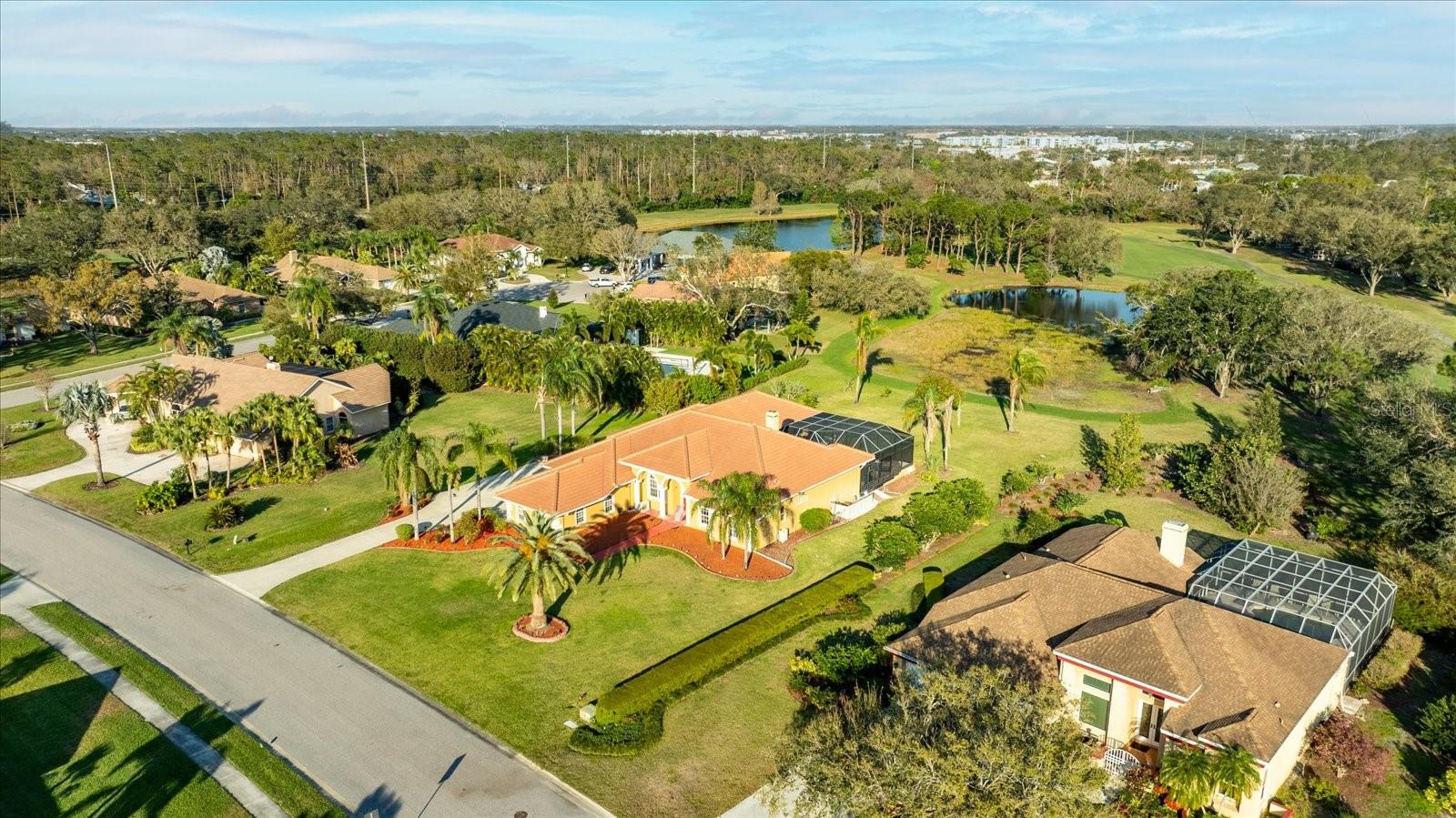 Discover a River Club estate that truly stands apart from the uniform homes found in Lakewood Ranch. Set on nearly an acre along the 3rd fairway of the River Club’s public golf course, this custom-built residence offers privacy, space, and unique architectural character throughout. Soaring 15-foot ceilings, marble floors, and a thoughtfully designed floor plan create a sense of elegance and openness from the moment you enter. Unlike many newer communities, this home delivers elbow room both inside and out—with expansive green views, no direct rear neighbors, and generous side yards. The outdoor living space is ideal for entertaining, featuring a large heated pool and spa, outdoor kitchen, solar landscape lighting, and a full-screen enclosure. Major updates have already been handled, including a new barrel tile roof (2021), water heaters (2024), A/C (2021), and pool heater (2023). Inside, the chef’s kitchen includes a cooktop and walk-in pantry, while a split-bedroom layout ensures privacy for owners and guests. The oversized four-car garage and extra-long driveway offer ample space for vehicles, golf carts and more. Ideally located just minutes from Lakewood Ranch, Waterside Place, Sarasota-Bradenton Airport, top-rated schools, and an array of shops and restaurants, this home also benefits from no CDD fees and a low HOA. This home combines luxury living with smart long-term value. If you're looking for a truly distinctive home with more land, more style, and more freedom, this River Club gem is a must-see.