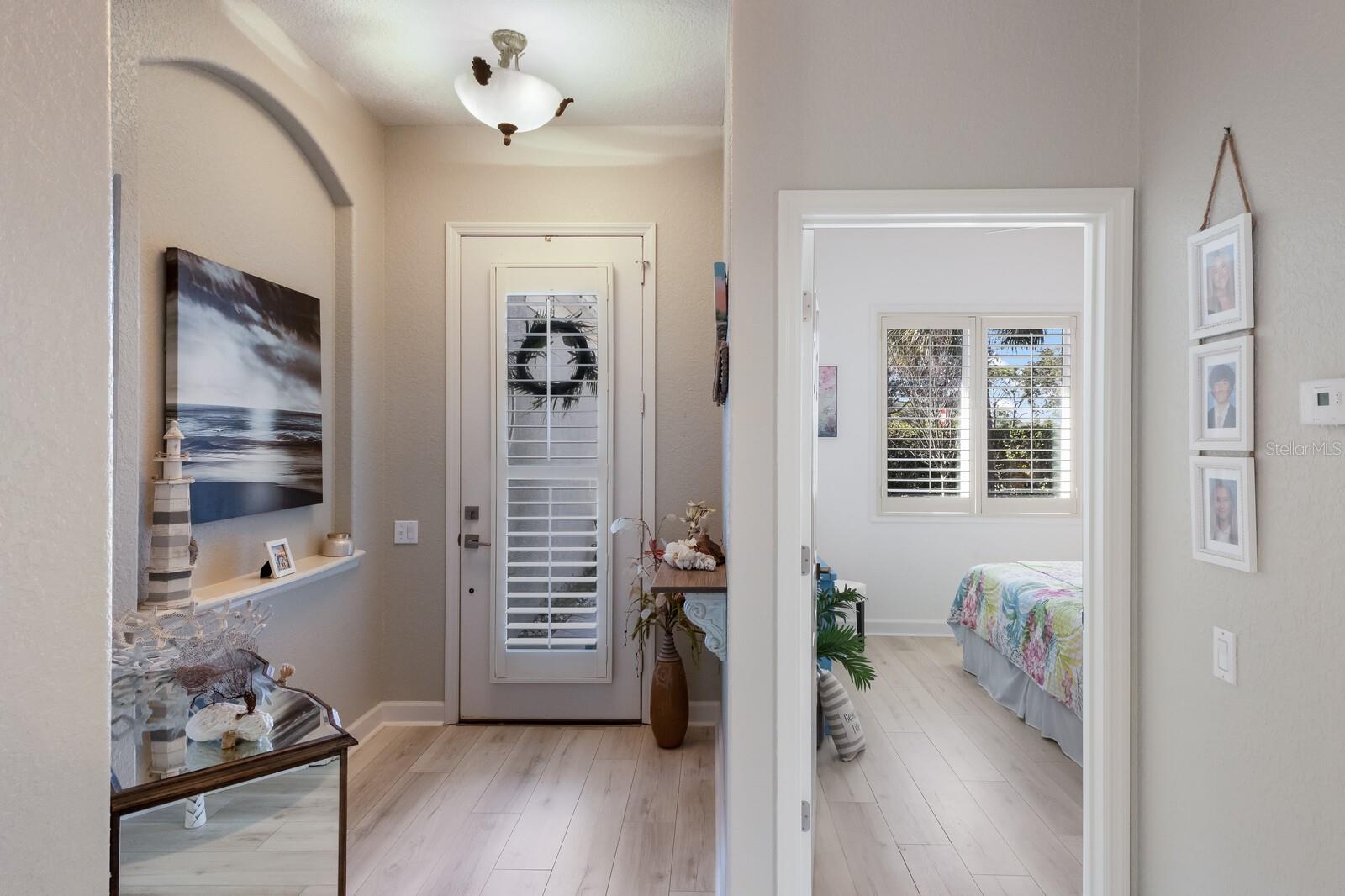 Nestled within the highly sought-after Highlands of Rosedale Golf & Tennis Club, this beautifully updated 3-bedroom, 2-bath home is move-in ready! Located in a gated community, this home is surrounded by lush landscaping, offering both privacy and tranquility. Step inside to discover a bright and airy open split floorplan. Stunning luxury vinyl flooring flows throughout, complimented by freshly painted interior walls, new light fixtures, ceiling fans & elegant plantation shutters. The updated eat-in kitchen features crisp white cabinetry, stainless steel appliances, solid surface countertops, and a breakfast bar. A set of sliders leads to a charming, sunny courtyard --perfect for enjoying your morning coffee! Just off the kitchen, the dining & living areas provide the perfect space for entertaining. The living room boasts a striking stone-accented fireplace and pocketing sliders that open to a relaxing lanai, creating seamless indoor-outdoor living. The large Primary suite is a serene retreat with a lovely wall of windows, a walk-in closet, and an en-suite bath featuring dual sinks and a walk-in shower. The guest bedrooms & bath are thoughtfully placed at the front of the home for added privacy. This home is full of architectural charm, with tall ceilings & elegant arched doorways. Additional features include a 2-car garage & a private landscape irrigation well.. Which will save money! Rosedale is an amenity rich community offering social, recreational and golf memberships which are all OPTIONAL! They include premier golf facilities, tennis, pickleball, a resort-style pool, state-of-the-art fitness center and a newly renovated full-service clubhouse & restaurant which hosts social events and activities throughout the year! Rosedale is such a fantastic location convenient to I-75, shopping, fine dining, LWR Main Street, UTC, great healthcare and is a short drive to our award-winning area beaches. BONUS of NO CDD's and LOW HOA's make this community a wonderful place to call home!