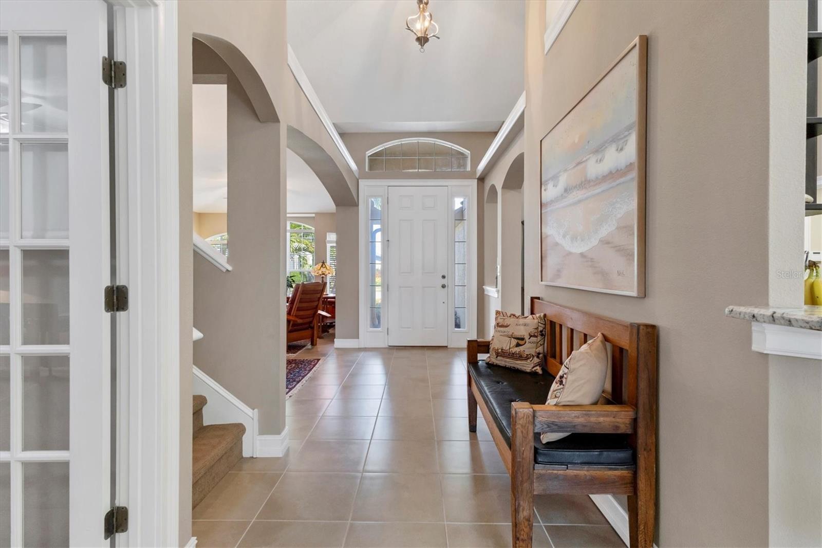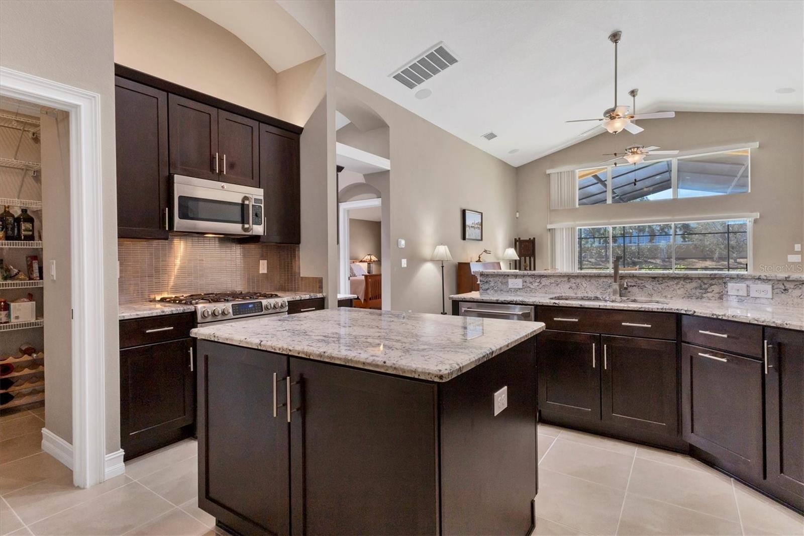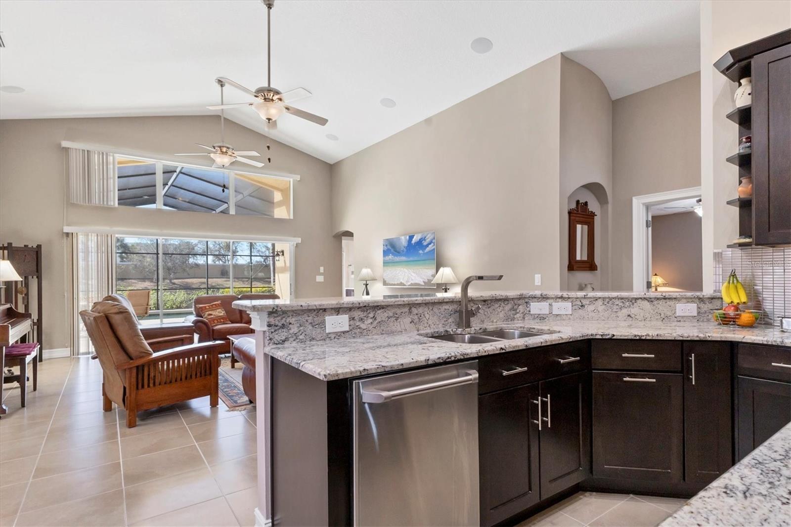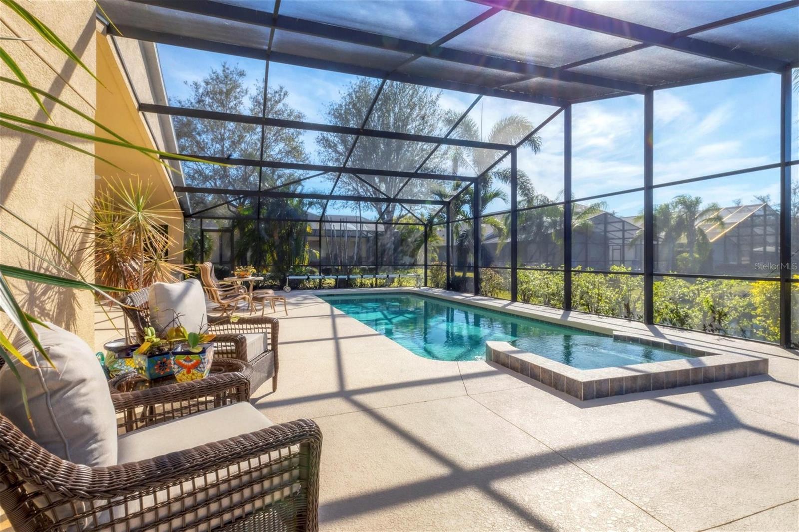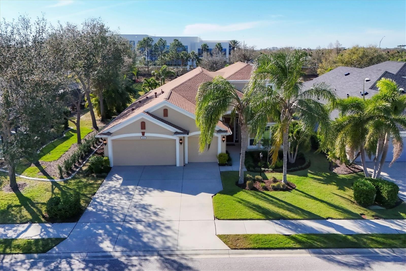 Welcome to this exceptional Cardel Homes Kingfisher 3 model offering four bedrooms and a den, three baths in the desirable Central Park neighborhood of Lakewood Ranch. The open concept kitchen and great room create a seamless flow for everyday living, featuring high windows, large island, breakfast bar, walk-in-pantry and built-in-desk. A separate dining room and living room provide additional space for more formal gatherings, while the eat-in area off the kitchen offers a cozy spot for casual meals. The private primary suite is a sanctuary, complete with dual sinks, soaking tub, large walk-in shower and an oversized closet. Two additional guest bedrooms are conveniently downstairs and share a full bath with direct access to the pool area. The spacious layout includes a large upstairs bonus room with a private bedroom and full bath, making it ideal for guests or a quiet retreat. Ready for a swim - The perfect saltwater gas heated 30 ft length pool provides for daily swimming laps ending with a relaxing 6-person spa! Enjoy this outdoor space with ceiling speakers connected to the in-door great room surround sound system. At the end of day, grill in the outdoor kitchen and tap the kegerator or retrieve a soda or sparkling water from the beverage cooler. This home is packed with premium features and recent upgrades, including Gunstock Oak laminate and tasteful tile flooring throughout, hurricane impact windows on the second floor and shutters on the ground level, a new roof in 2023, a new air-conditioning unit and heat pump in 2024, and a rescreened lanai in 2024. Additional highlights include an EcoWater Systems purification system, a surround sound system in the great room and lanai, and a freshly painted interior and garage floor. In one of Lakewood Ranch's sought-after communities, this home is just minutes from A-rated schools, shopping and dining. Residents of Central Park enjoy an abundance of amenities, including parks, nature trails, a sports complex, dog parks, a playground, a splash pad and vibrant monthly social events.