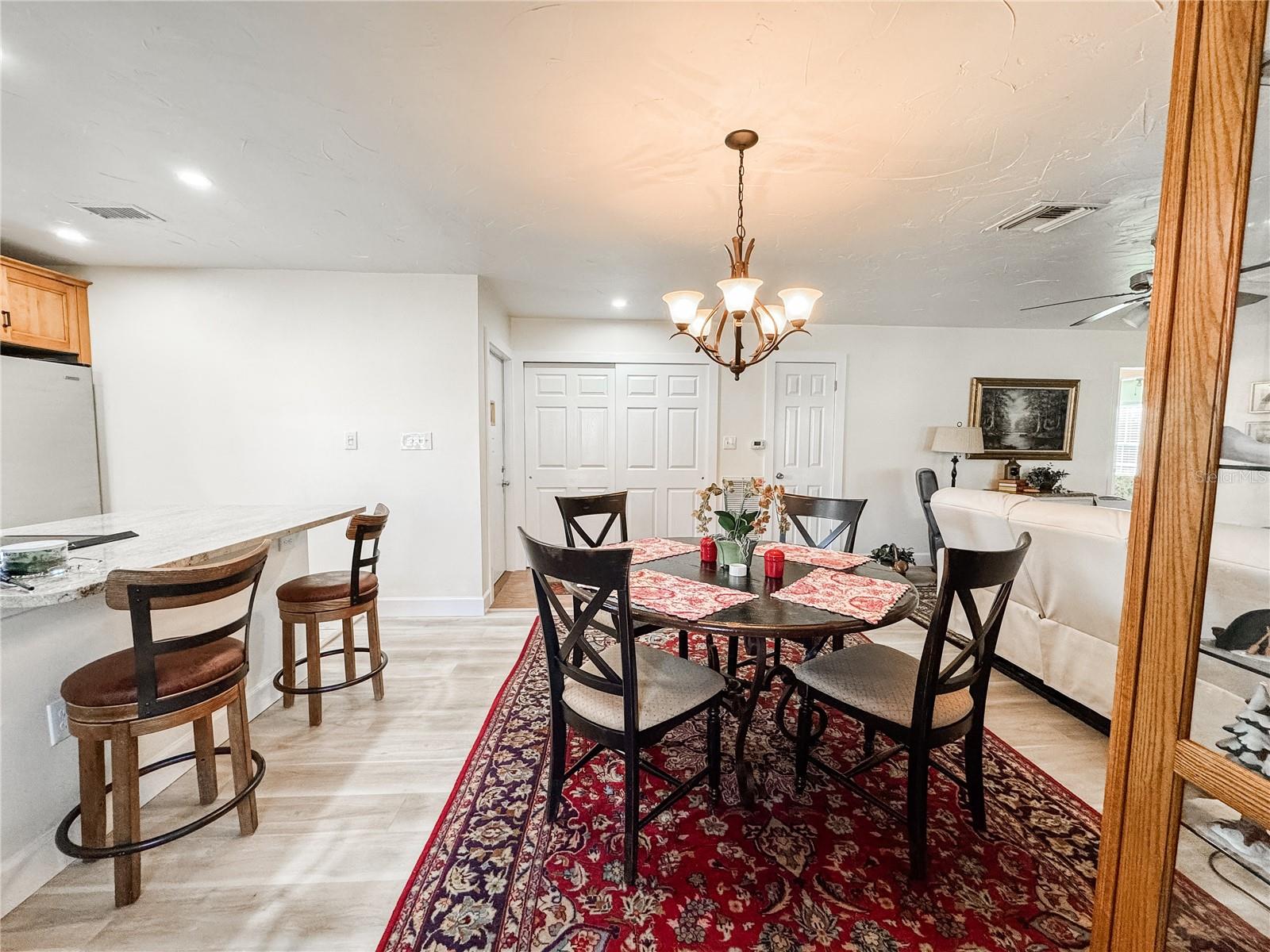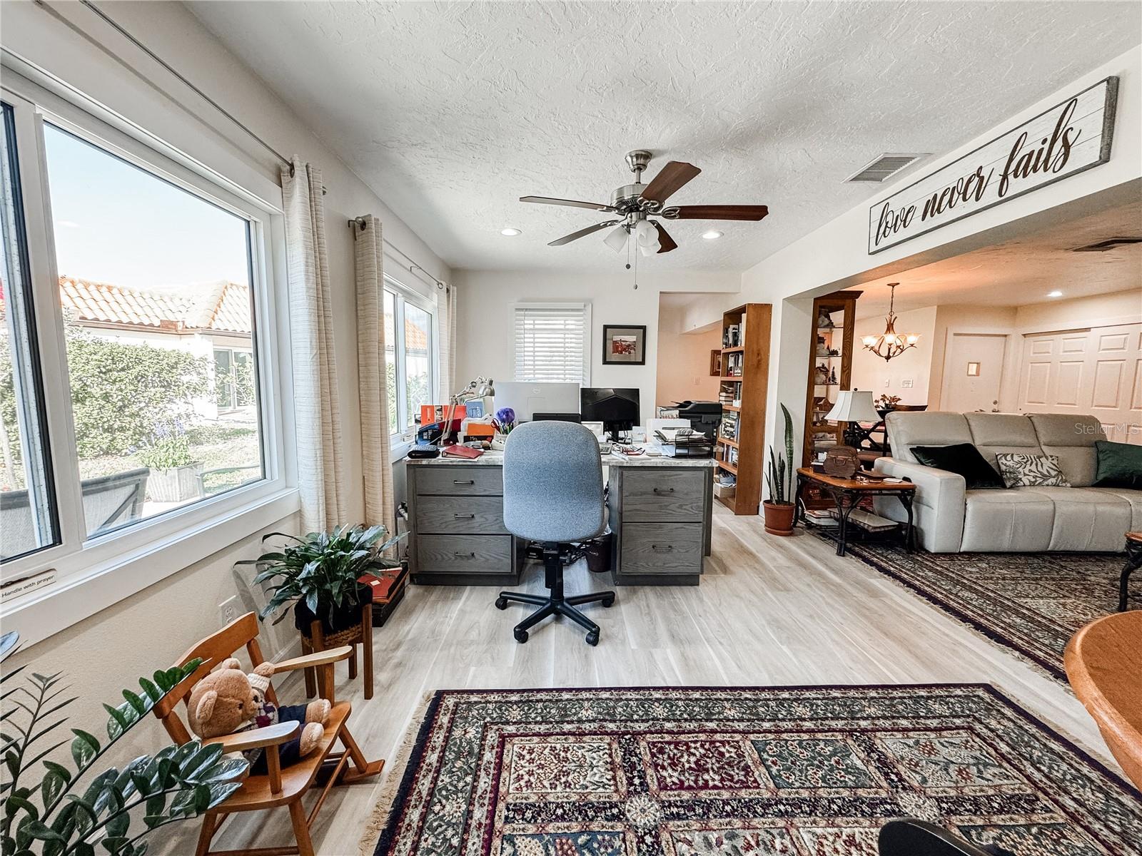 Under contract-accepting backup offers. The neighborhood of Christian Retreat Villas are where country meets 55+ community living. This 2 bedroom, 2 bath freshly renovated villa is the Florida retirement dream, featuring a spacious open concept and wonderful outdoor entertaining space. Some notably unique parts of this villa are a galley kitchen leading into a small butlers pantry, a master en suite with a large walk in closet, a shared enclosed garaged parking space, and a sun room with incredible natural lighting. The Villa has seen recent renovations including brand new water lines throughout, vinyl flooring, hurricane impact windows, attic insulation, refreshed bathrooms and kitchen, a 2025 A/C, and a 2023 redesigned roof structure that provides a 30 YEAR warranted roof, which is unheard of in this community. This community also offers water to the access the Manatee River for canoes and kayaks. This villa has charm, character, and a refreshed look and is waiting for you to call it home.