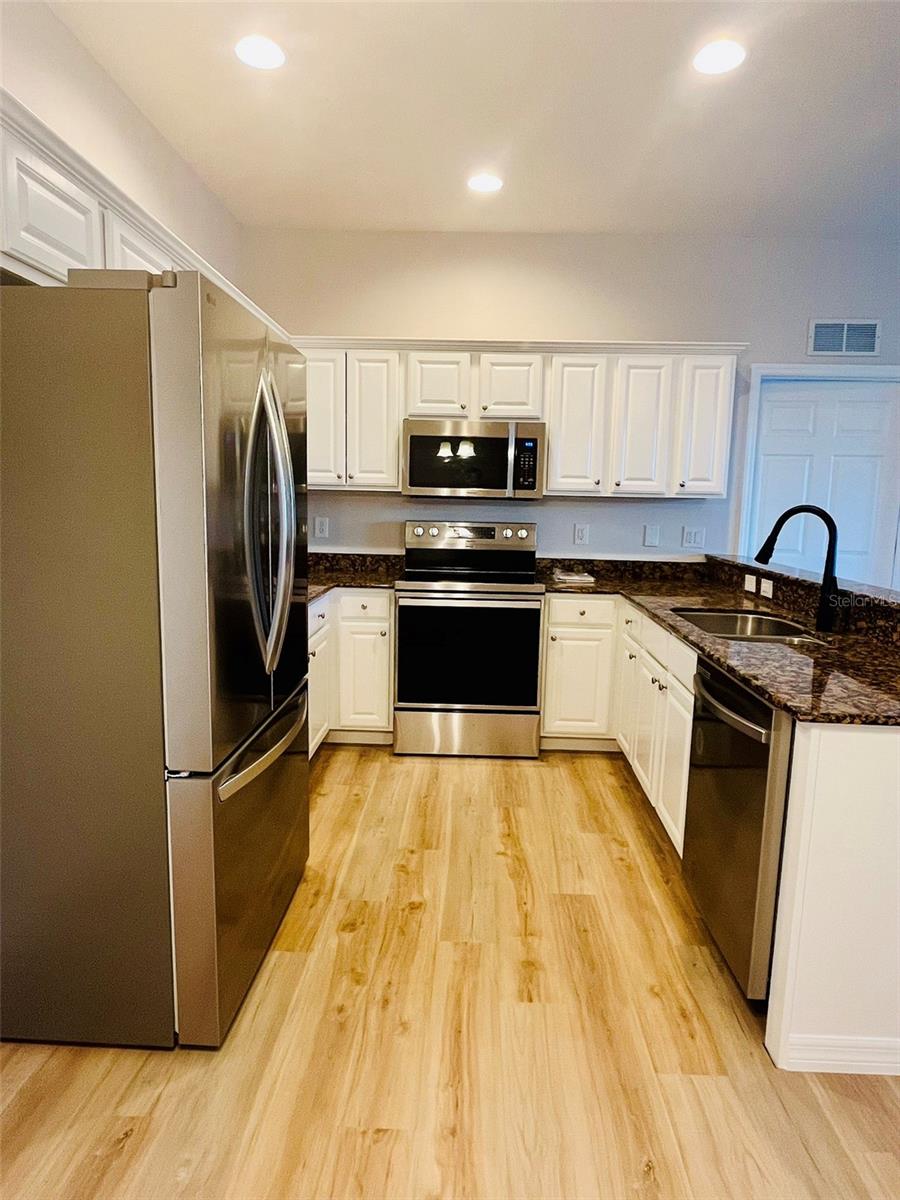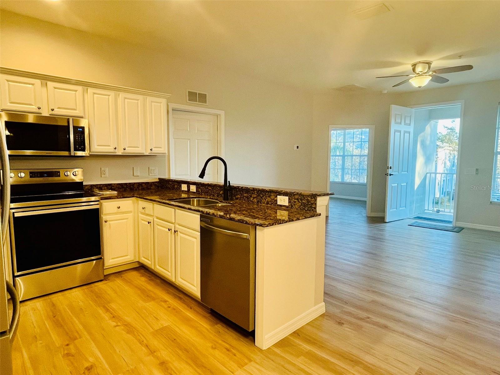 Discover the charm and convenience of this completely remodeled 3-bedroom, 2-bathroom end unit condo. Positioned on the 2nd floor, this unit has been freshly painted and thoughtfully updated from top to bottom with brand-new washer, dryer, refrigerator, range, microwave, garbage disposal, flooring, window blinds, vanities, and fixtures. The kitchen boasts granite countertops, creating a bright space perfect for cooking and entertaining. The condo features vinyl plank flooring throughout, adding a stylish and durable finish to every room. Enjoy peace of mind with an A/C system replaced in September 2020 and a new roof installed in 2024. This pet-friendly condo is conveniently located near shopping centers, restaurants, schools, golf courses, and I-75, offering easy access to all the essentials. Move-in ready and perfect for those seeking a low-maintenance lifestyle with all the modern upgrades!