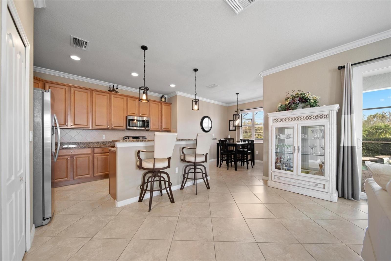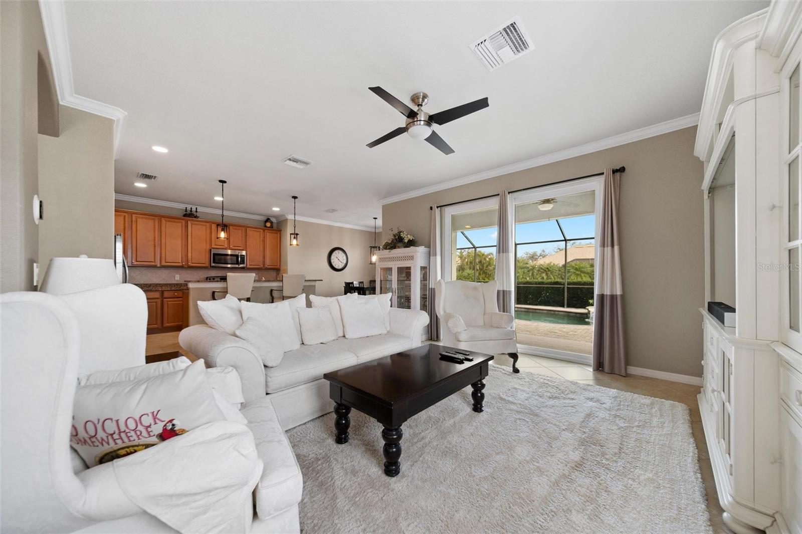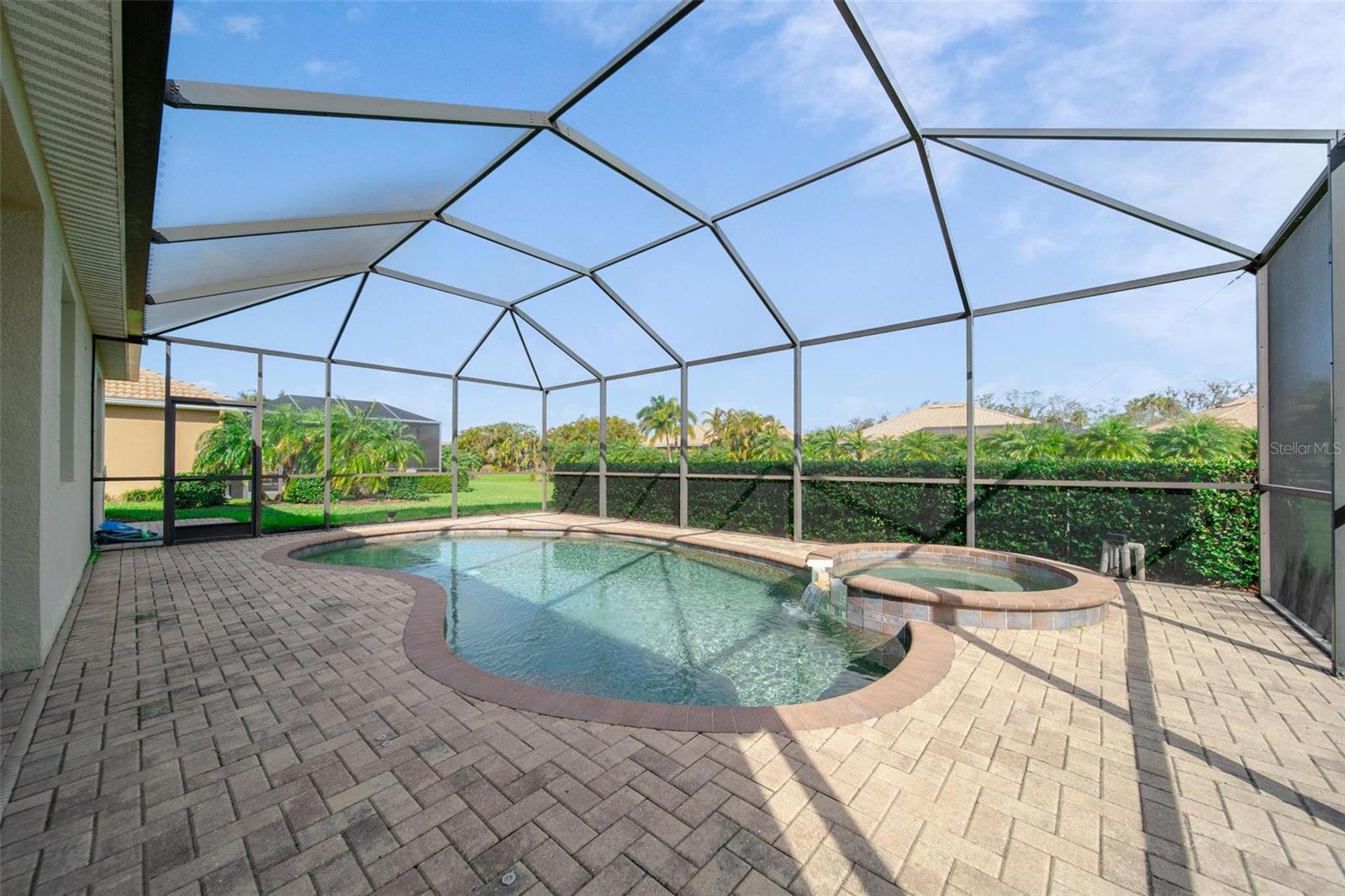 Owner says sell!! Huge Price Reduction -50K!-Experience living in the resort style community of River Strand Golf & Country Club. This 3 bedroom 2 bath Golf deeded pool home with an open floor plan is perfect for entertaining. This home features a beautiful saltwater pool with spa (new Pool pump 2024 and new pool heater 2023). This home has been lightly used and meticulously maintained. Refrigerator and Dishwasher have been recently replaced 2024. Enjoy all the activities River Strand has, golf at the newly renovated 27 hole golf course, clubhouse dining, Tiki Bar, Tennis/Pickleball, and two state of the art gyms. Short car ride to Ana Maria Island, Siesta Key, Lido Key and St. Armand's Circle. CDD fee is included with taxes. Sale of Furniture is negotiable...
